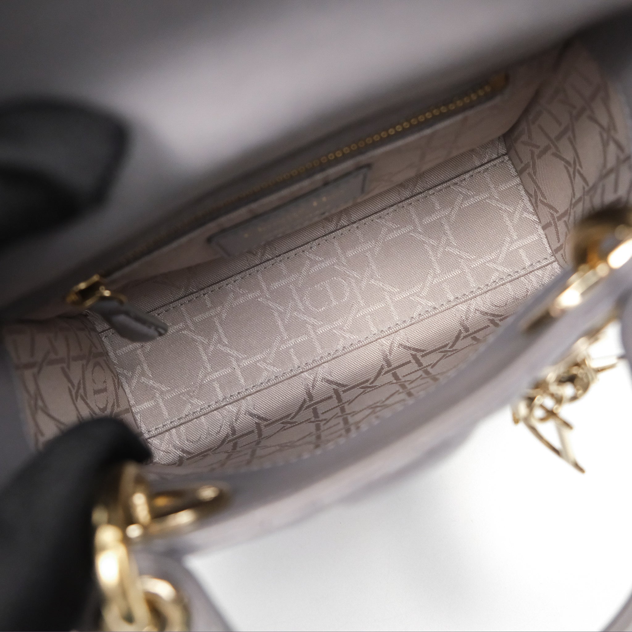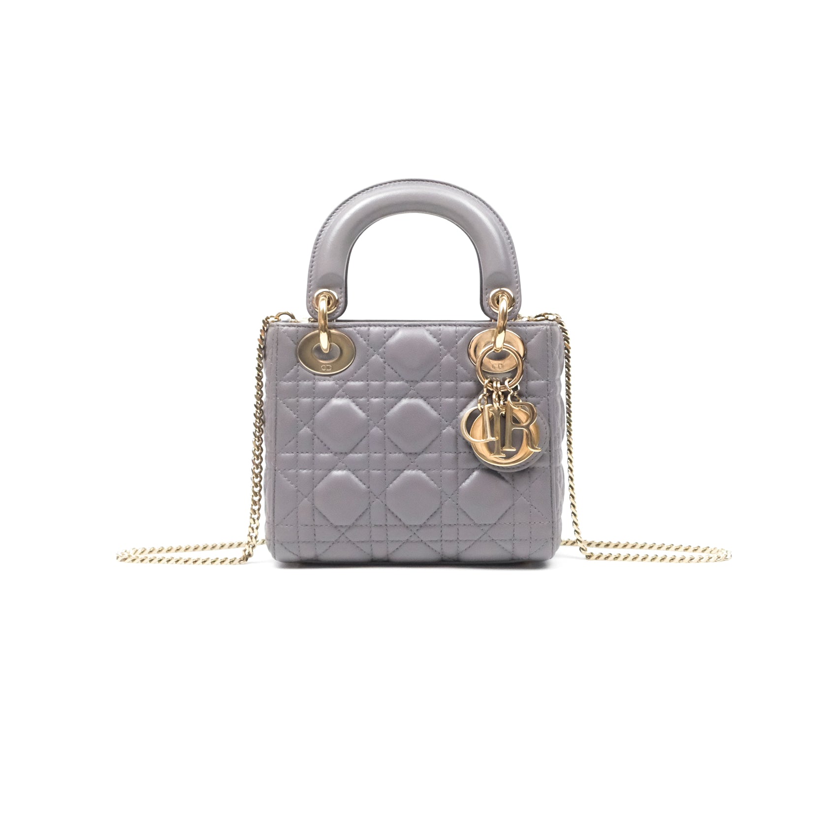 Christian Dior Mini Lady Dior Grey Lambskin Cannage Gold Hardware is now sold. Please subscribe for any updates if similar item becomes available.