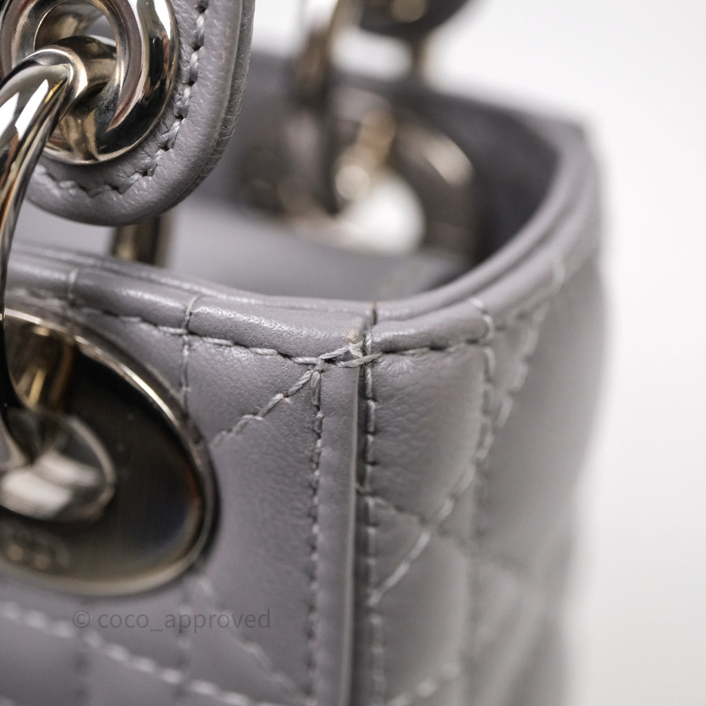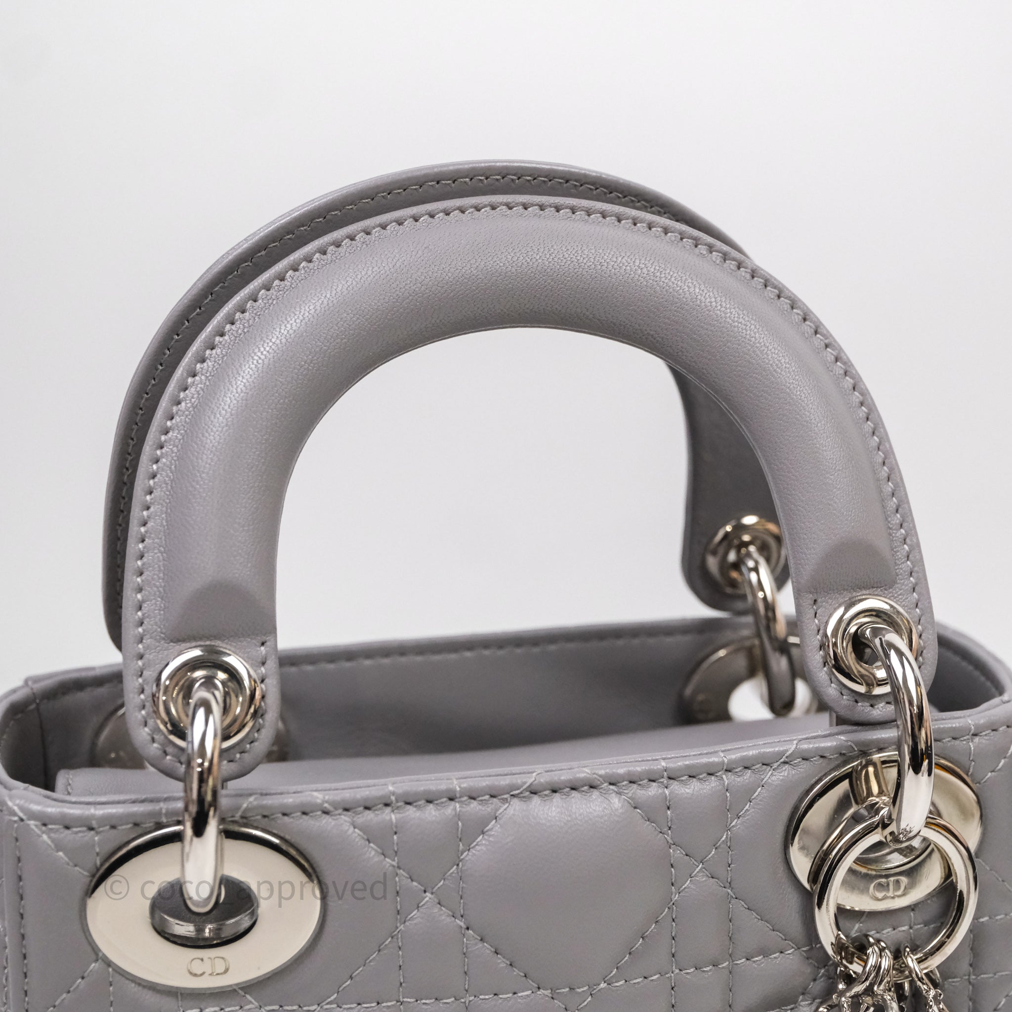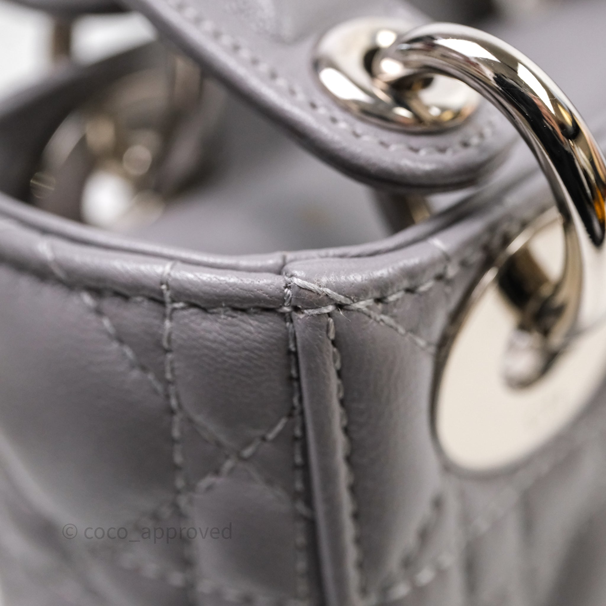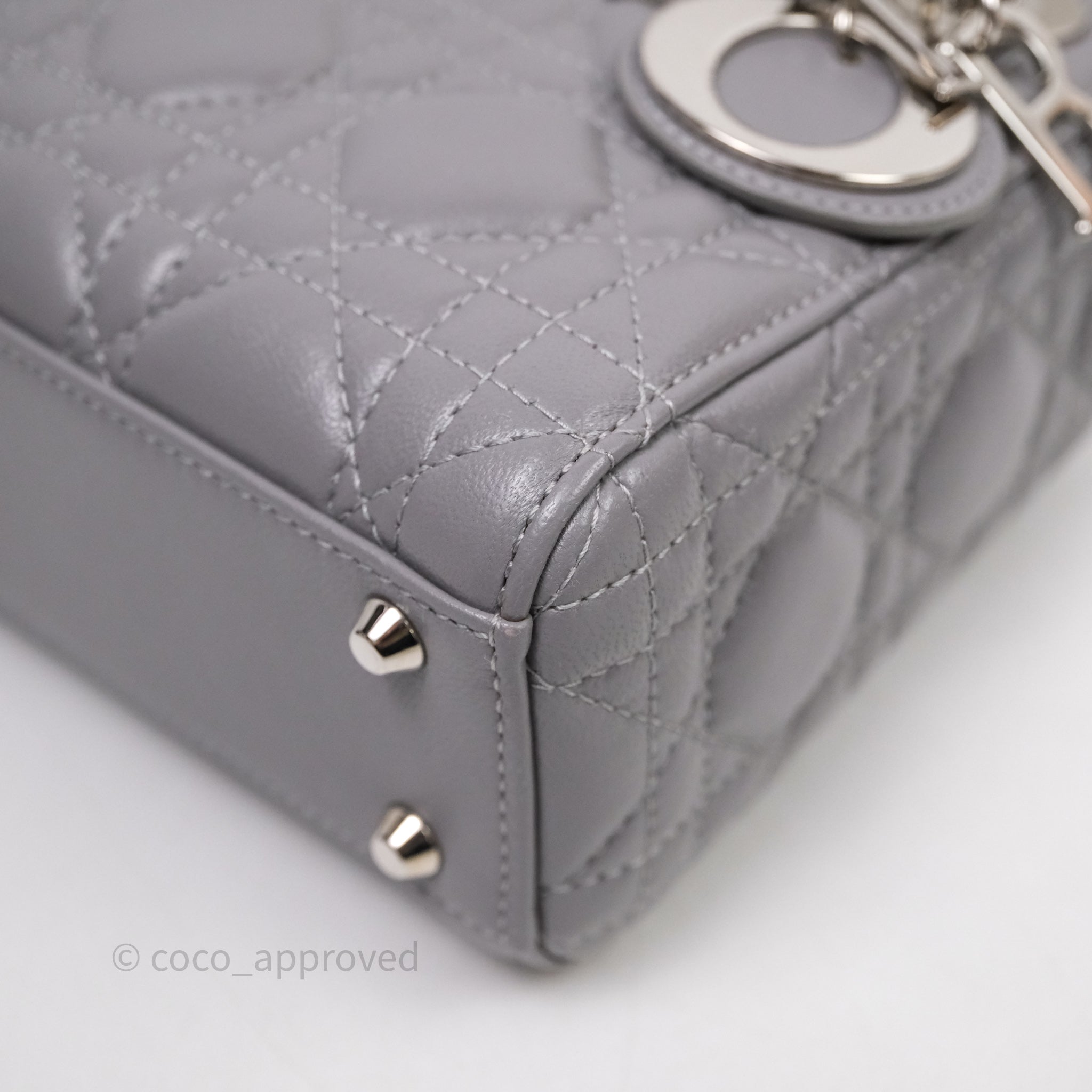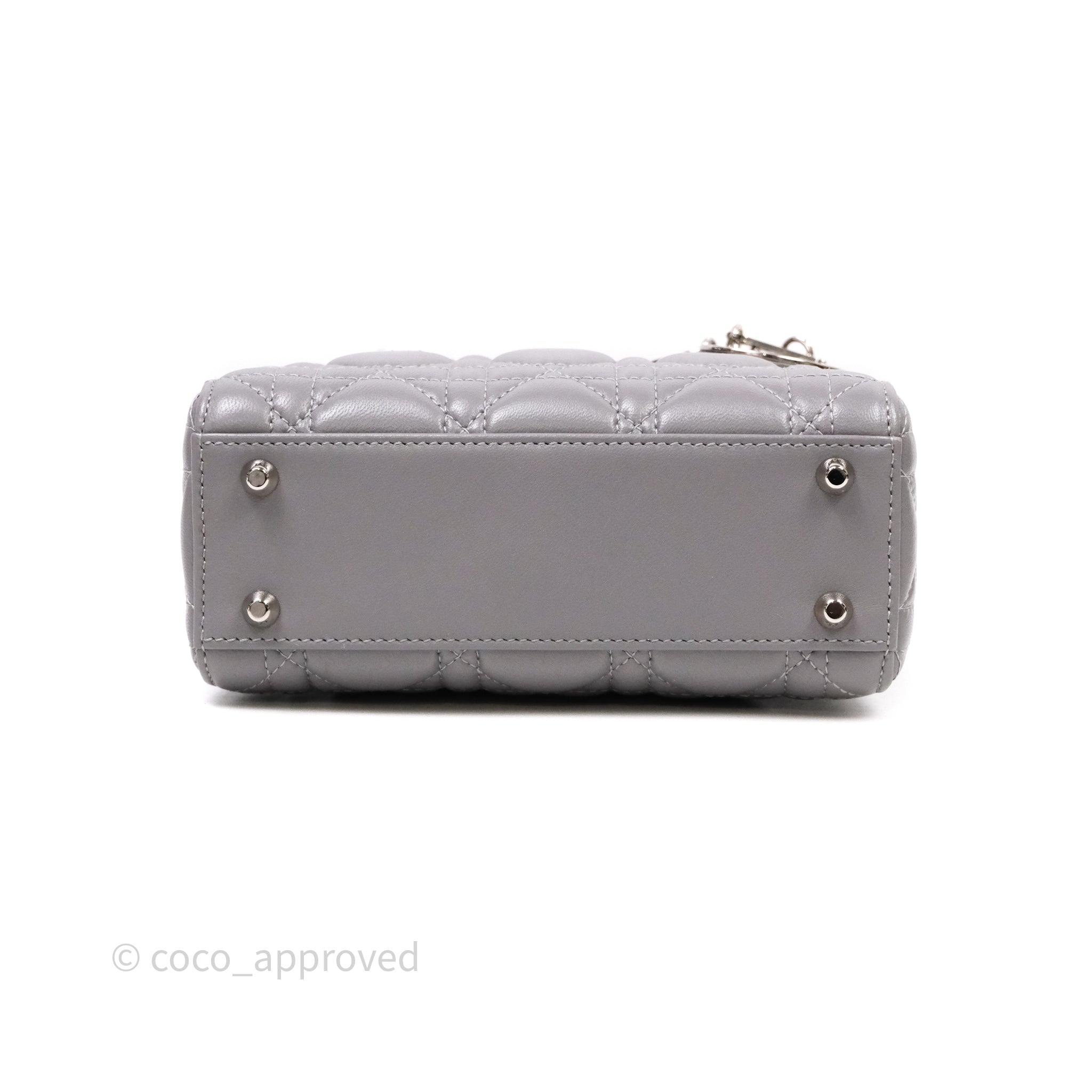 Christian Dior Mini Lady Dior Lambskin Cannage Grey Silver Hardware