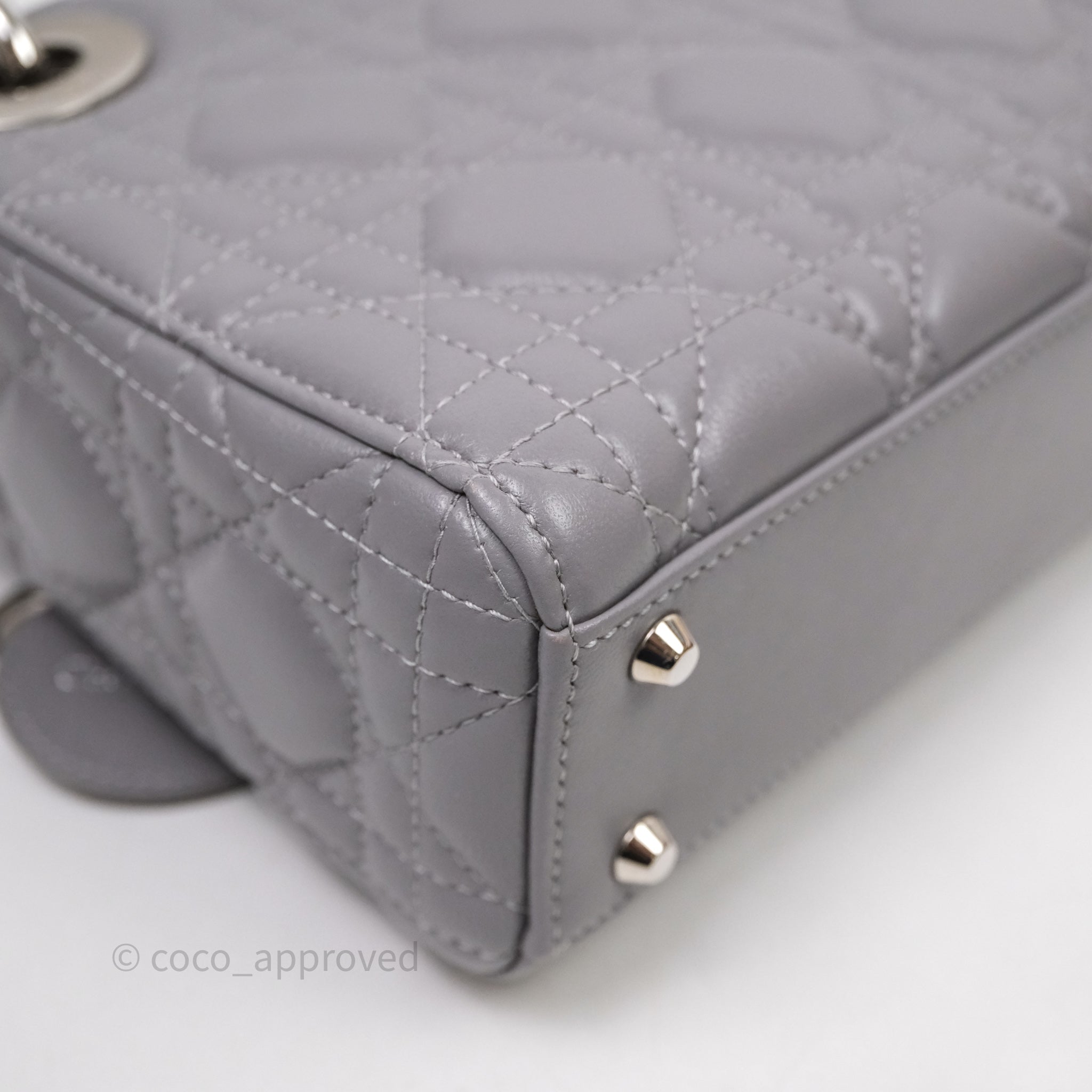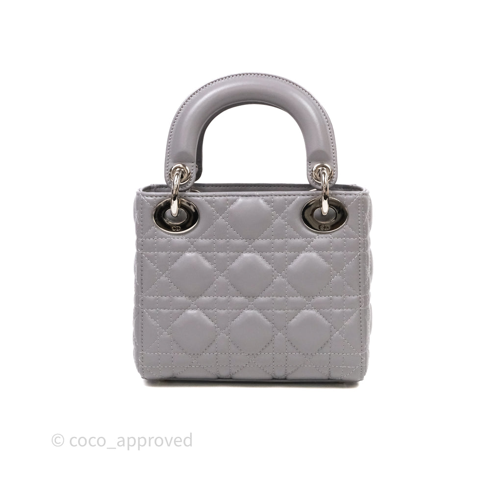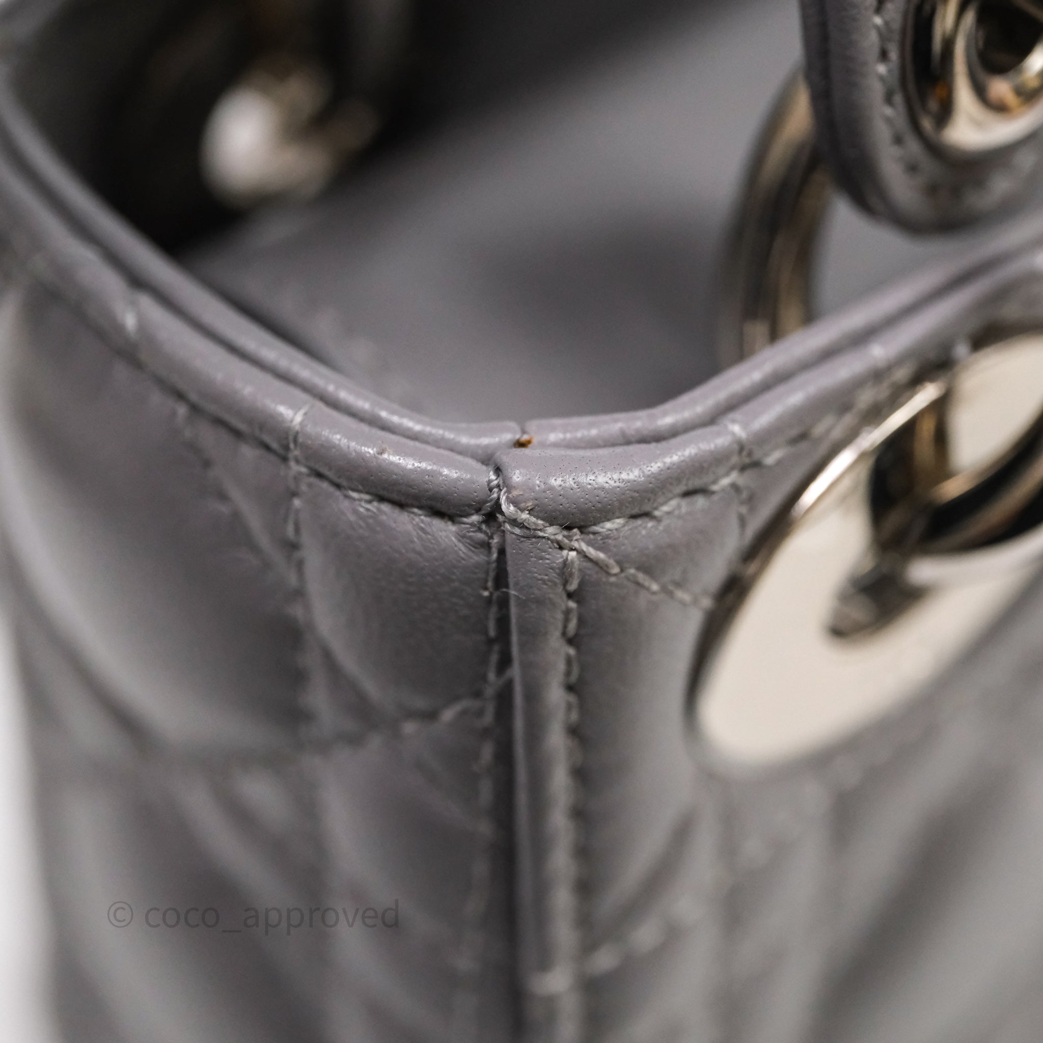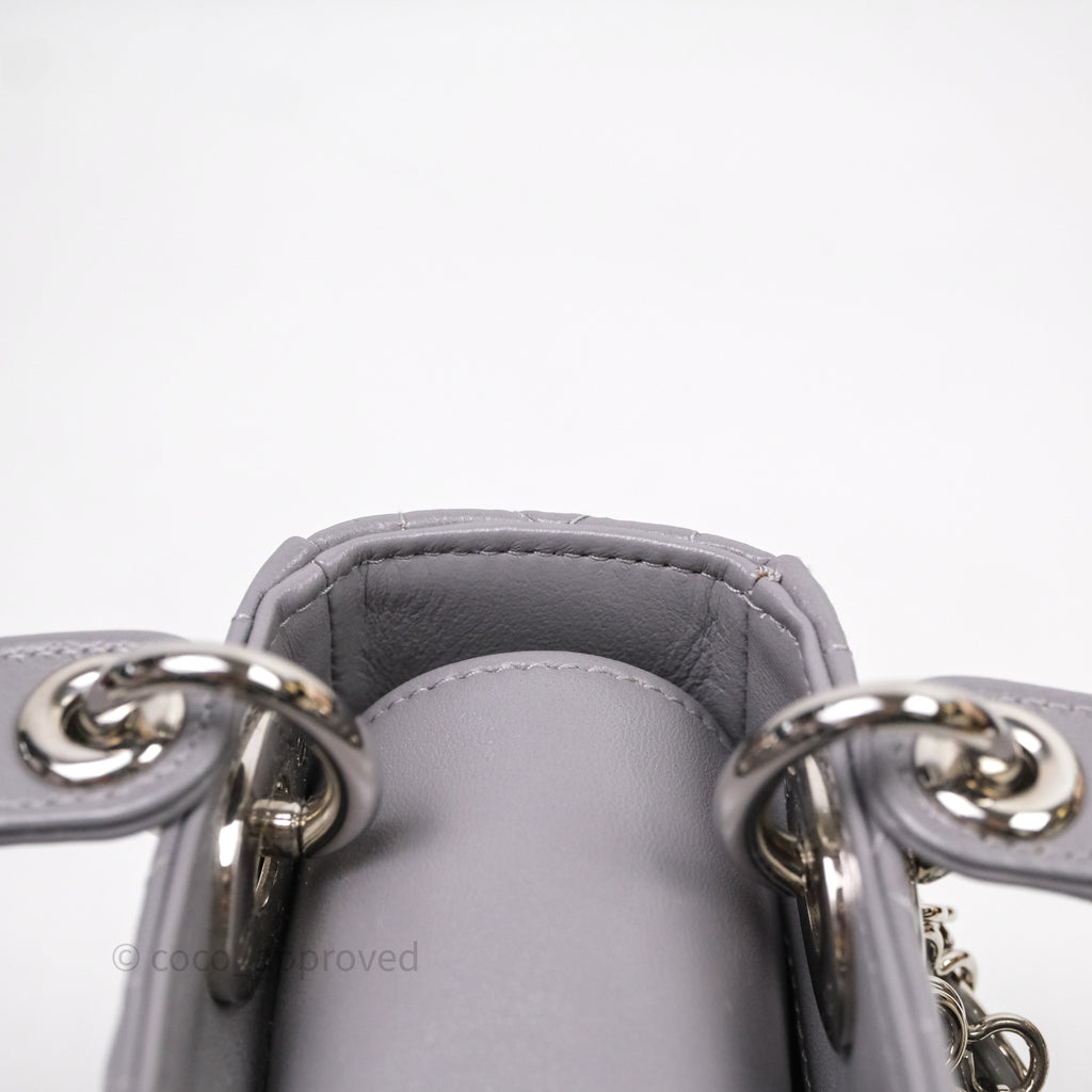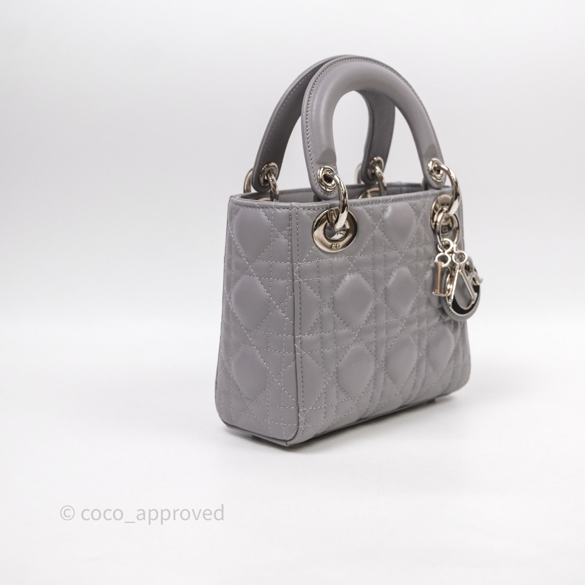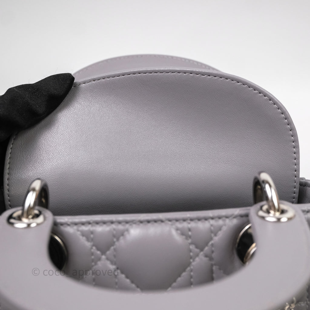 Christian Dior Mini Lady Dior Lambskin Cannage Grey Silver Hardware