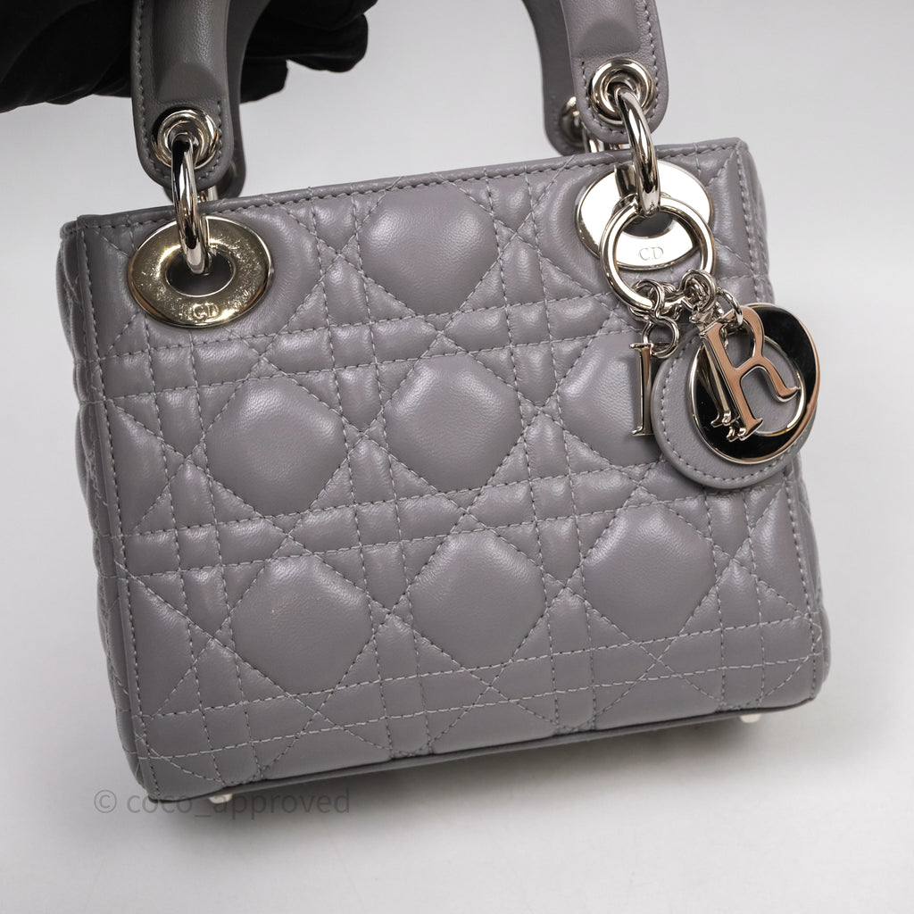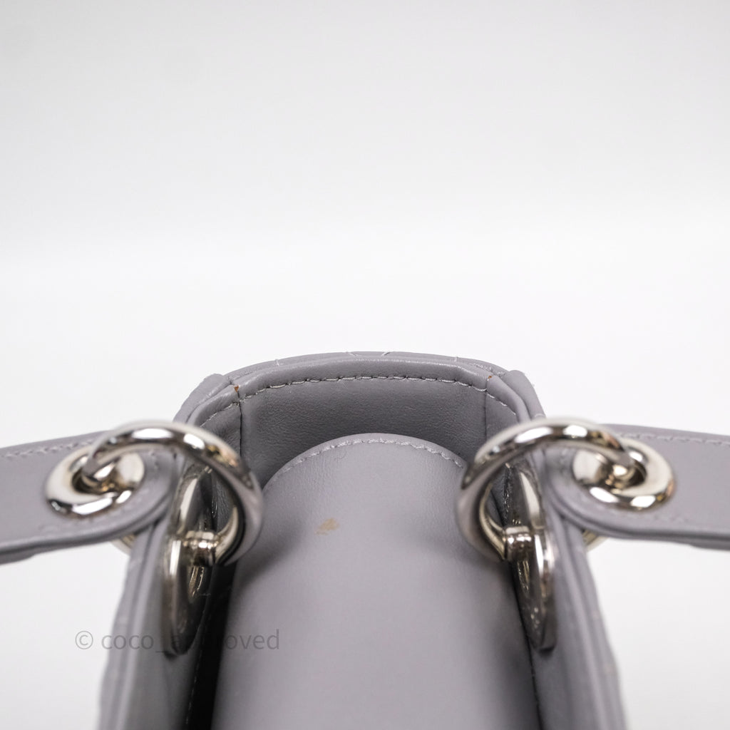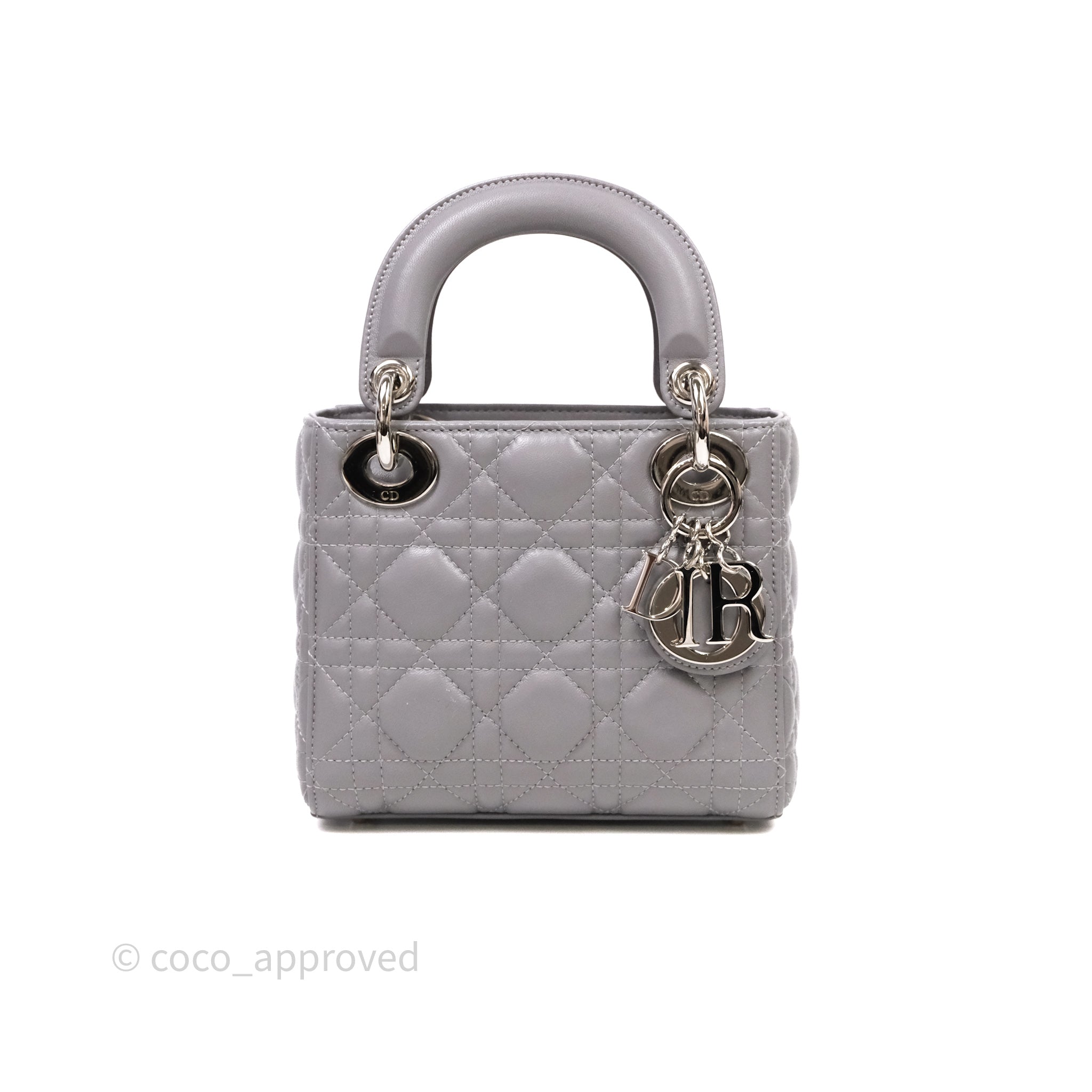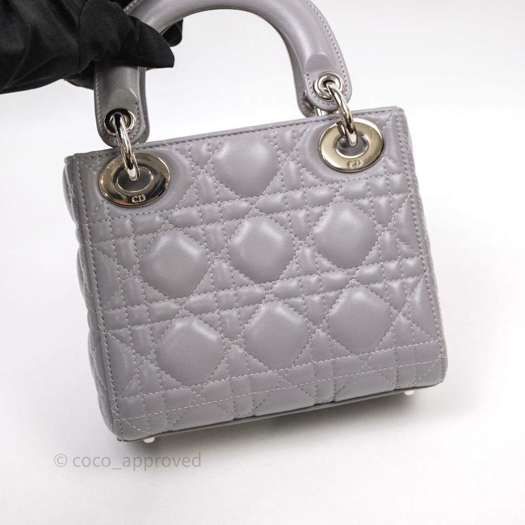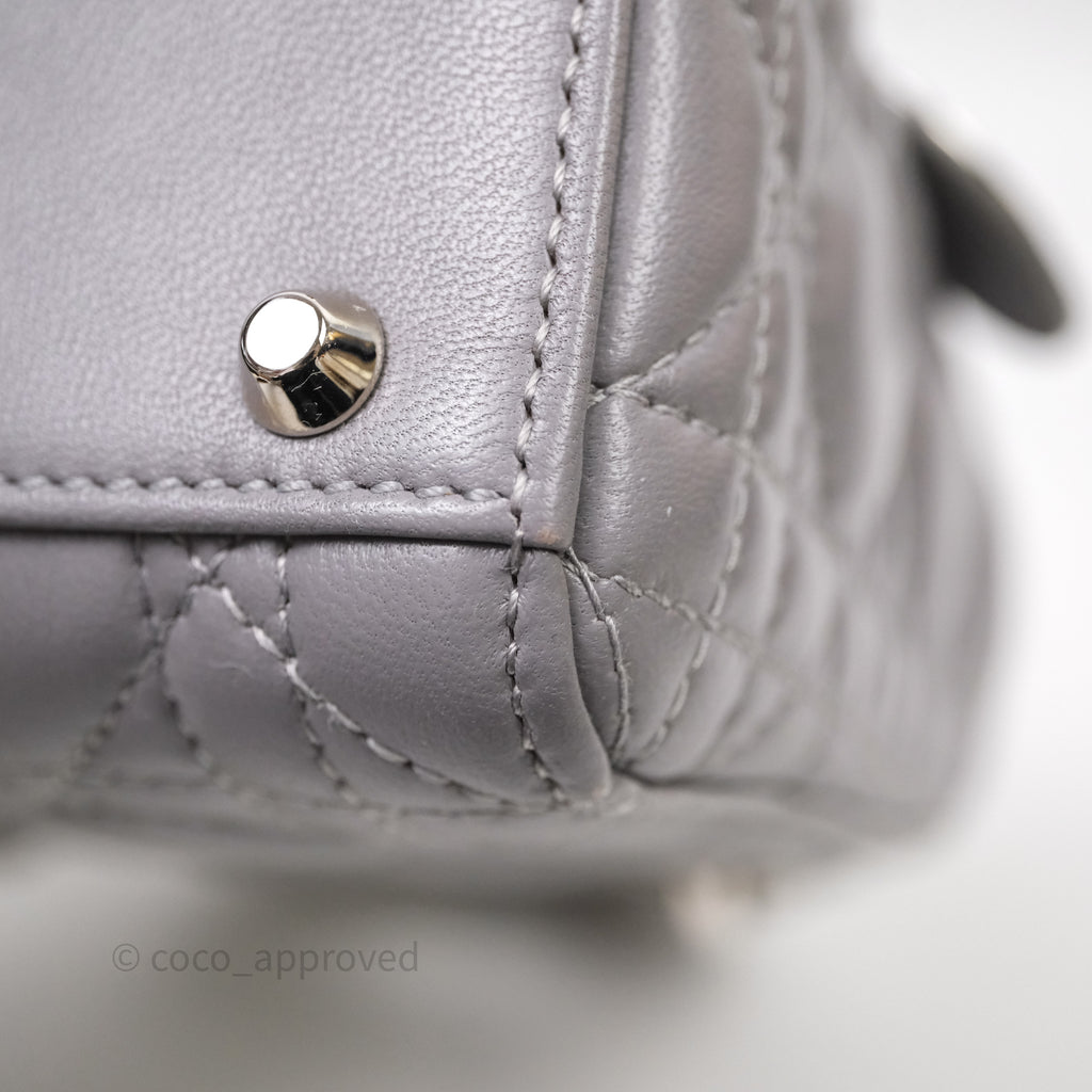 Christian Dior Mini Lady Dior Lambskin Cannage Grey Silver Hardware