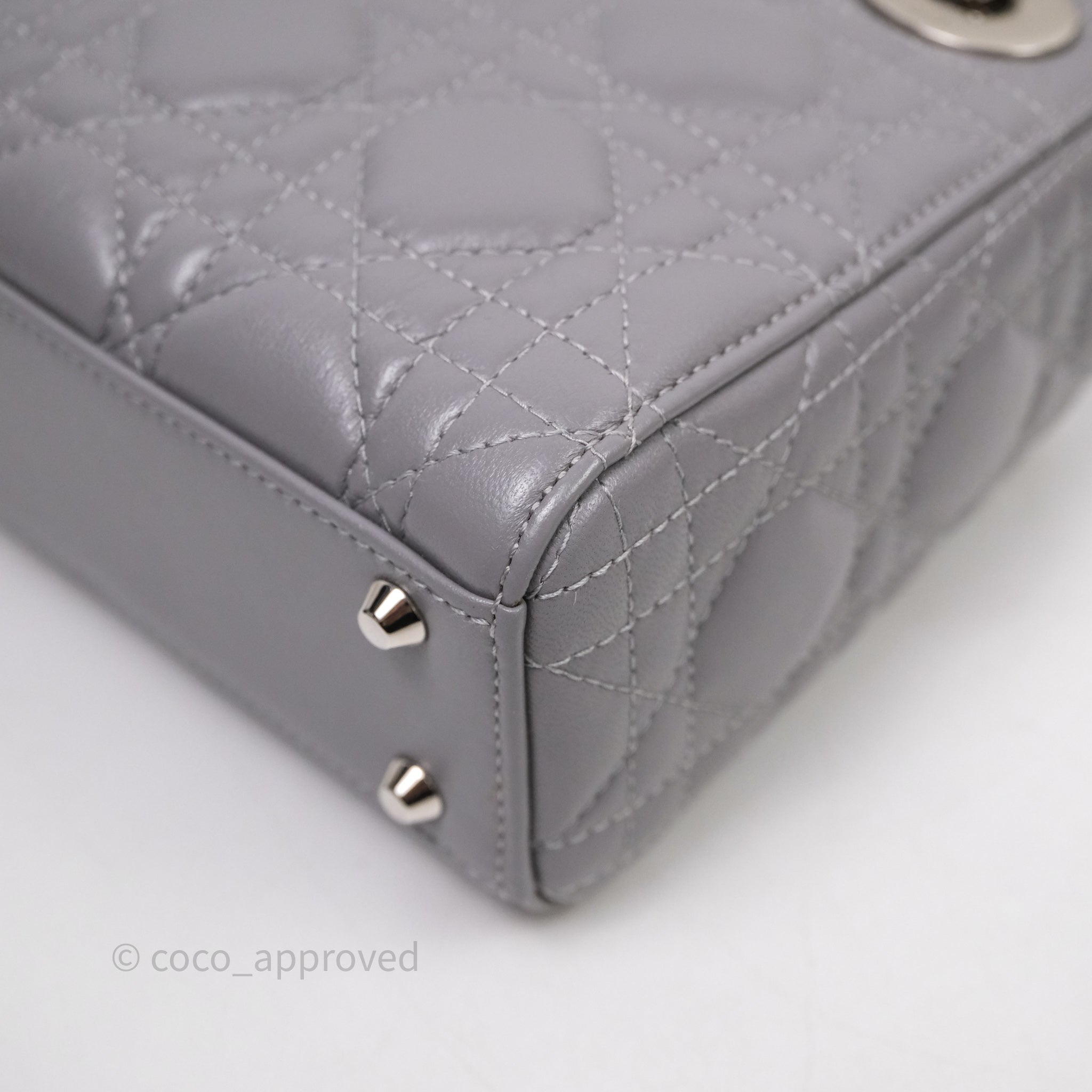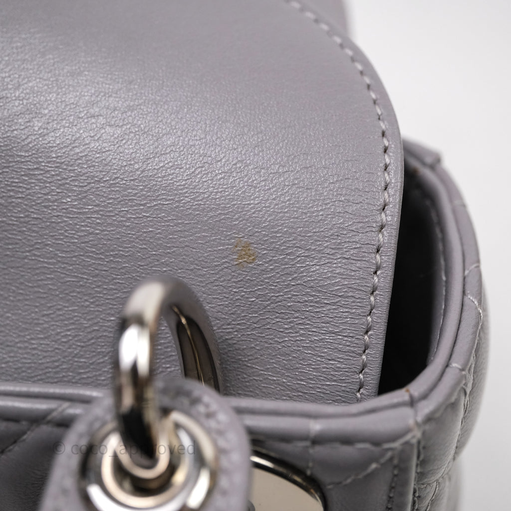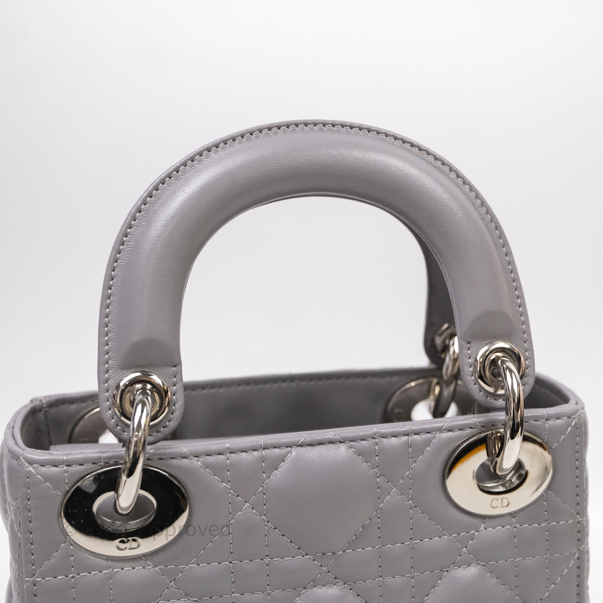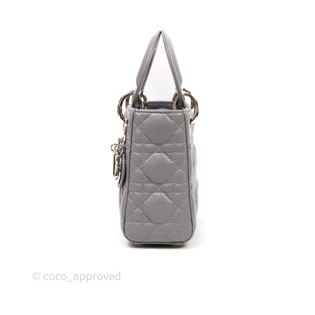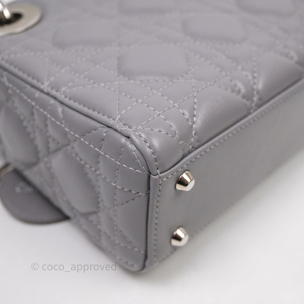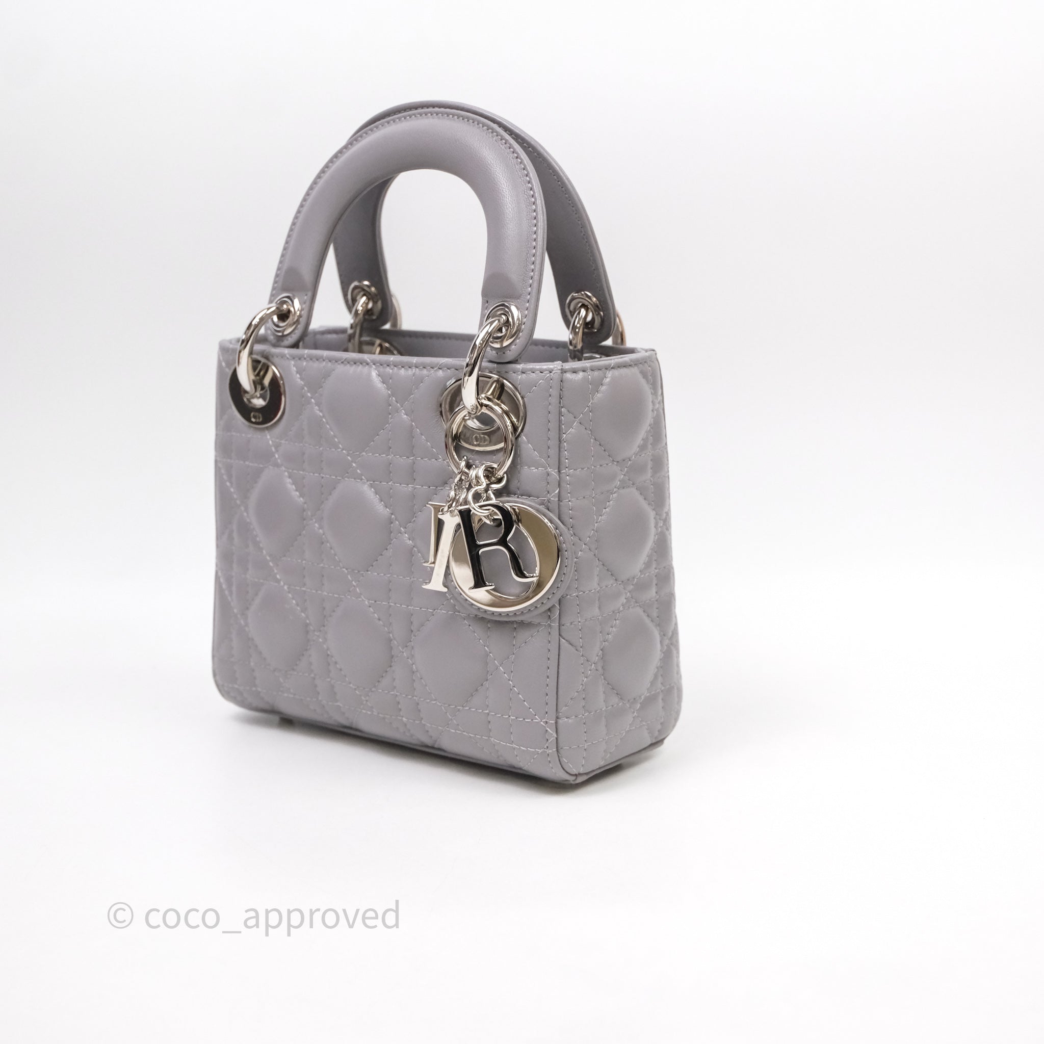 Christian Dior Mini Lady Dior Lambskin Cannage Grey Silver Hardware