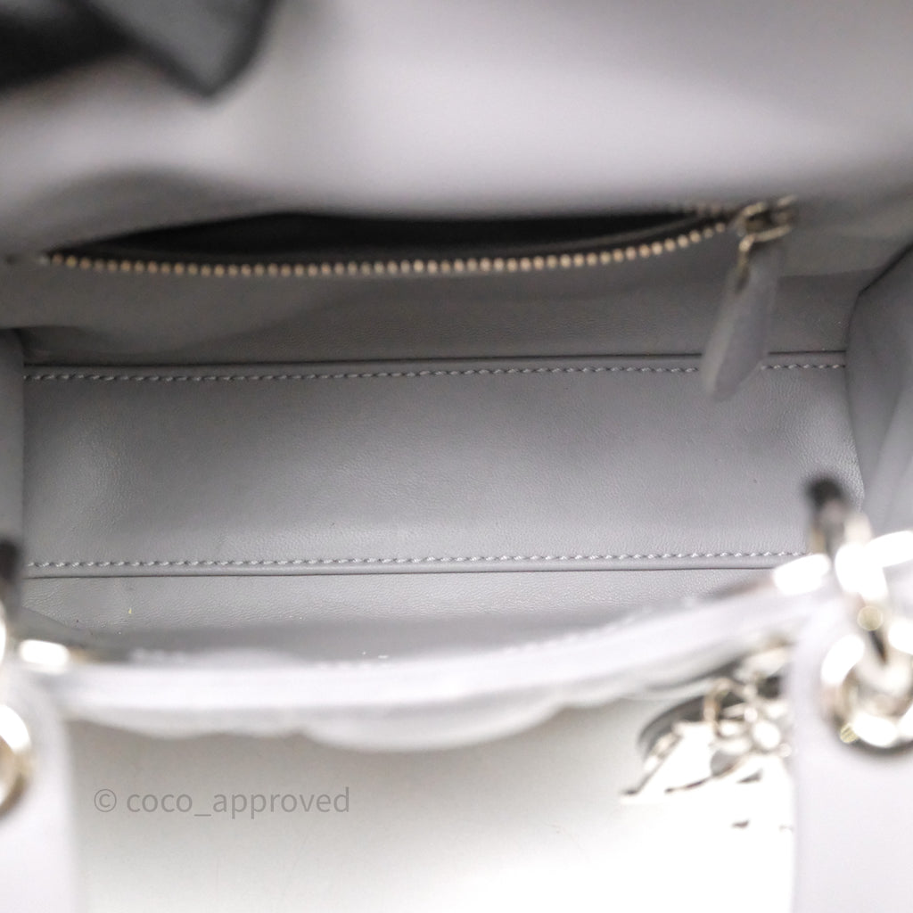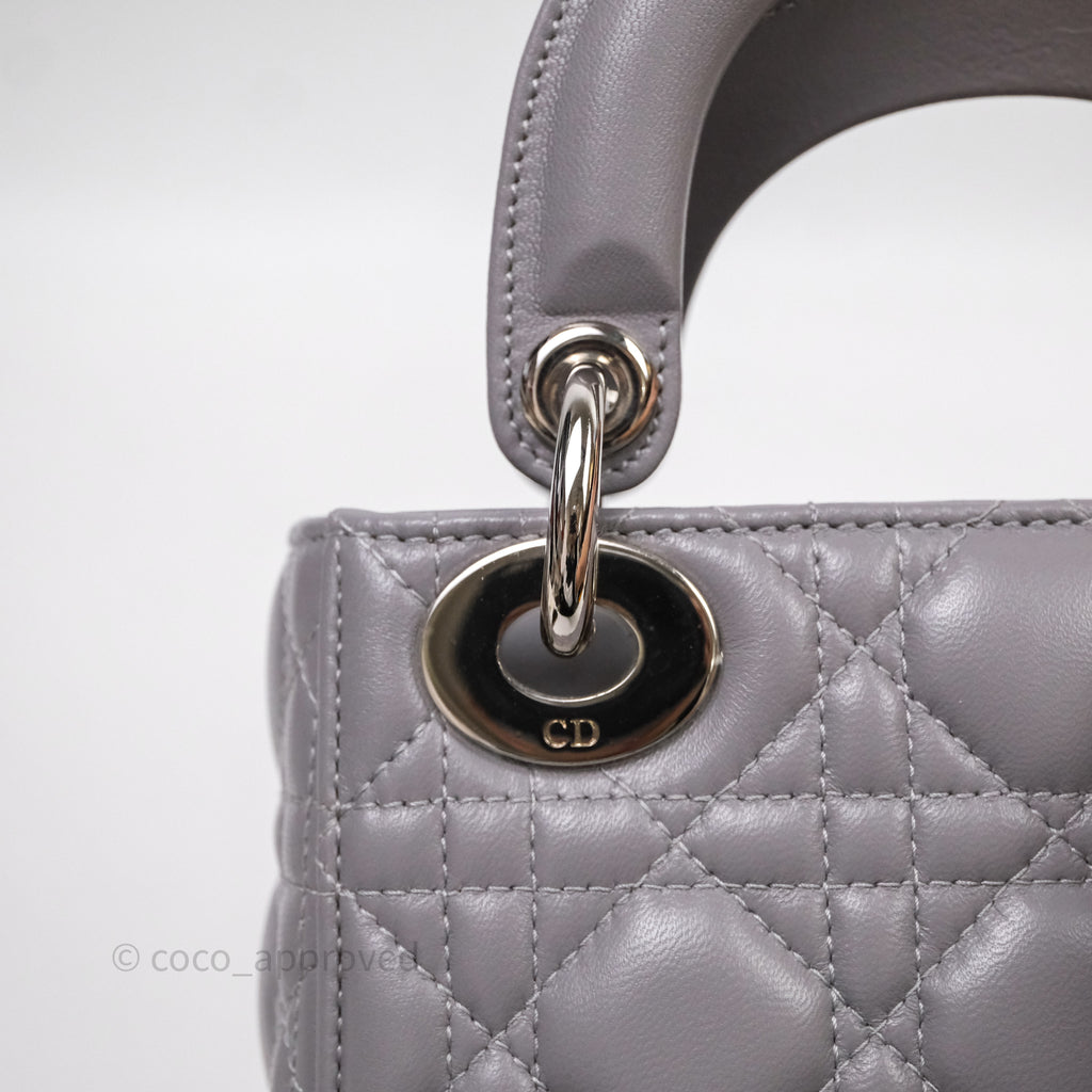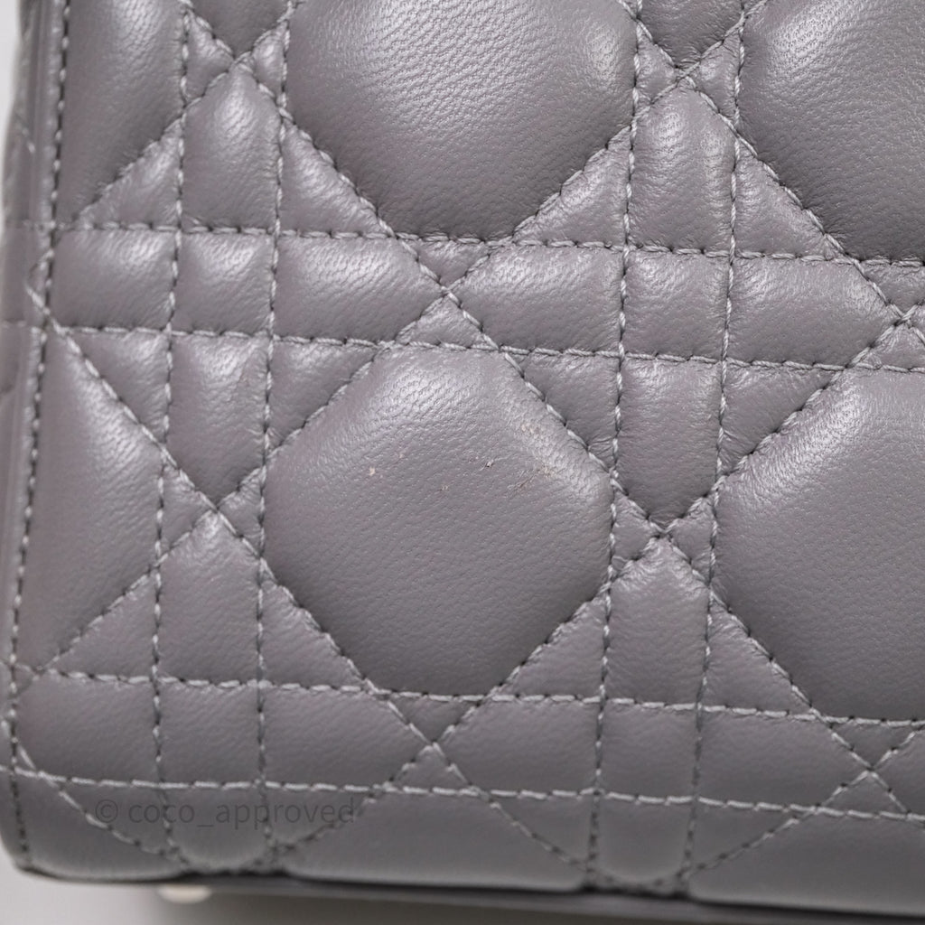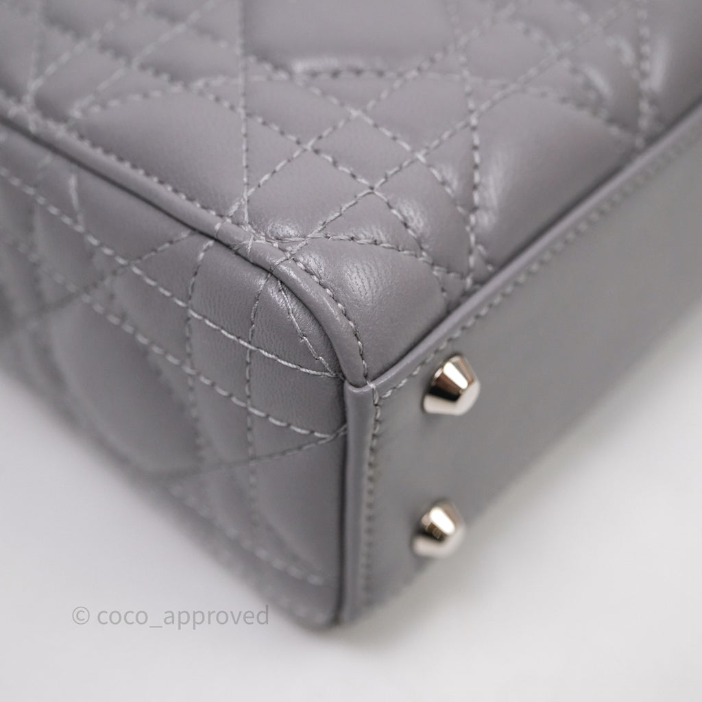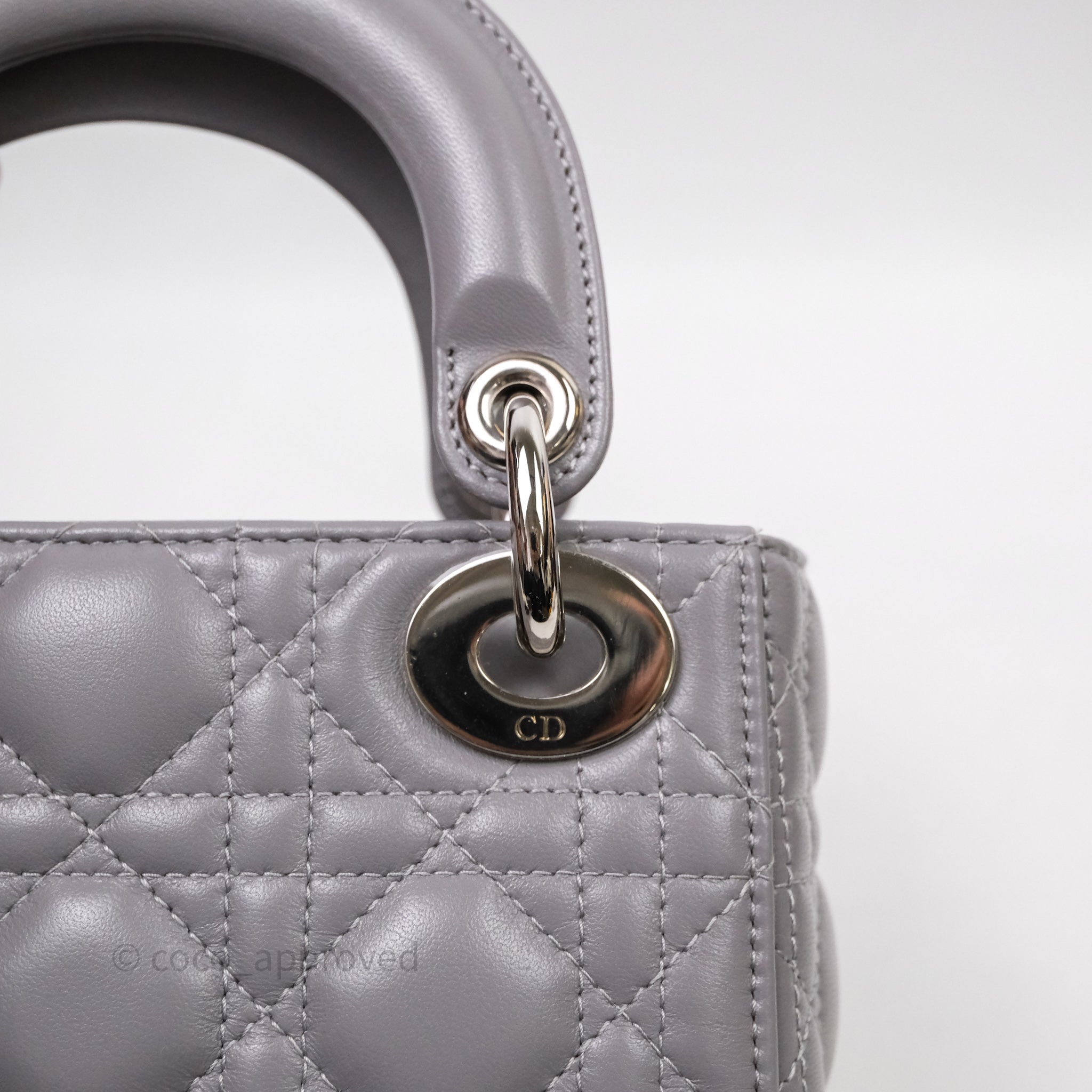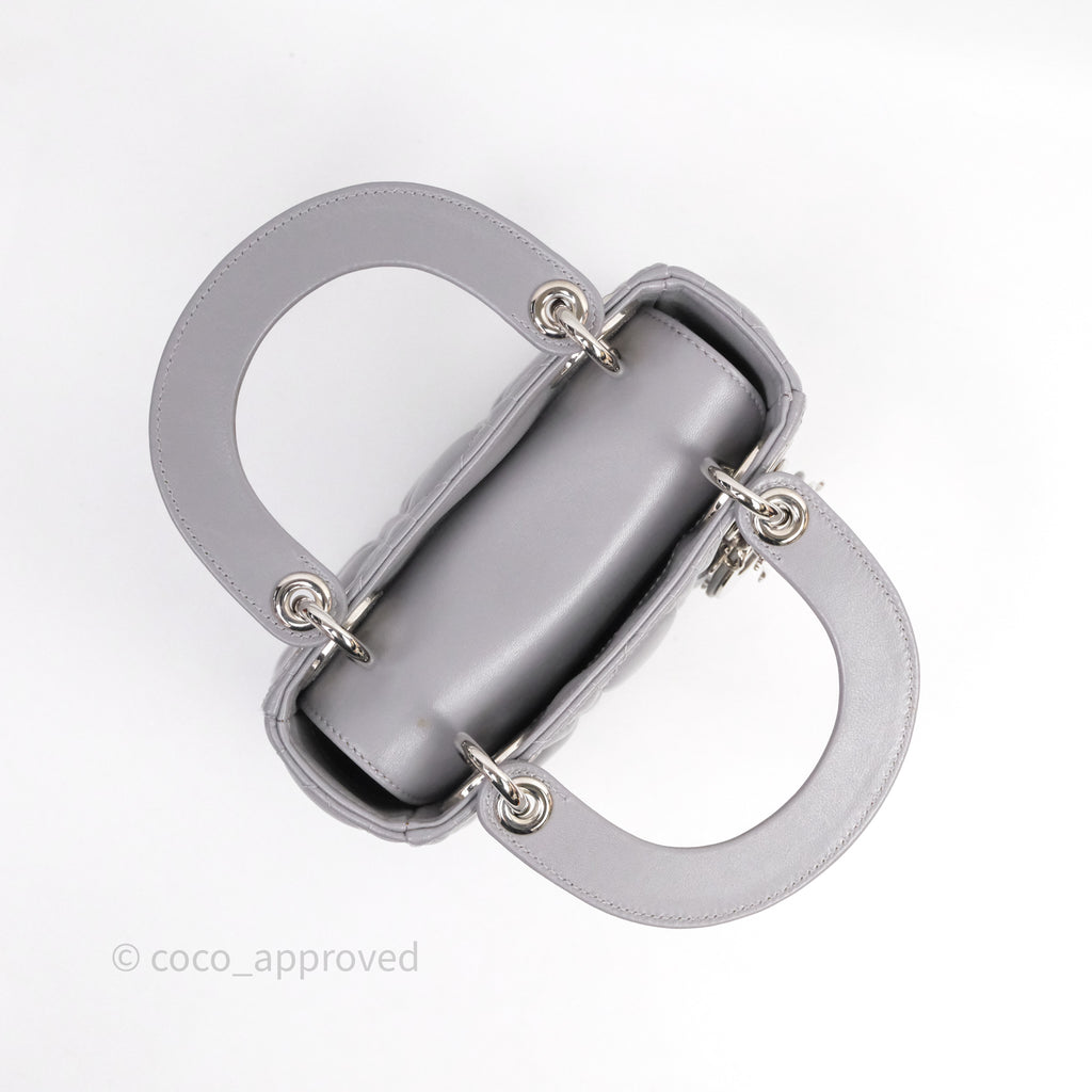 Christian Dior Mini Lady Dior Lambskin Cannage Grey Silver Hardware