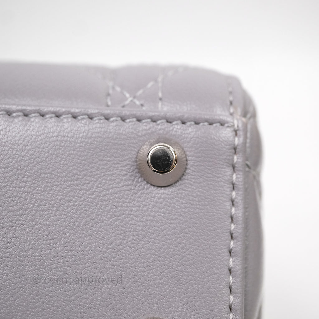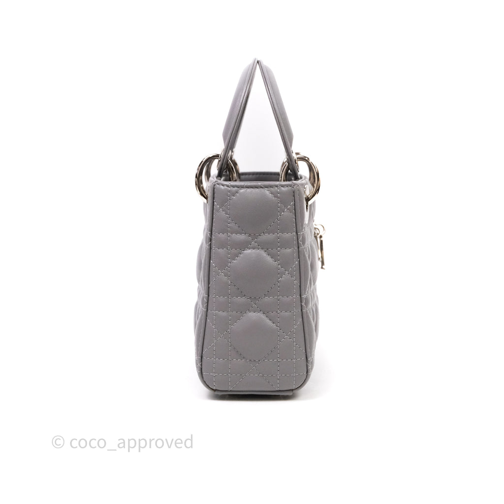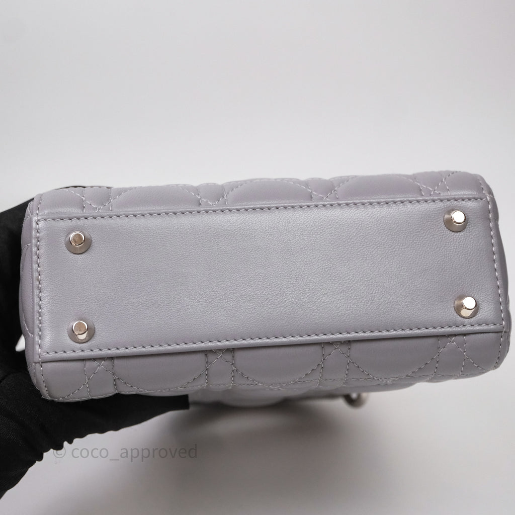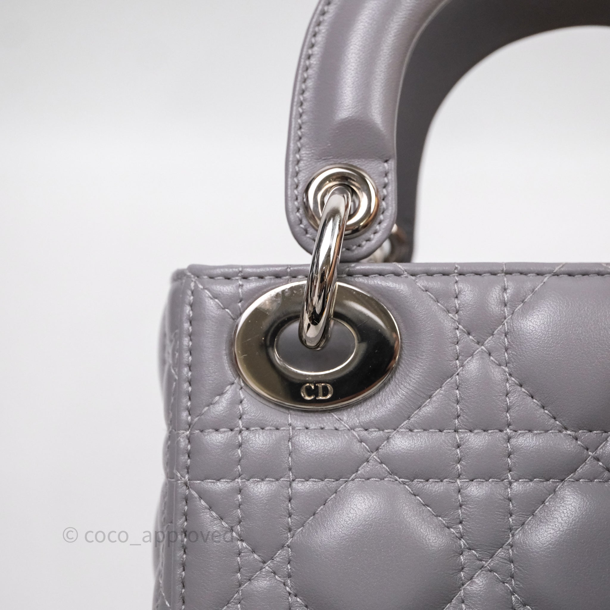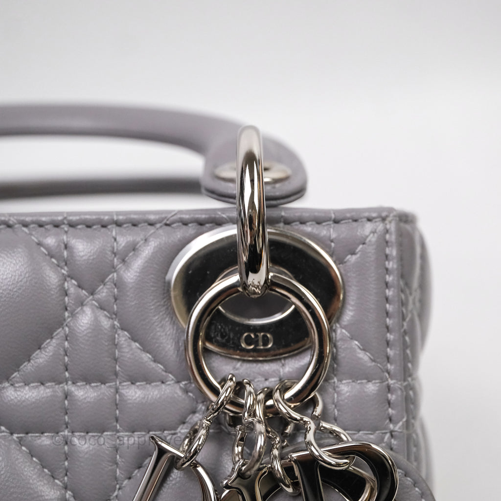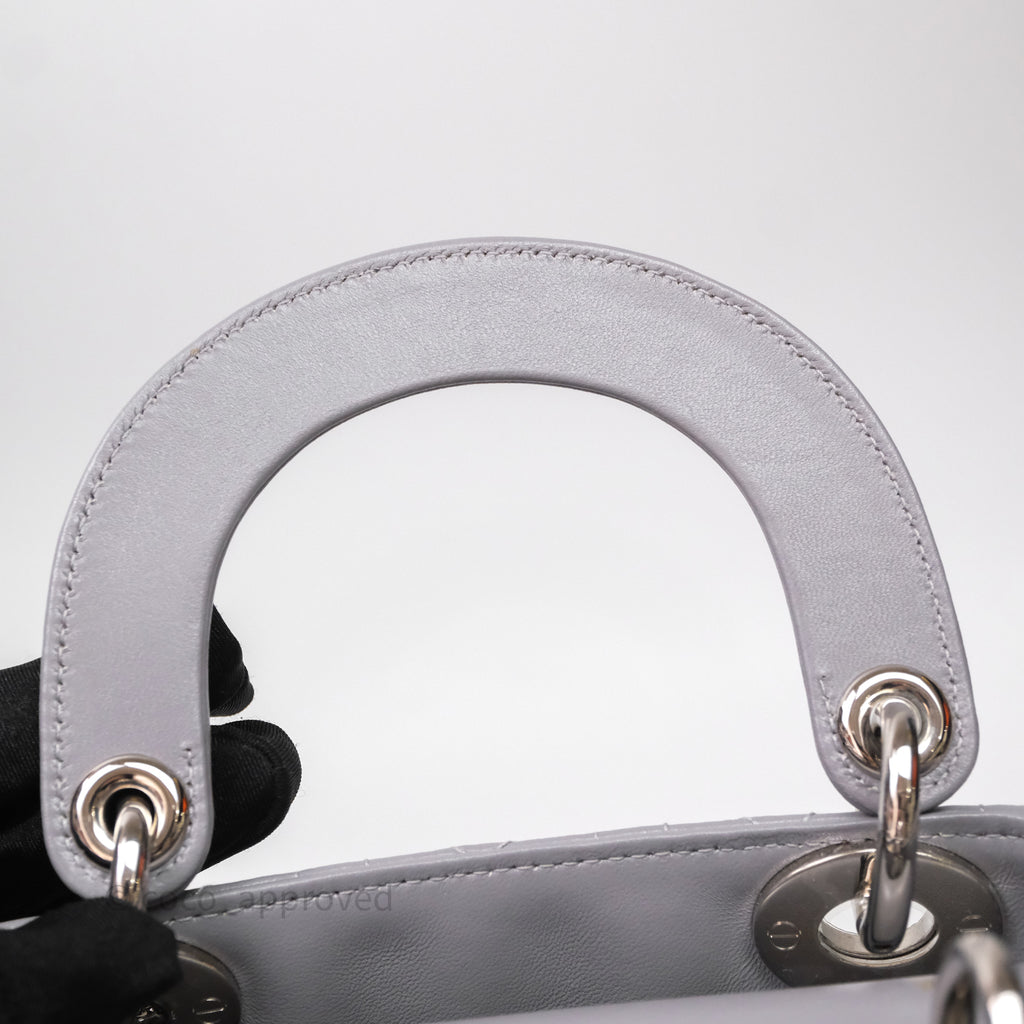 Christian Dior Mini Lady Dior Lambskin Cannage Grey Silver Hardware