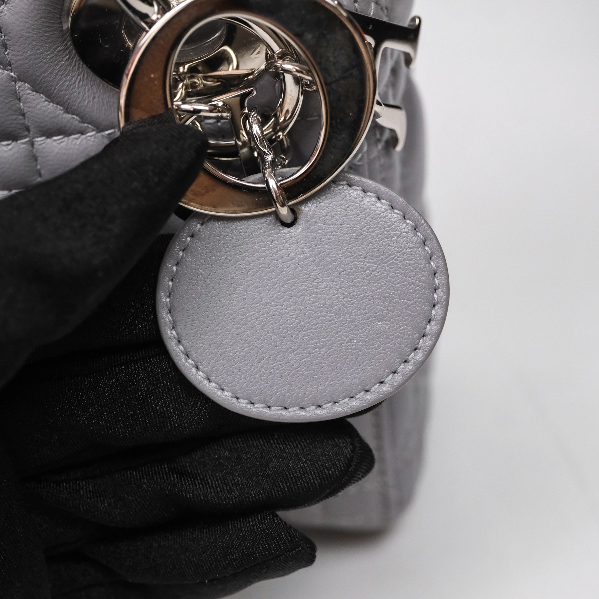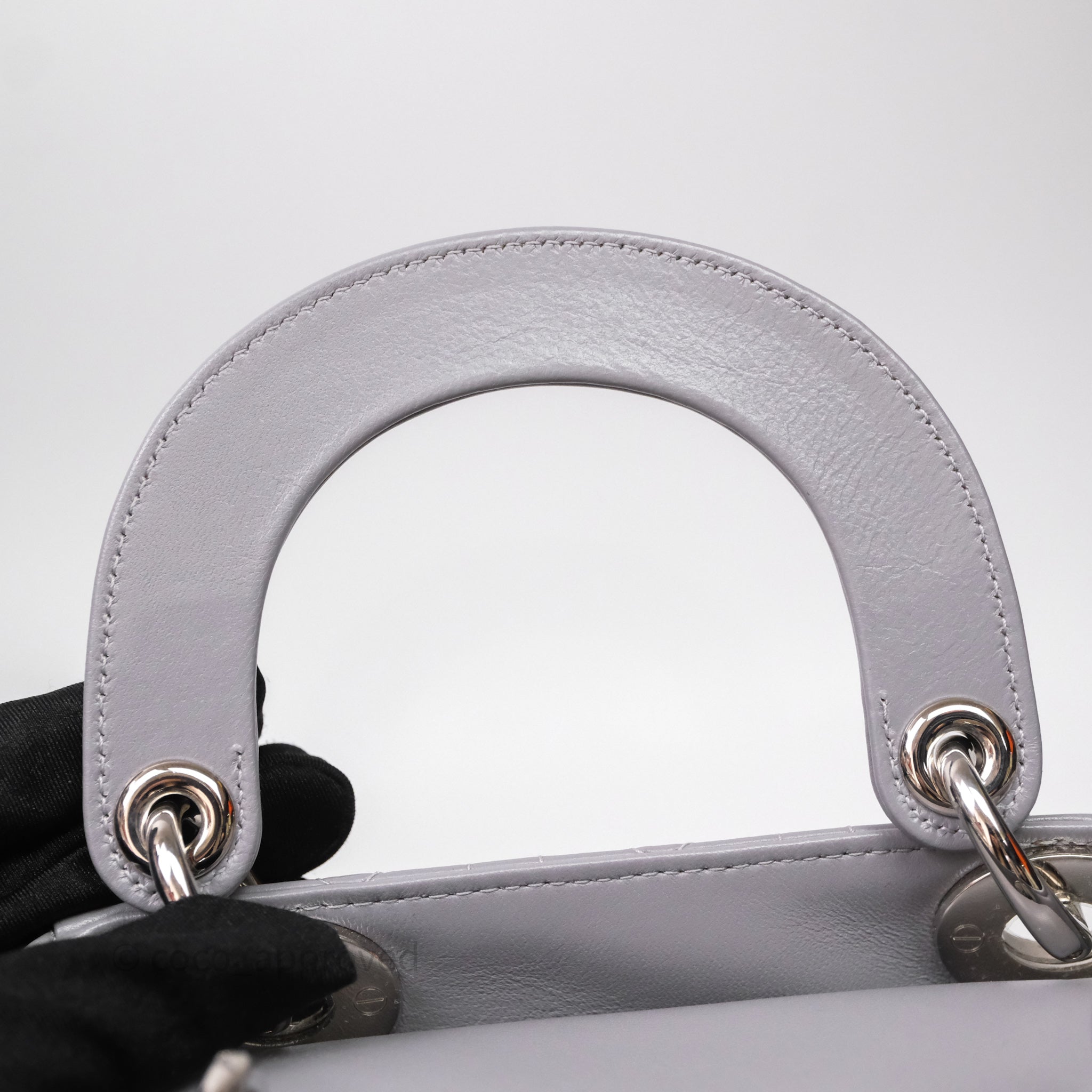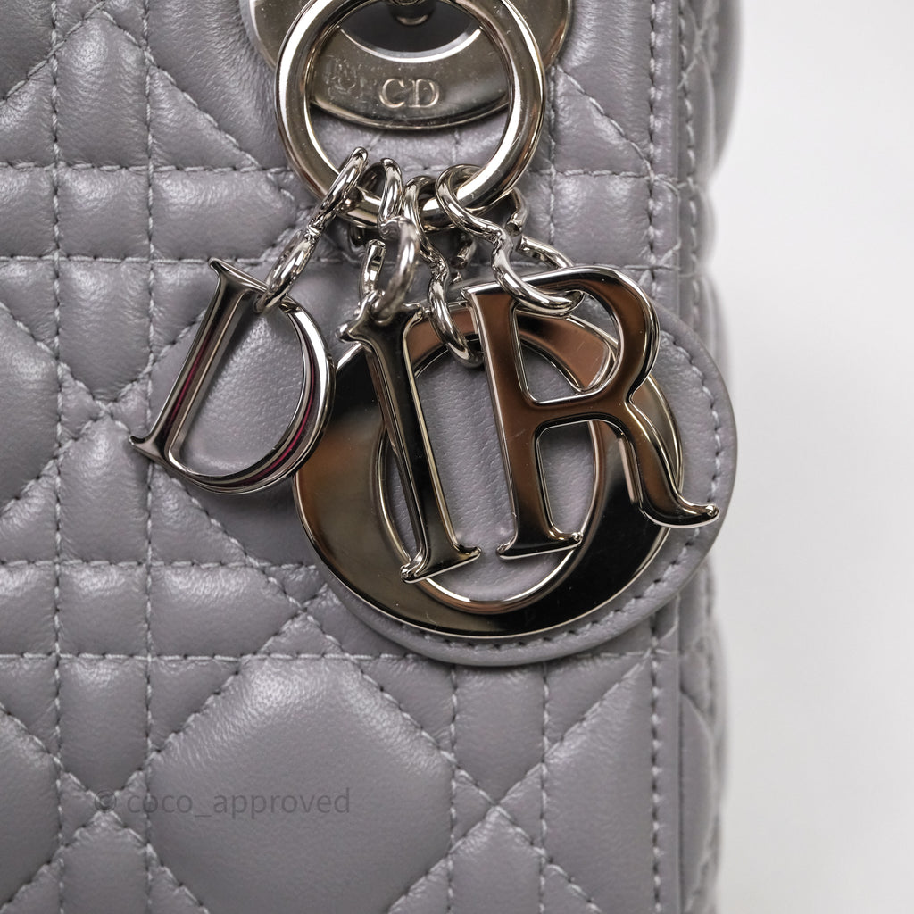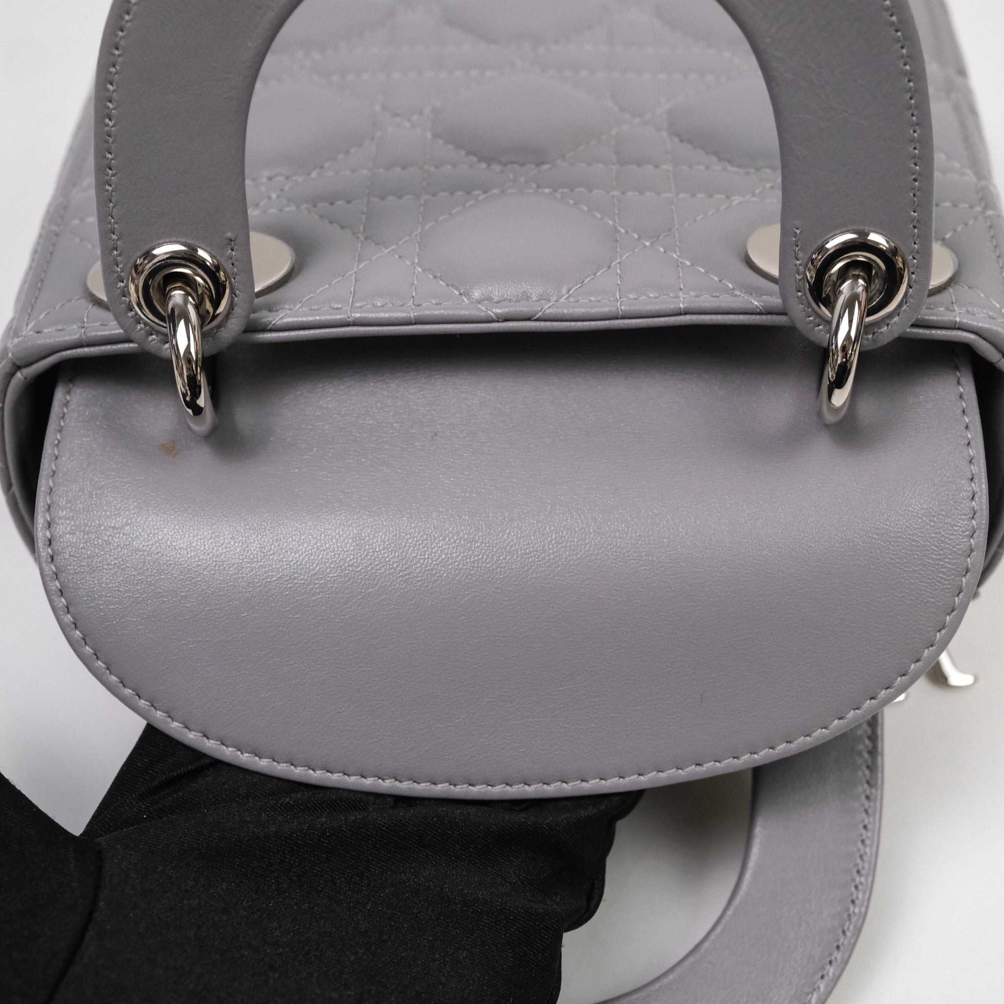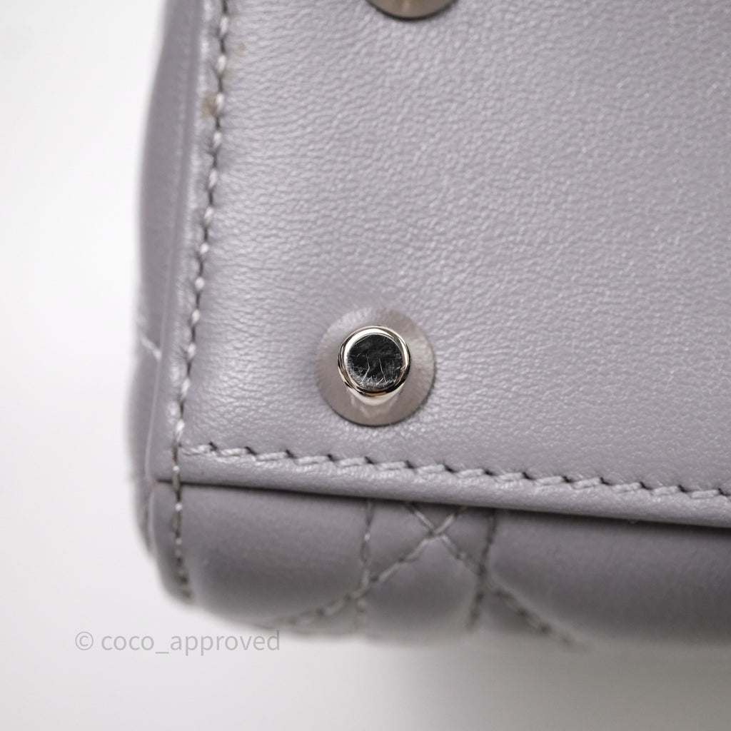 Christian Dior Mini Lady Dior Lambskin Cannage Grey Silver Hardware