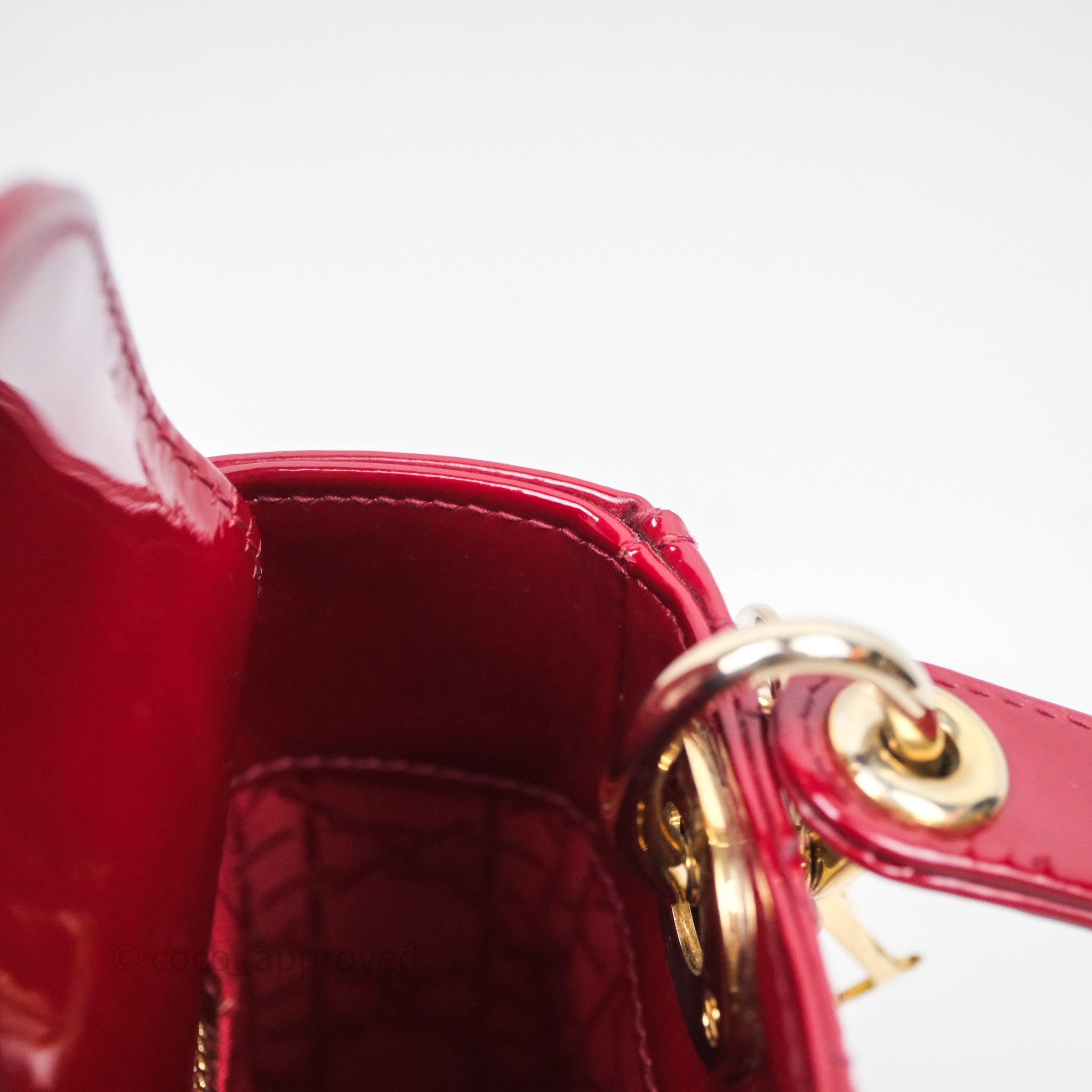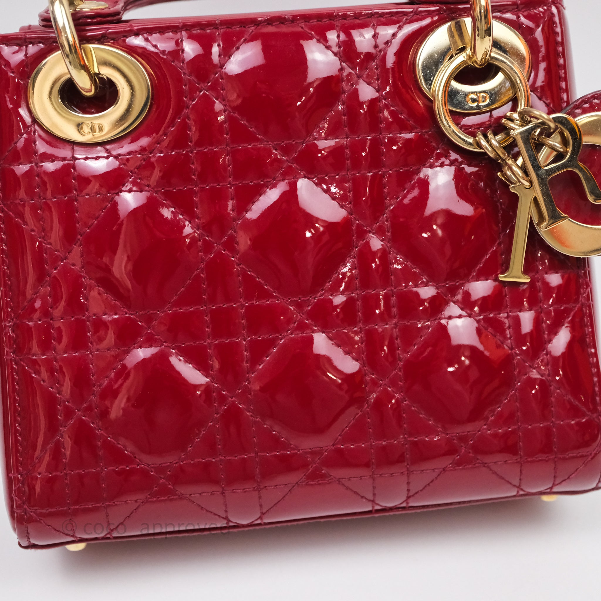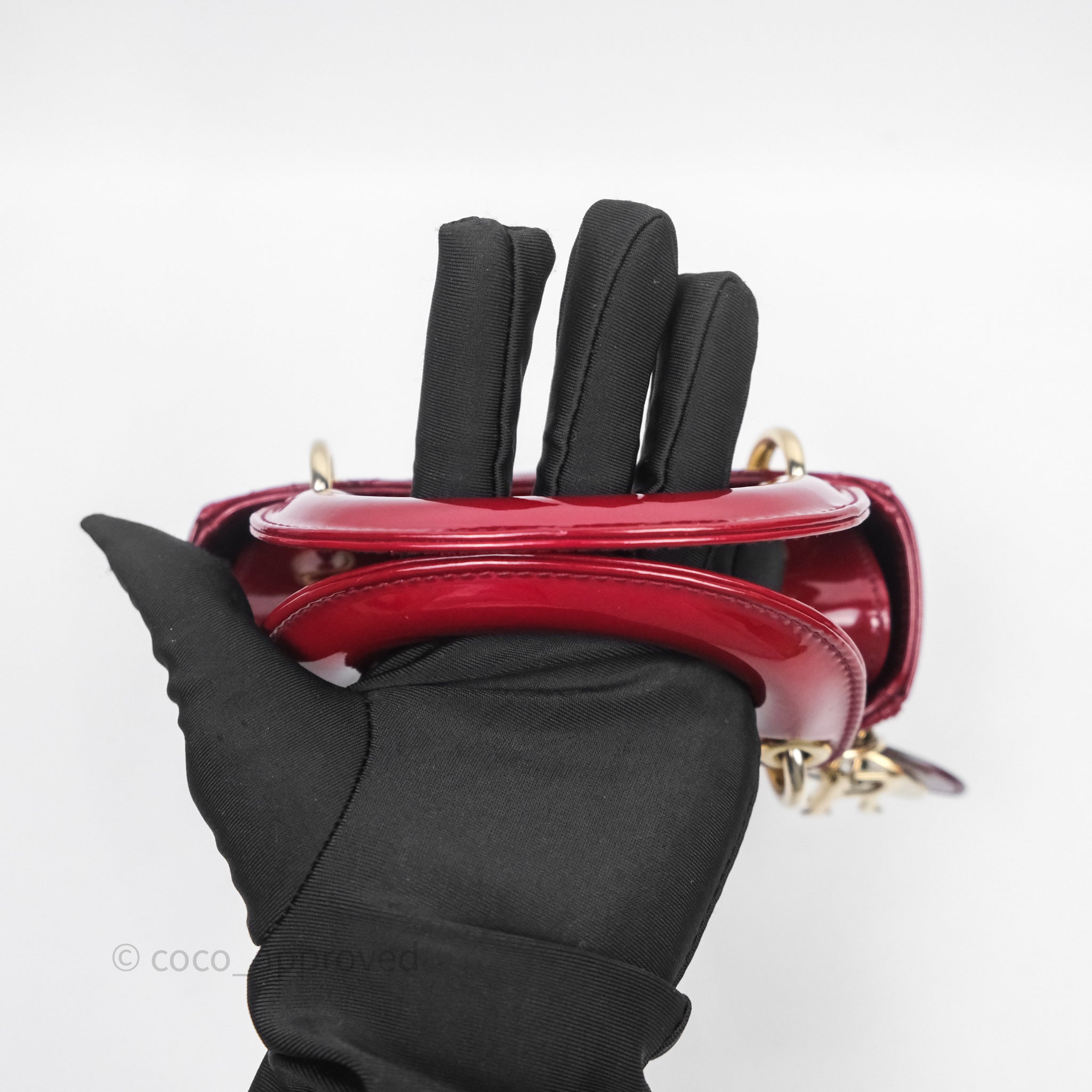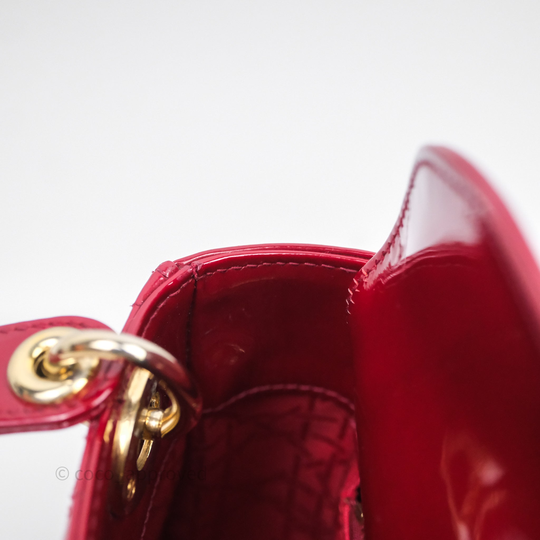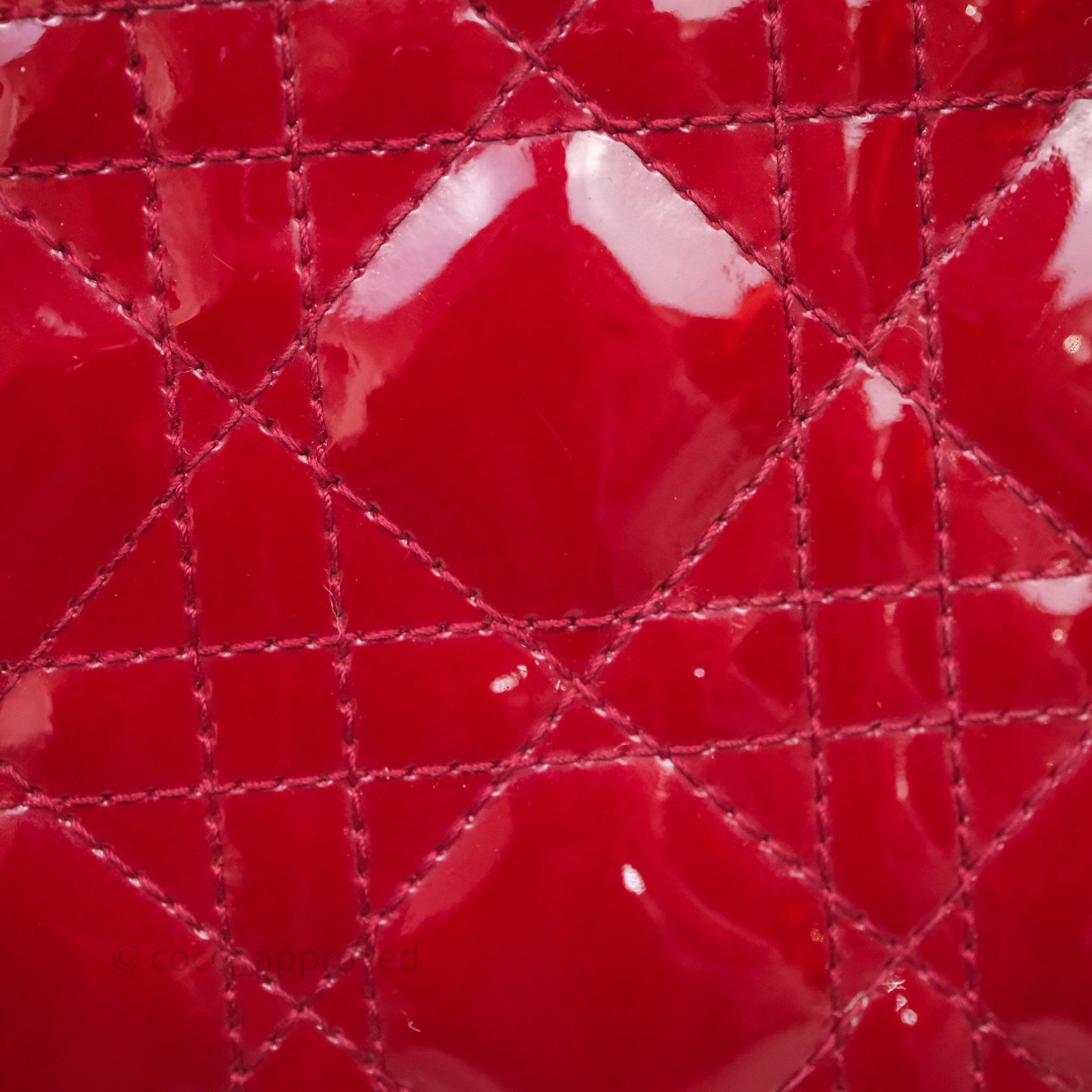Christian Dior Mini Lady Dior Red Patent Cannage Gold Hardware