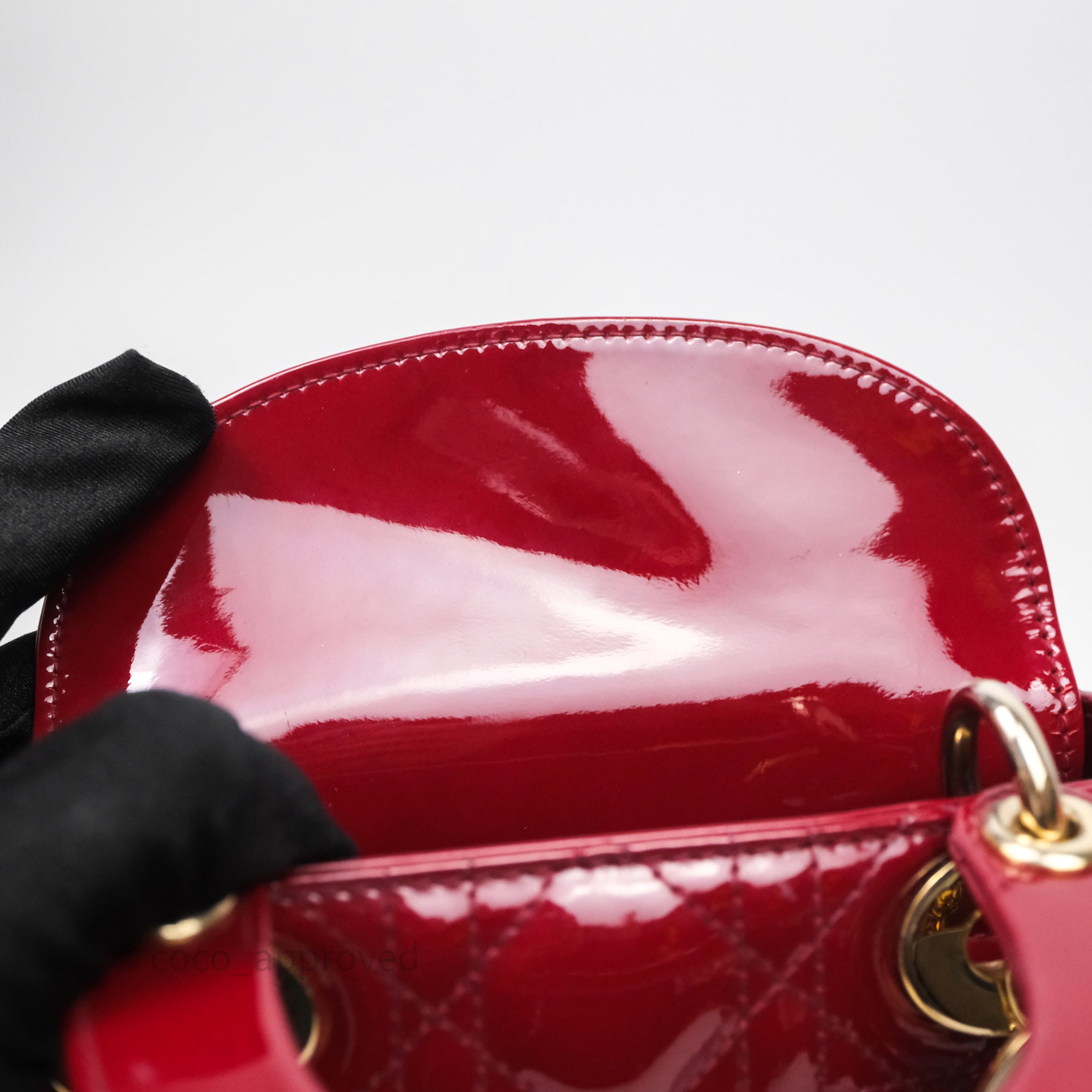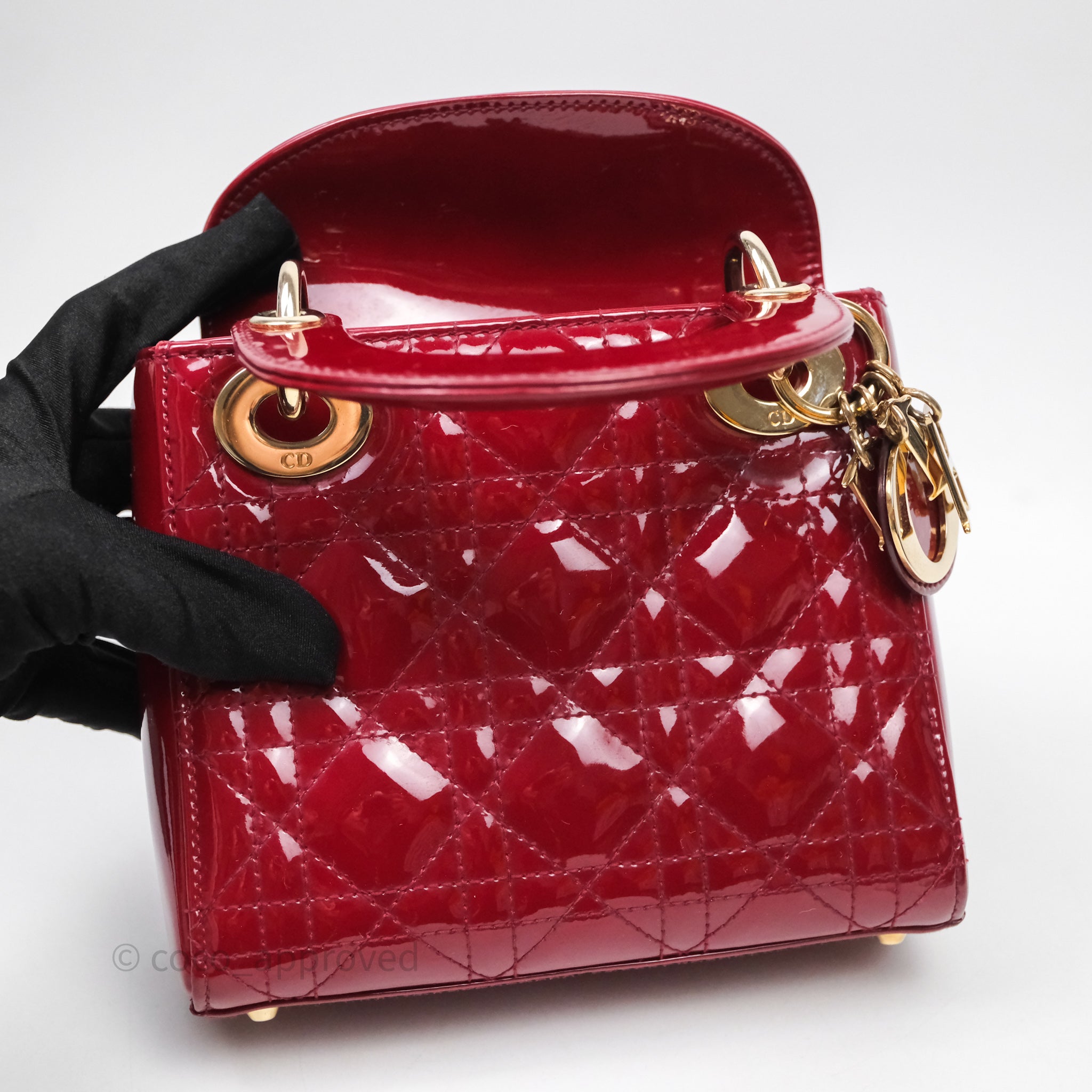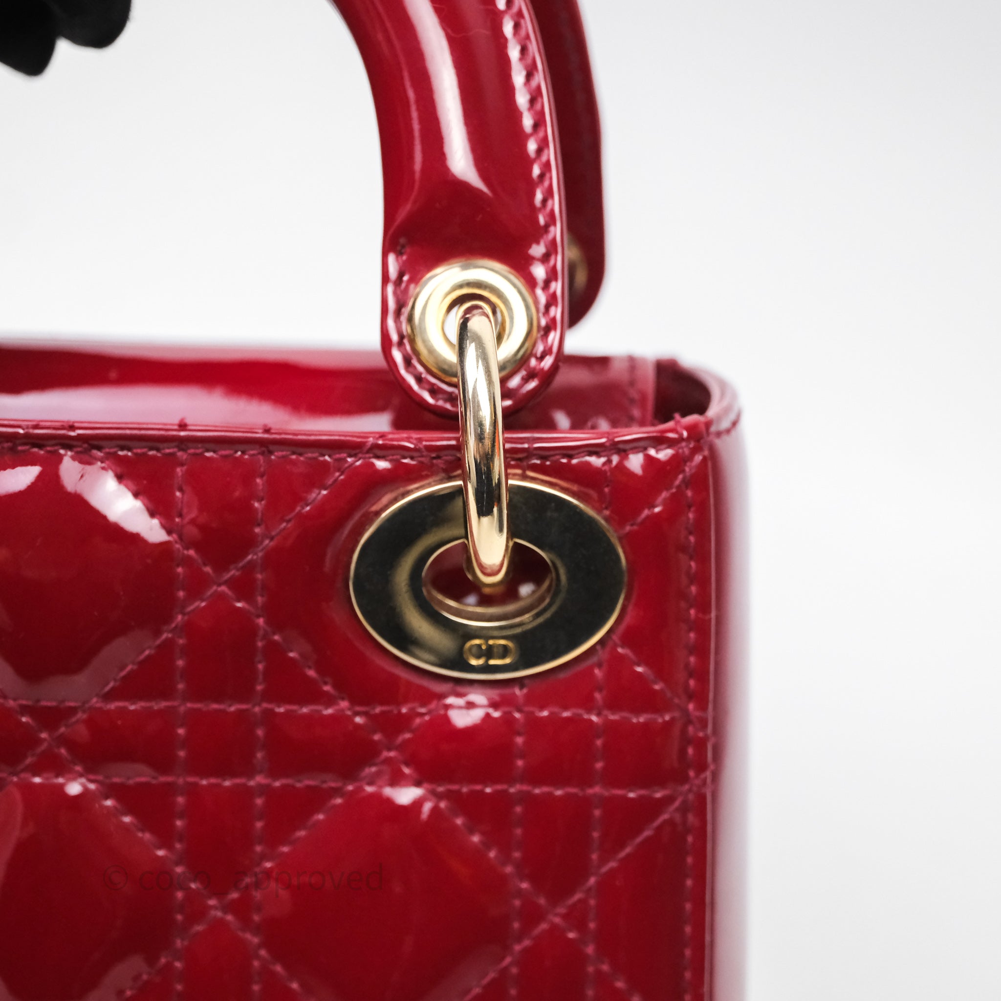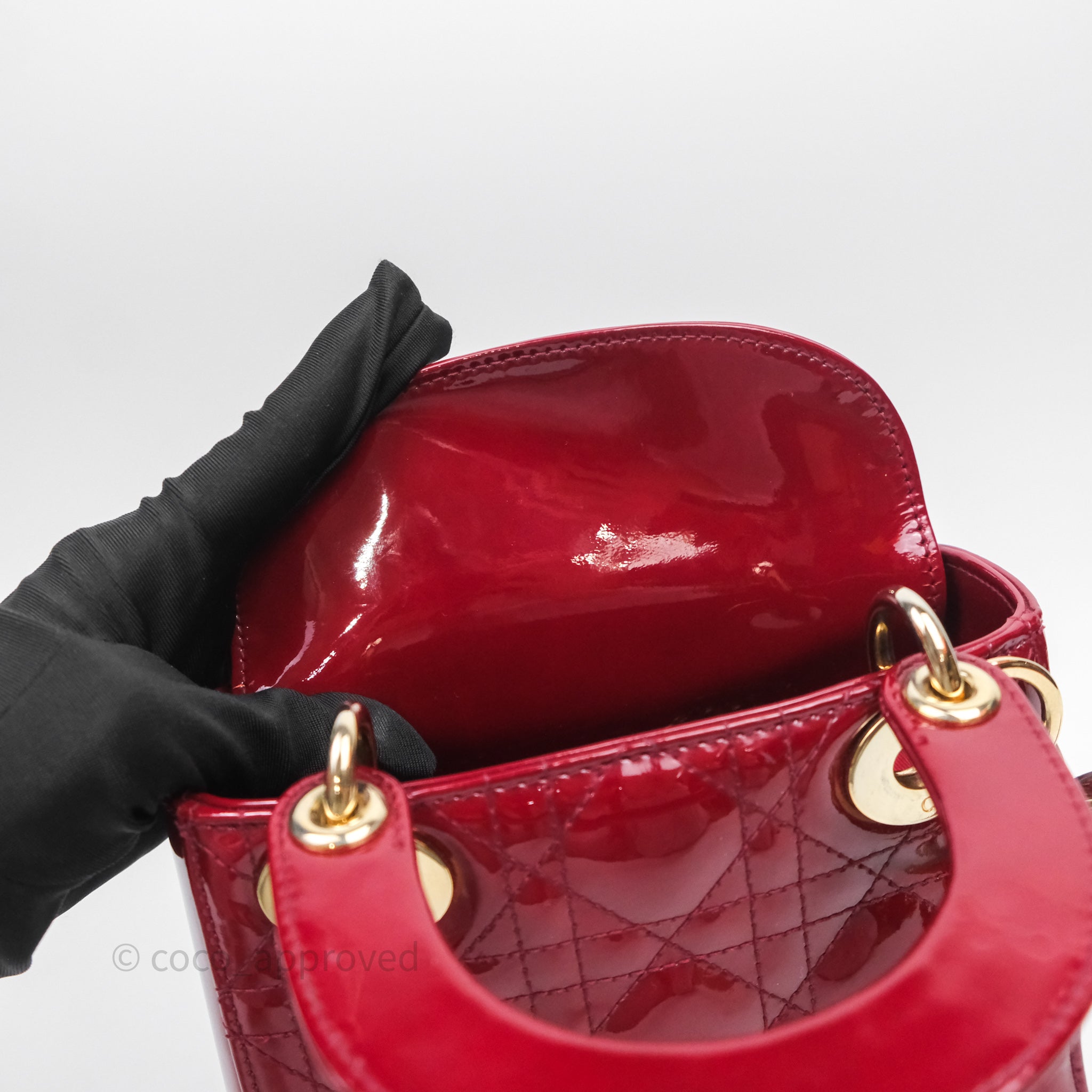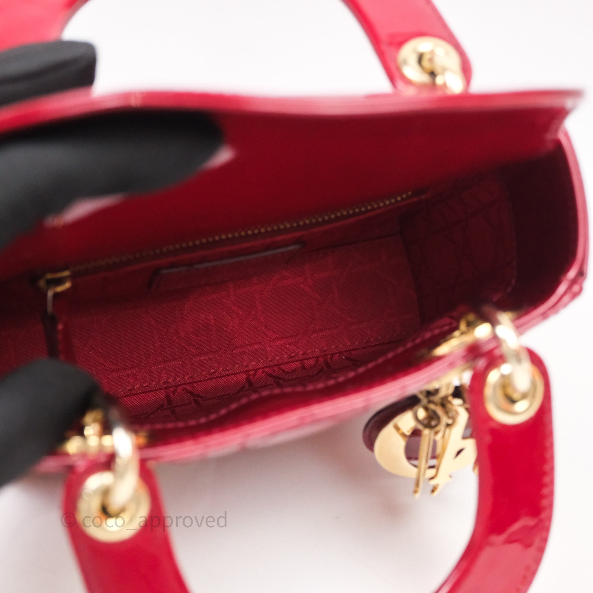 Christian Dior Mini Lady Dior Red Patent Cannage Gold Hardware