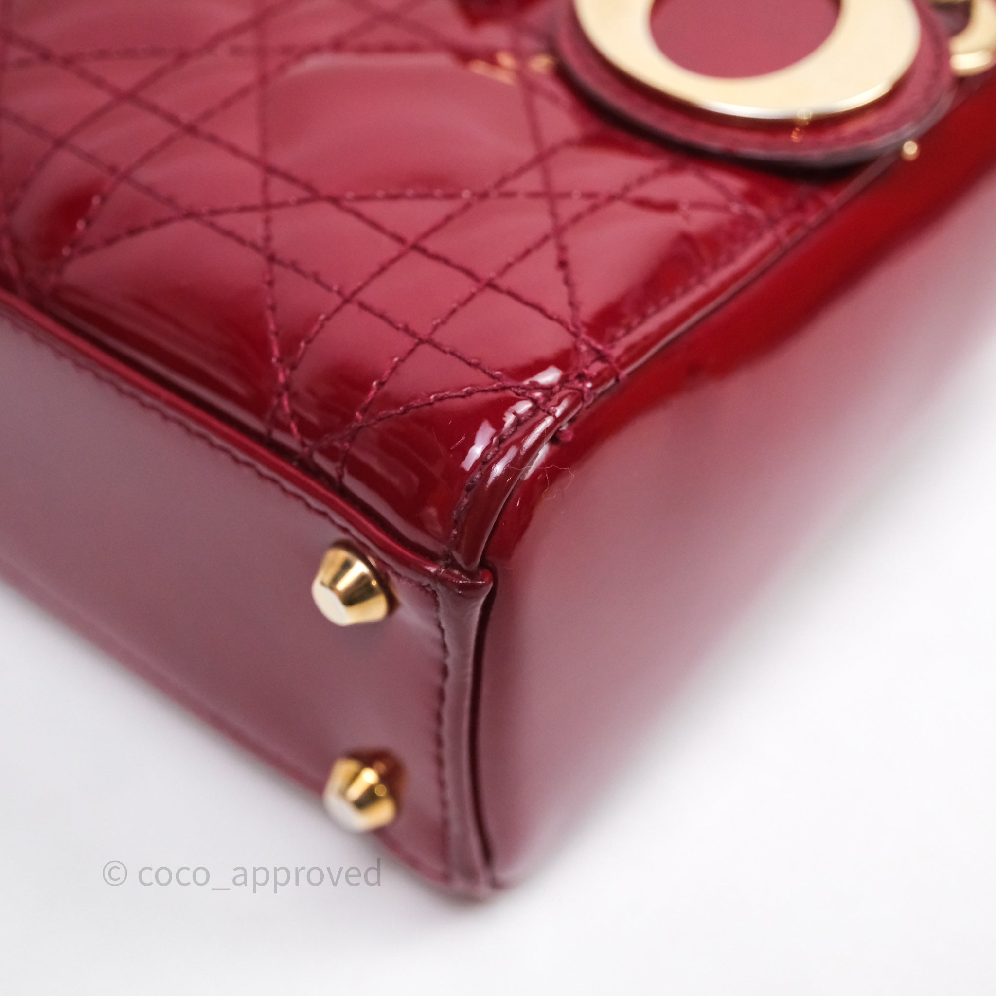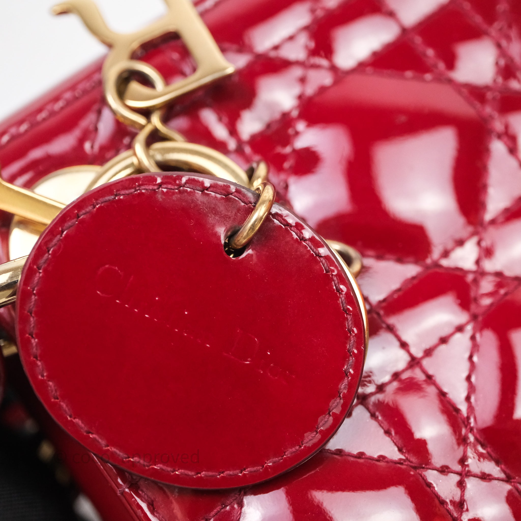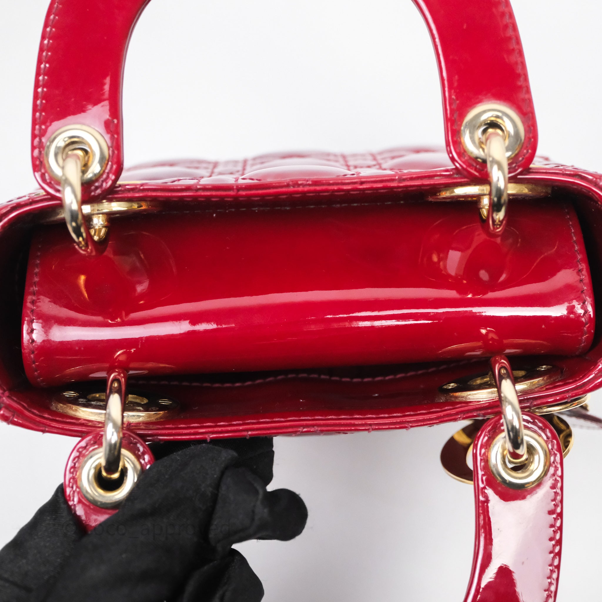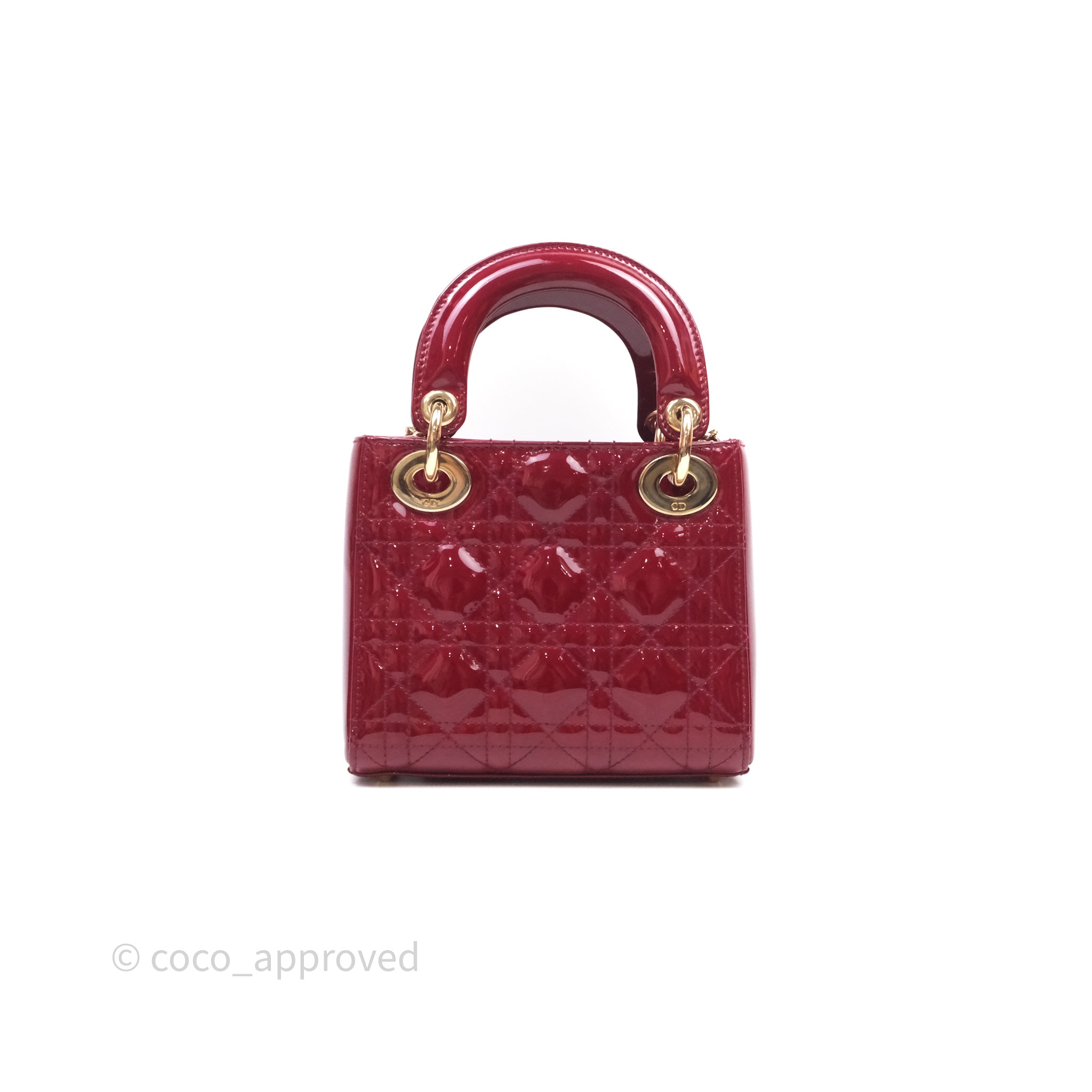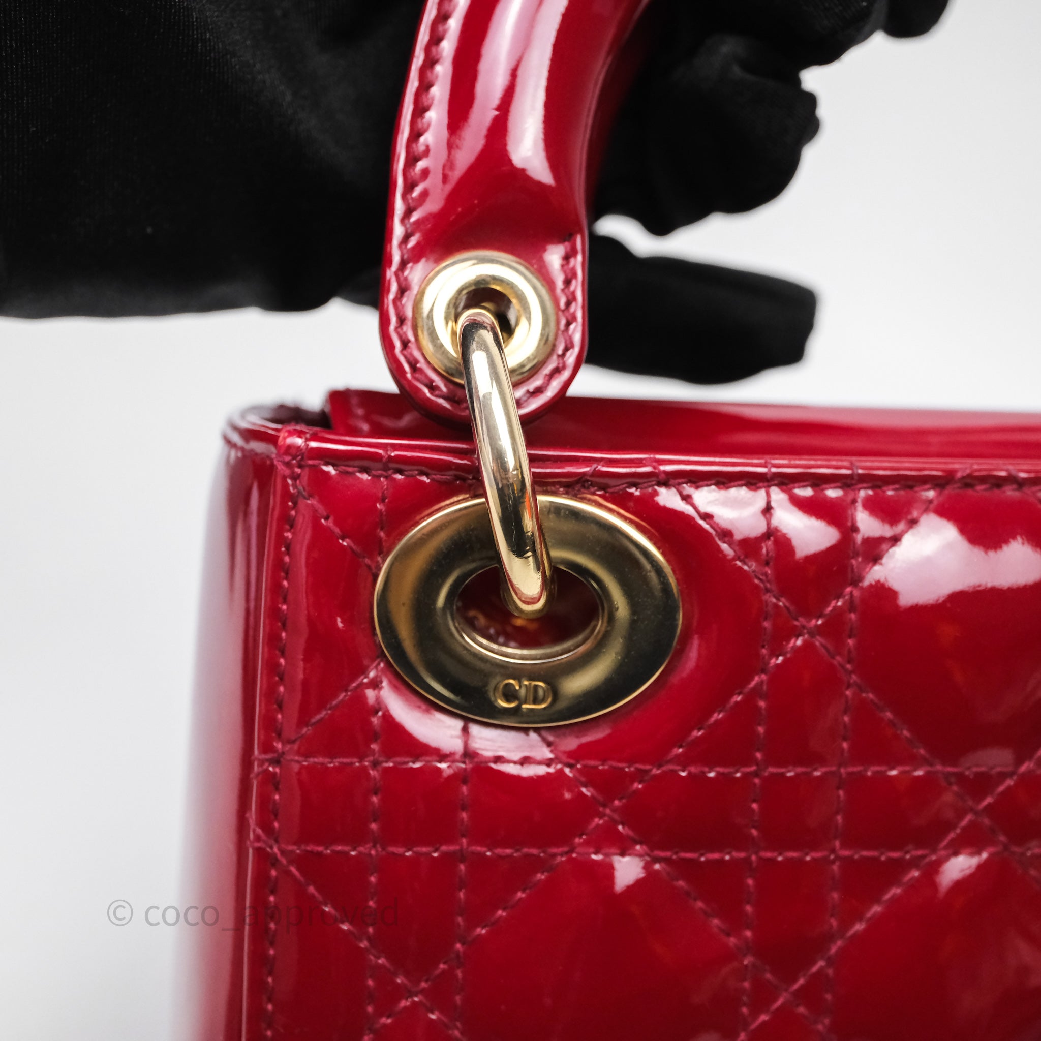 Christian Dior Mini Lady Dior Red Patent Cannage Gold Hardware