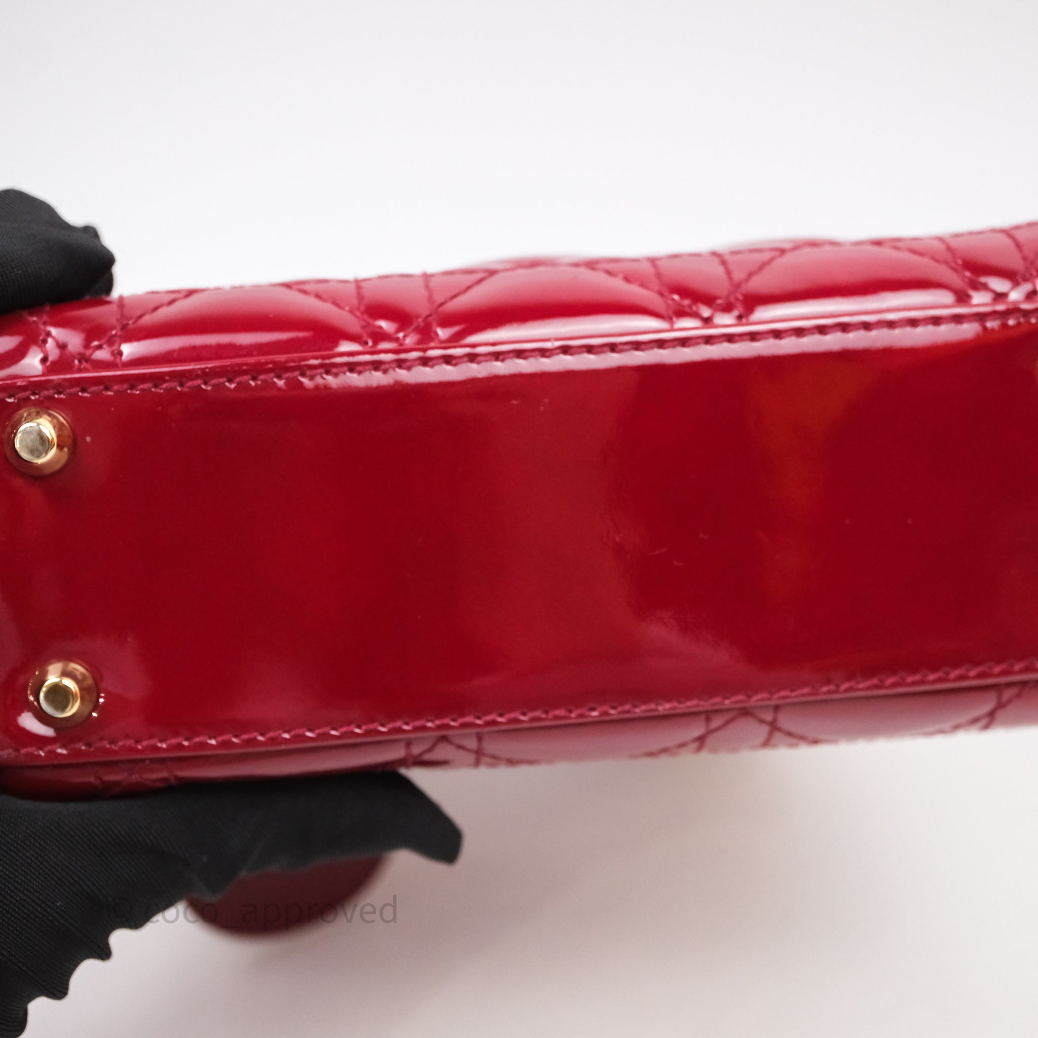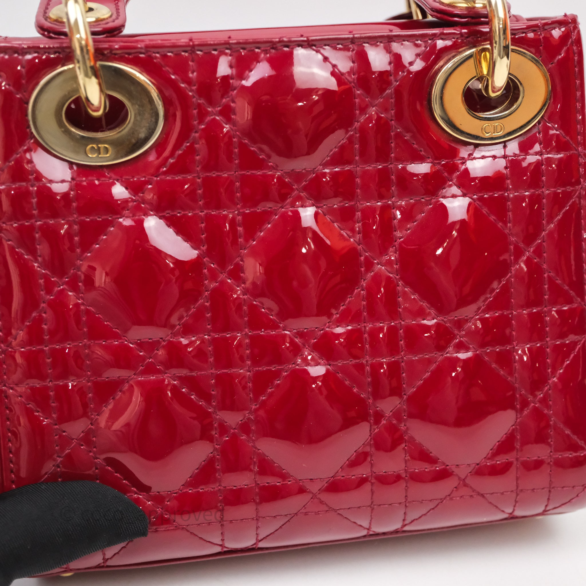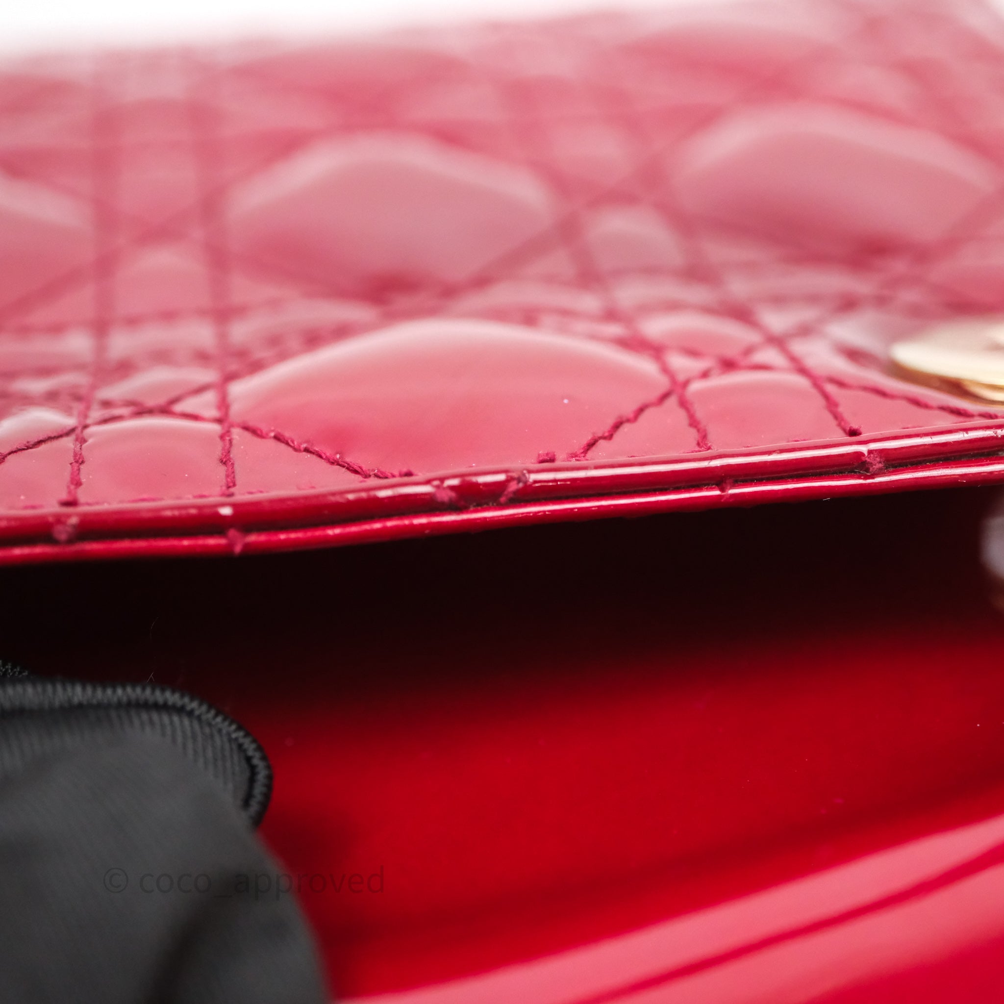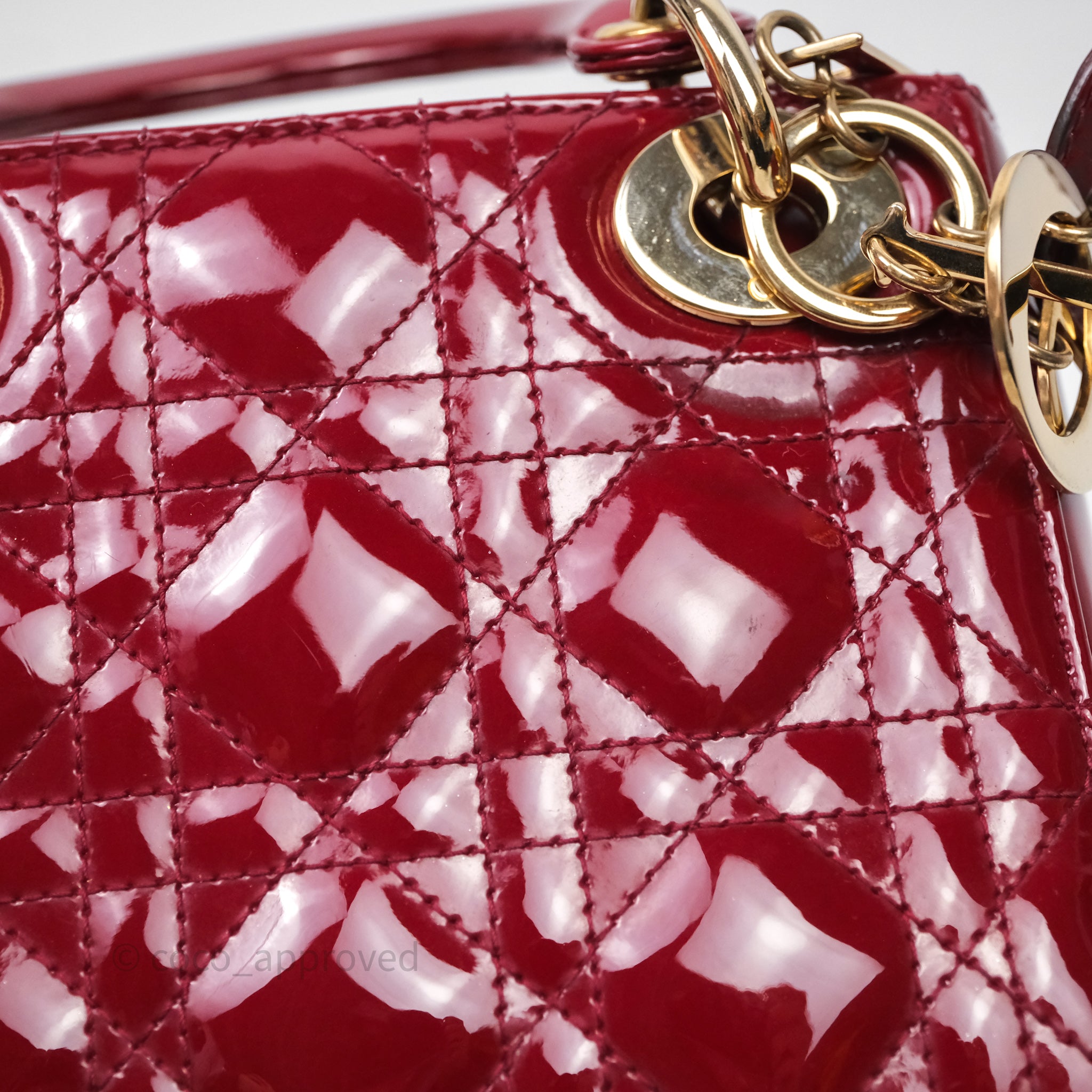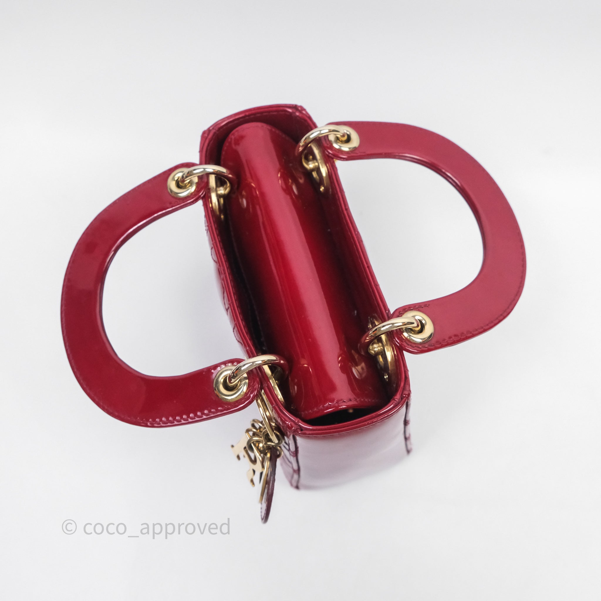 Christian Dior Mini Lady Dior Red Patent Cannage Gold Hardware