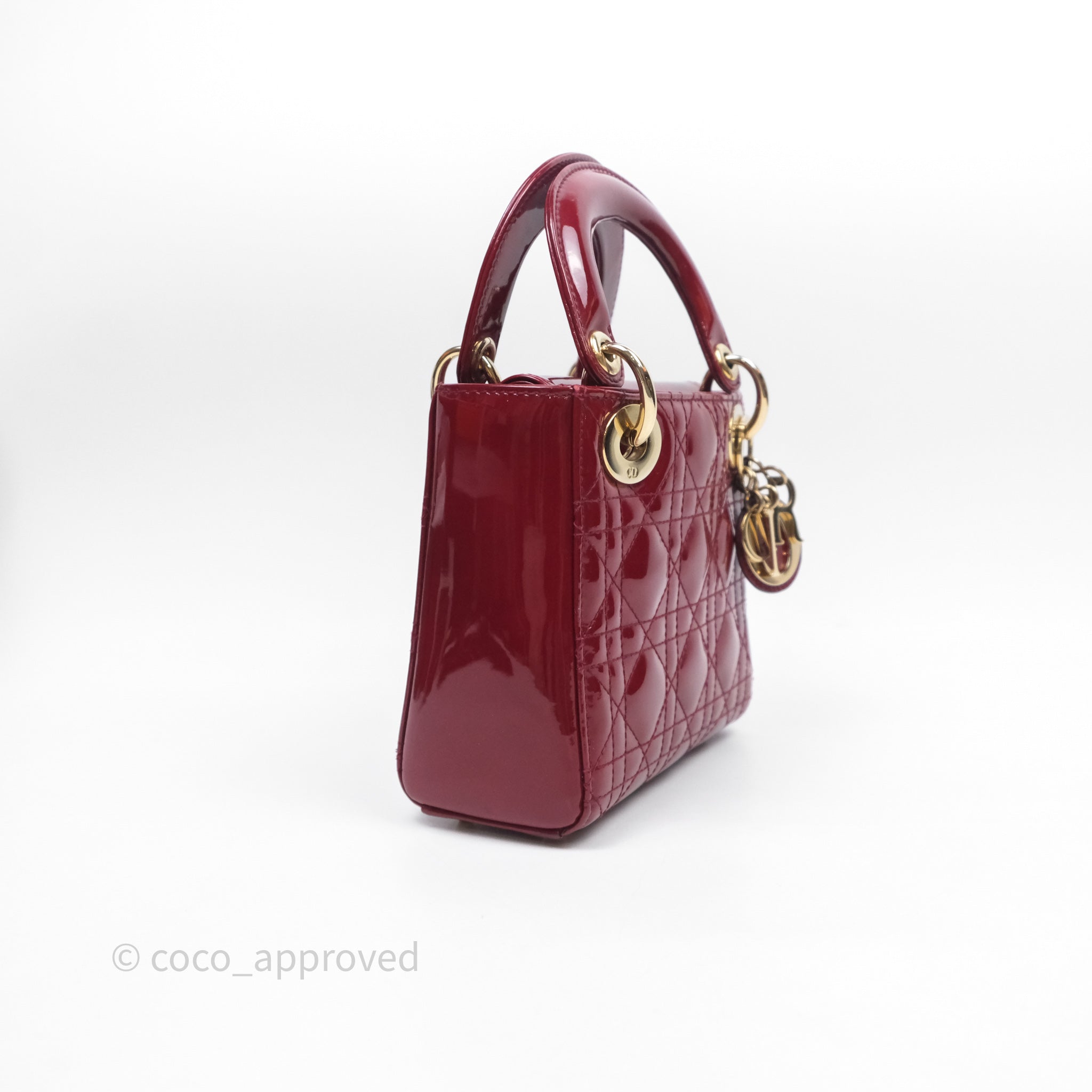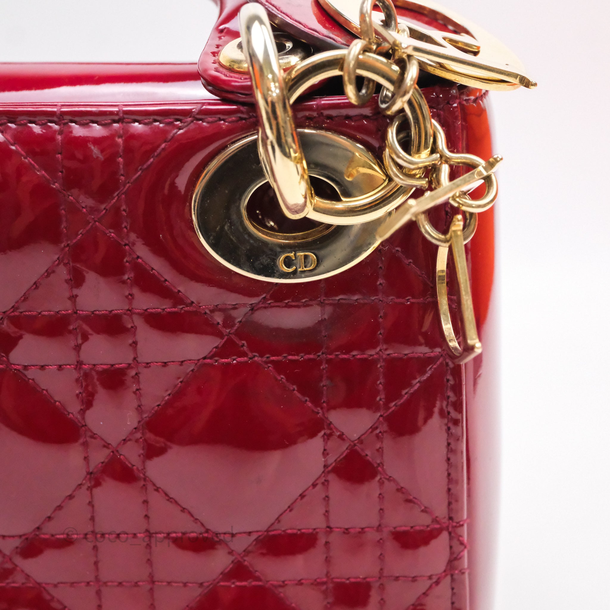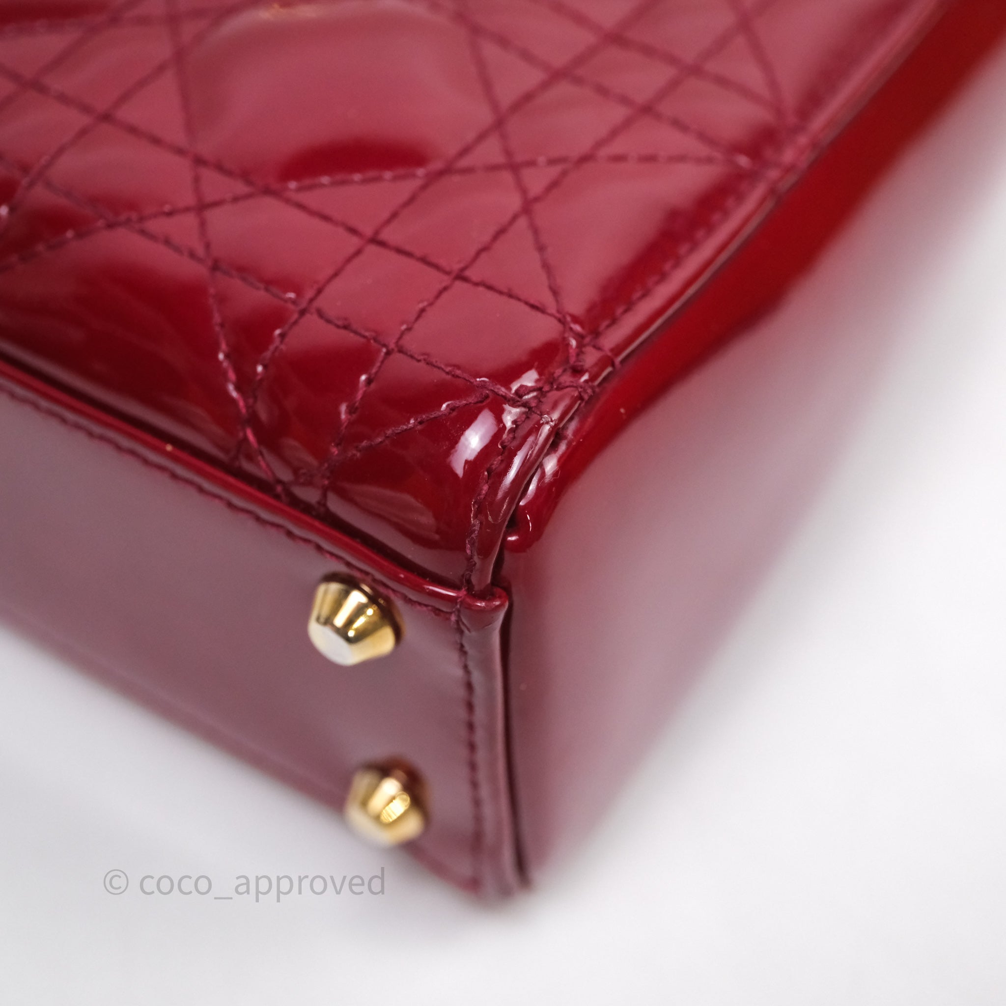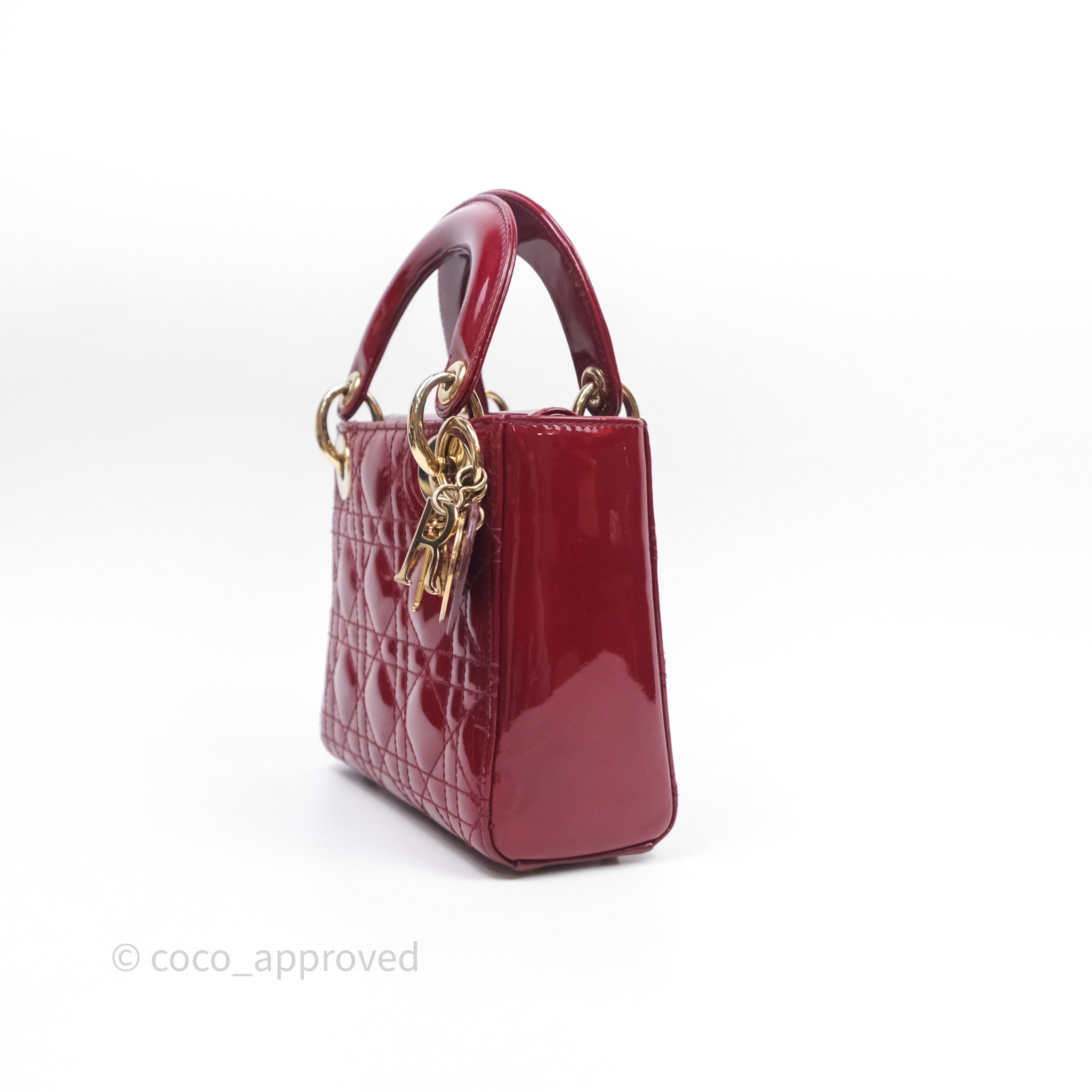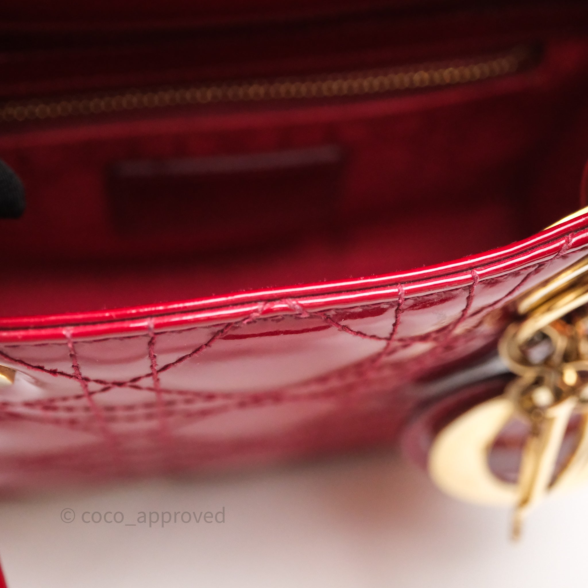 Christian Dior Mini Lady Dior Red Patent Cannage Gold Hardware