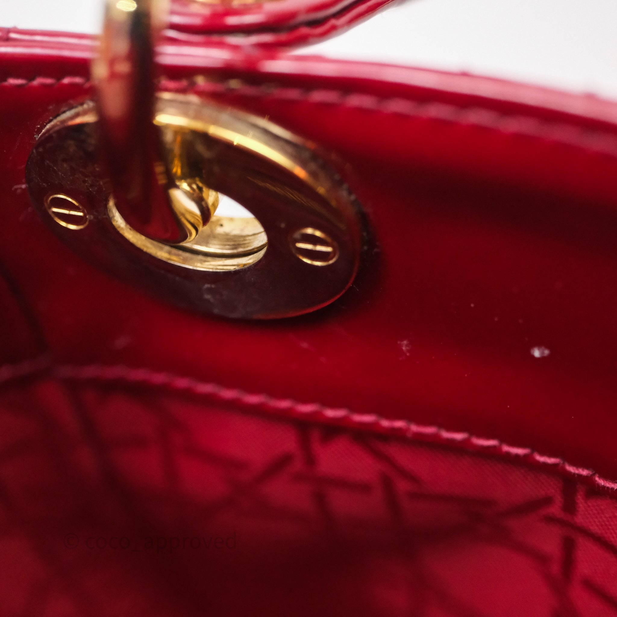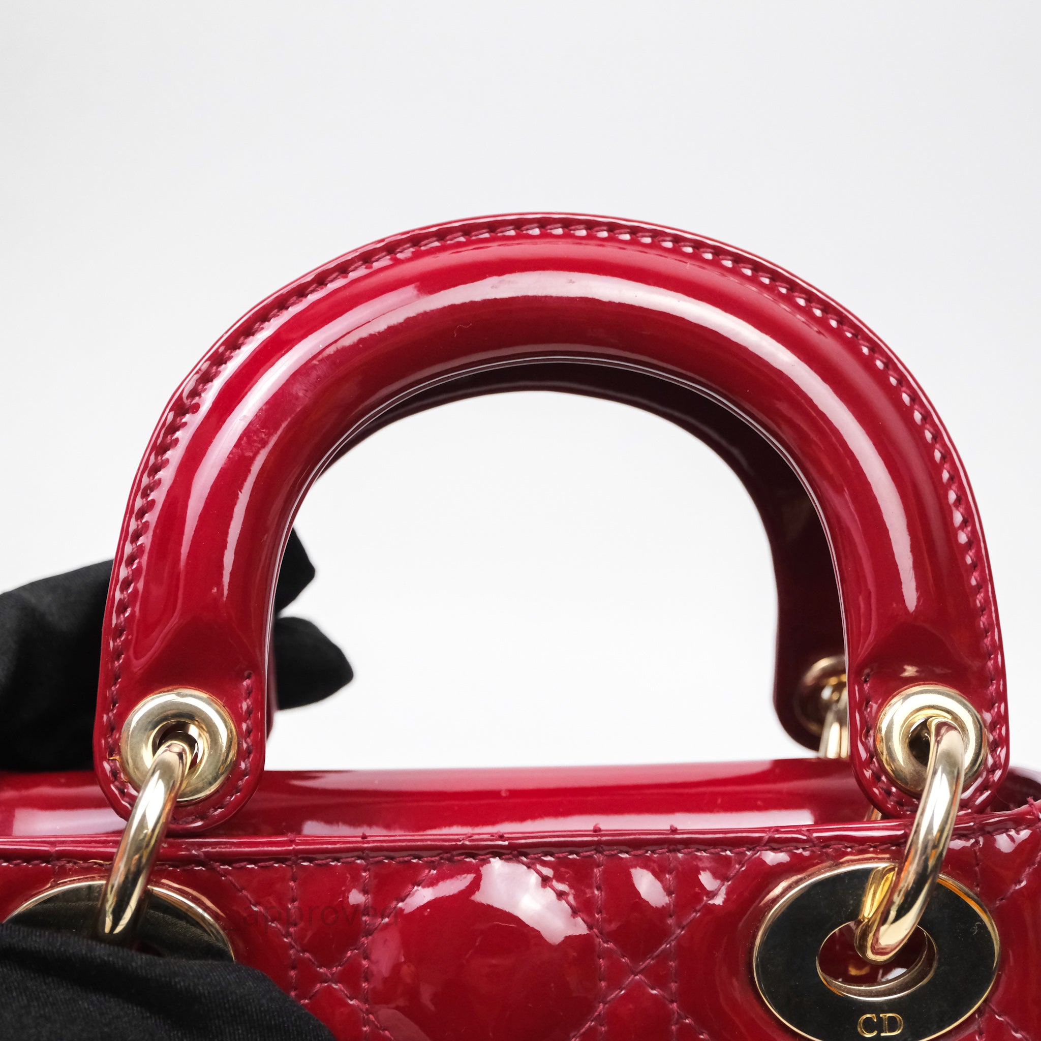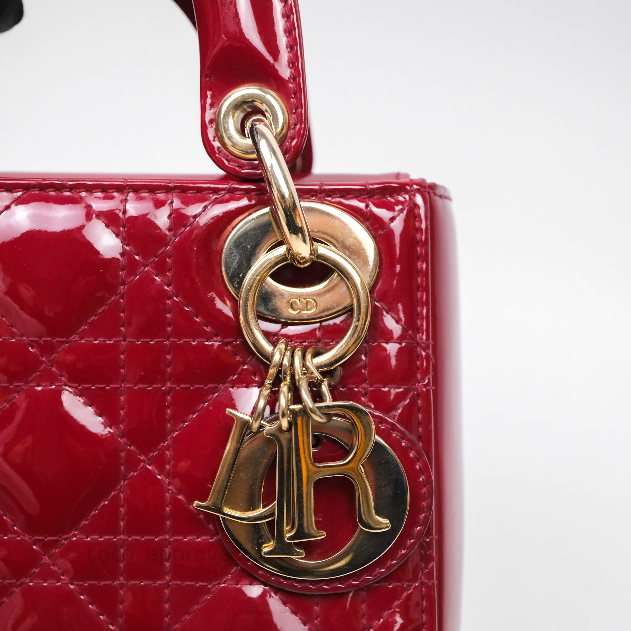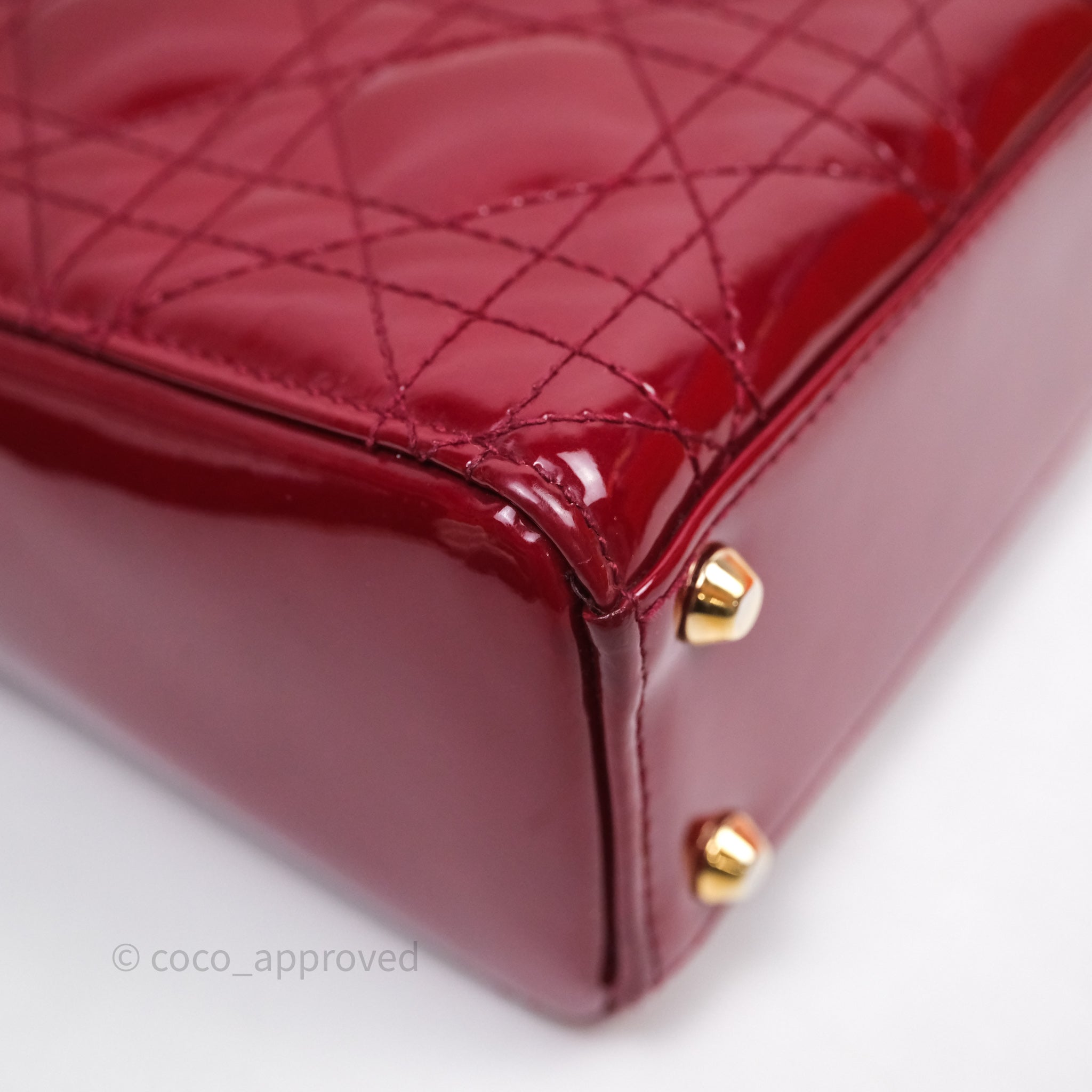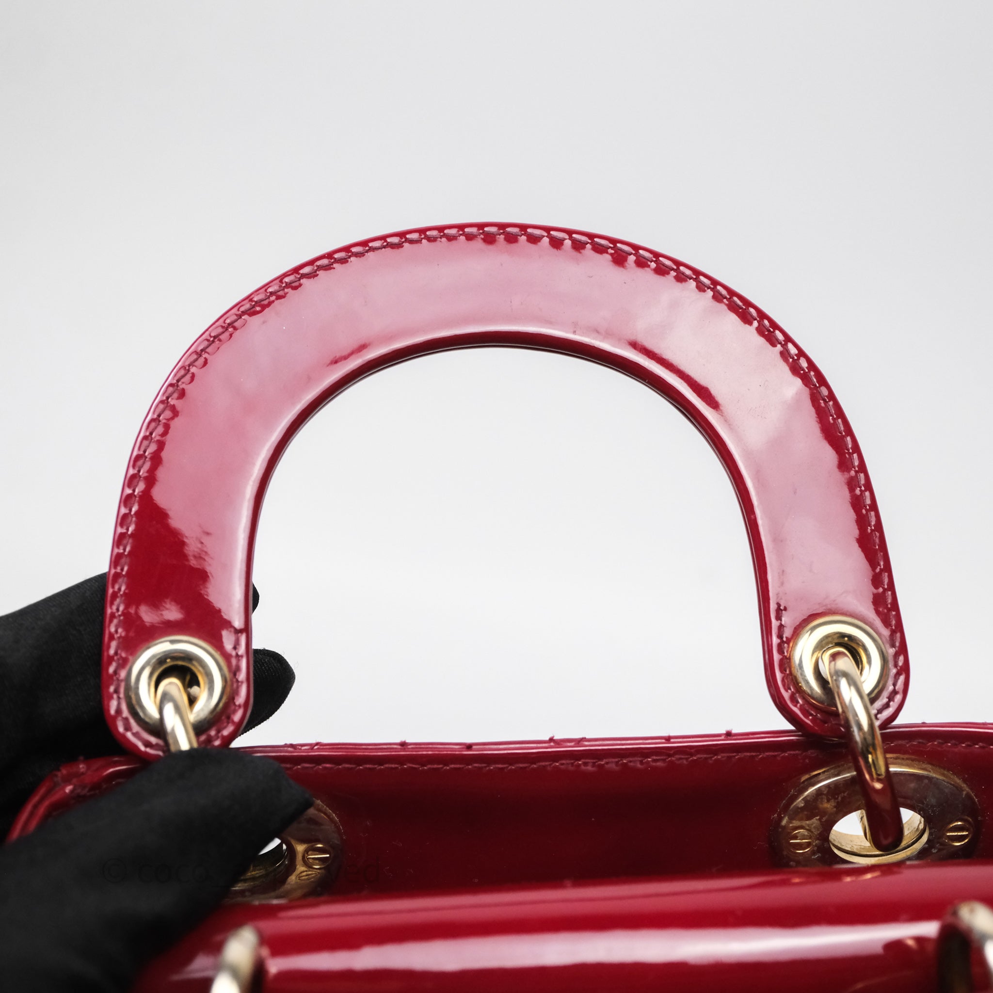 Christian Dior Mini Lady Dior Red Patent Cannage Gold Hardware