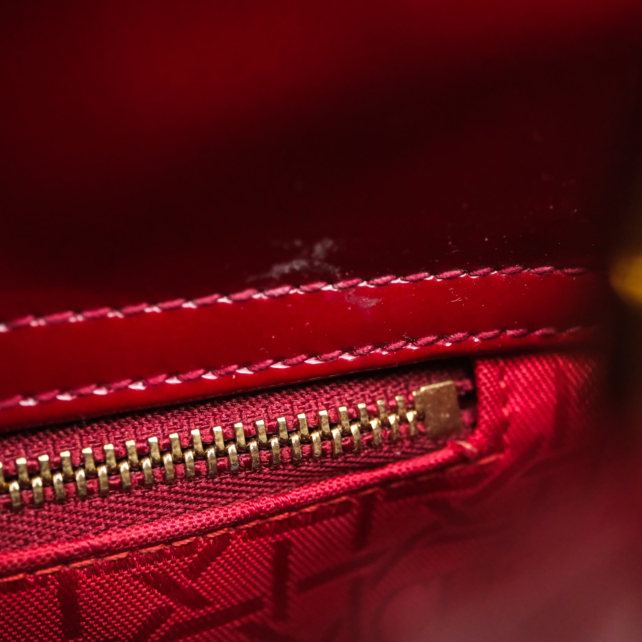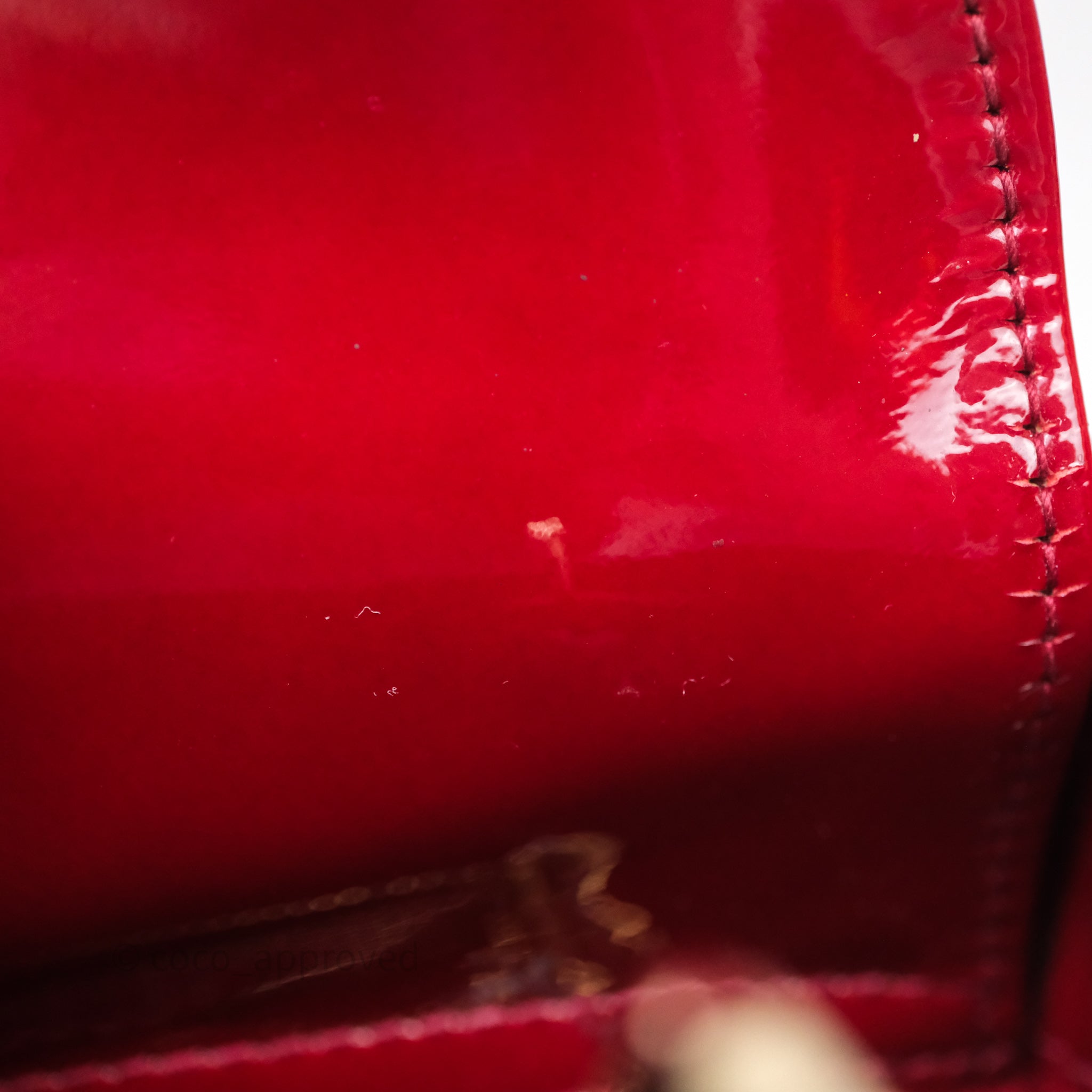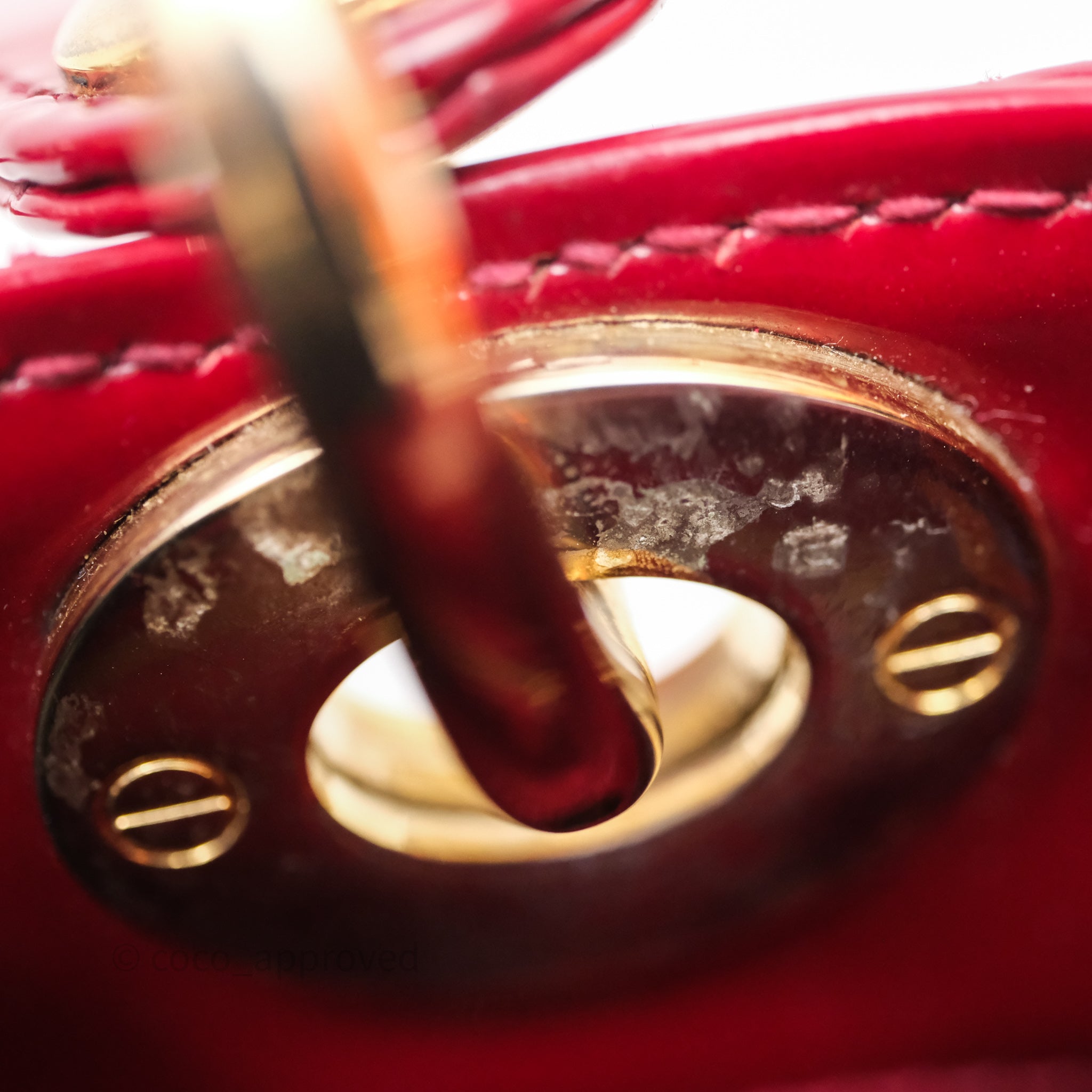 9.3/10 excellent condition. Scratches and fading on the hardware. Rubbing on corners. Dent on flap. Minor marks on surface and handle.