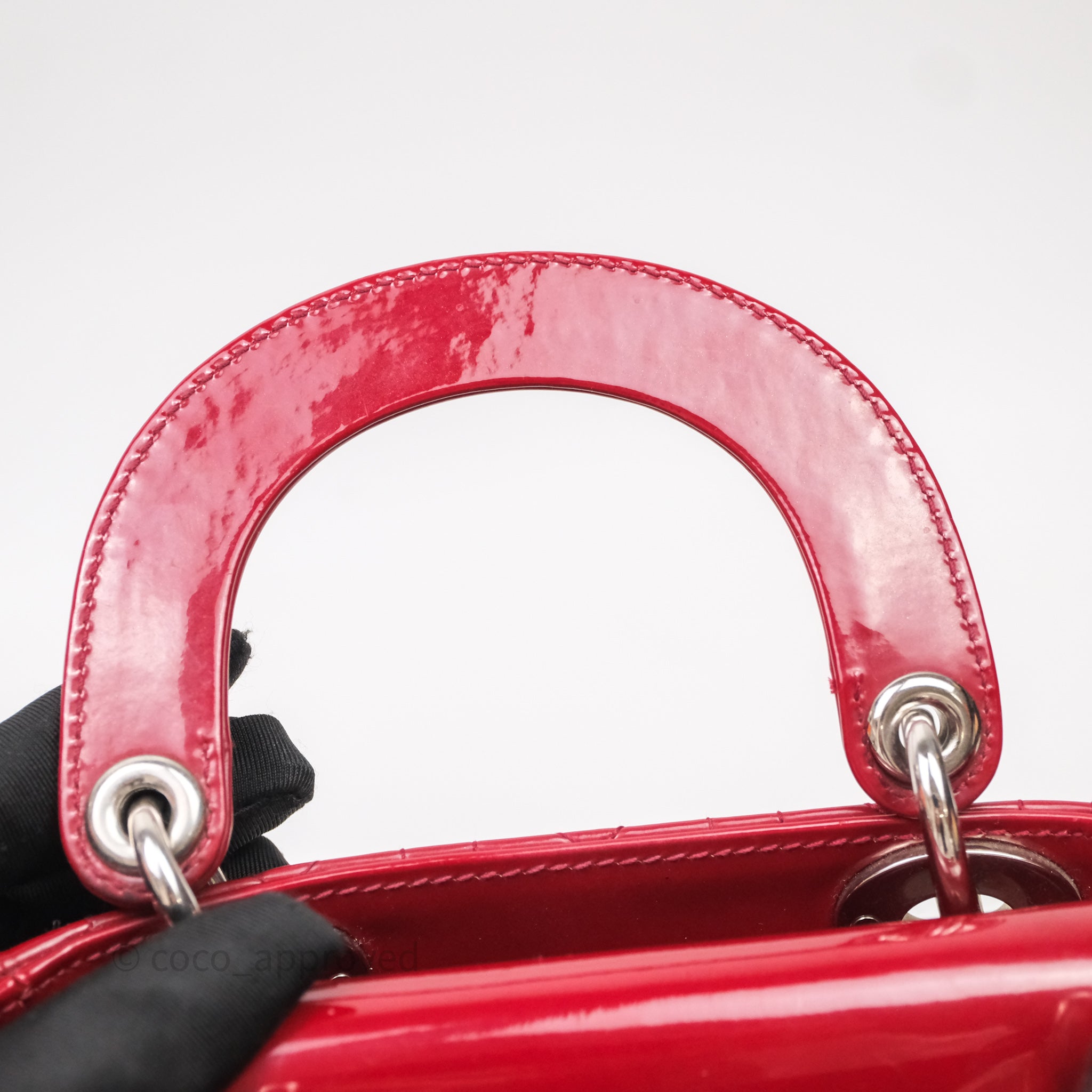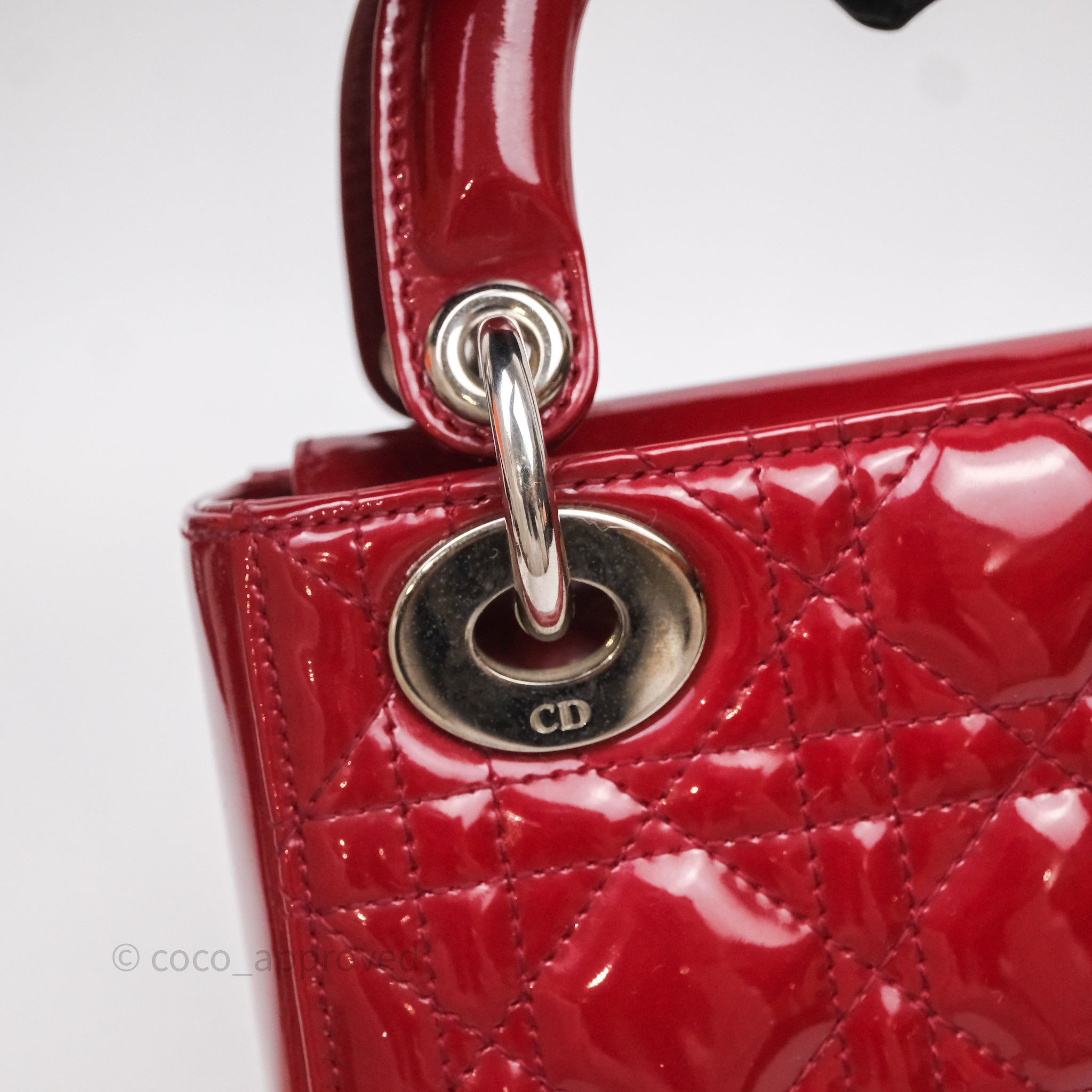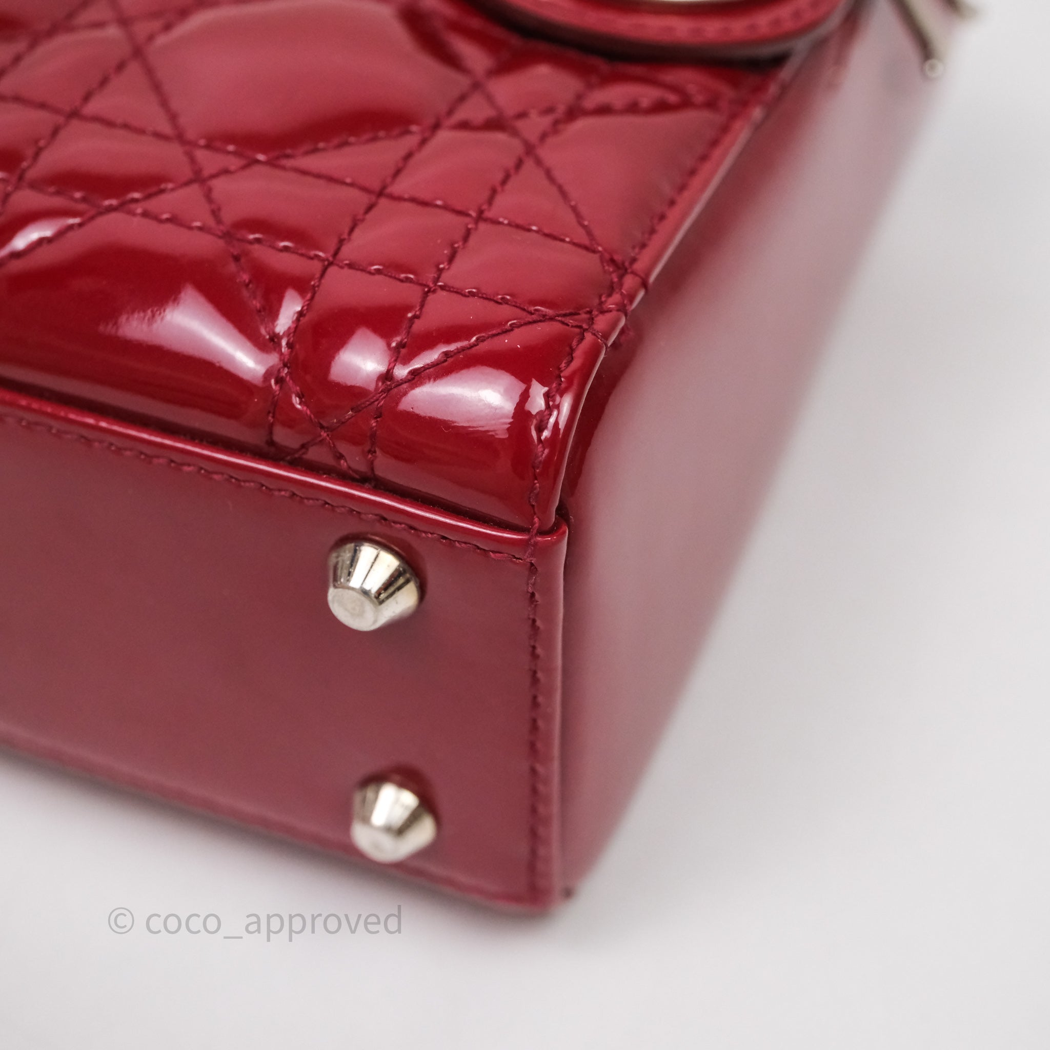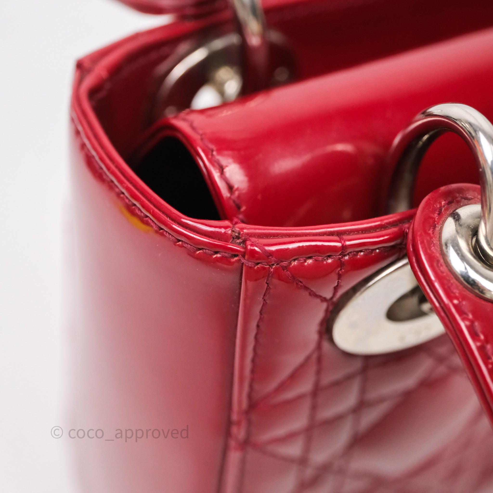 Christian Dior Mini Lady Dior Red Patent Cannage Silver Hardware