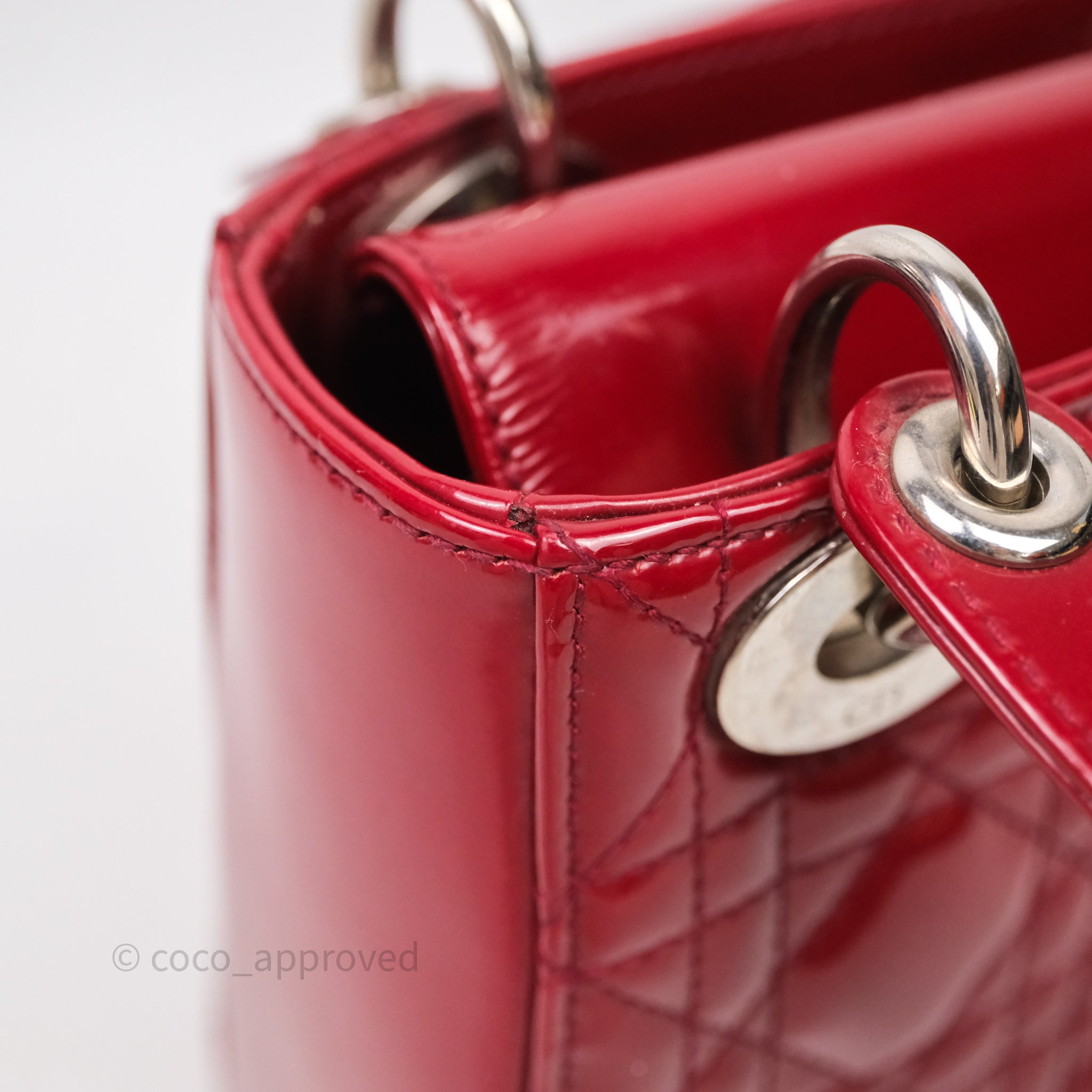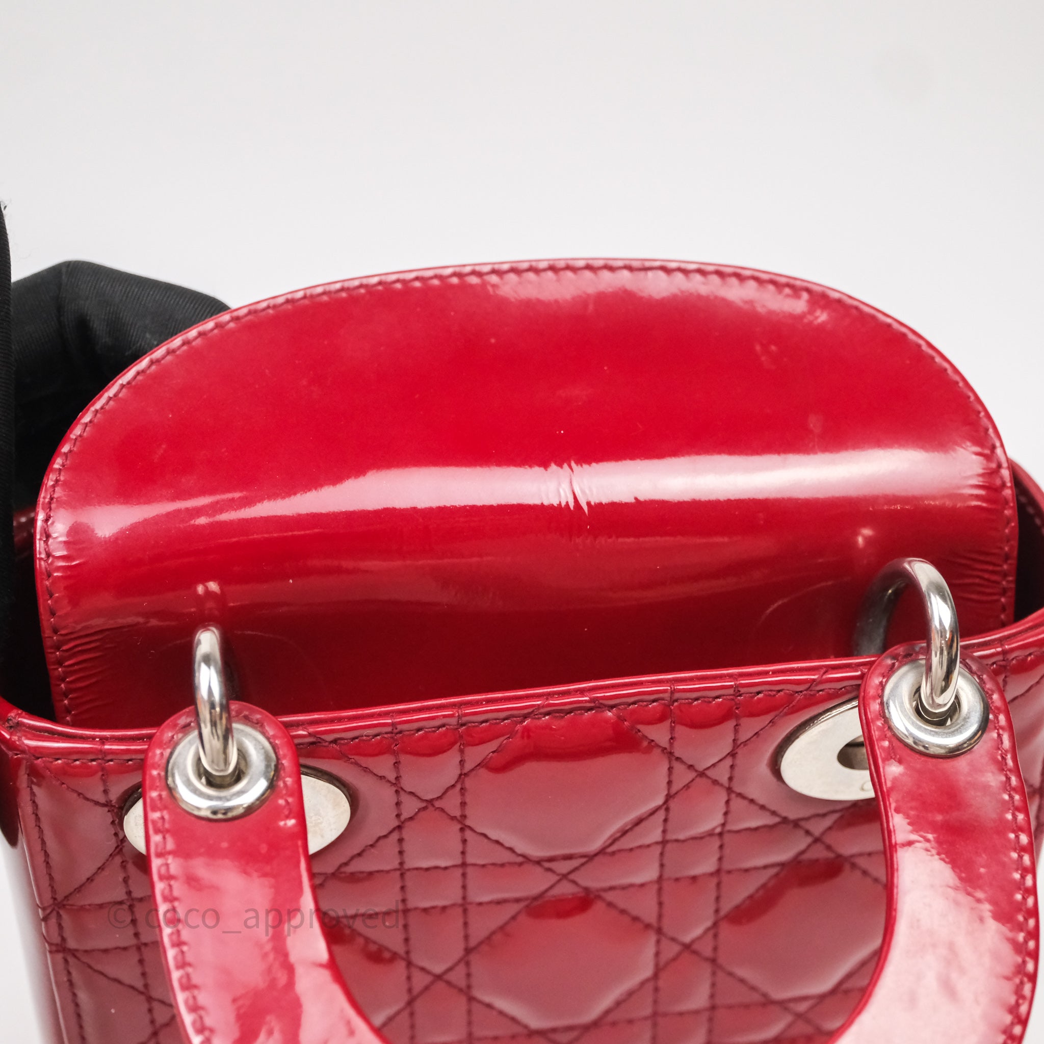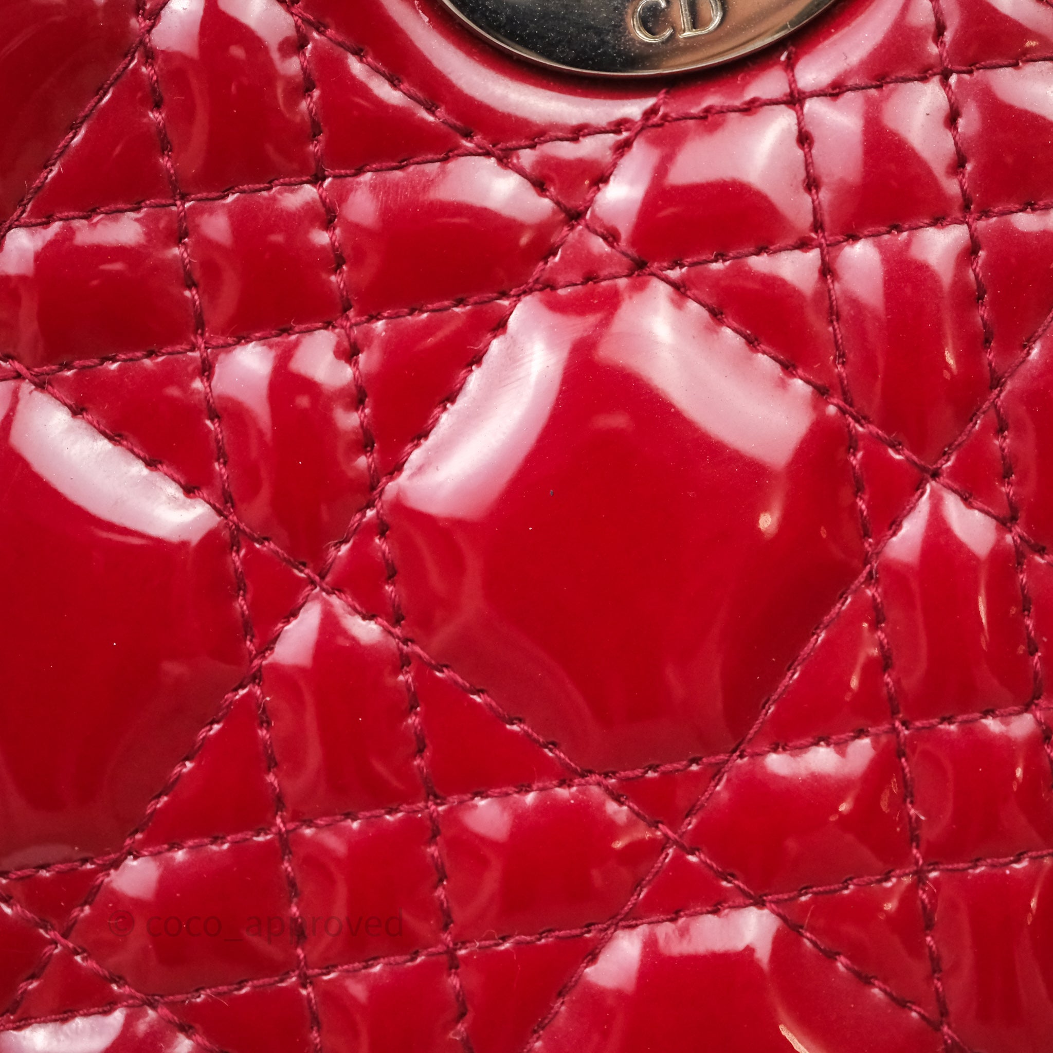 Christian Dior Mini Lady Dior Red Patent Cannage Silver Hardware