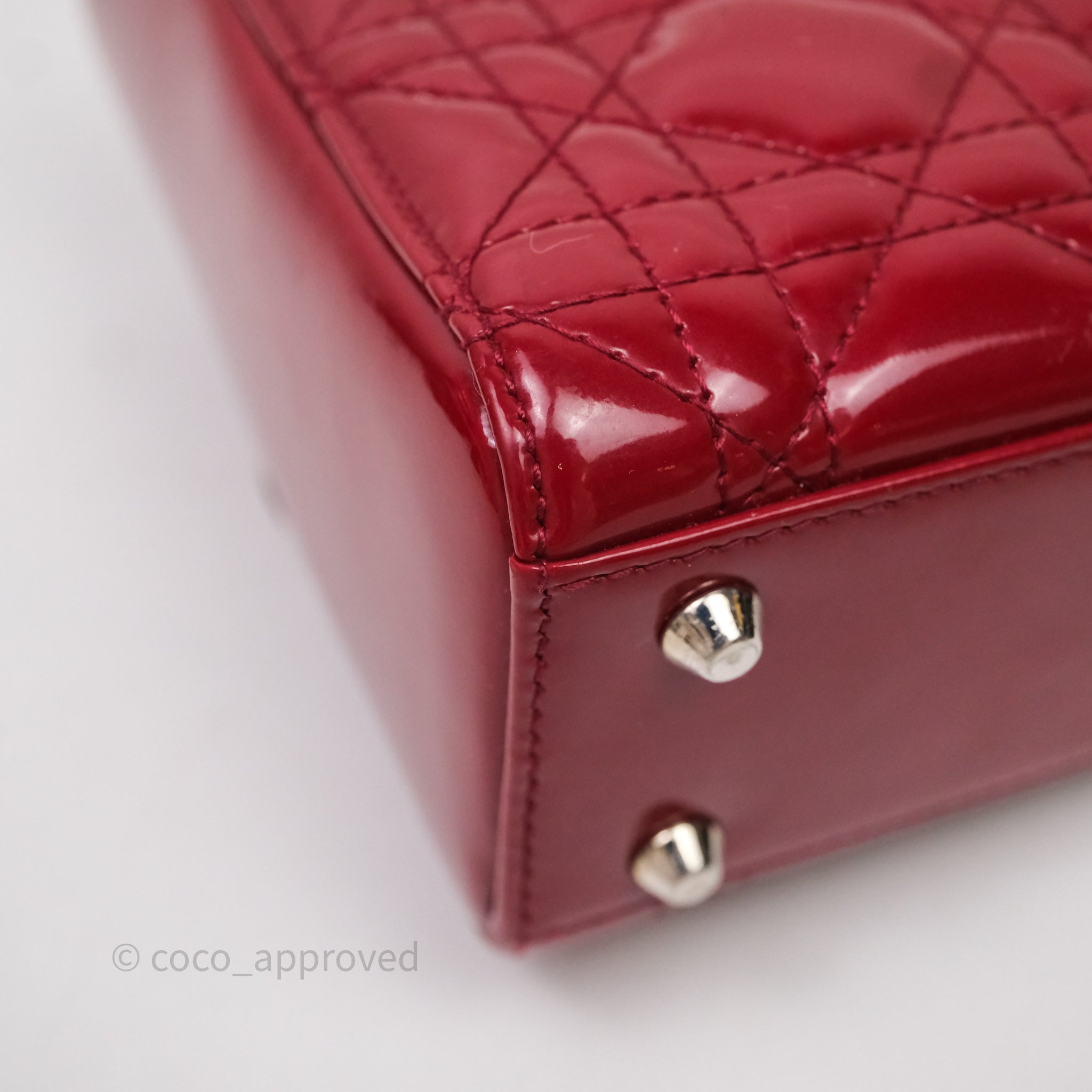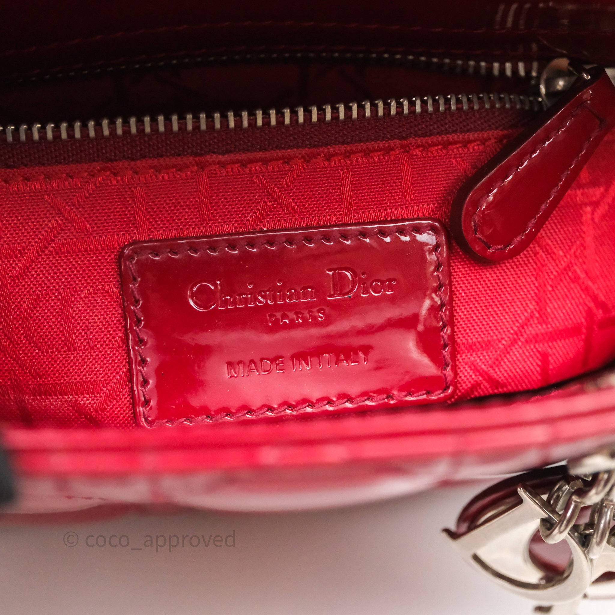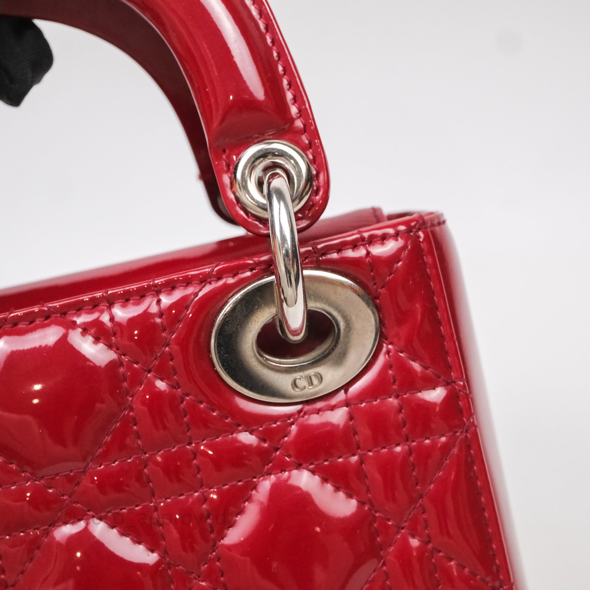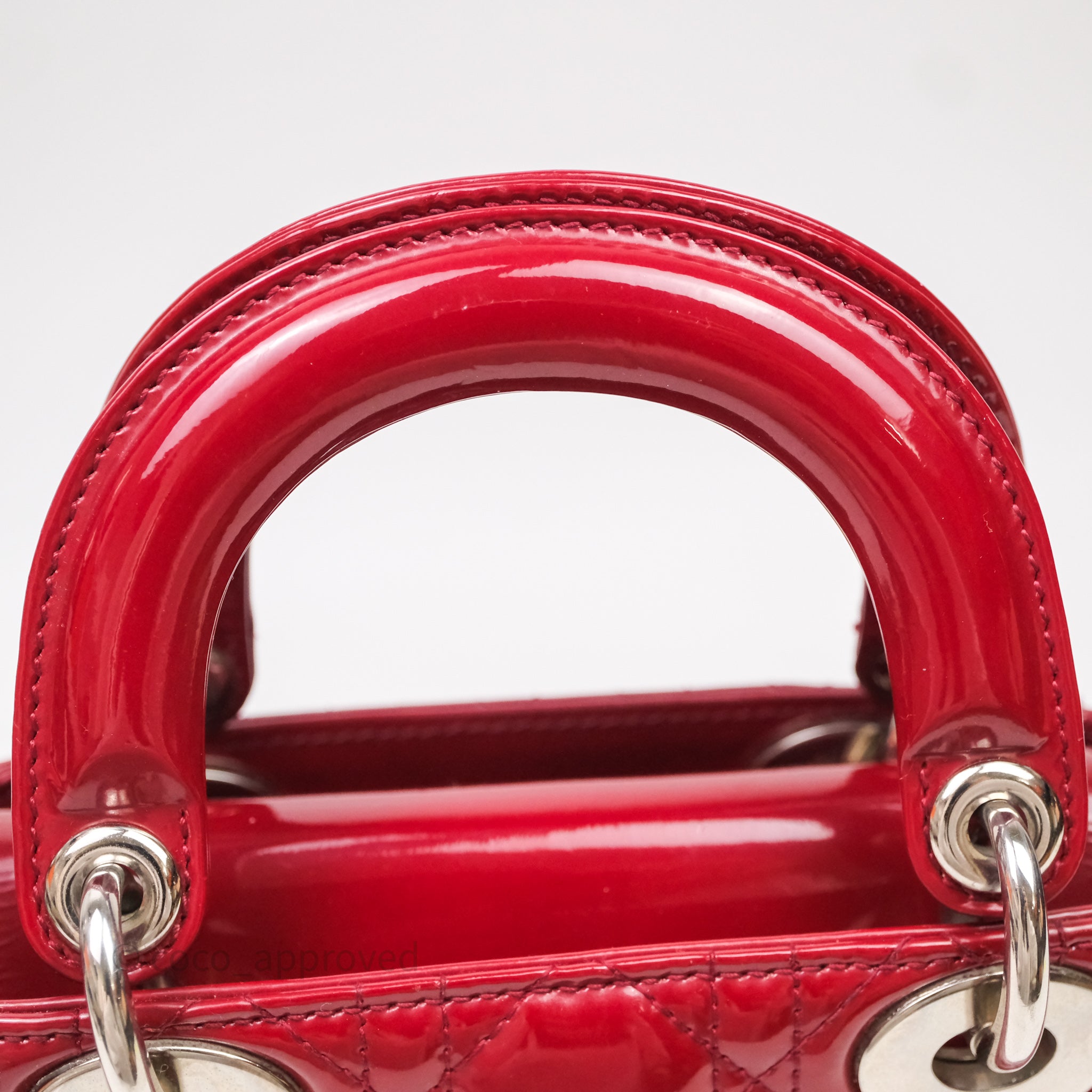 Christian Dior Mini Lady Dior Red Patent Cannage Silver Hardware