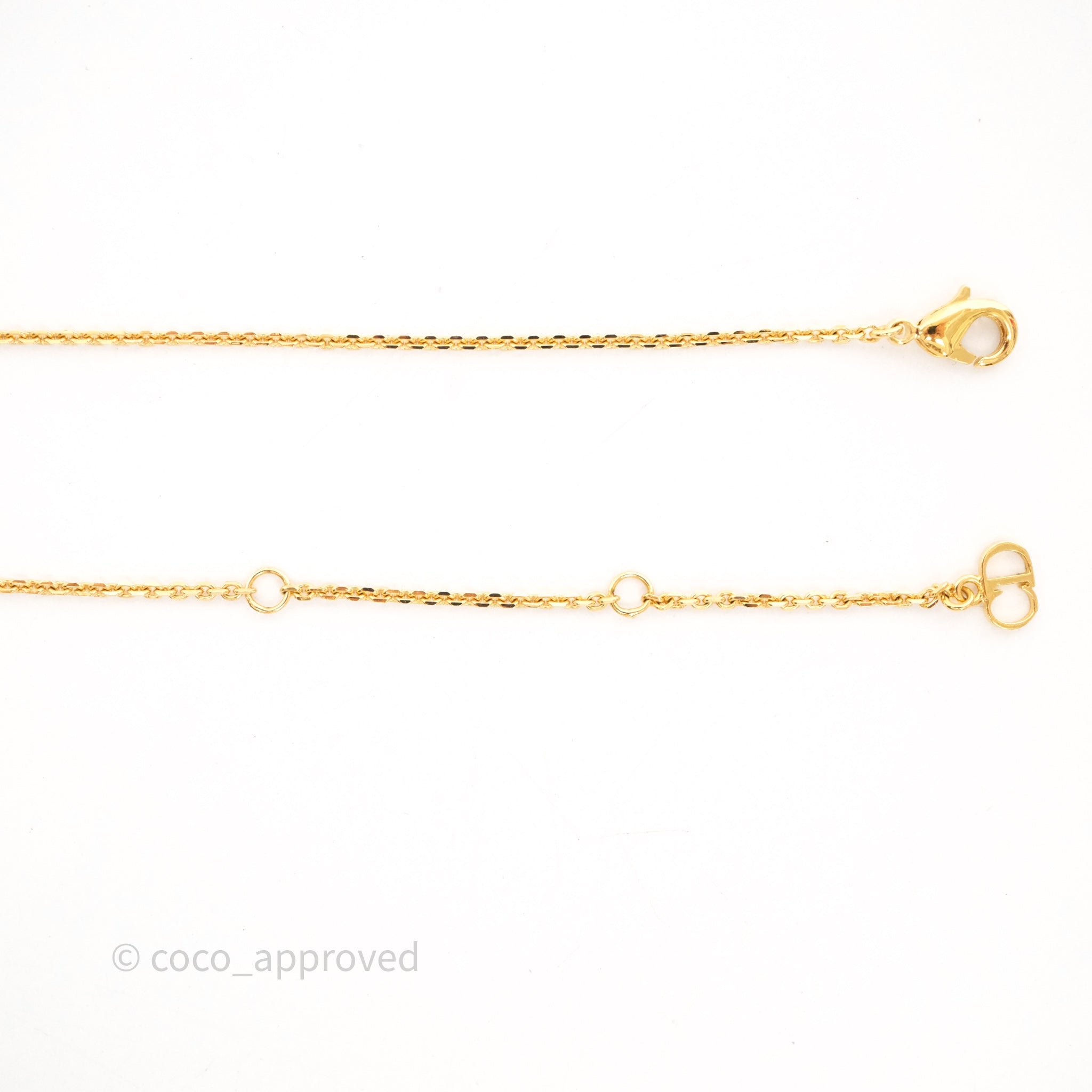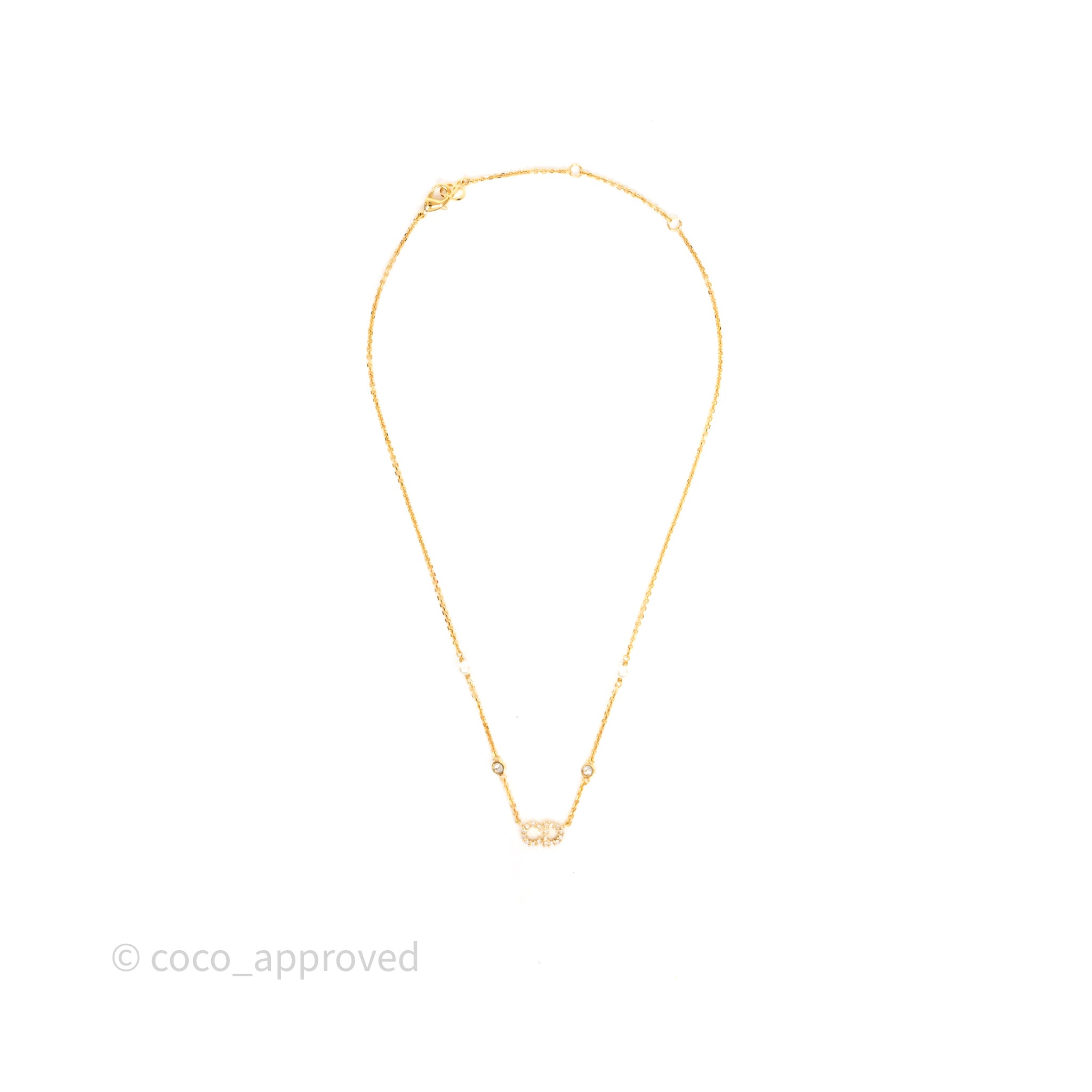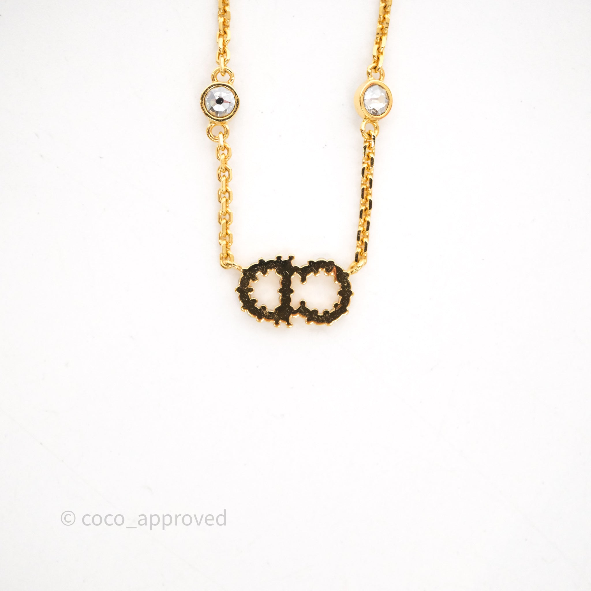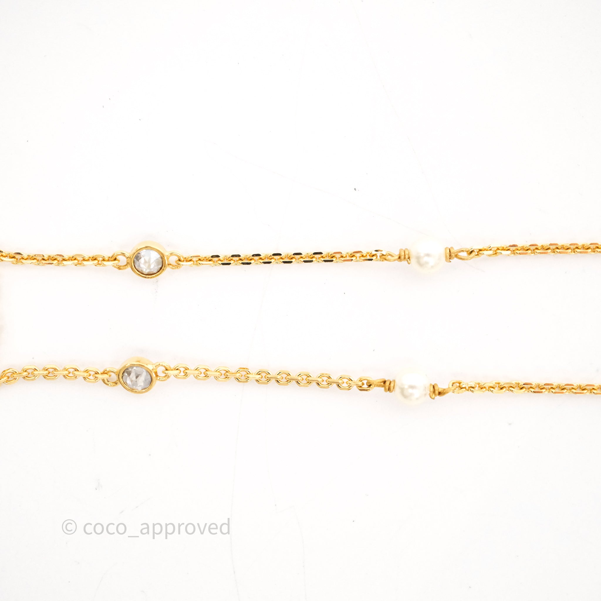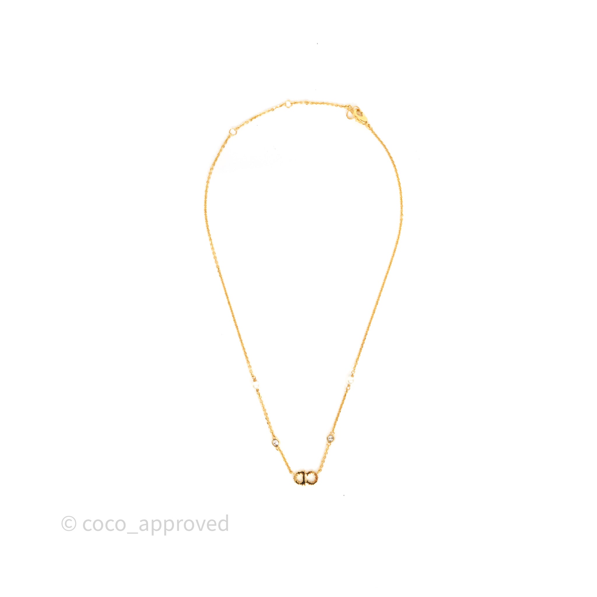 Christian Dior Pearl Crystal Necklace Gold Tone