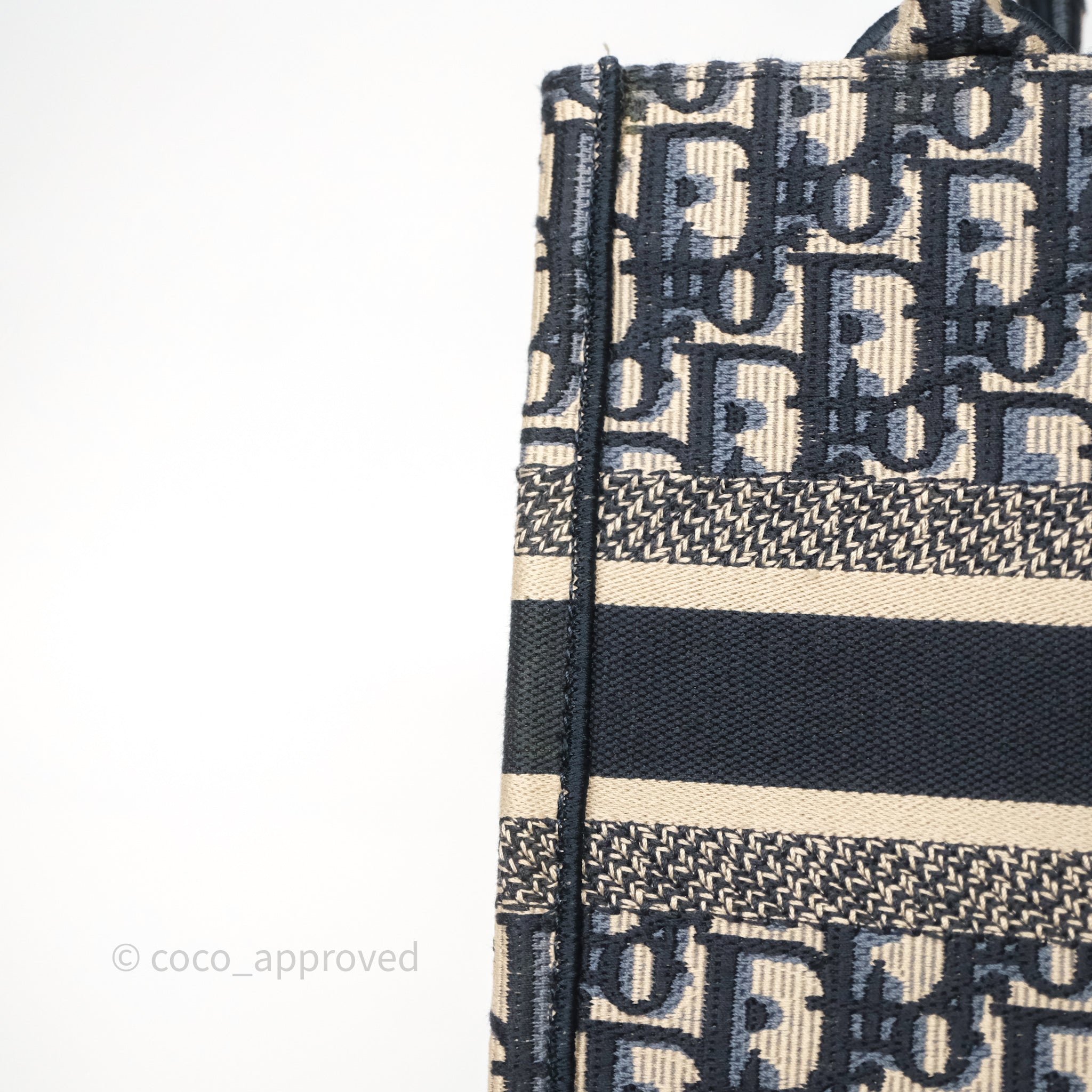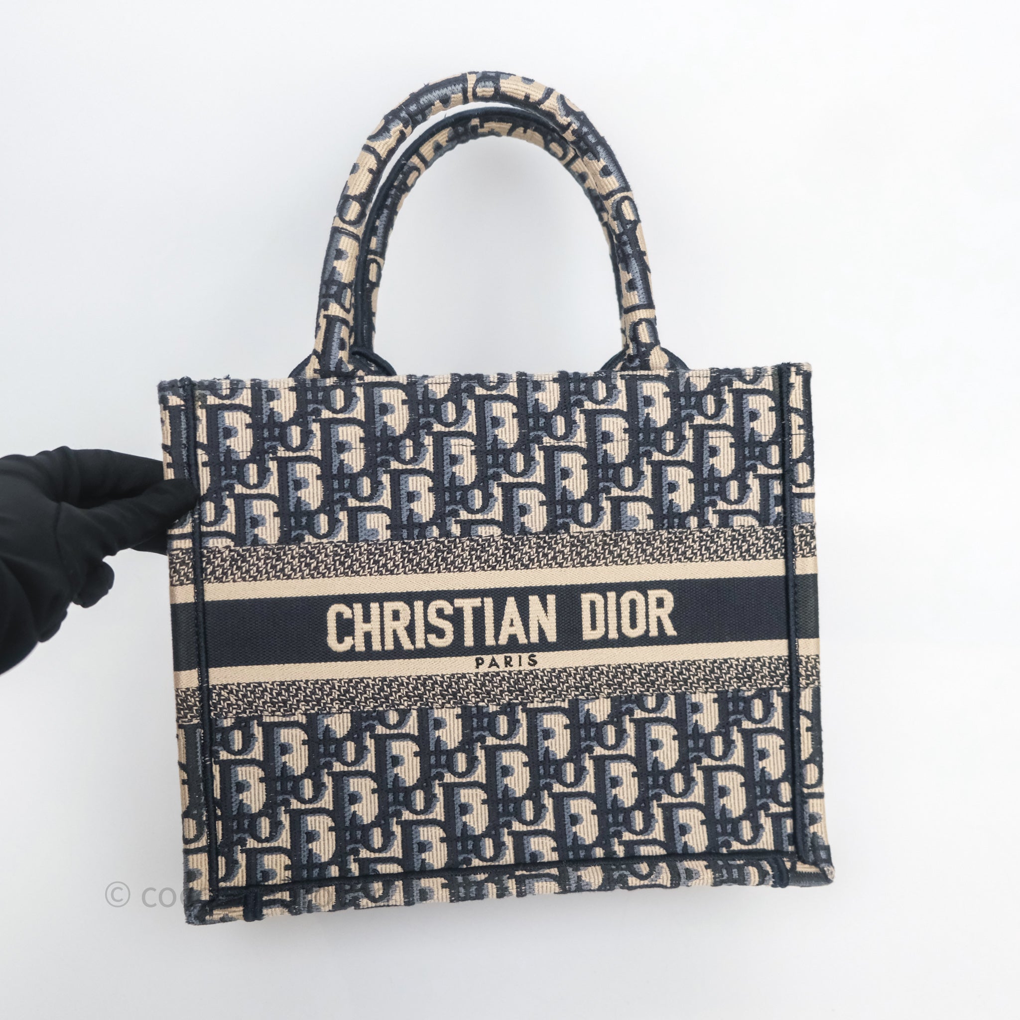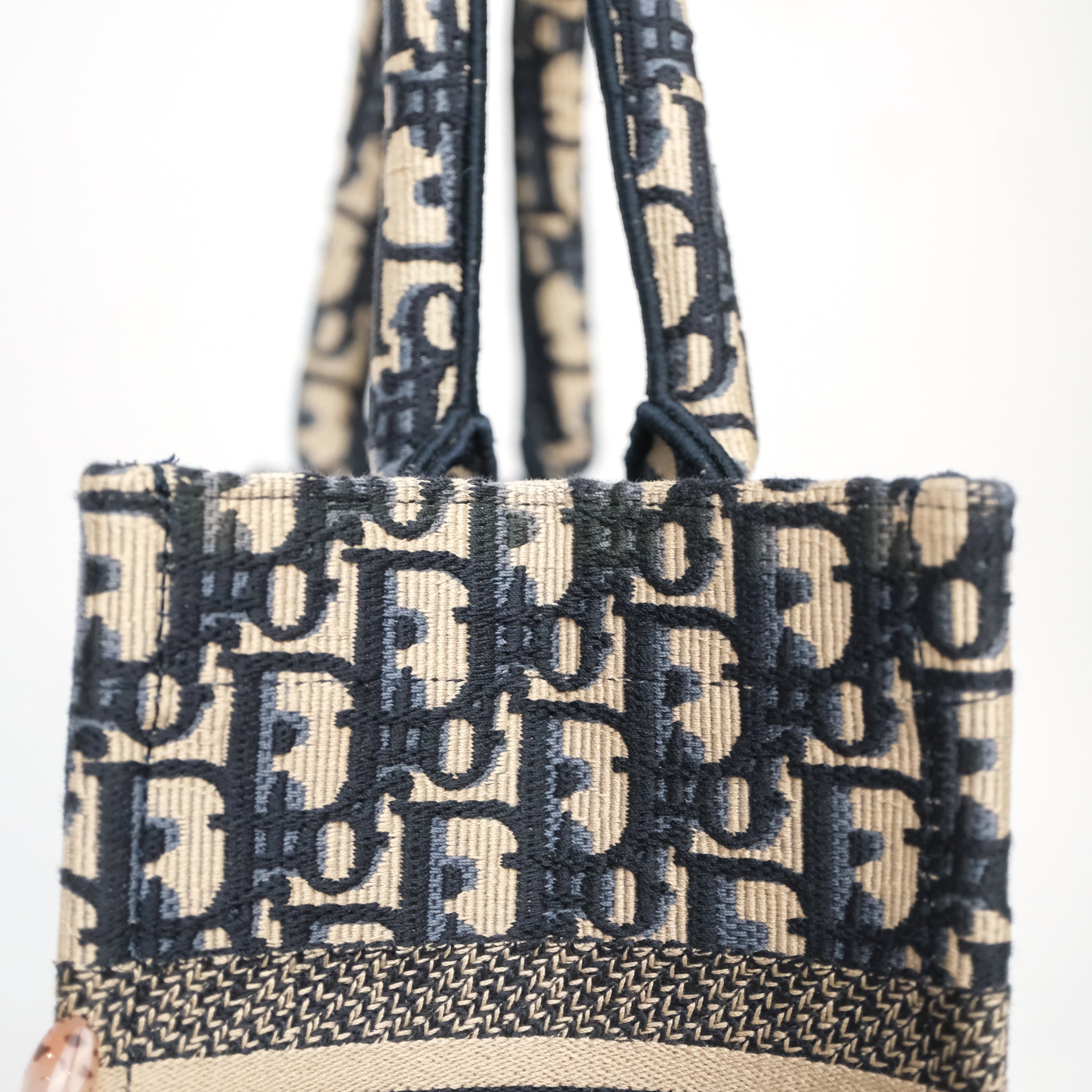Christian Dior Small Dior Oblique Embroidery Canvas Book Tote