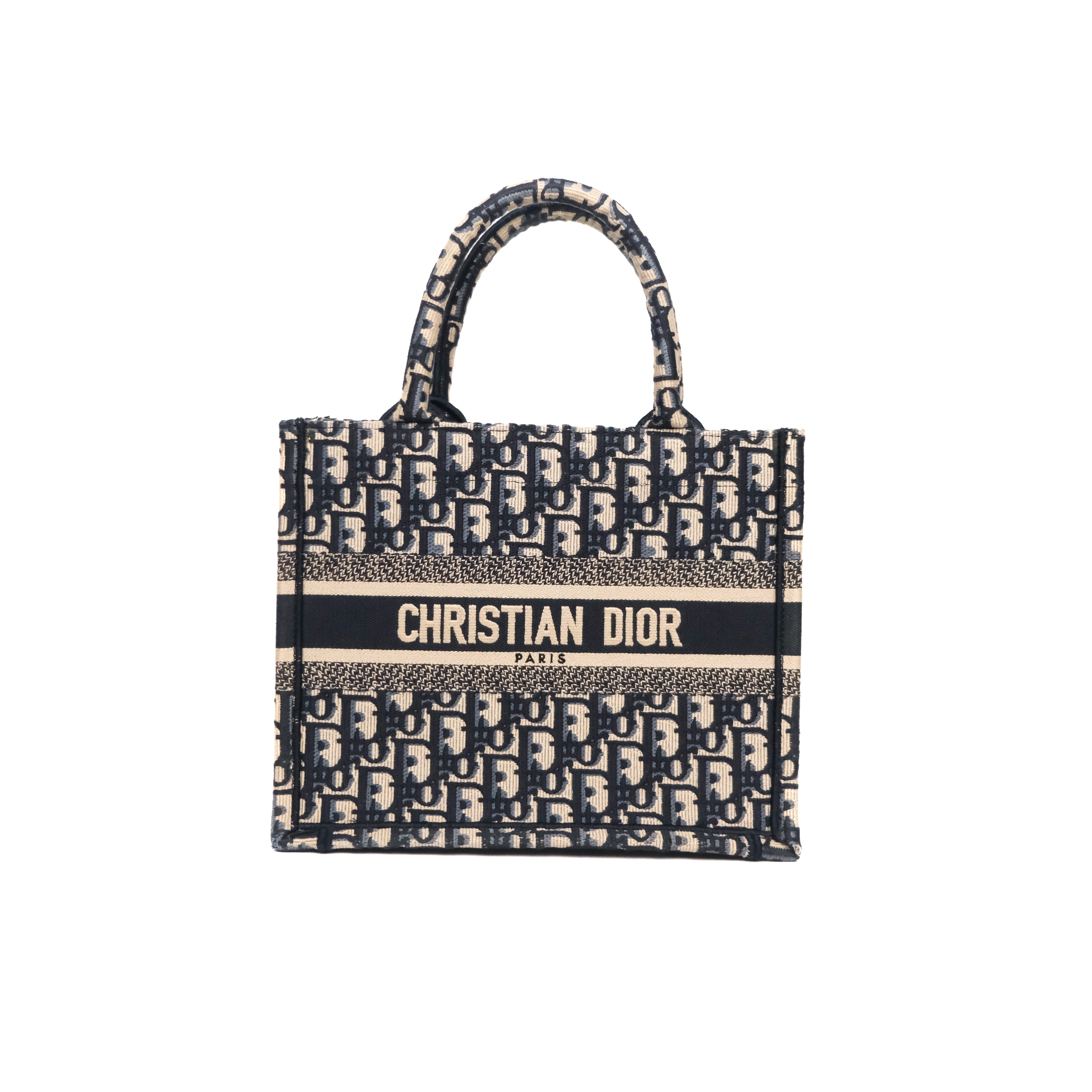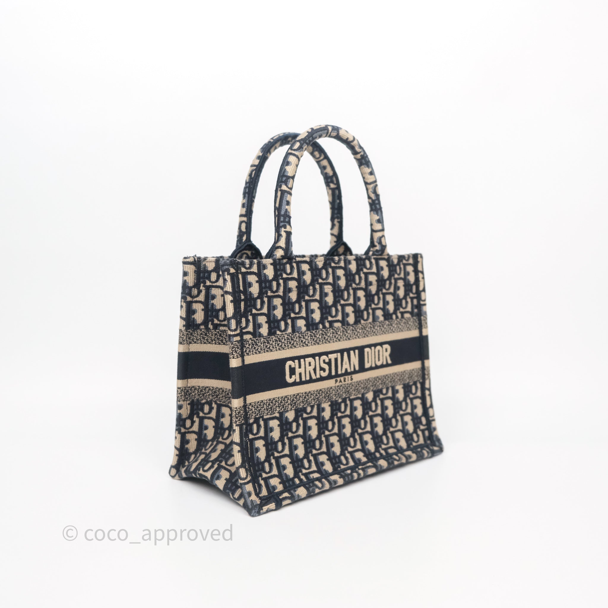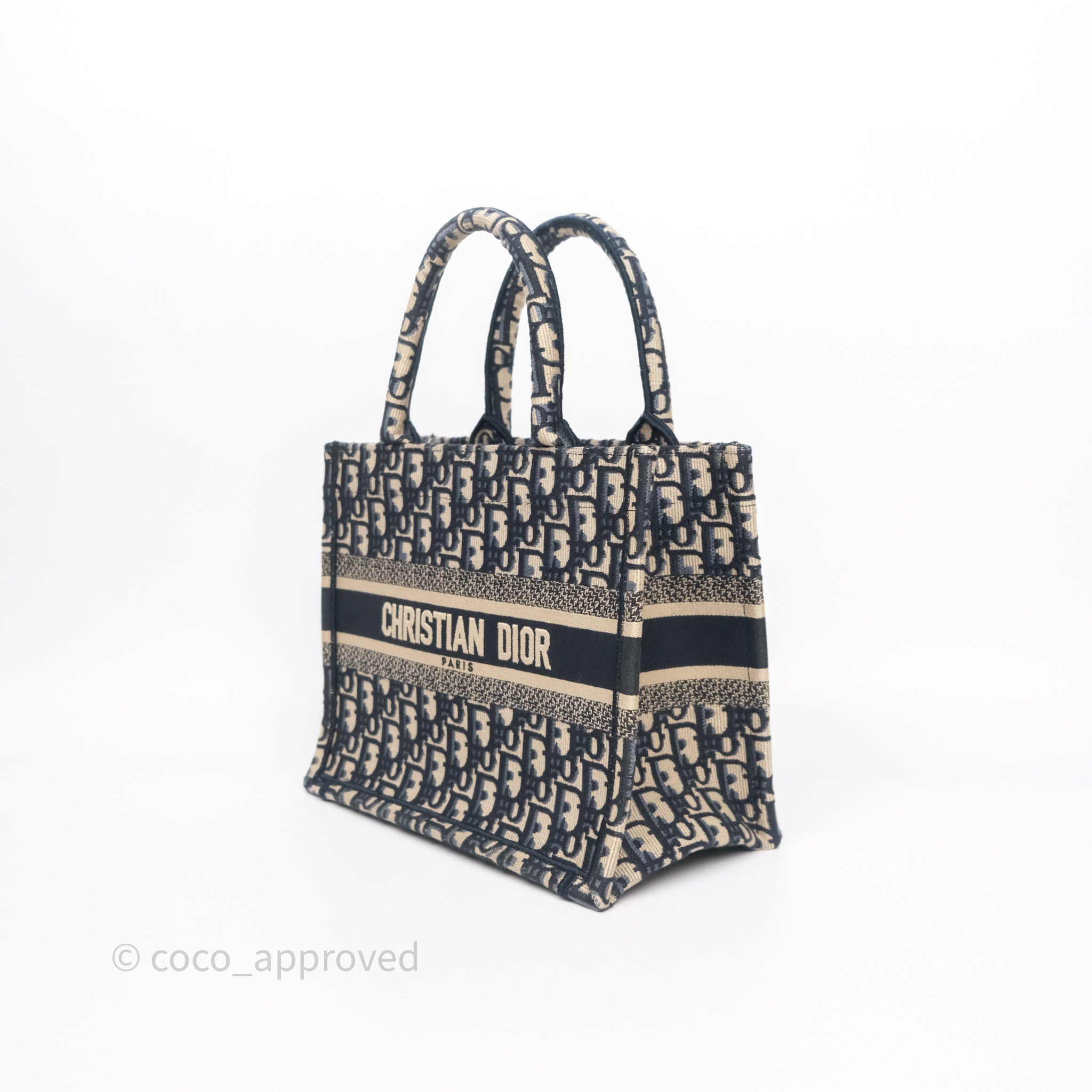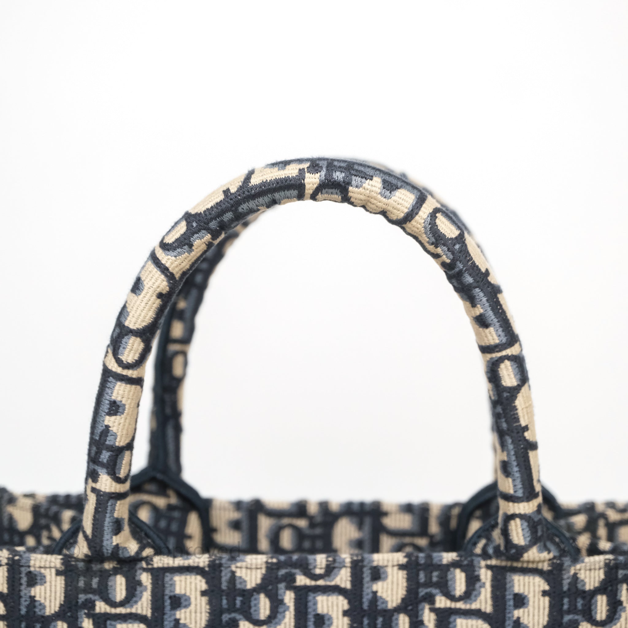 Christian Dior Small Dior Oblique Embroidery Canvas Book Tote
