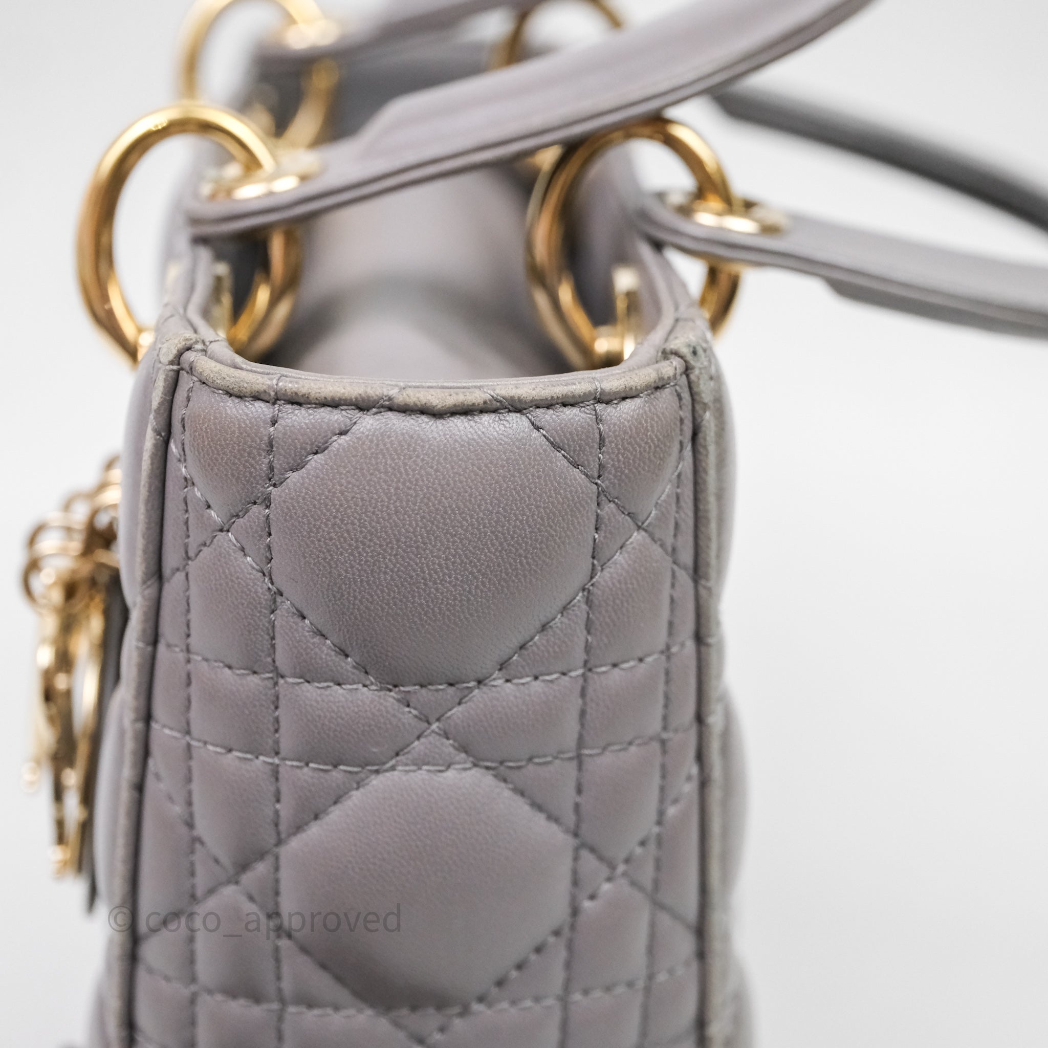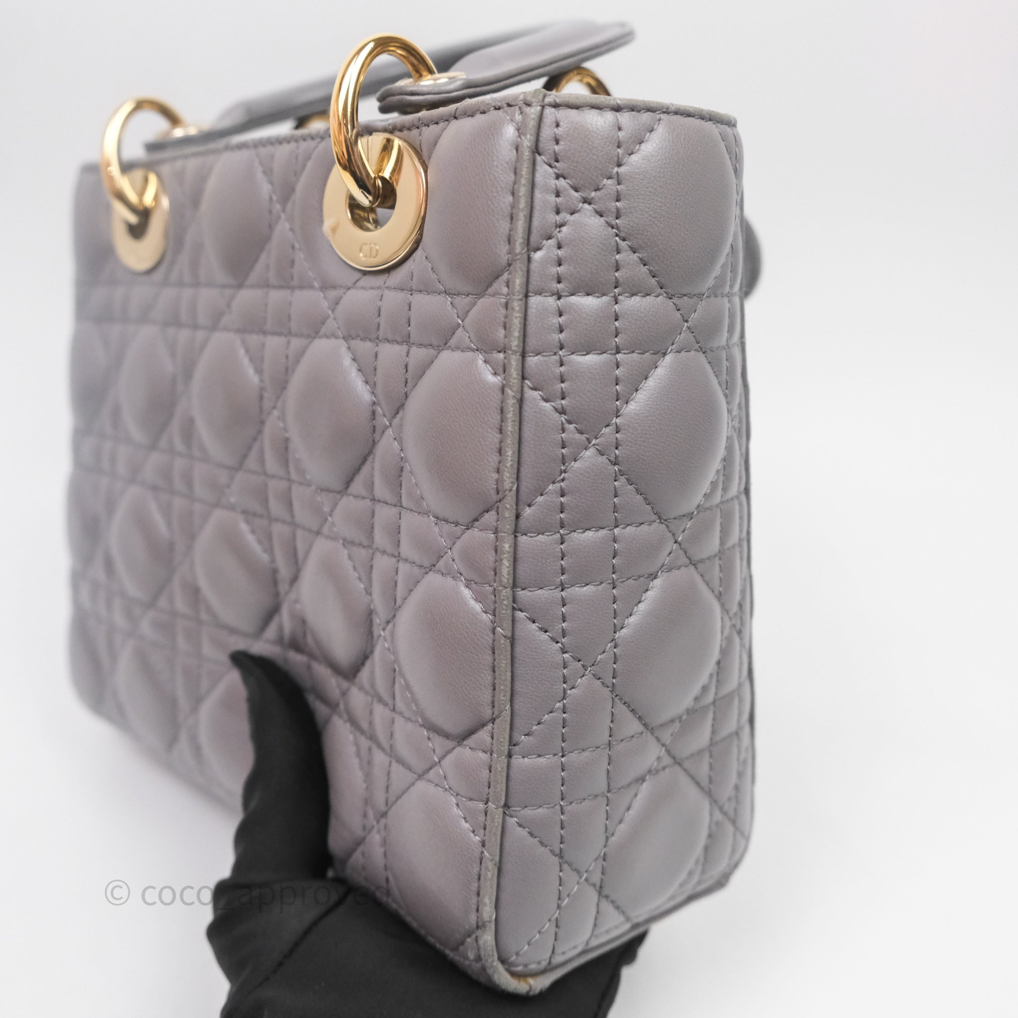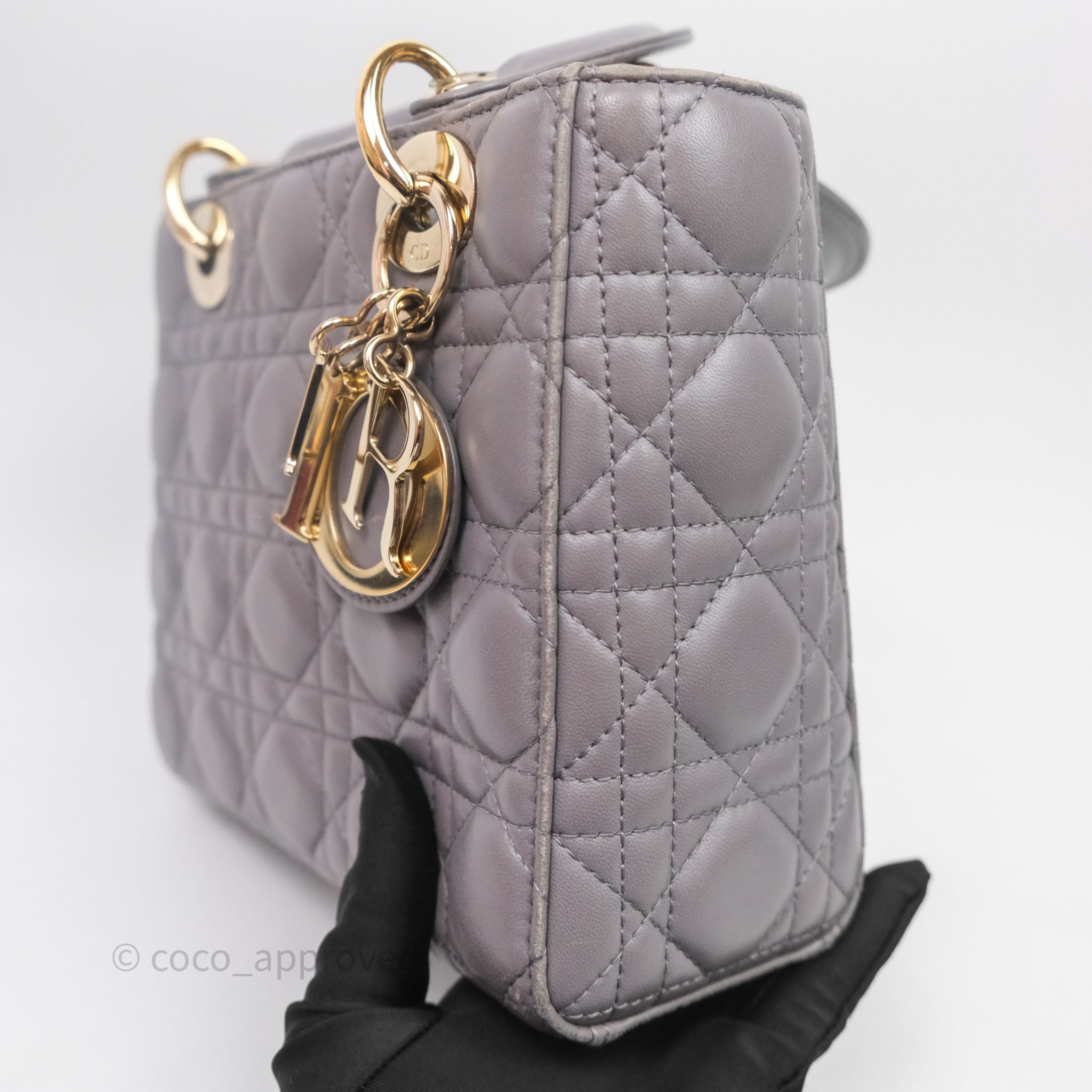 Christian Dior Small Lady Dior My ABCDior Bag Stone Gray Cannage Lambskin
