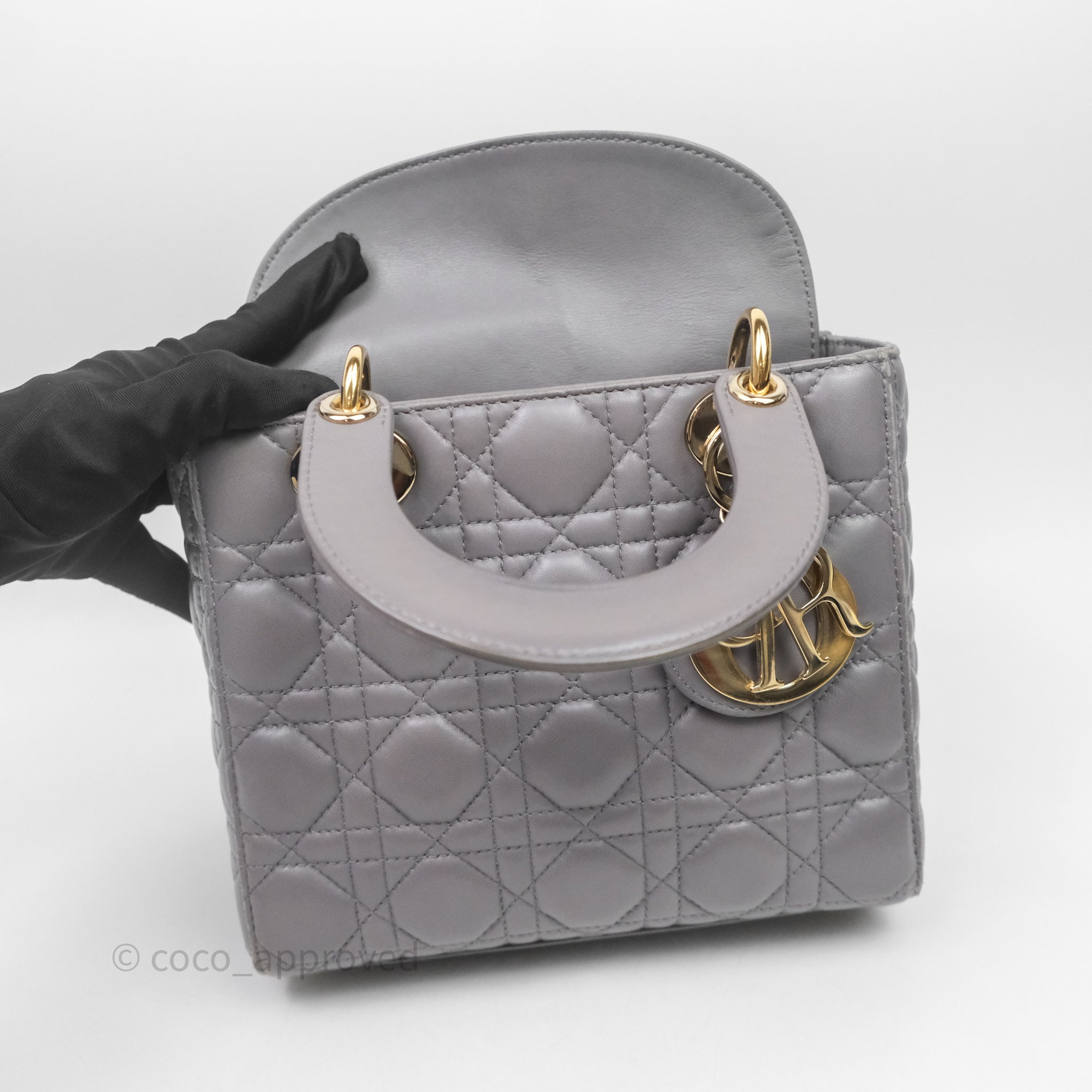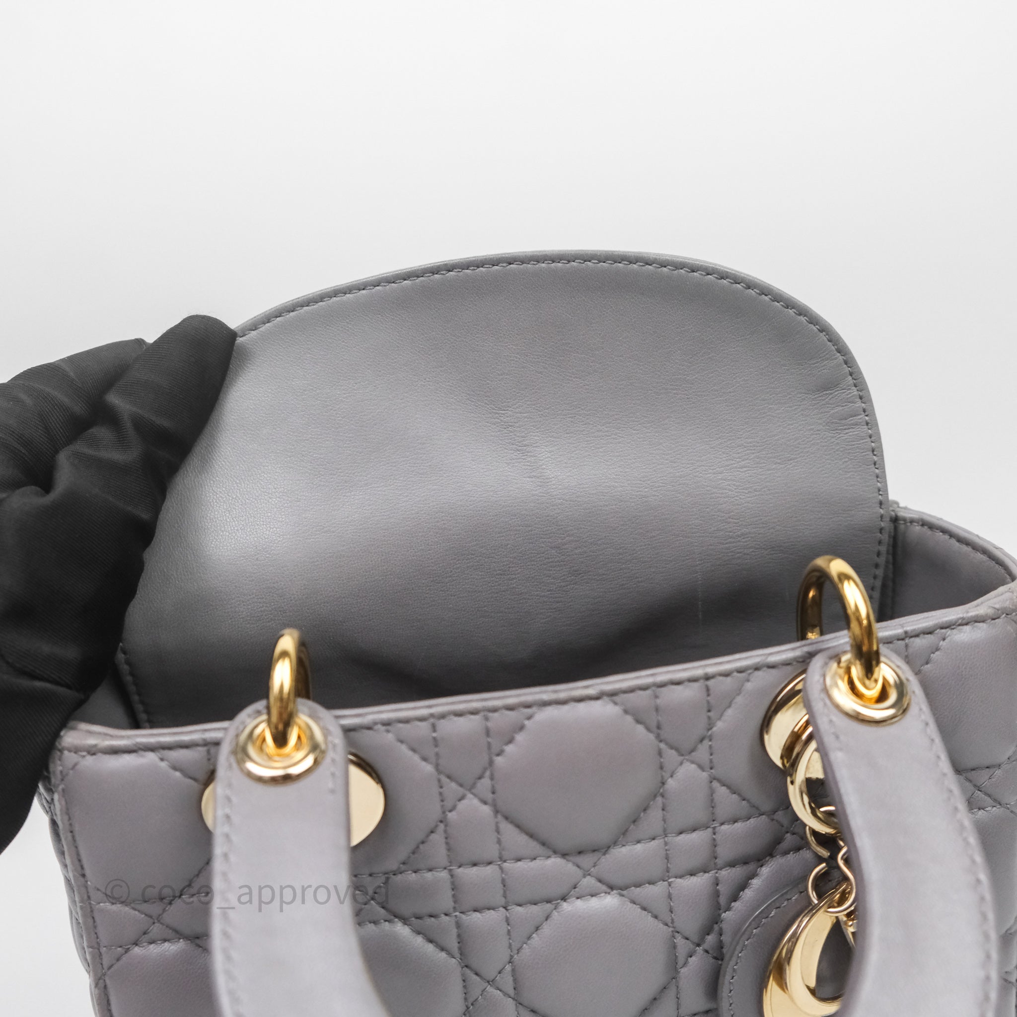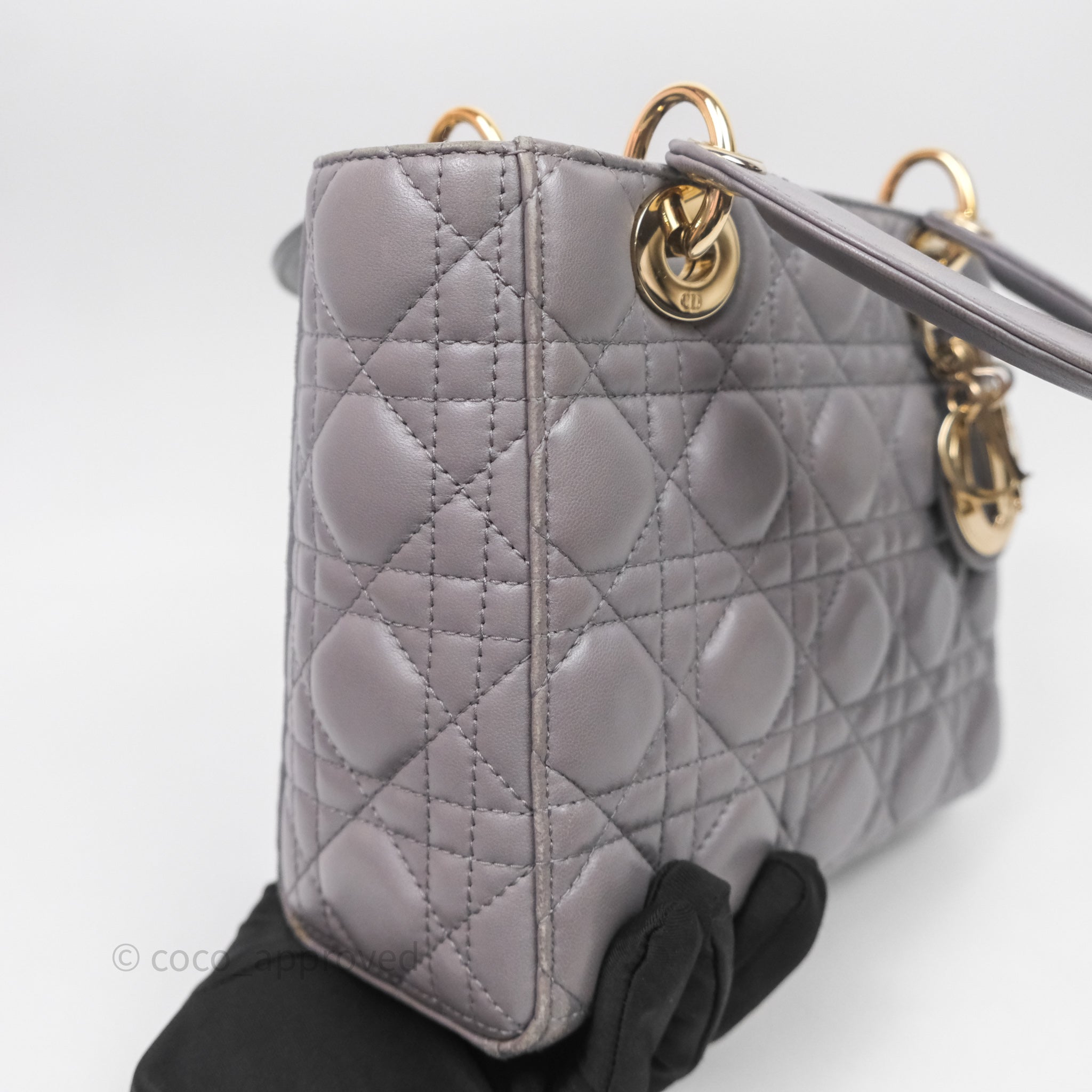 Christian Dior Small Lady Dior My ABCDior Bag Stone Gray Cannage Lambskin