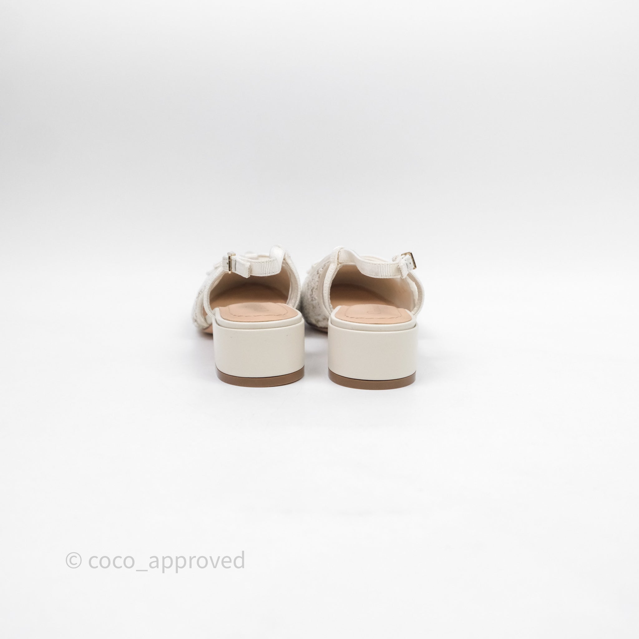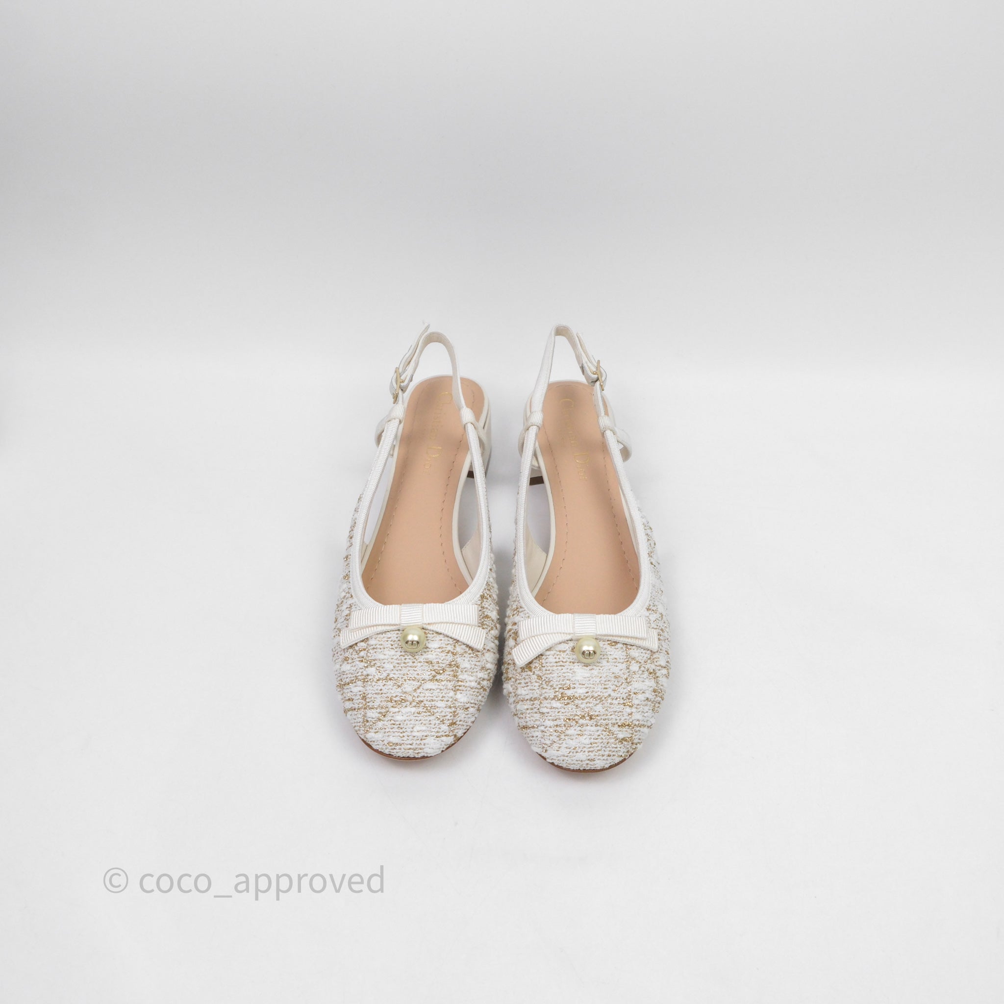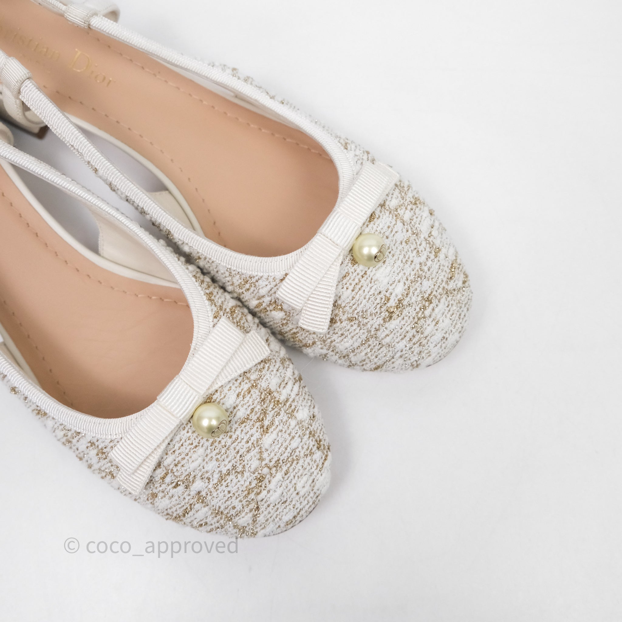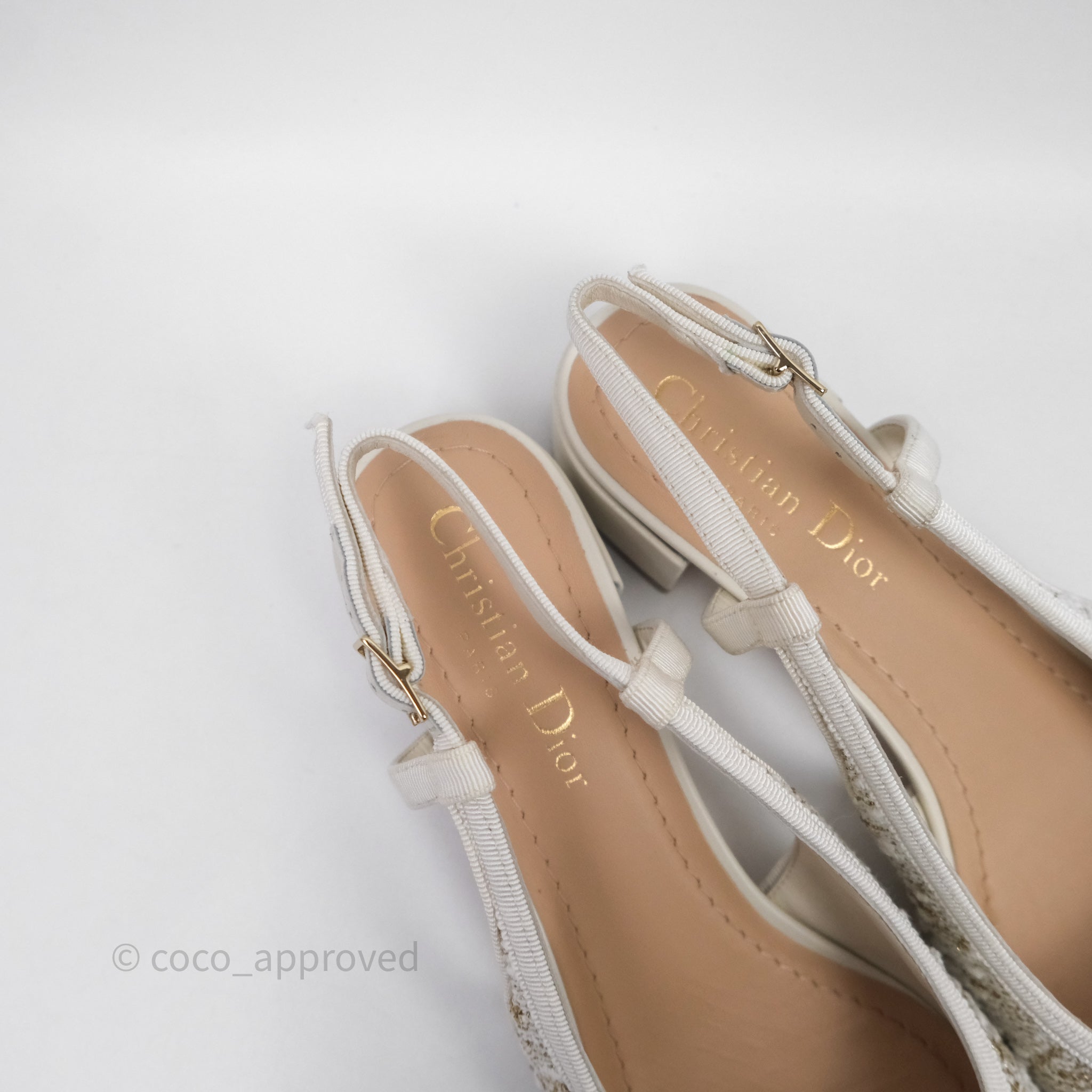 Dior Ballet Slingback Pump White Cannage Tweed Gold-Tone Metallic Thread