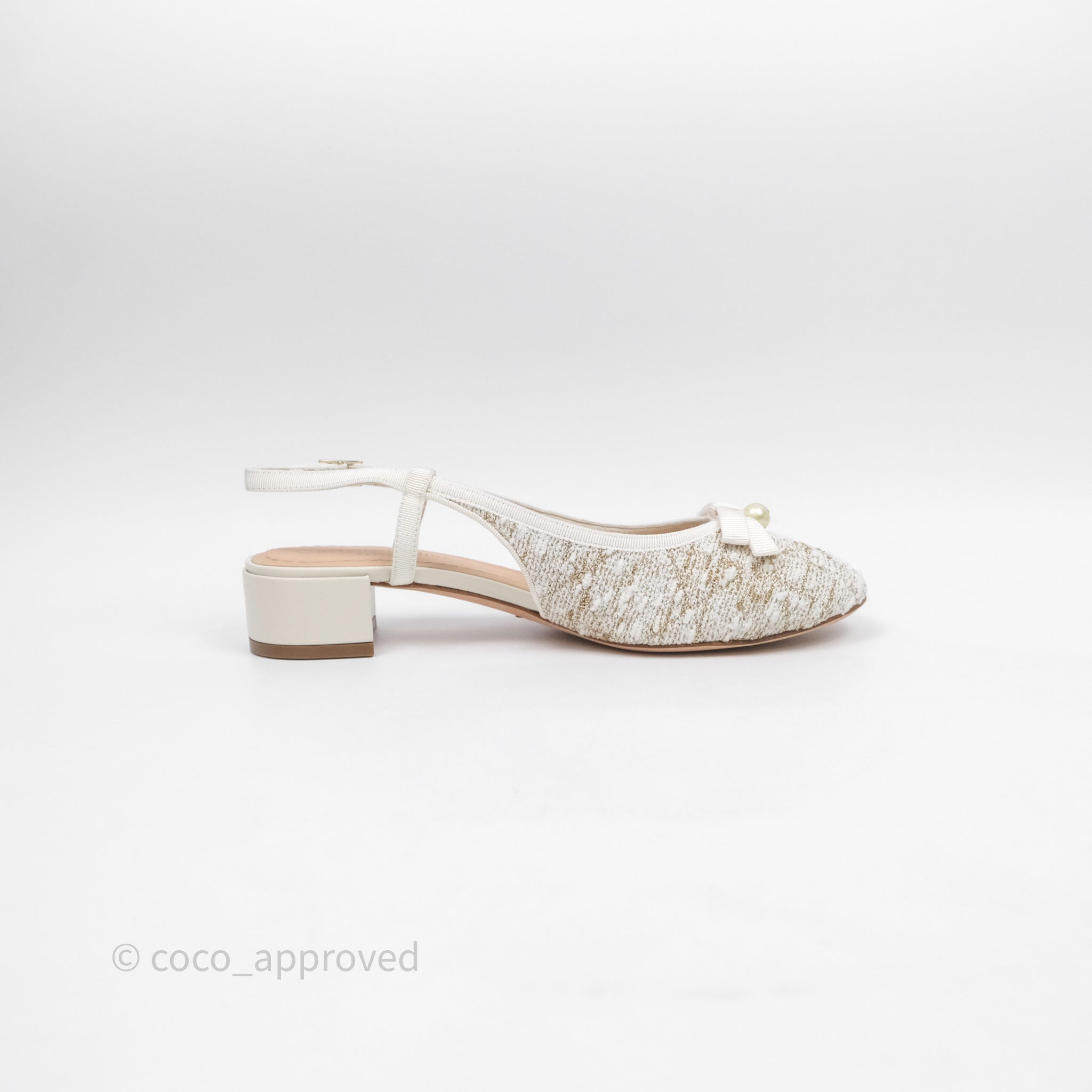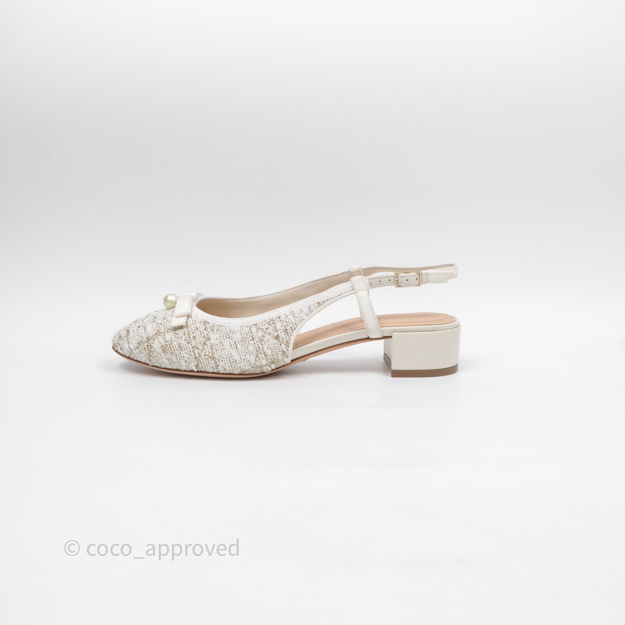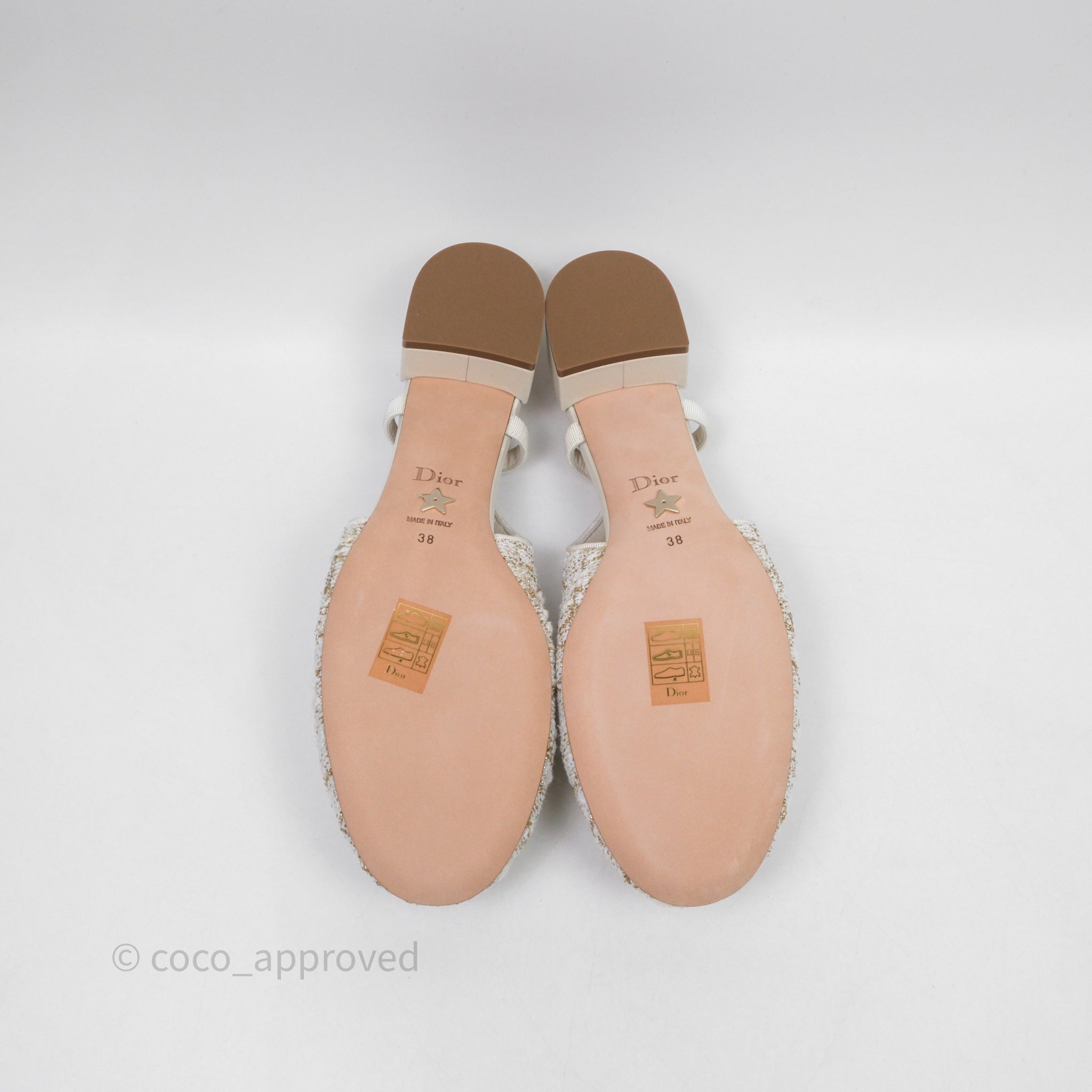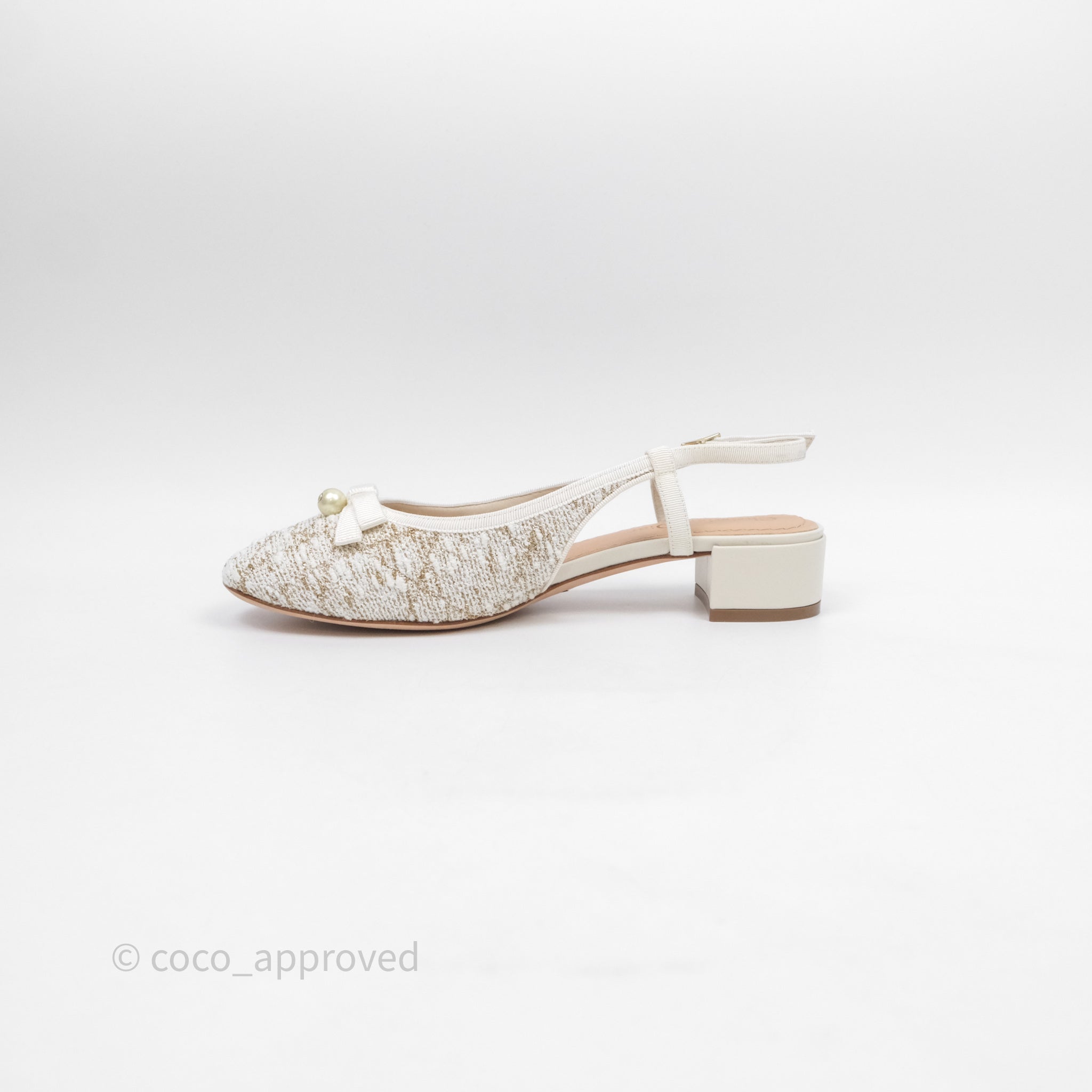 Dior Ballet Slingback Pump White Cannage Tweed Gold-Tone Metallic Thread