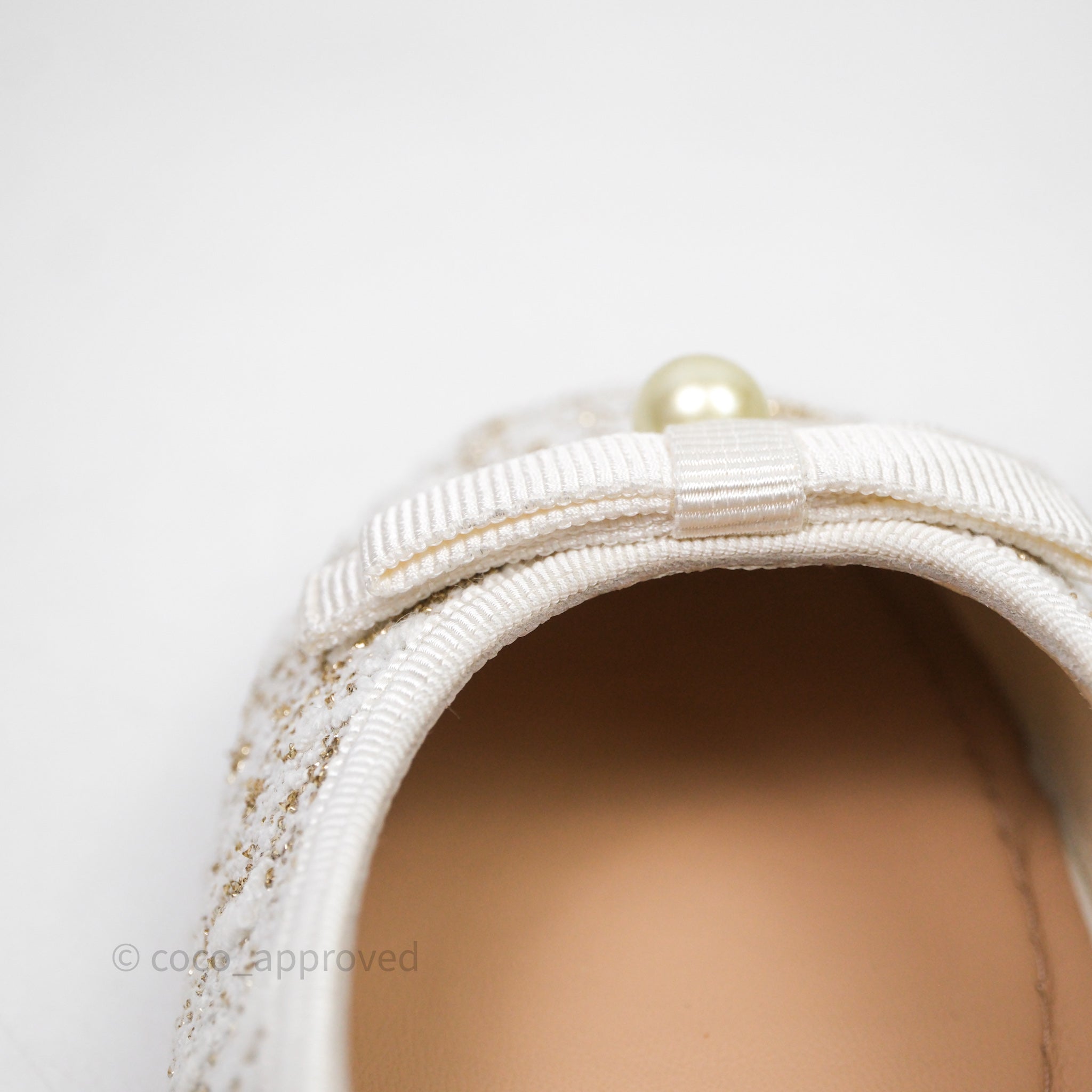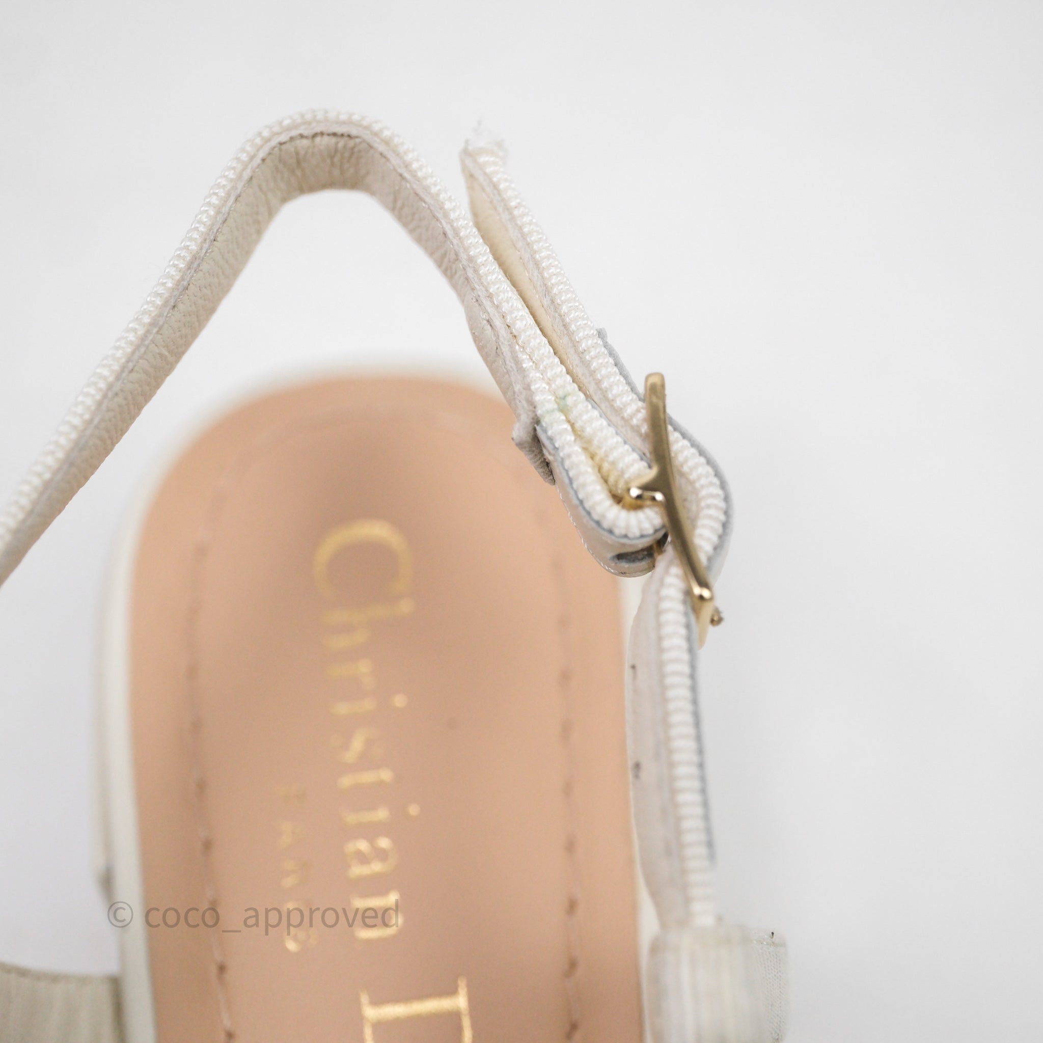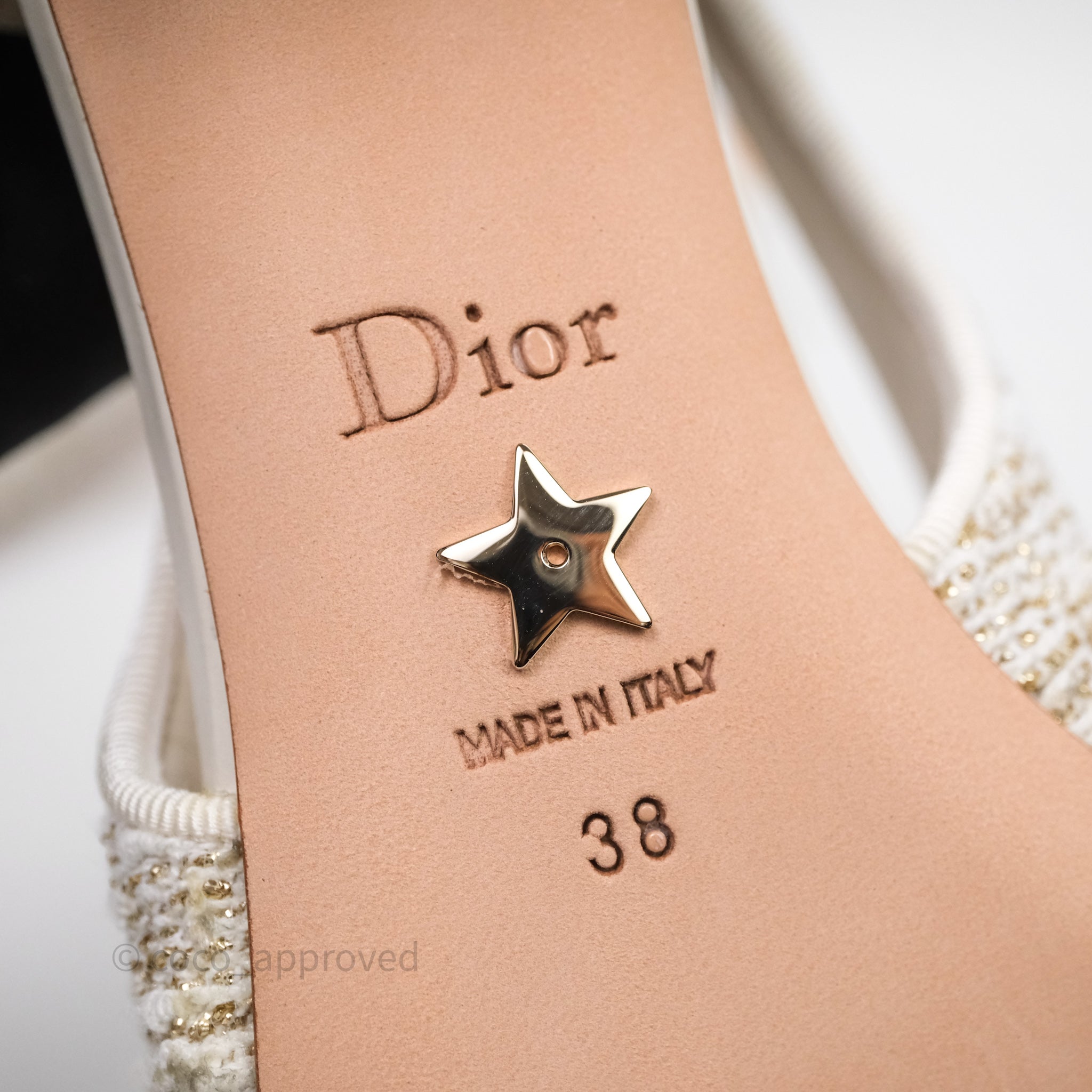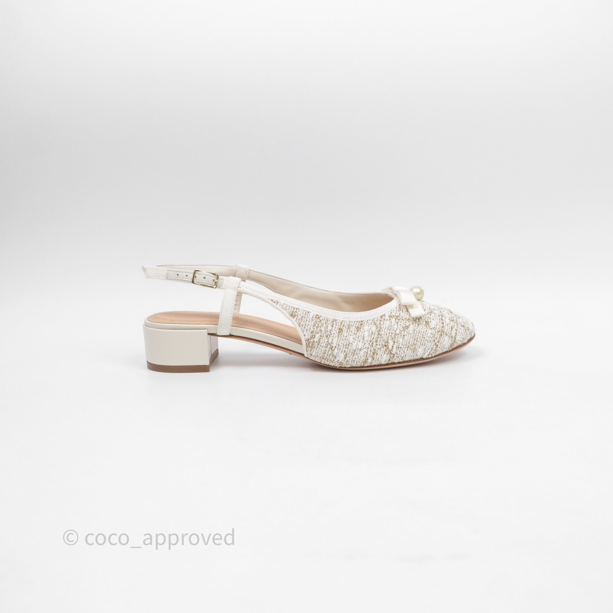 Dior Ballet Slingback Pump White Cannage Tweed Gold-Tone Metallic Thread