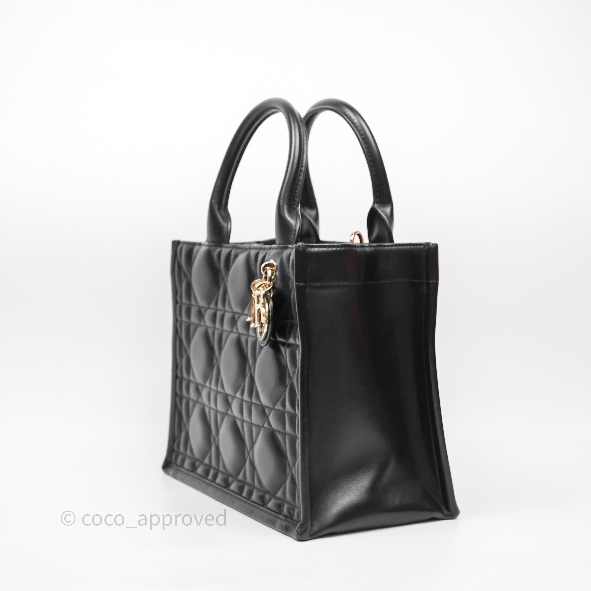 Christian Dior Small Dior Book Tote Black Macrocannage Calfskin Gold Hardware