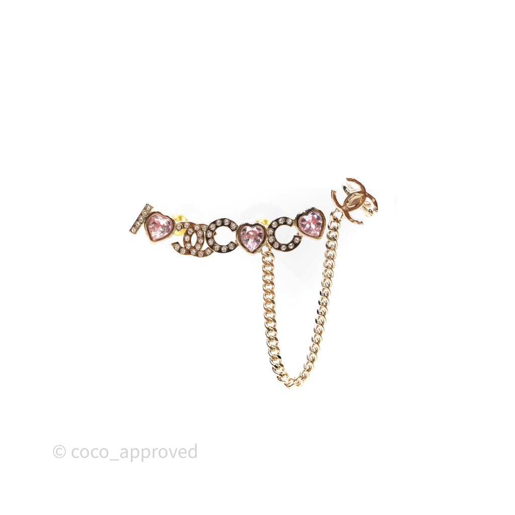 Chanel Crystal COCO Pink Heart Earrings Gold Tone 22B