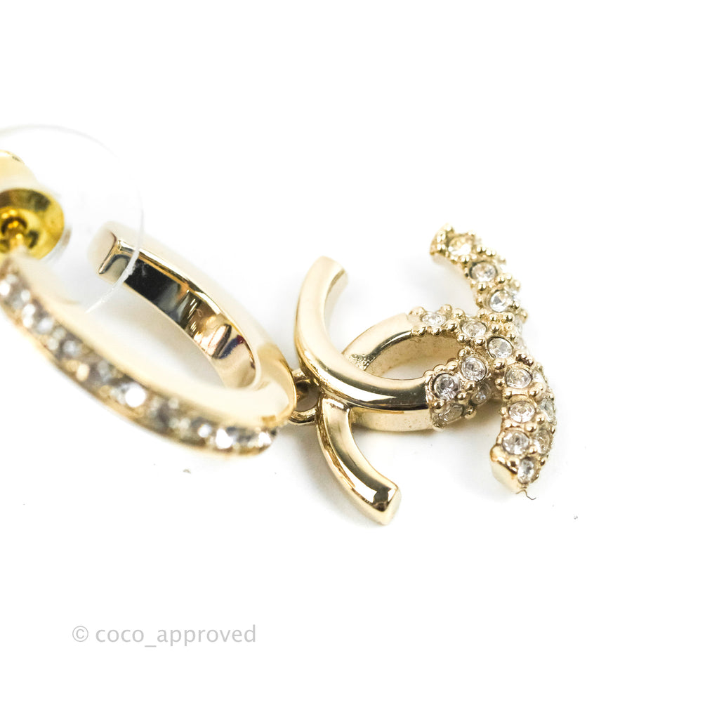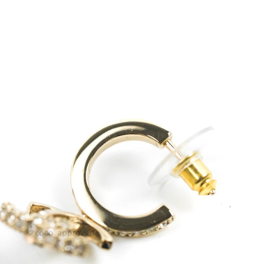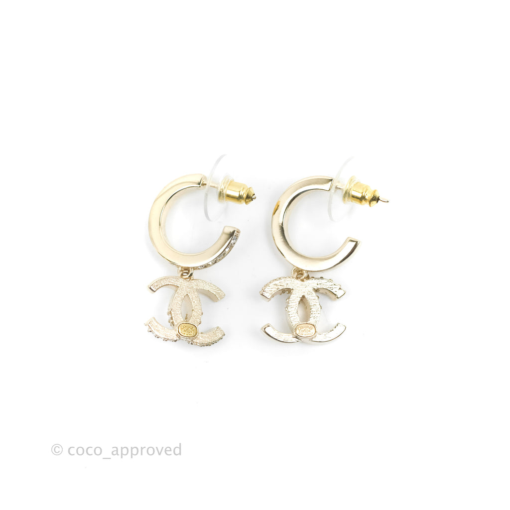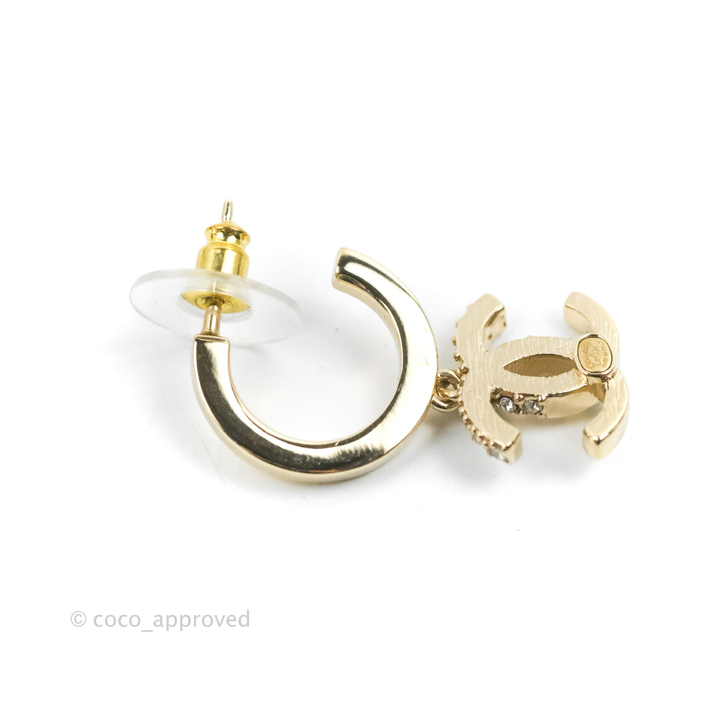 Chanel CC Crystal Hoop Earrings Gold Tone 22K