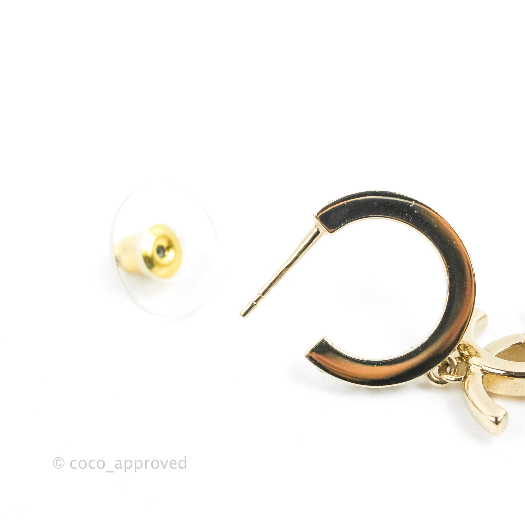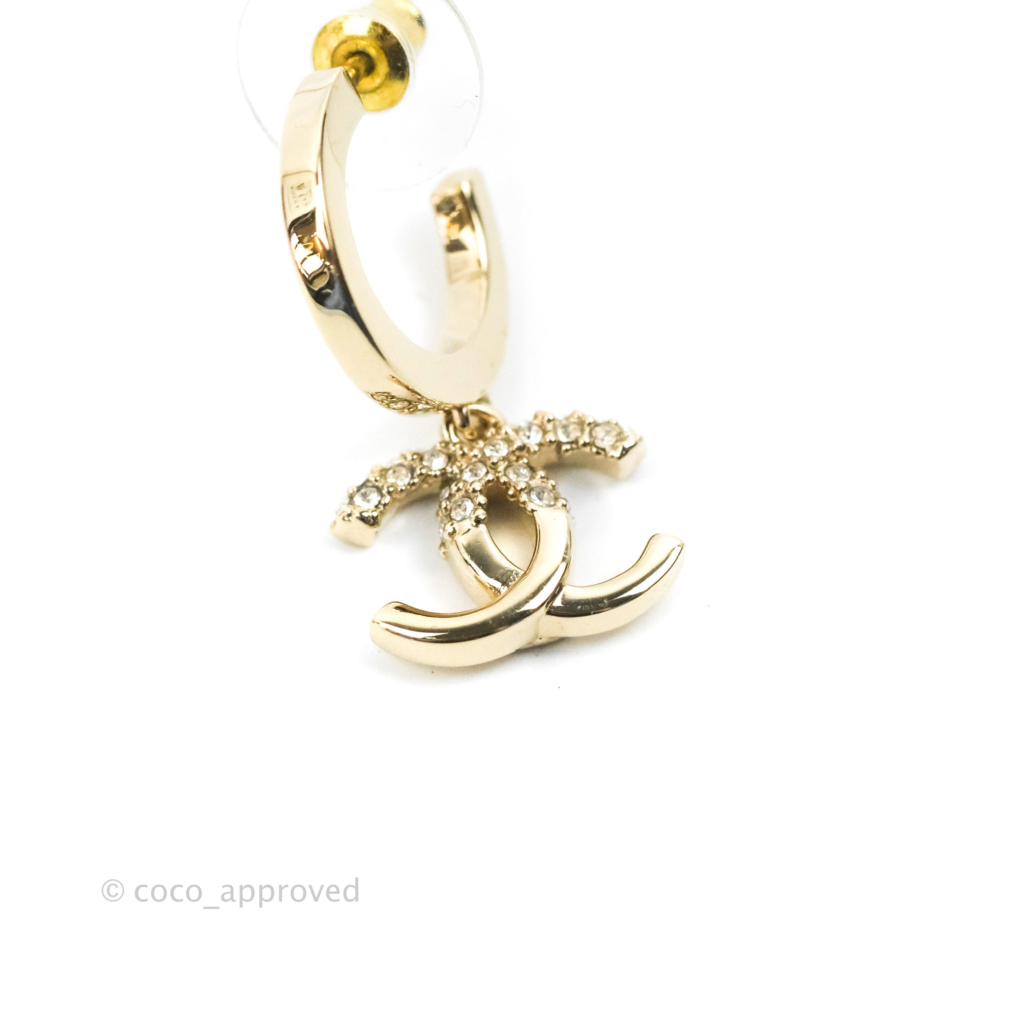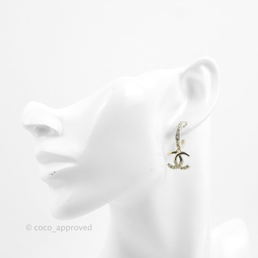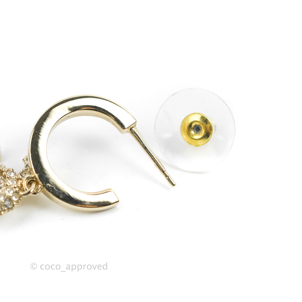 Chanel CC Crystal Hoop Earrings Gold Tone 22K