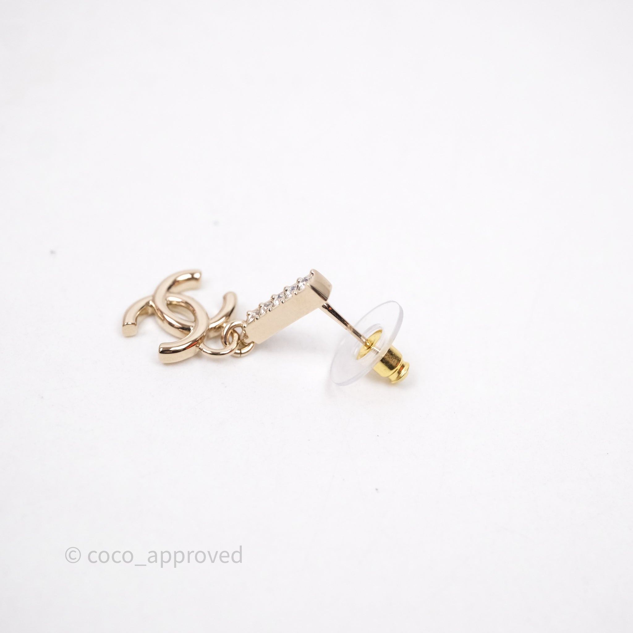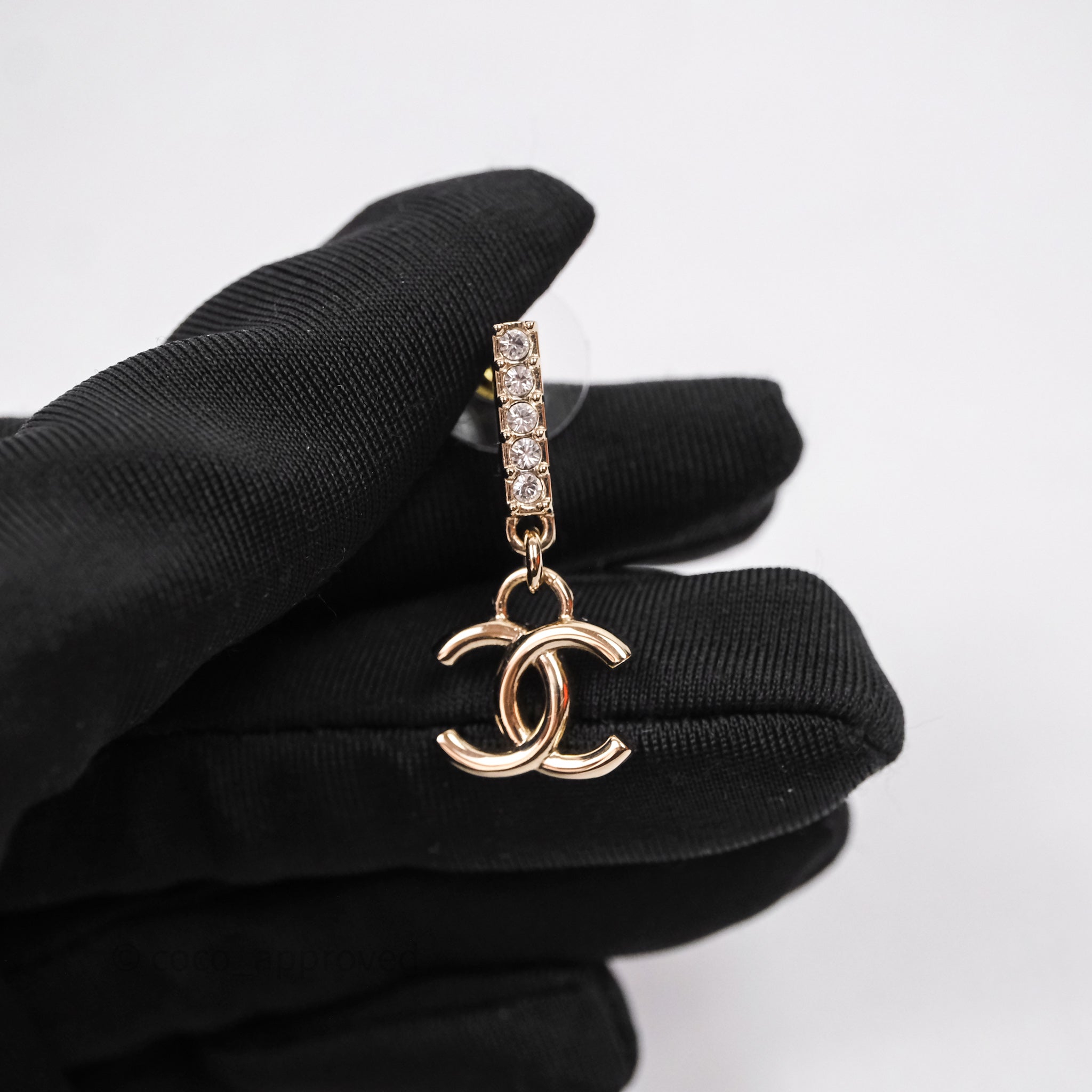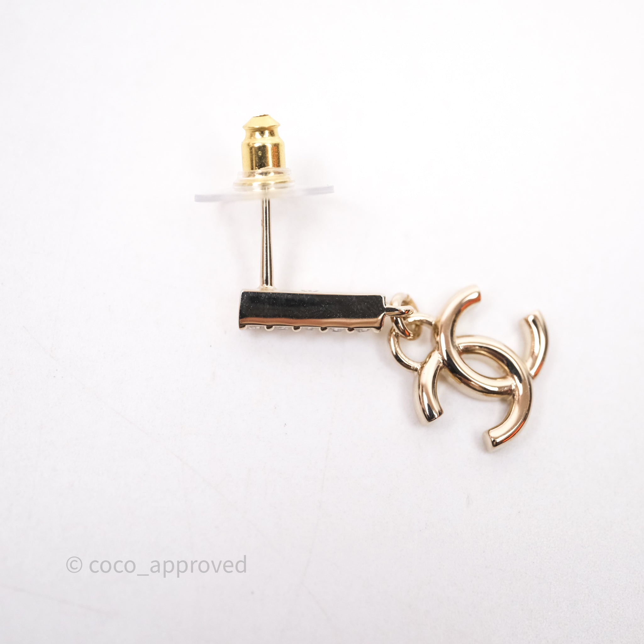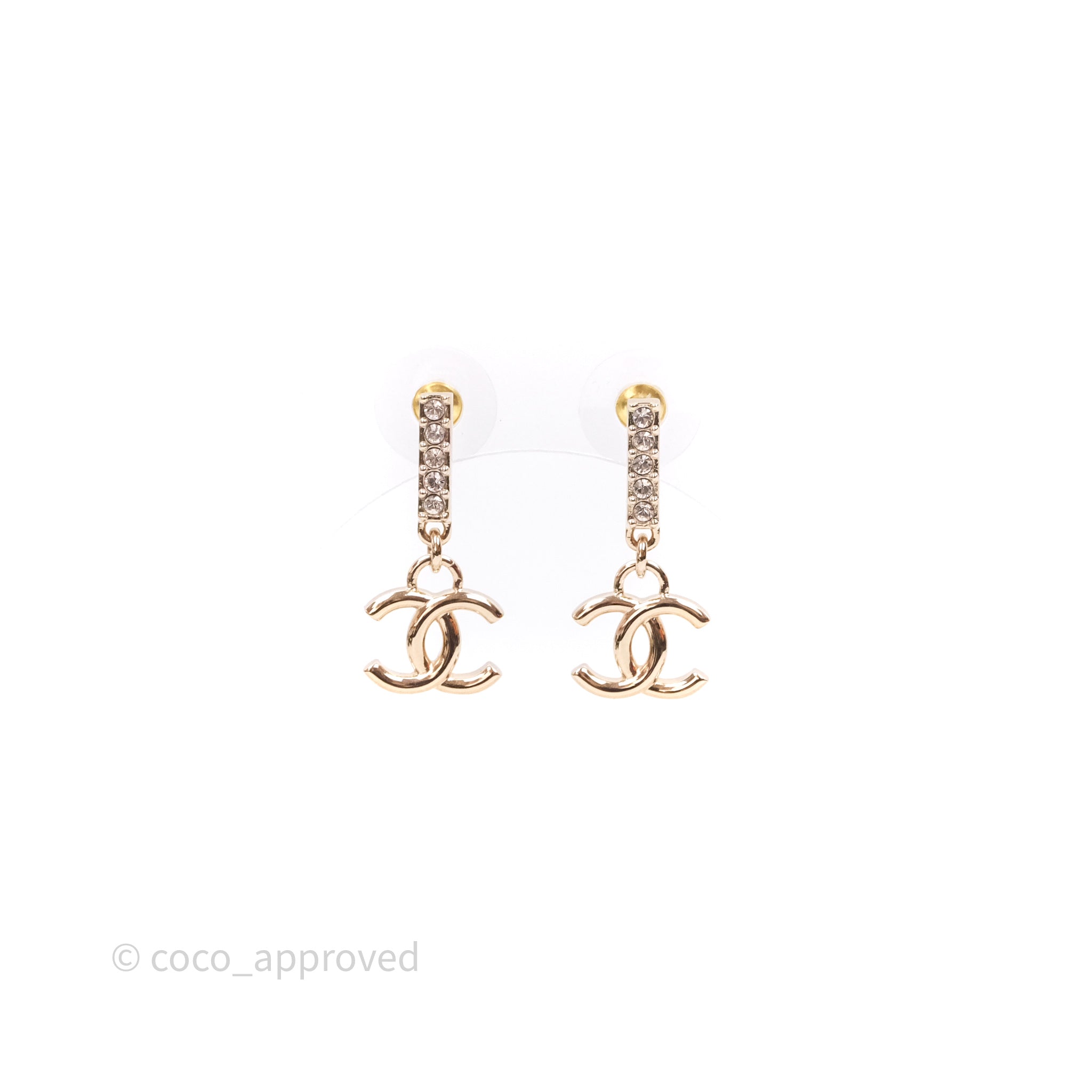 Chanel CC Crystals Drop Earrings Gold Tone 24V