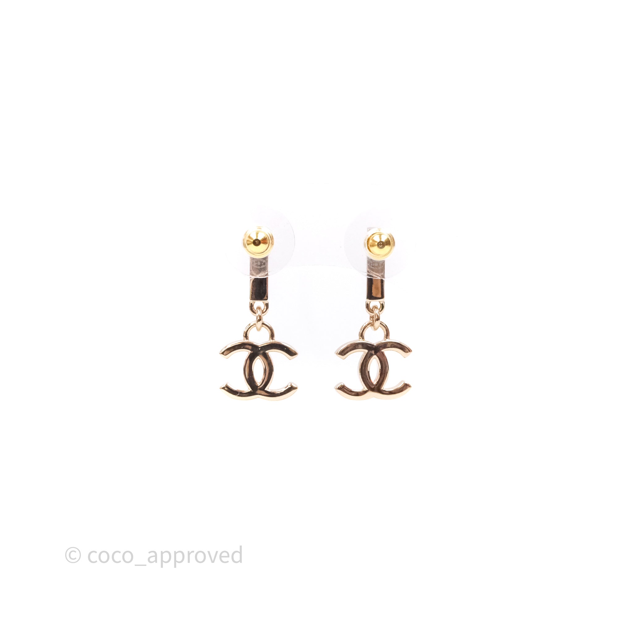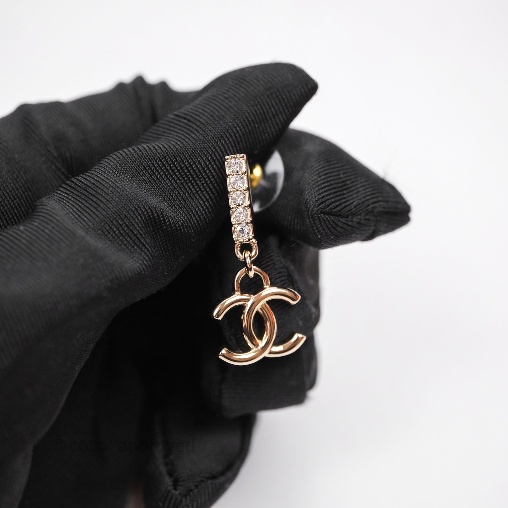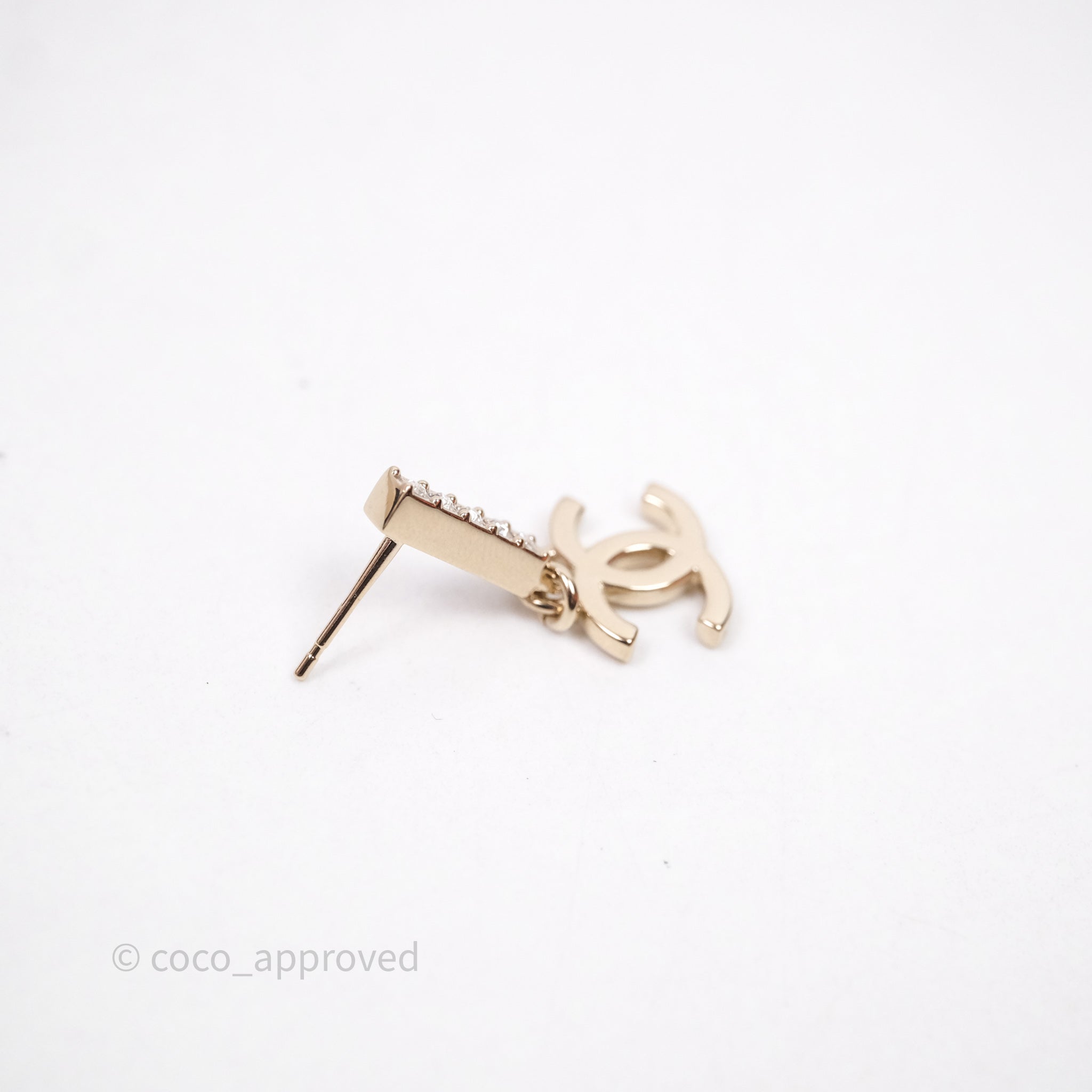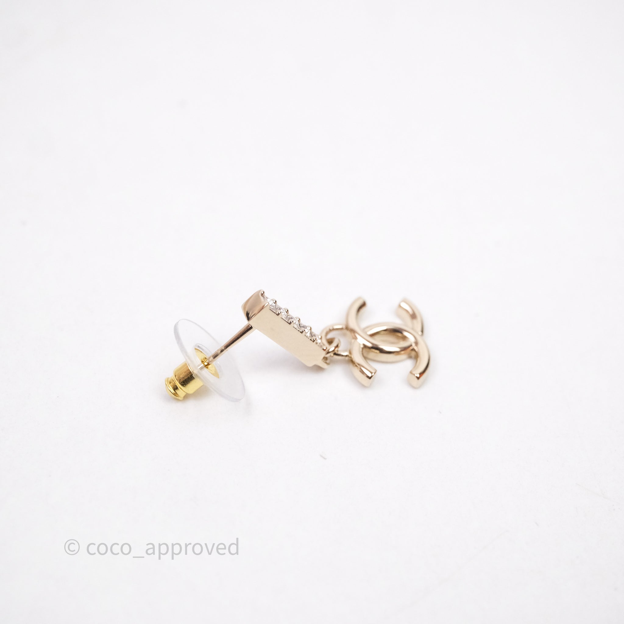 Chanel CC Crystals Drop Earrings Gold Tone 24V