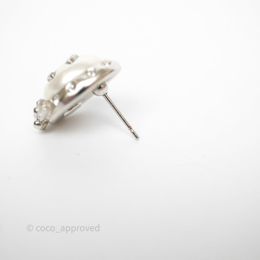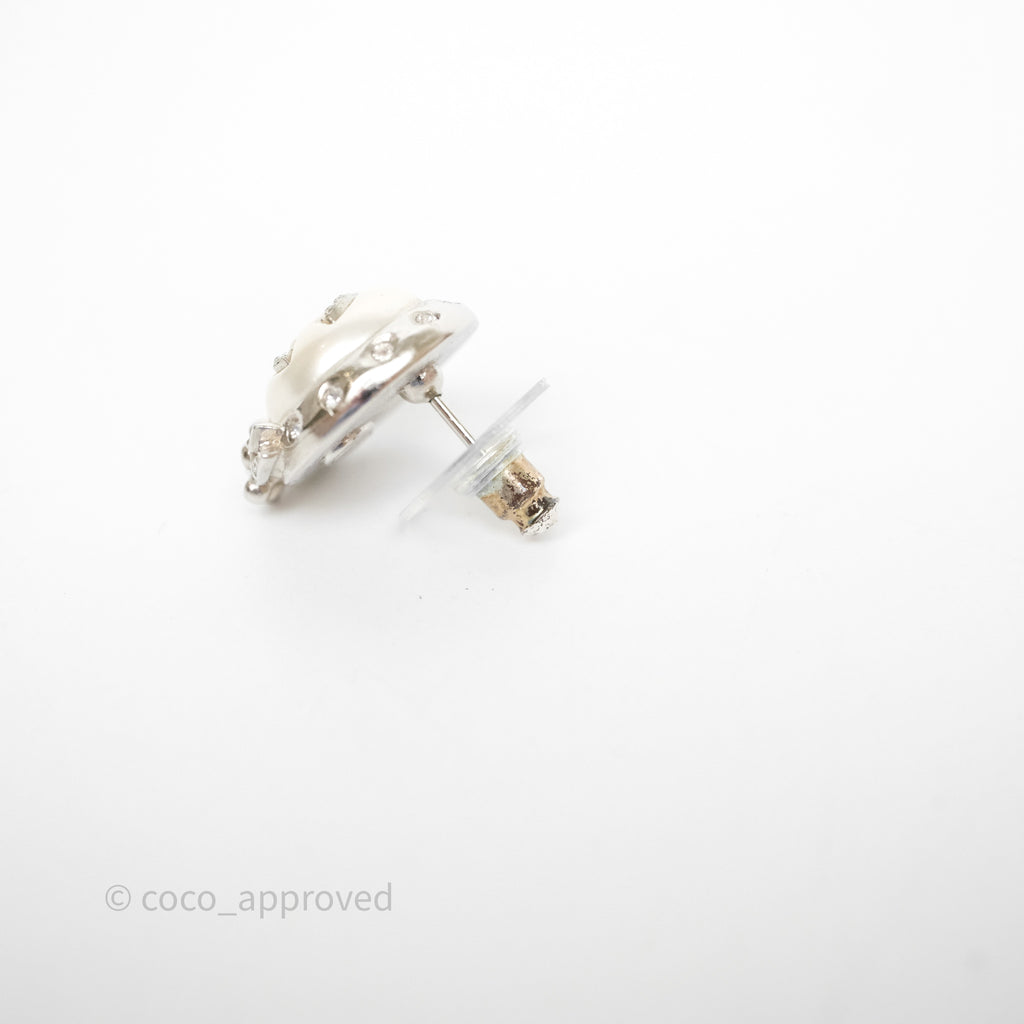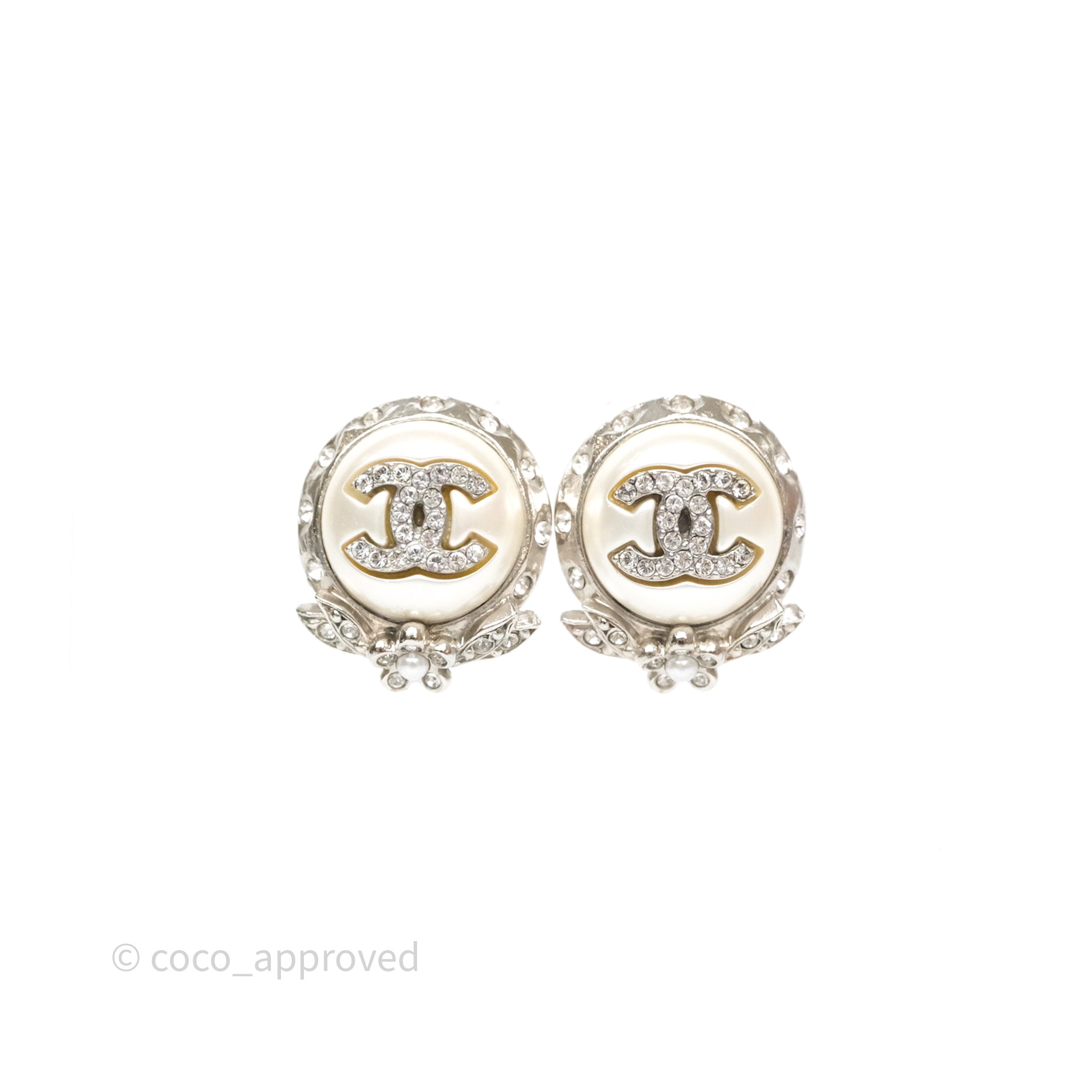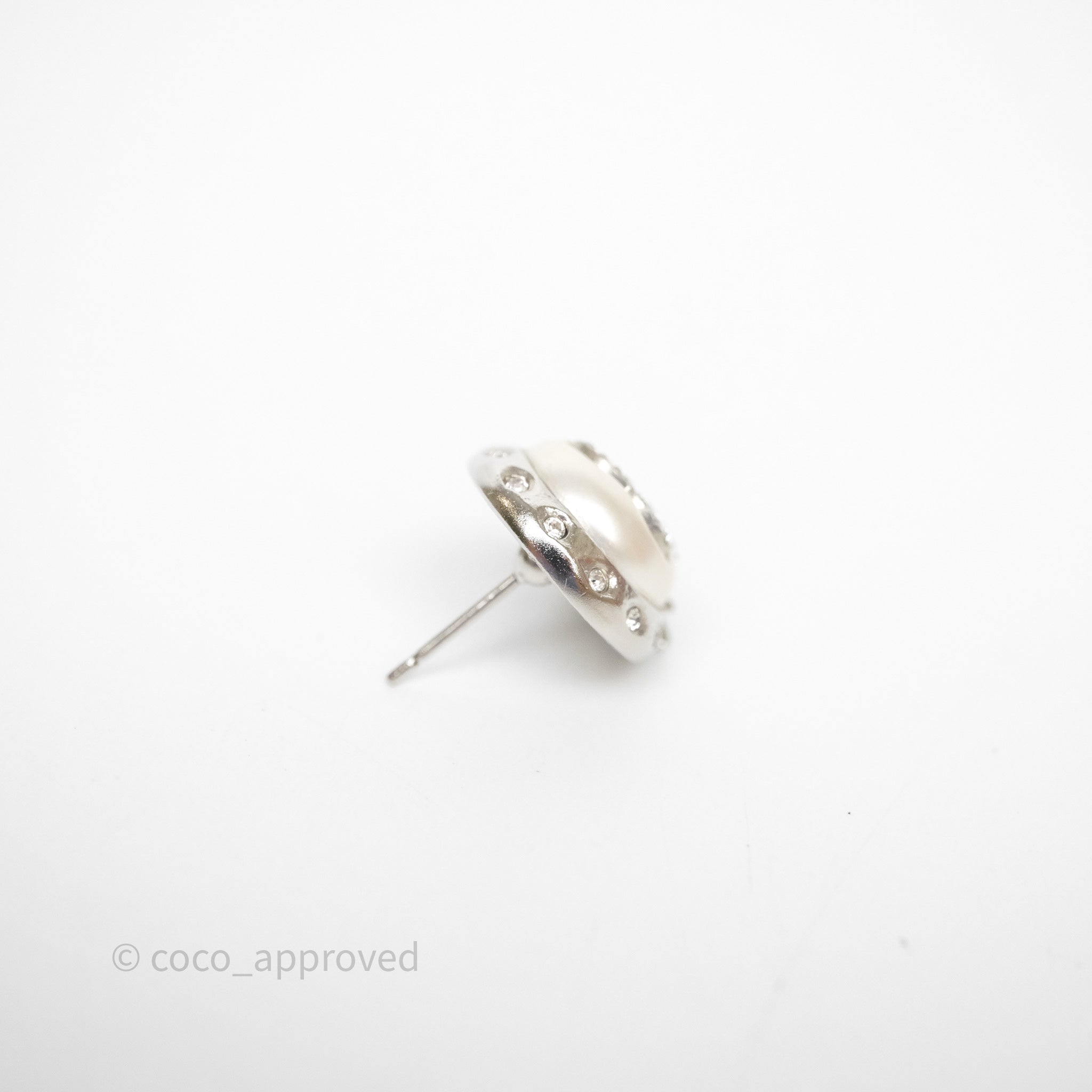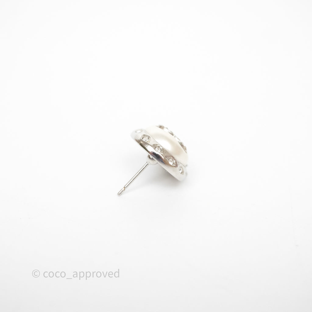Chanel CC Pearl Crystal Rounded Earrings Silver Tone 21B