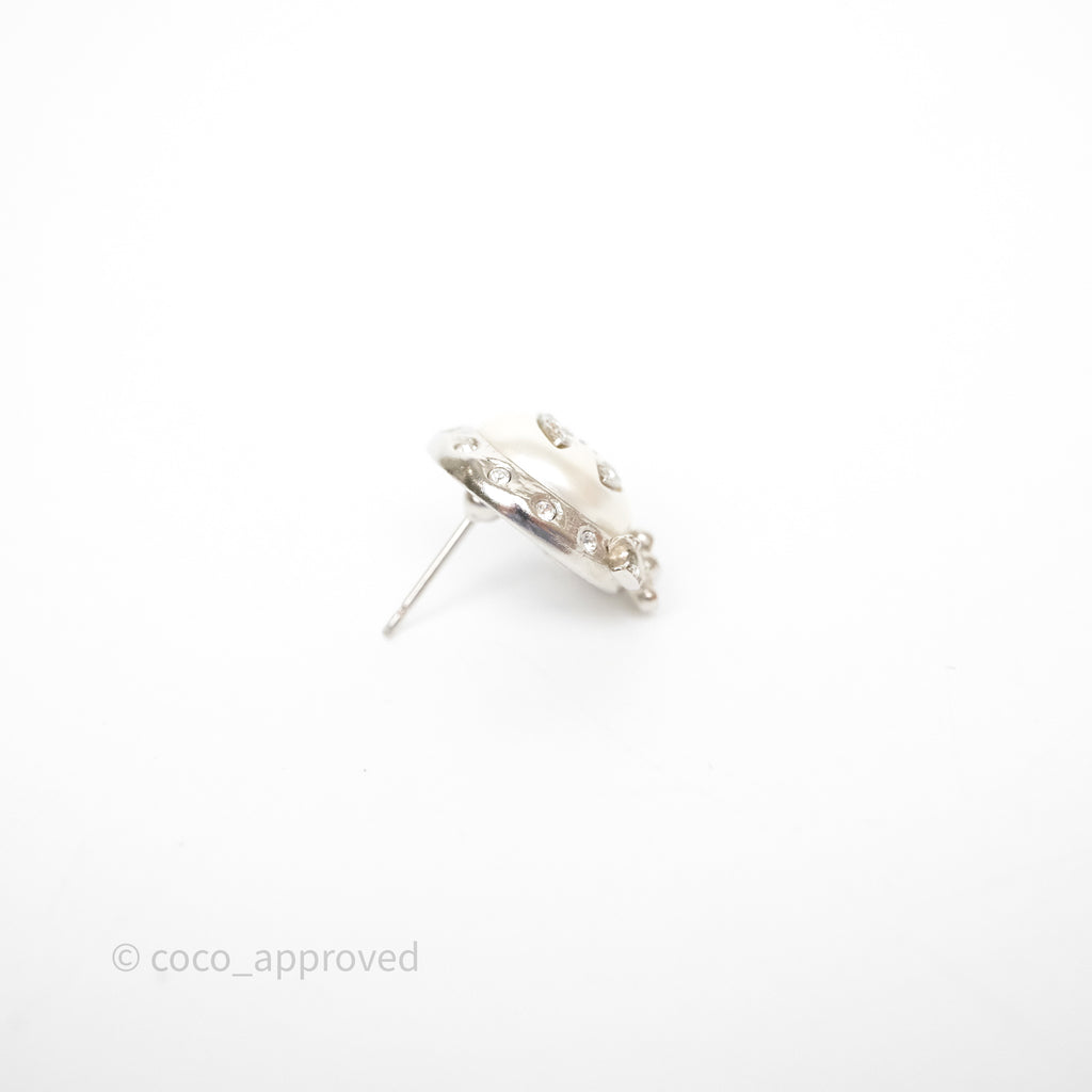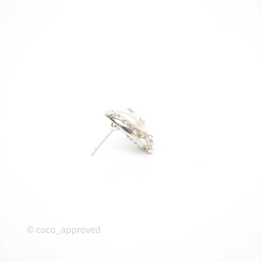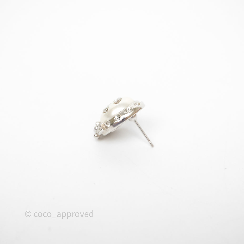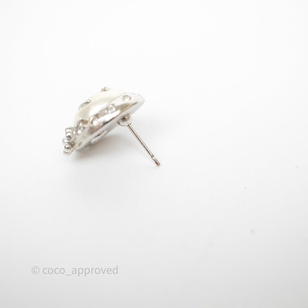Chanel CC Pearl Crystal Rounded Earrings Silver Tone 21B