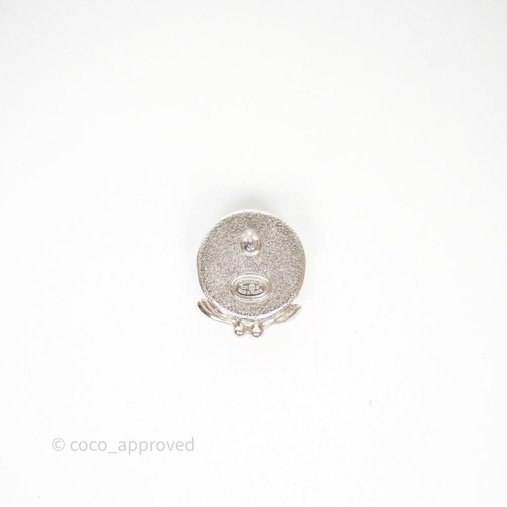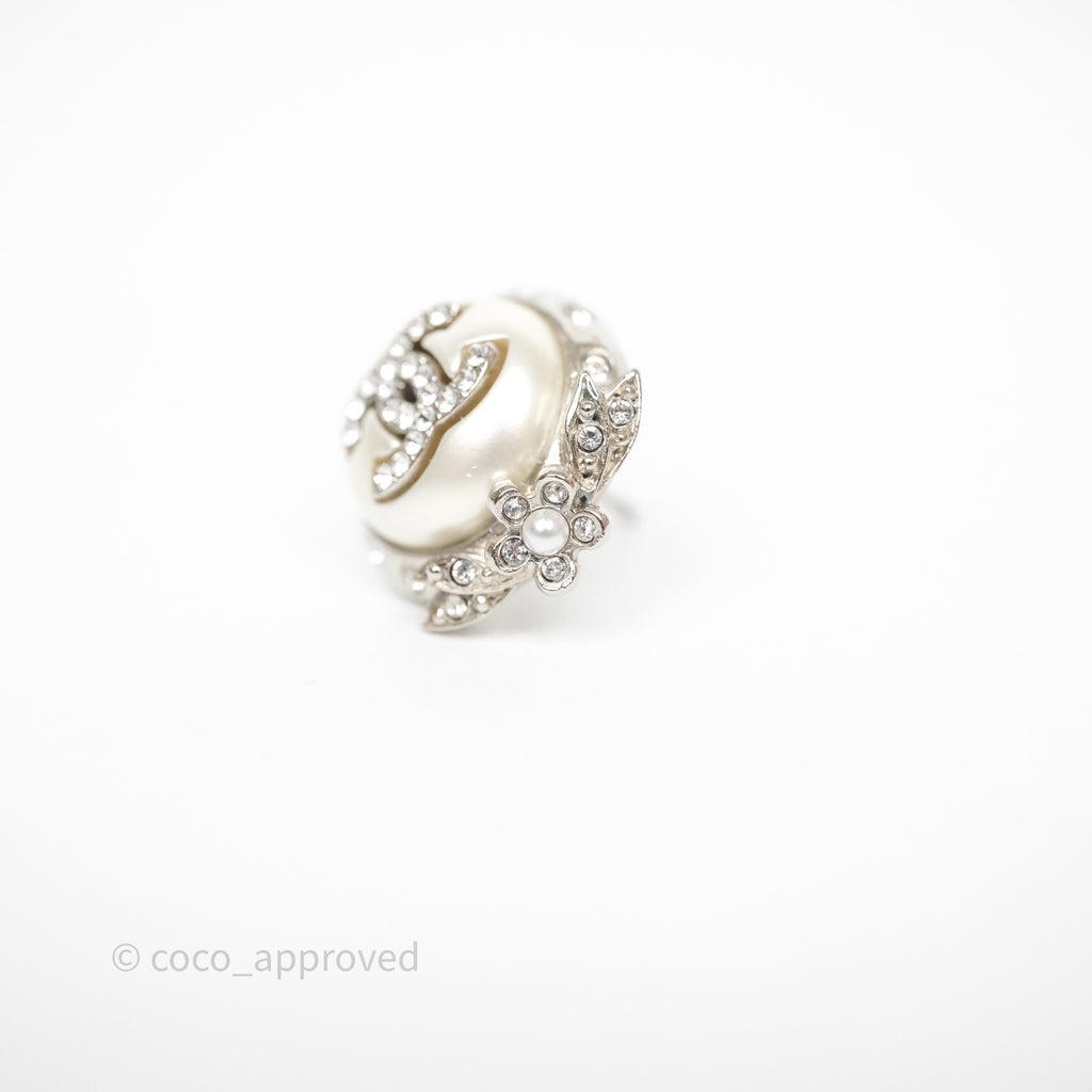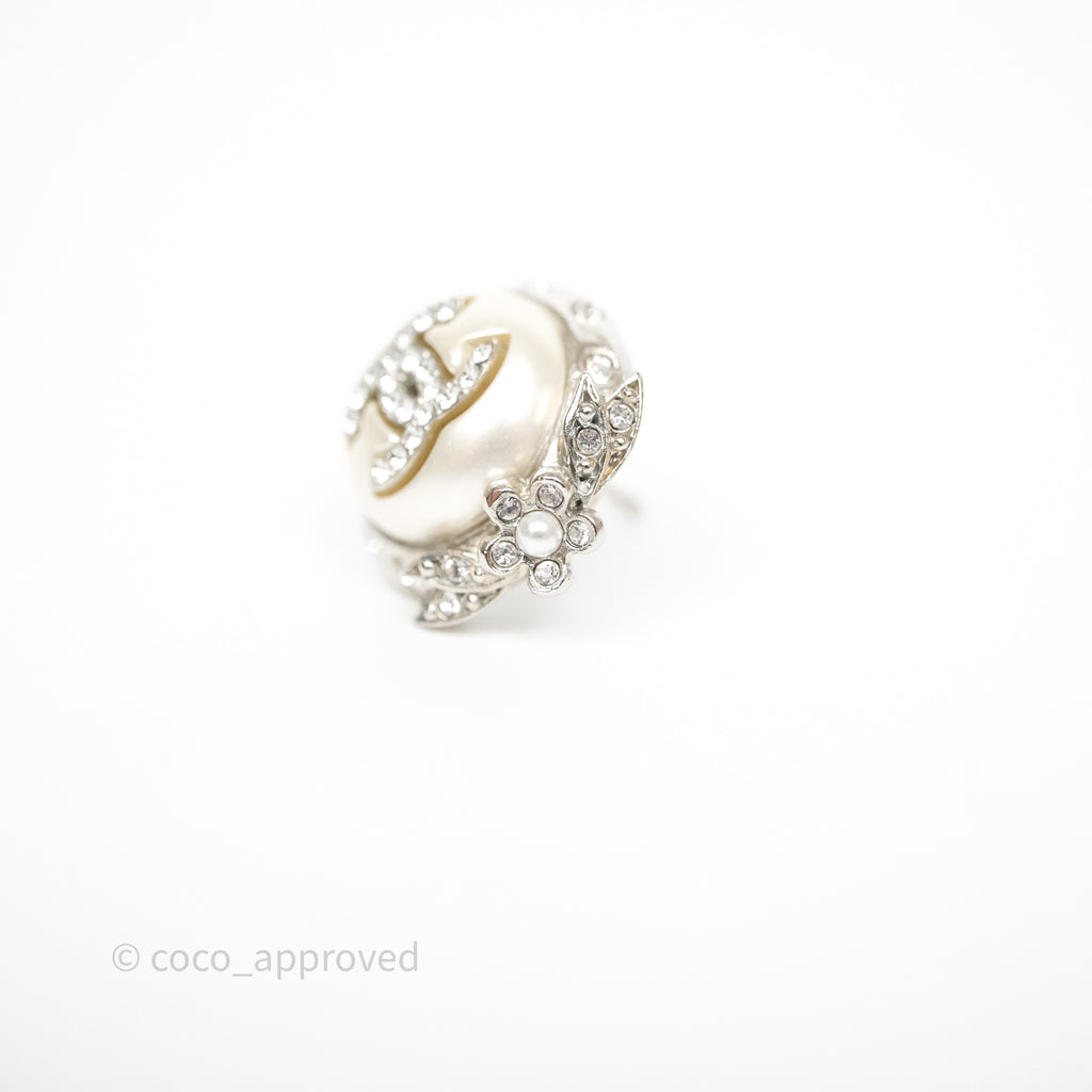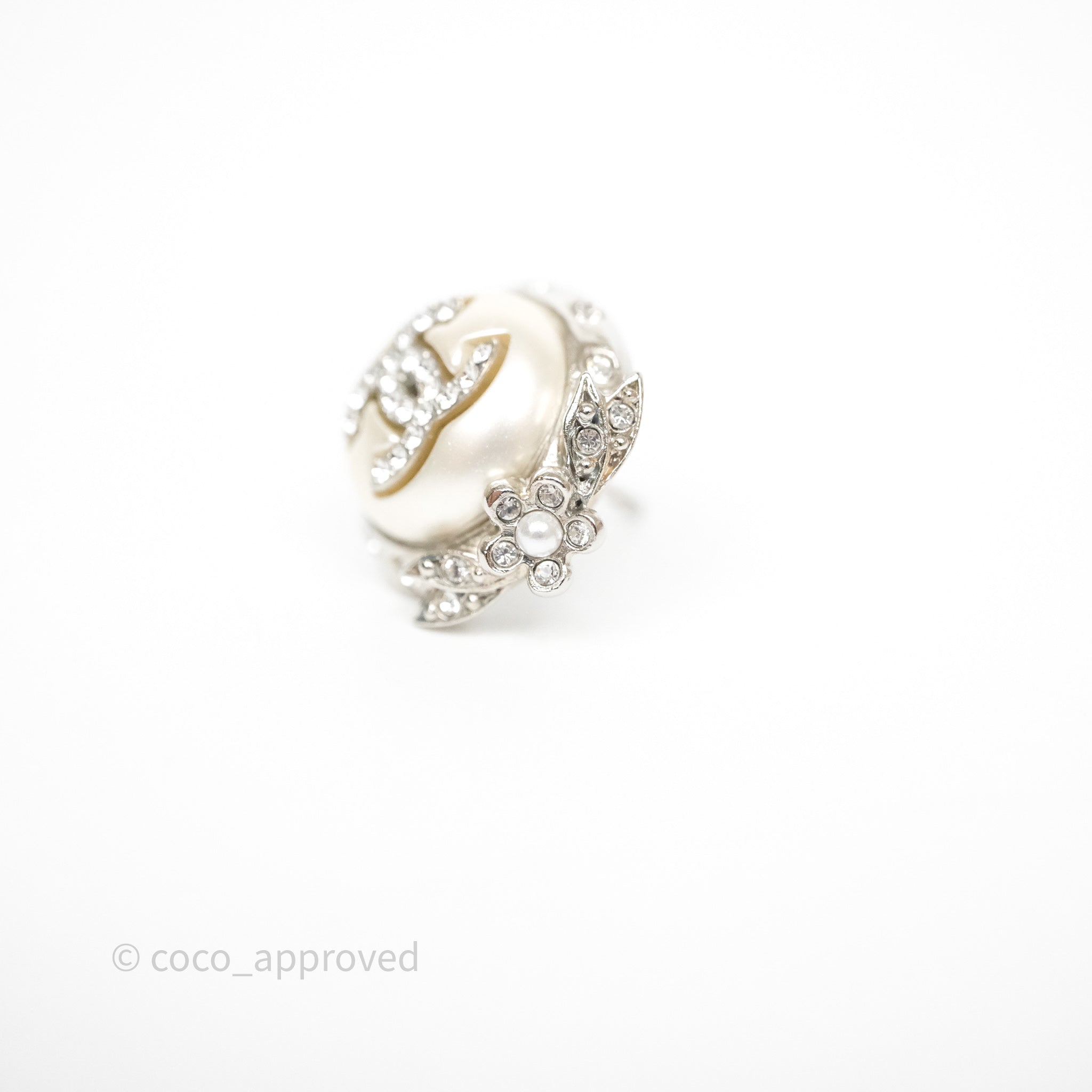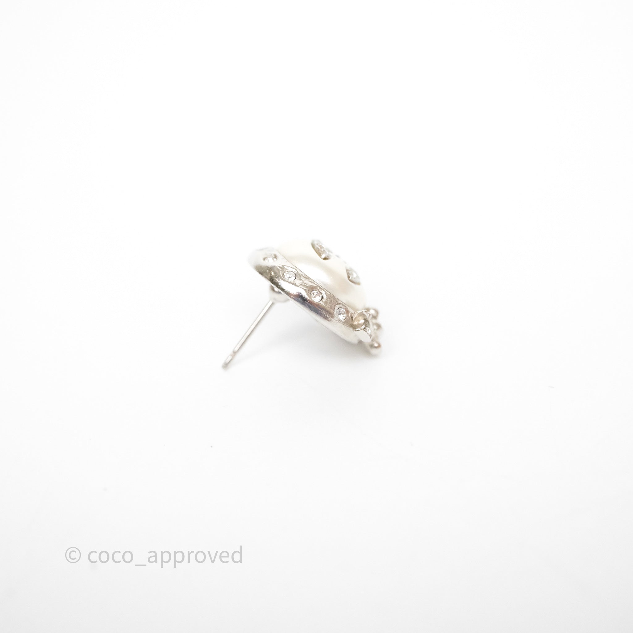 Chanel CC Pearl Crystal Rounded Earrings Silver Tone 21B