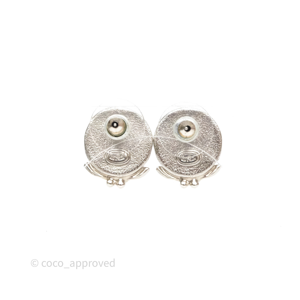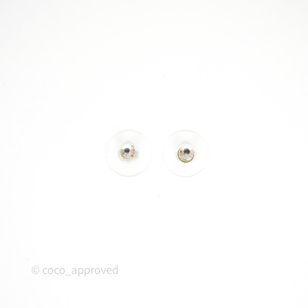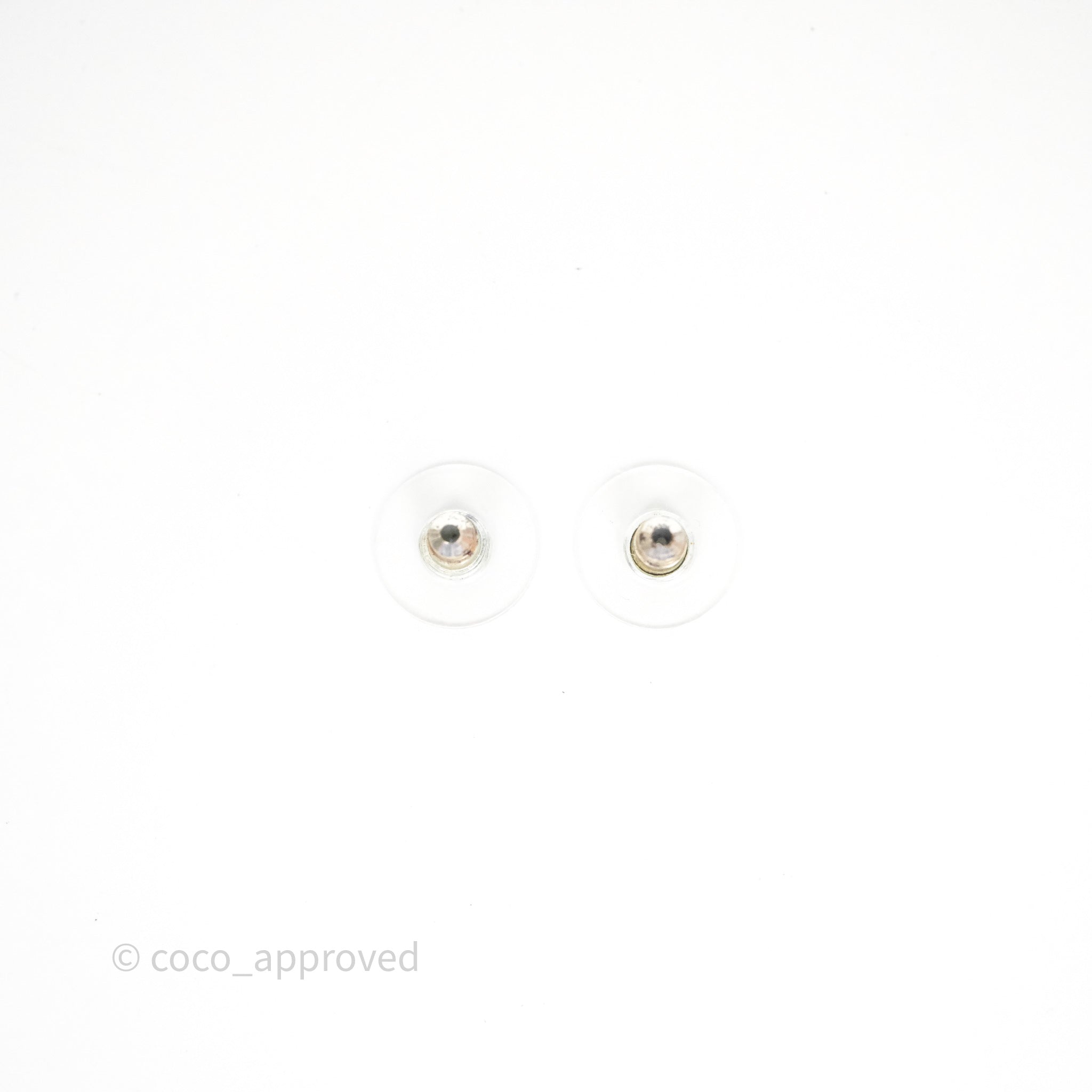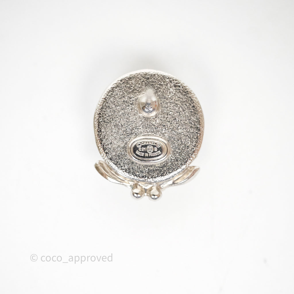 Chanel CC Pearl Crystal Rounded Earrings Silver Tone 21B