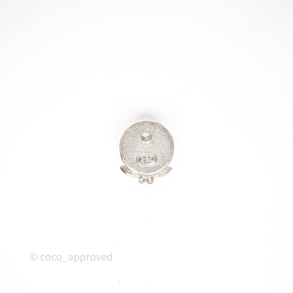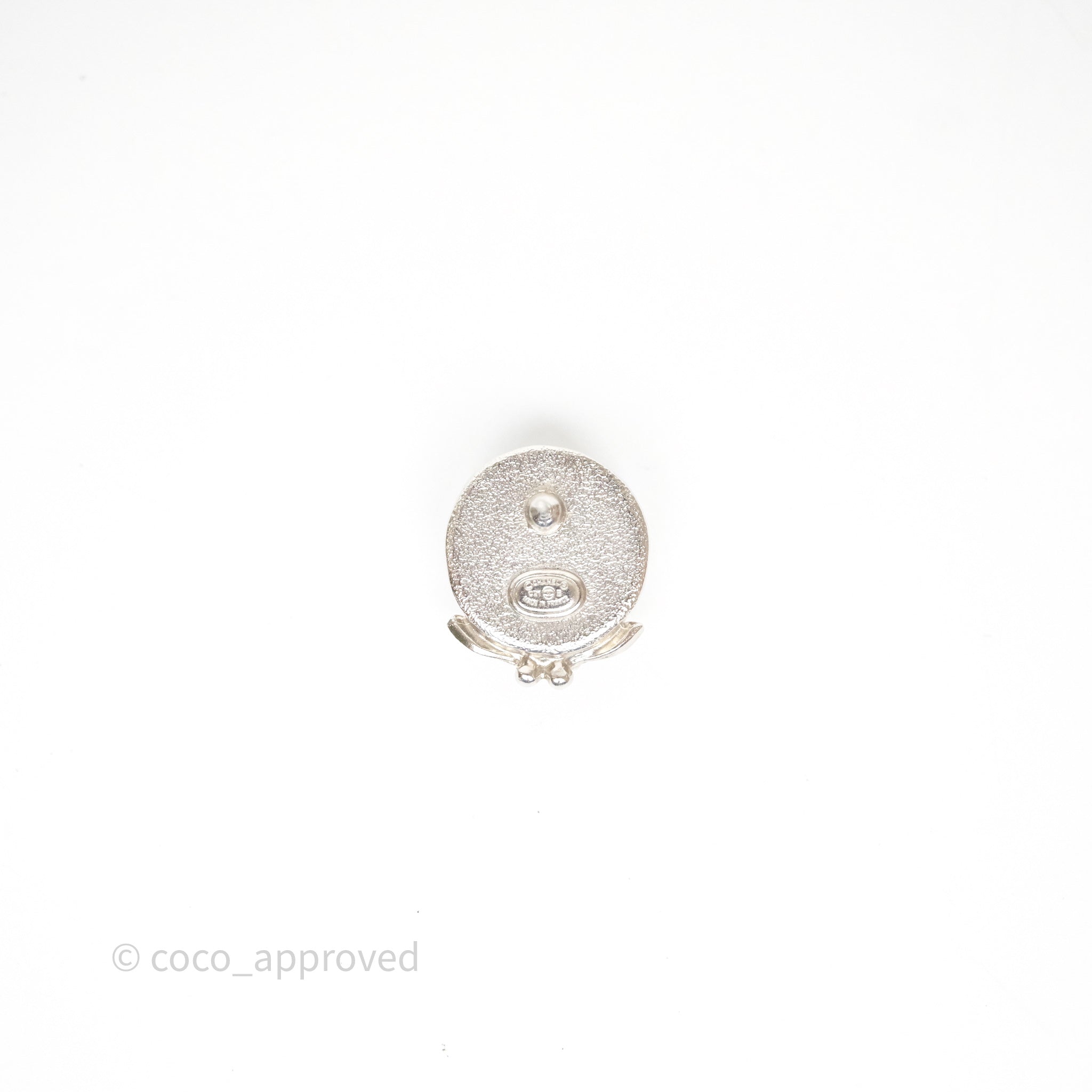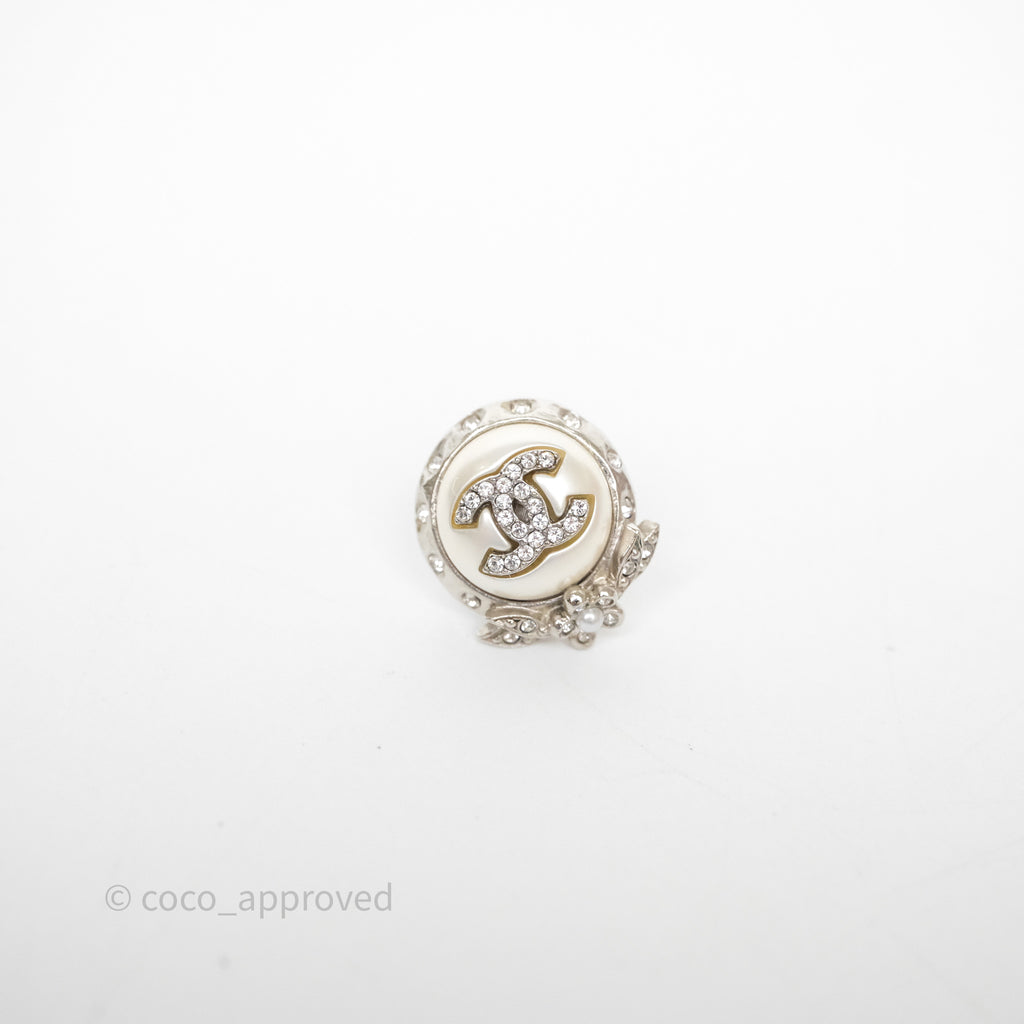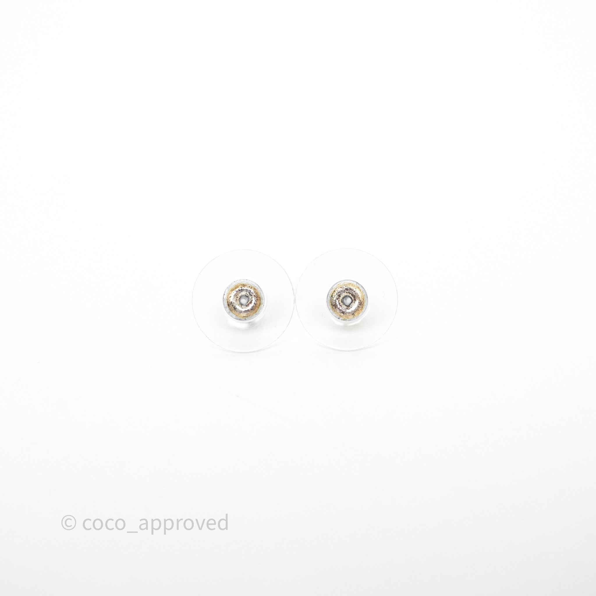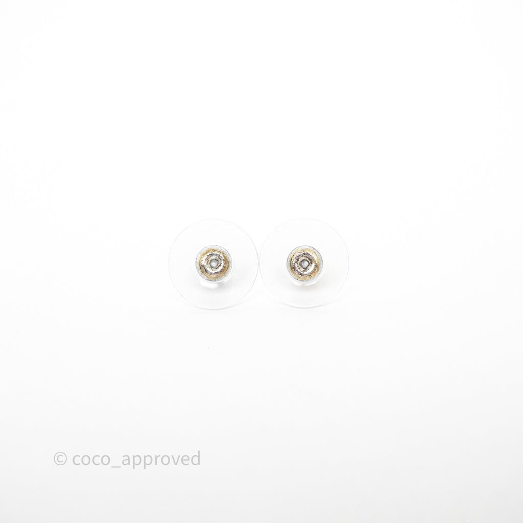 Chanel CC Pearl Crystal Rounded Earrings Silver Tone 21B