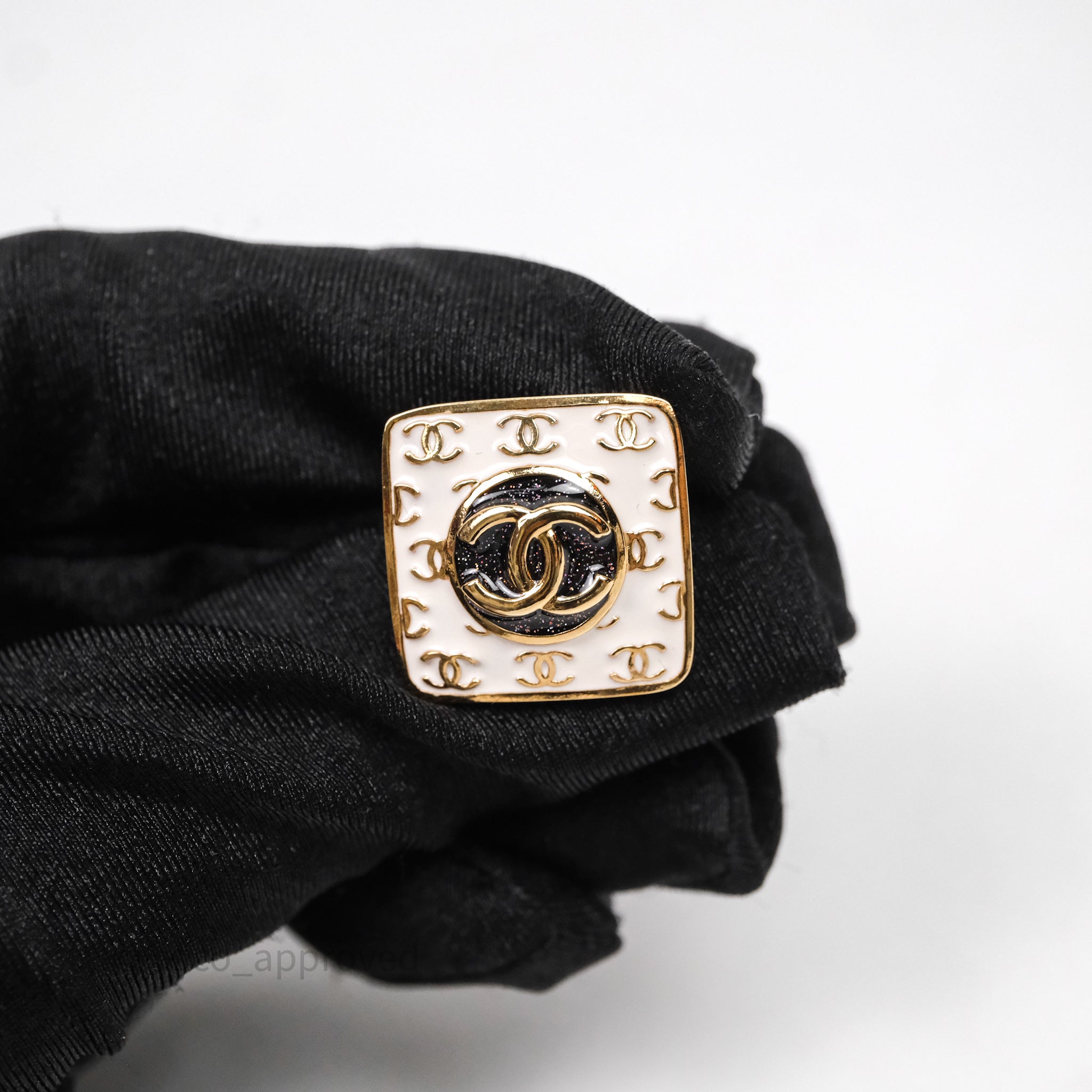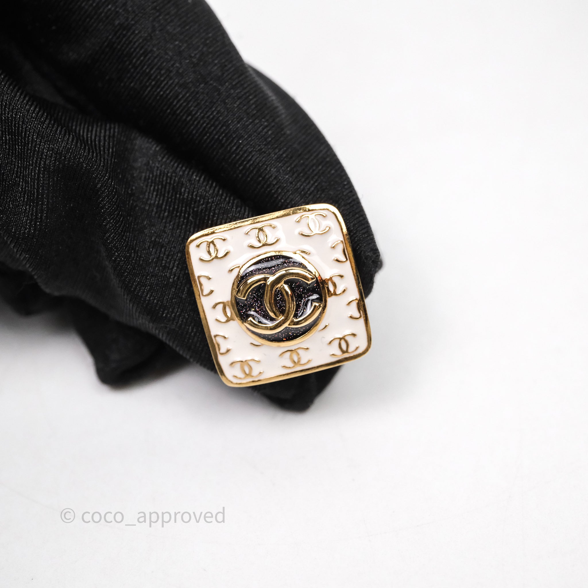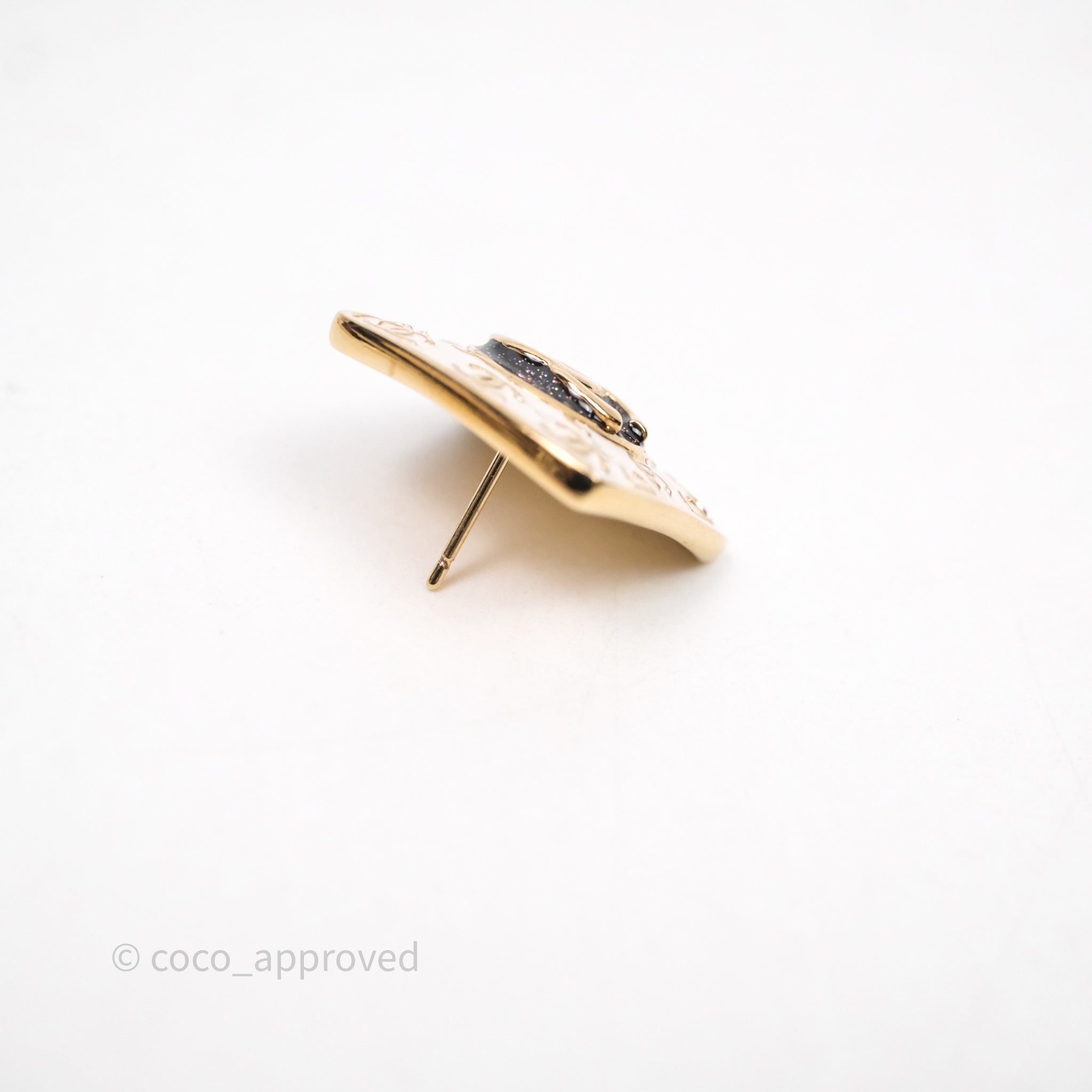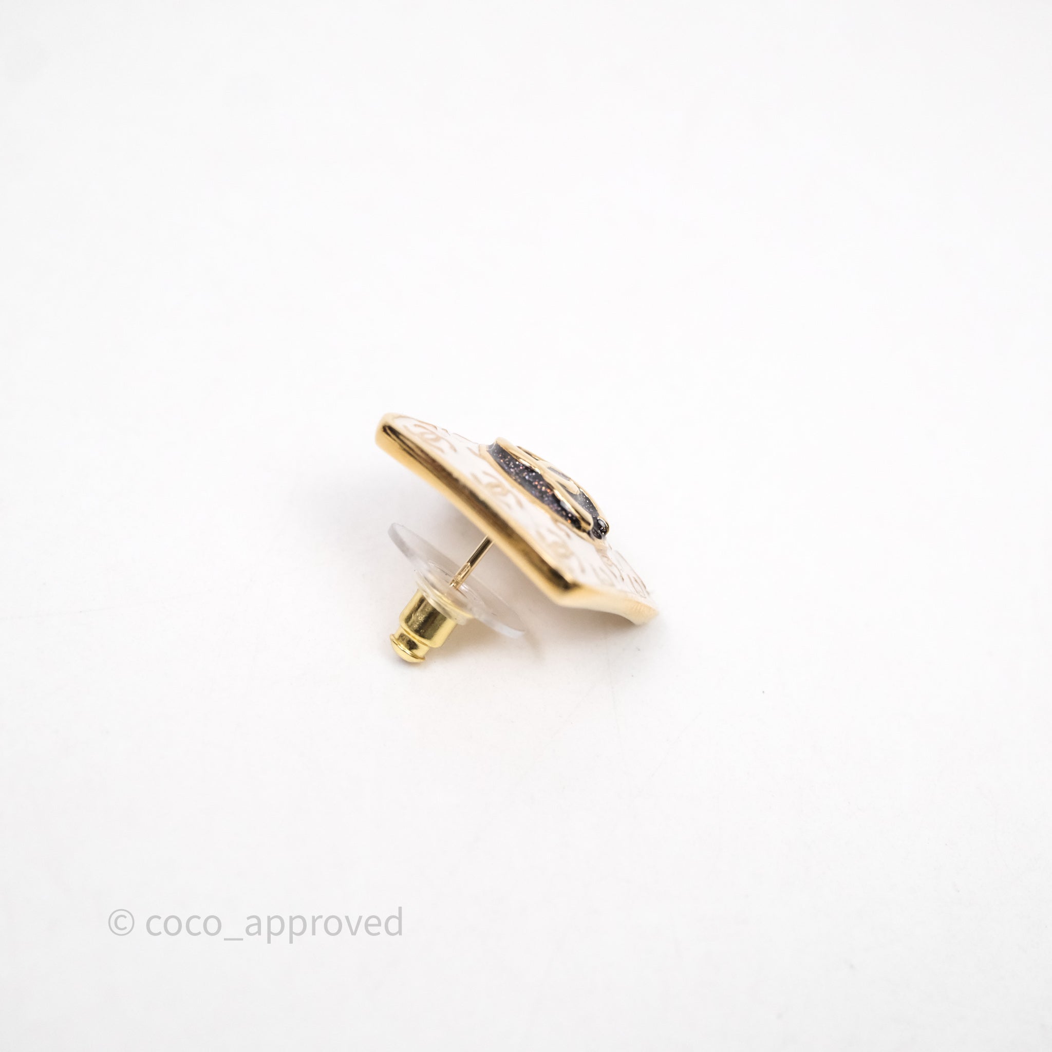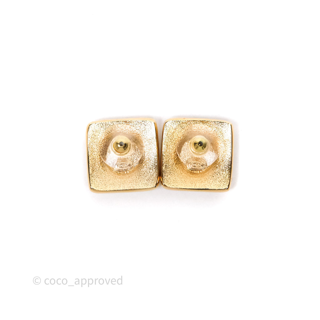 Chanel CC White Resin Square Earrings Gold Tone 24C