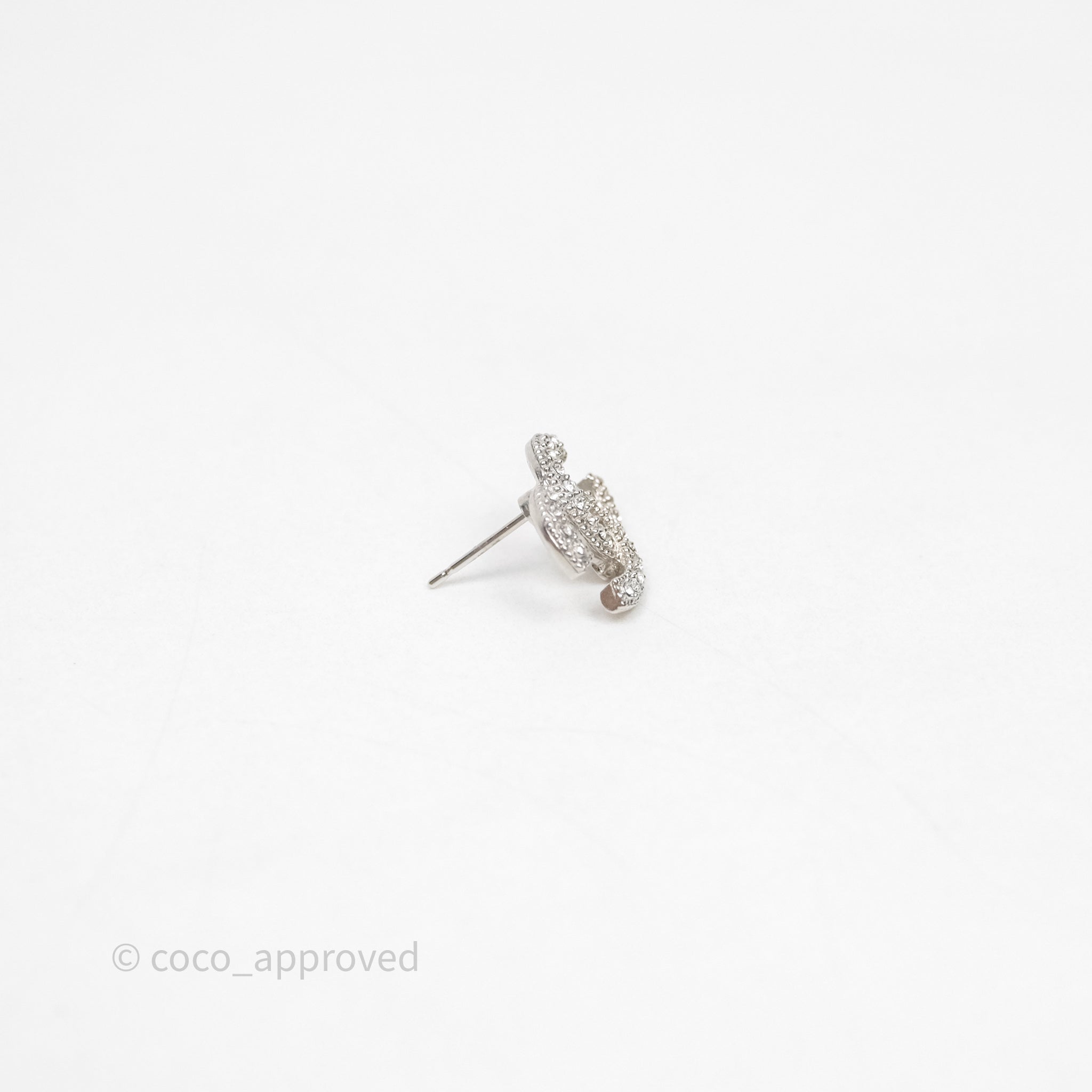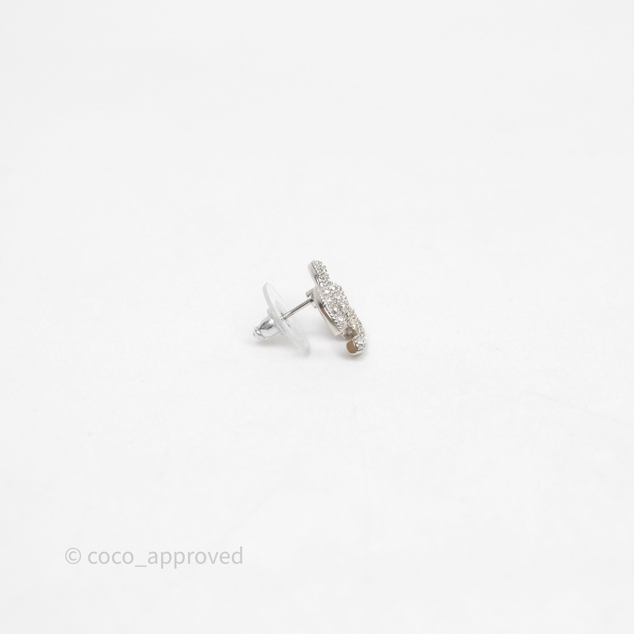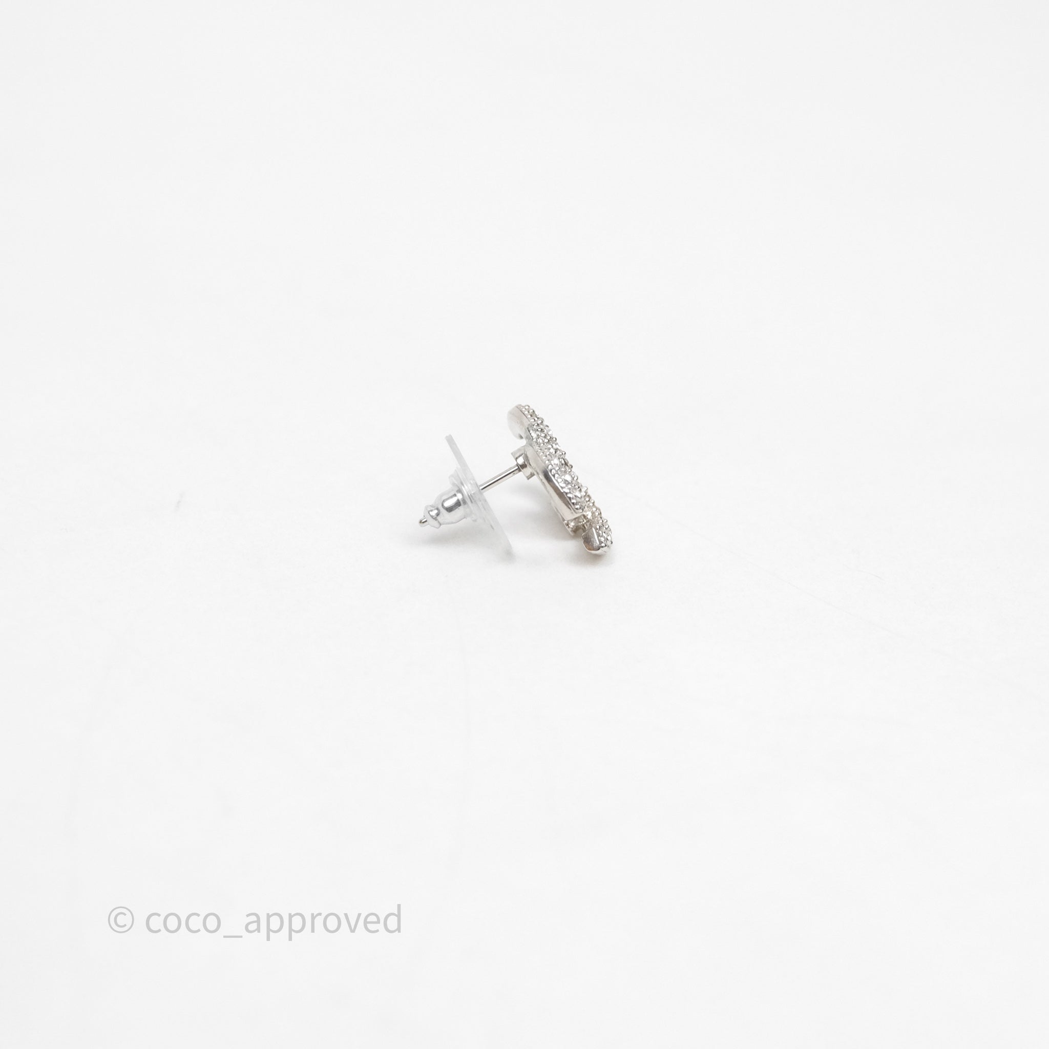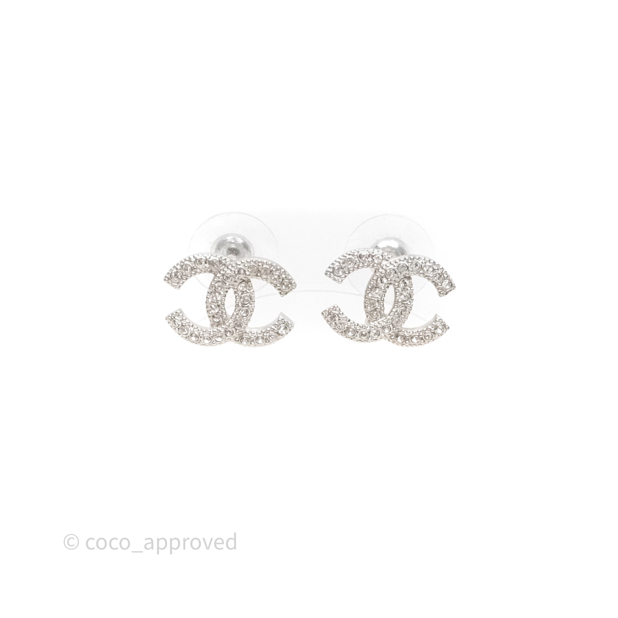 Chanel Crystals CC Earrings Silver Tone 21V