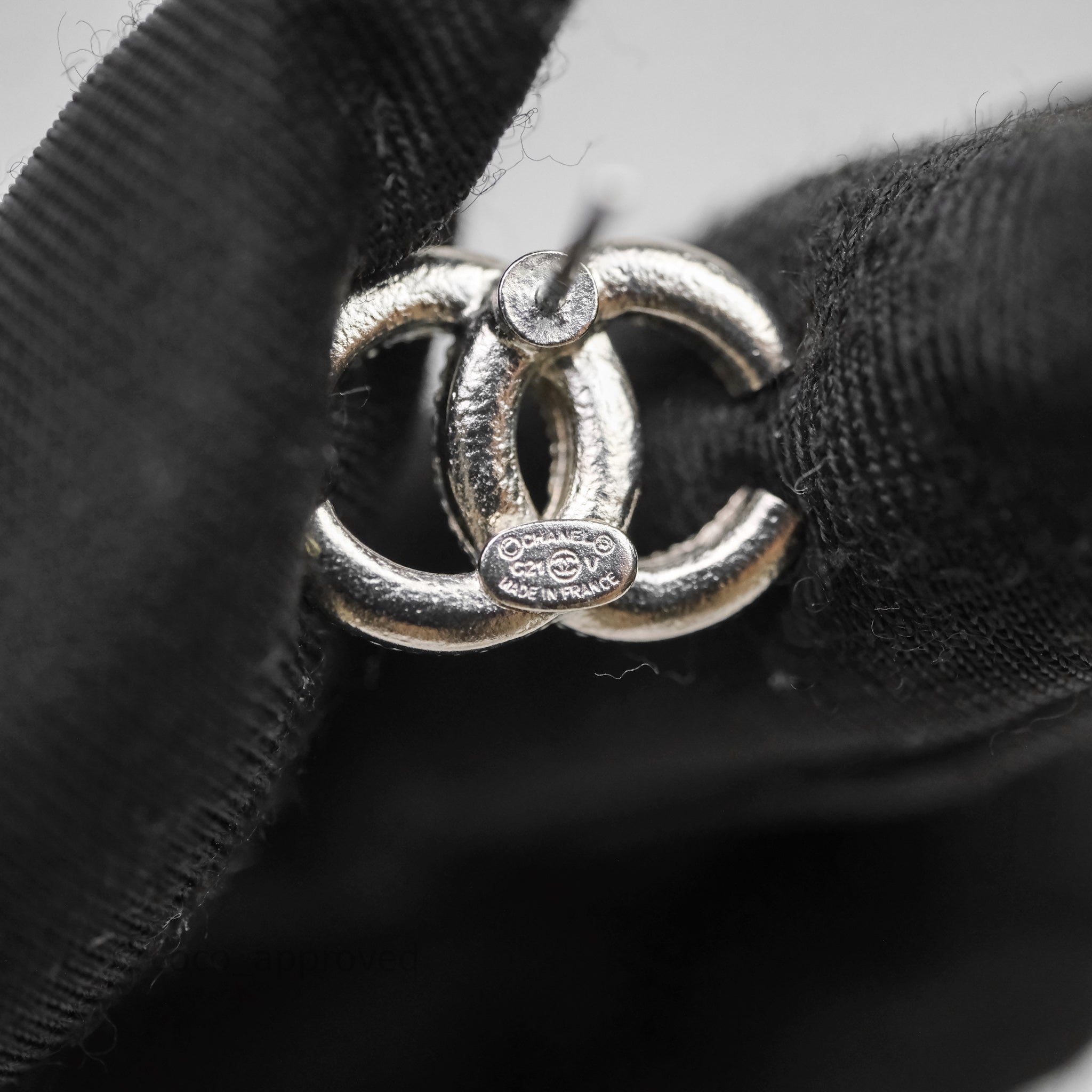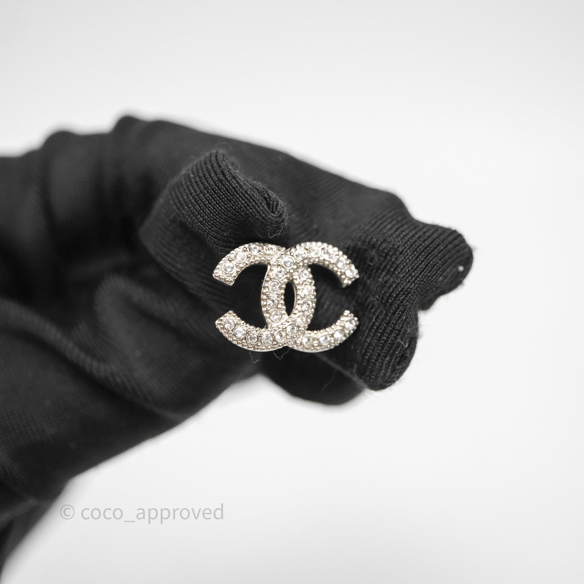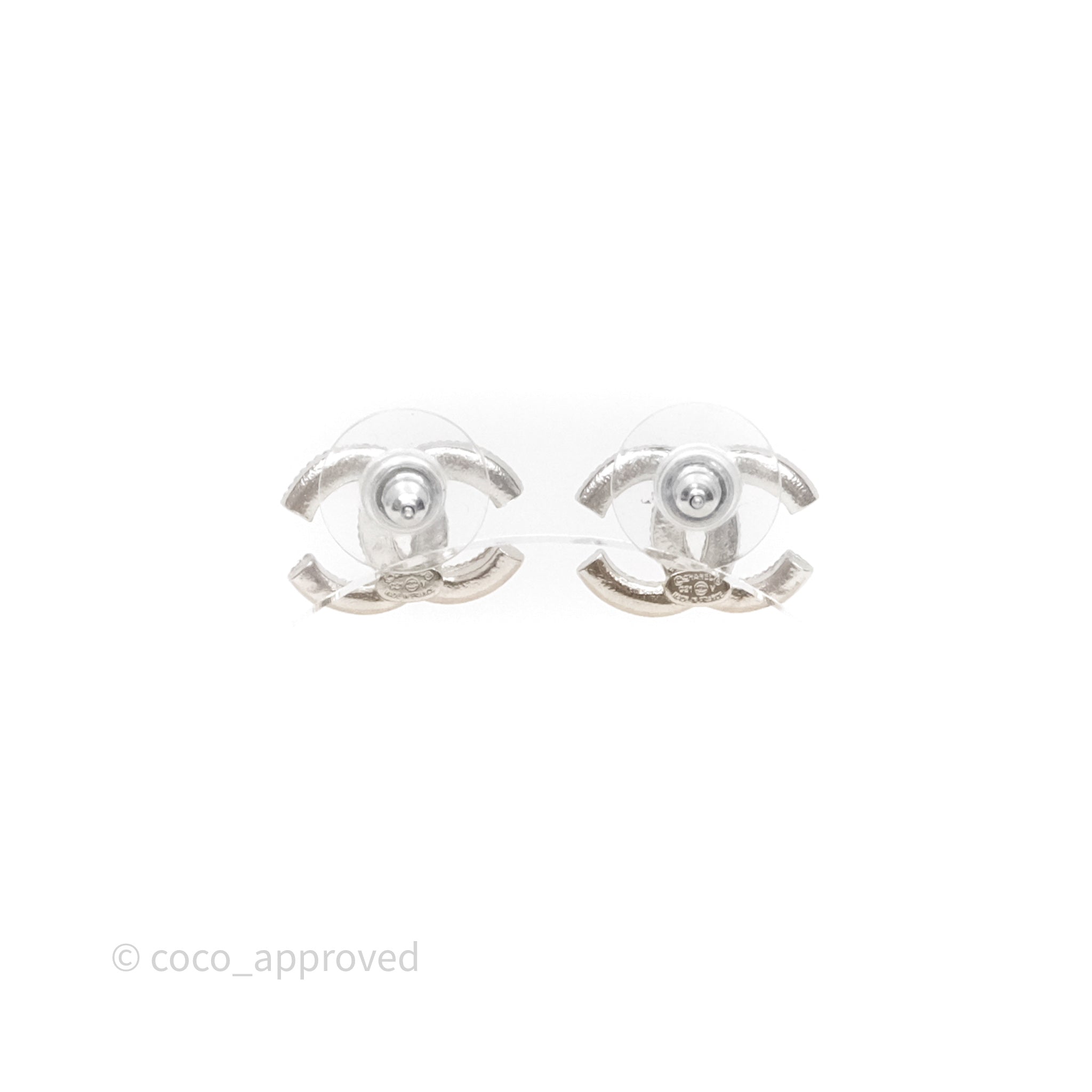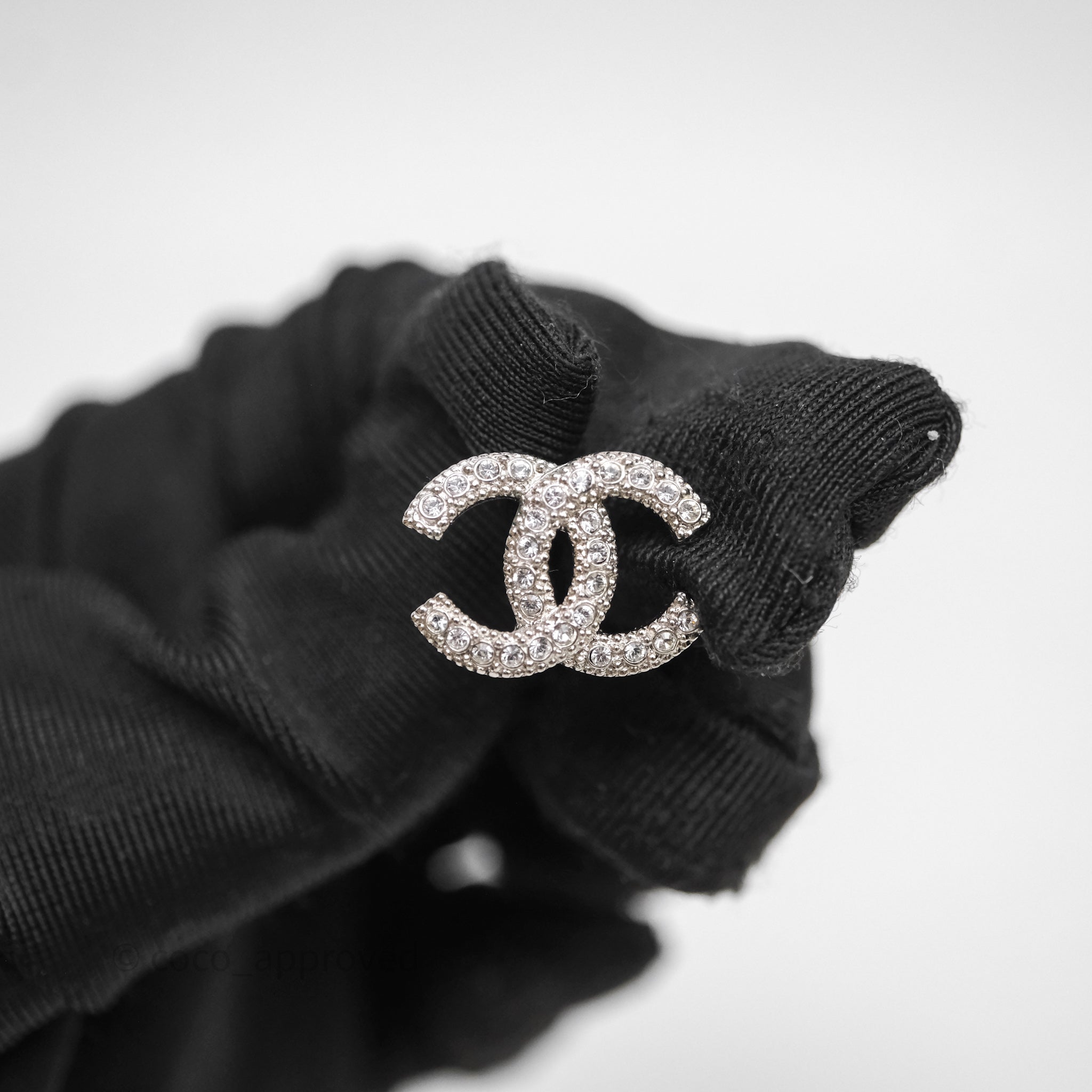 Chanel Crystals CC Earrings Silver Tone 21V