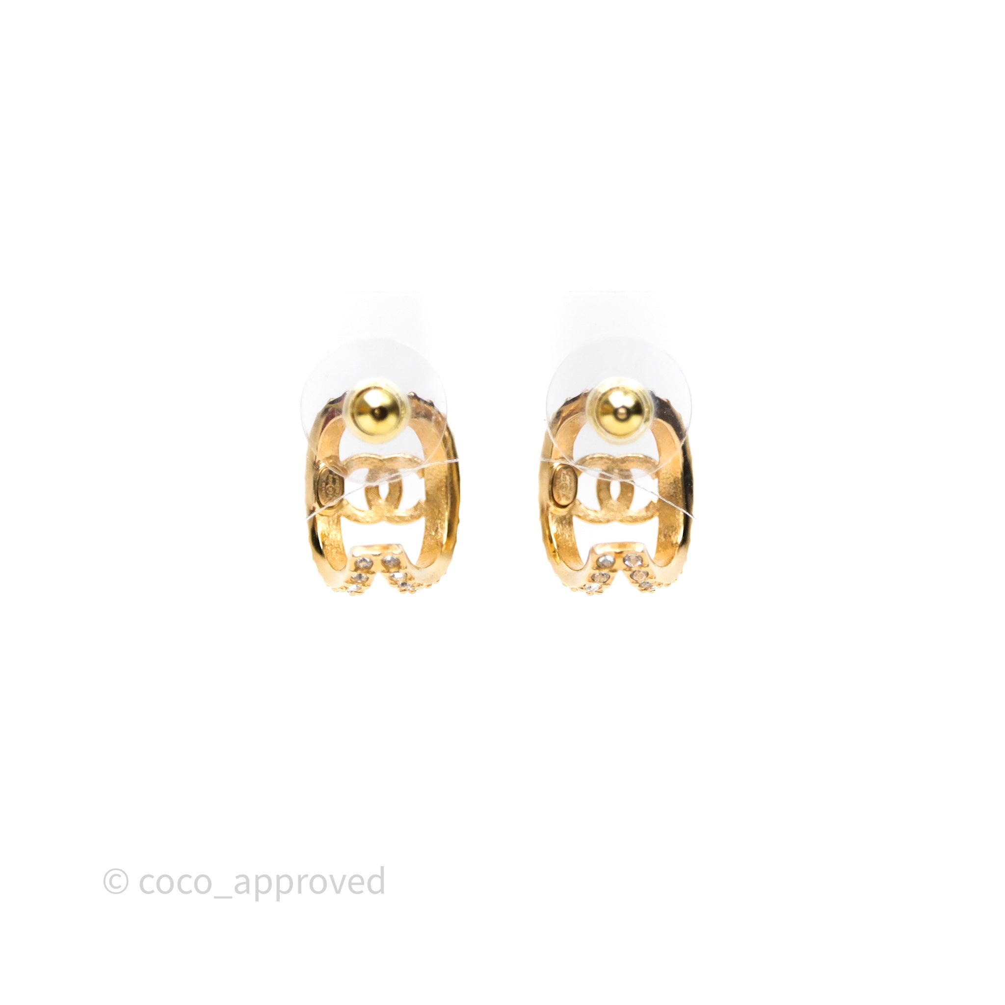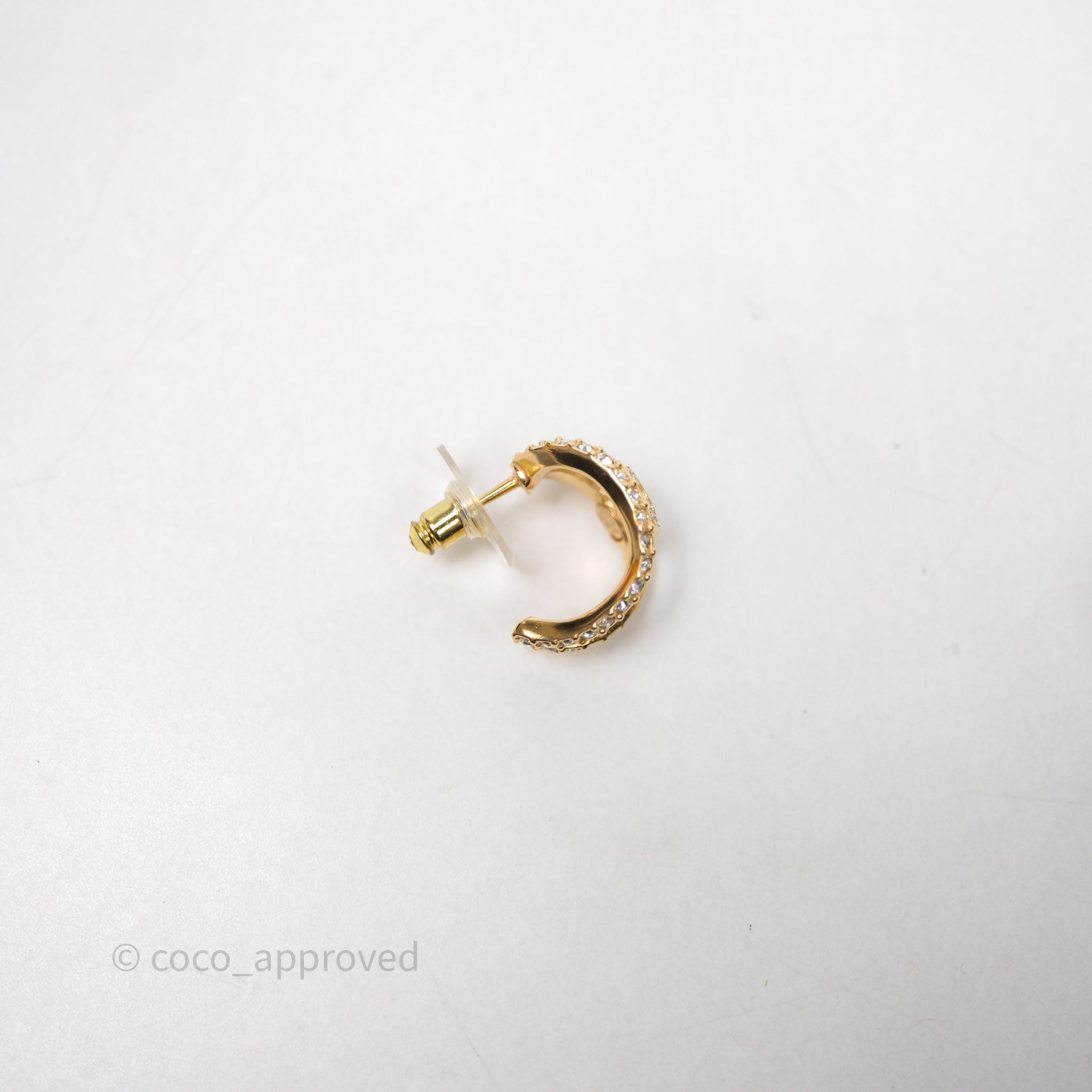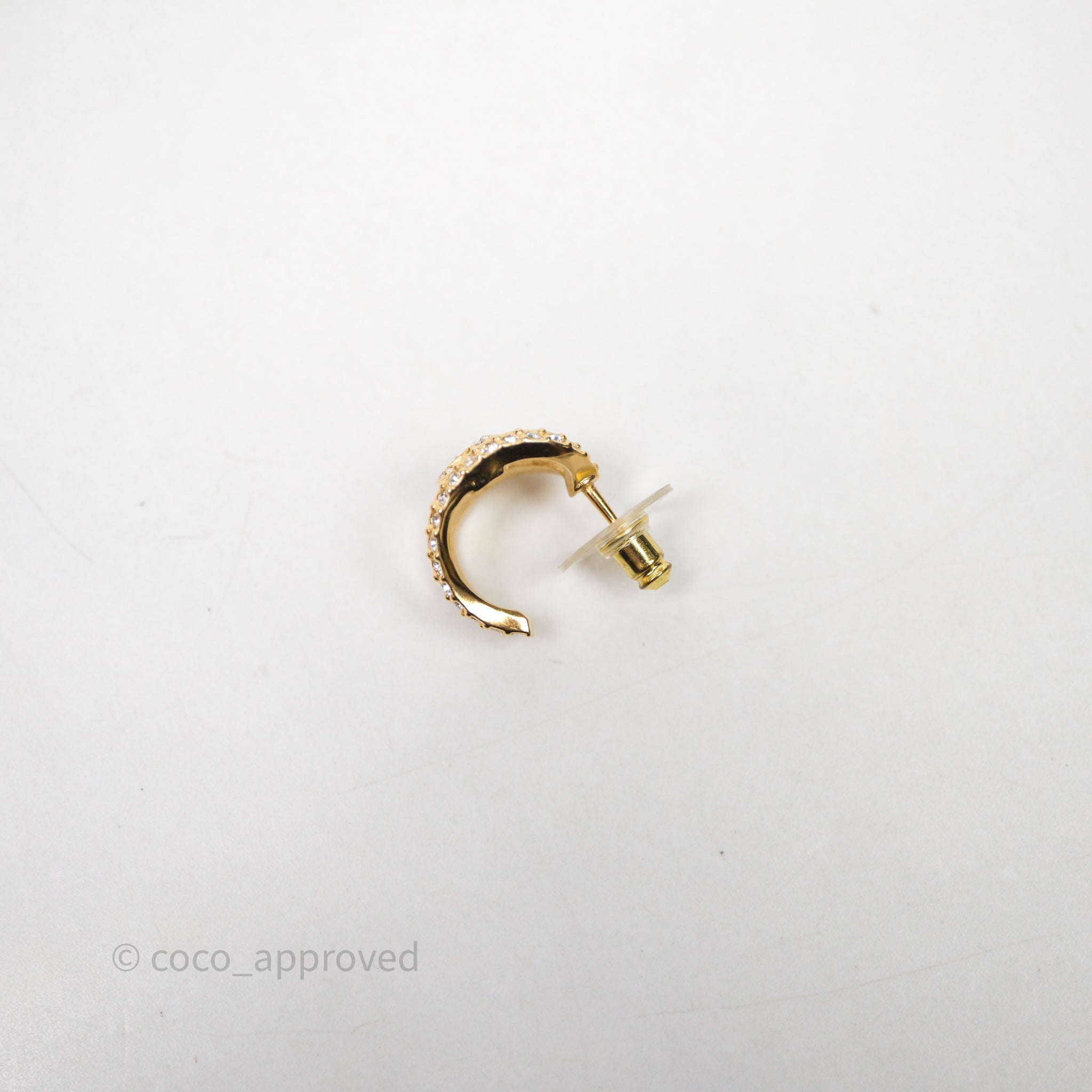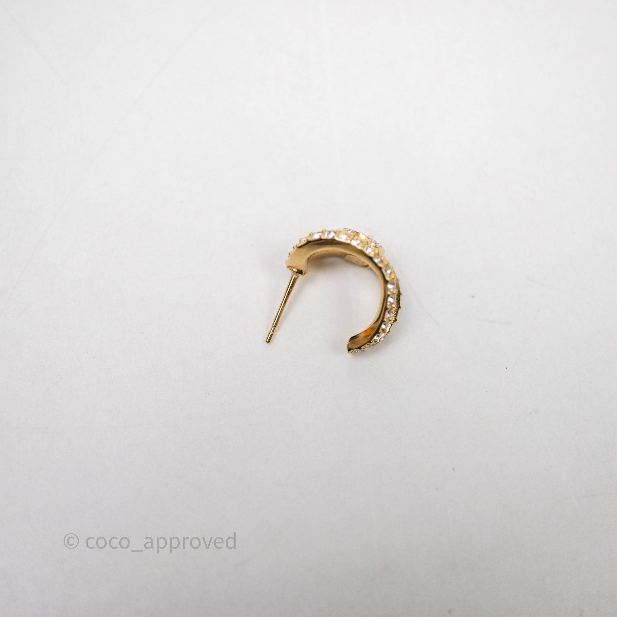 Chanel Hoop CC Crystal Earrings Gold Tone 22A
