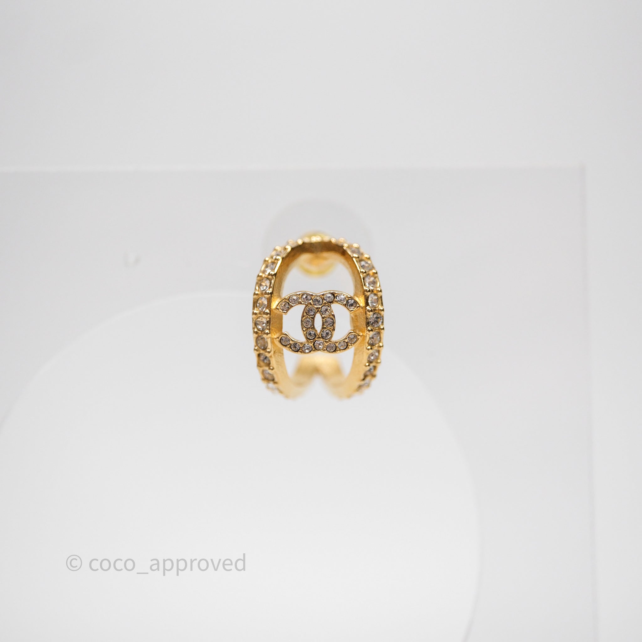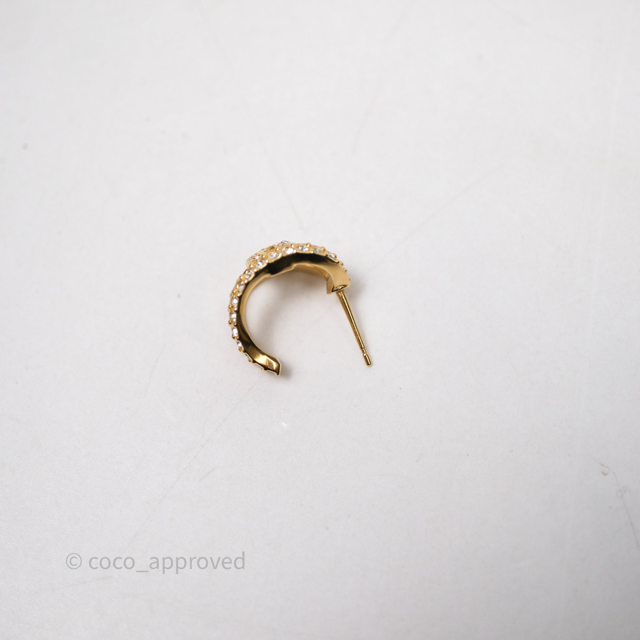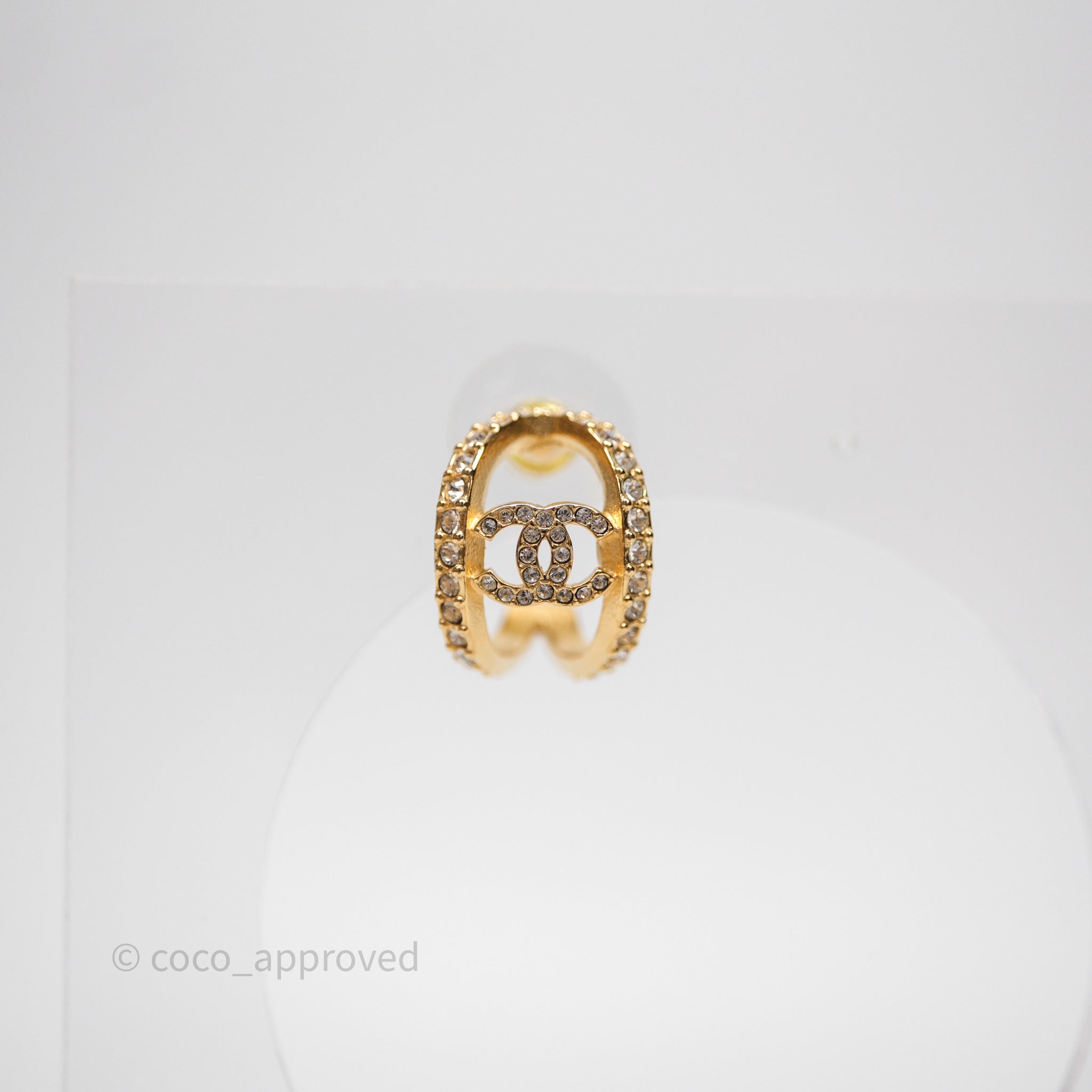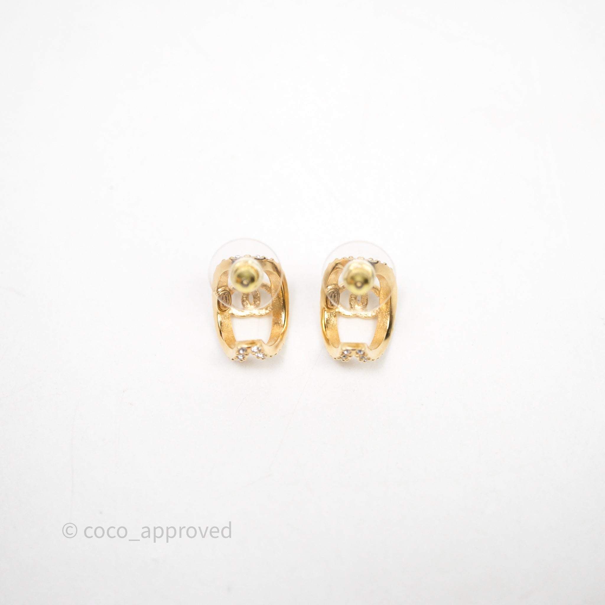 Chanel Hoop CC Crystal Earrings Gold Tone 22A