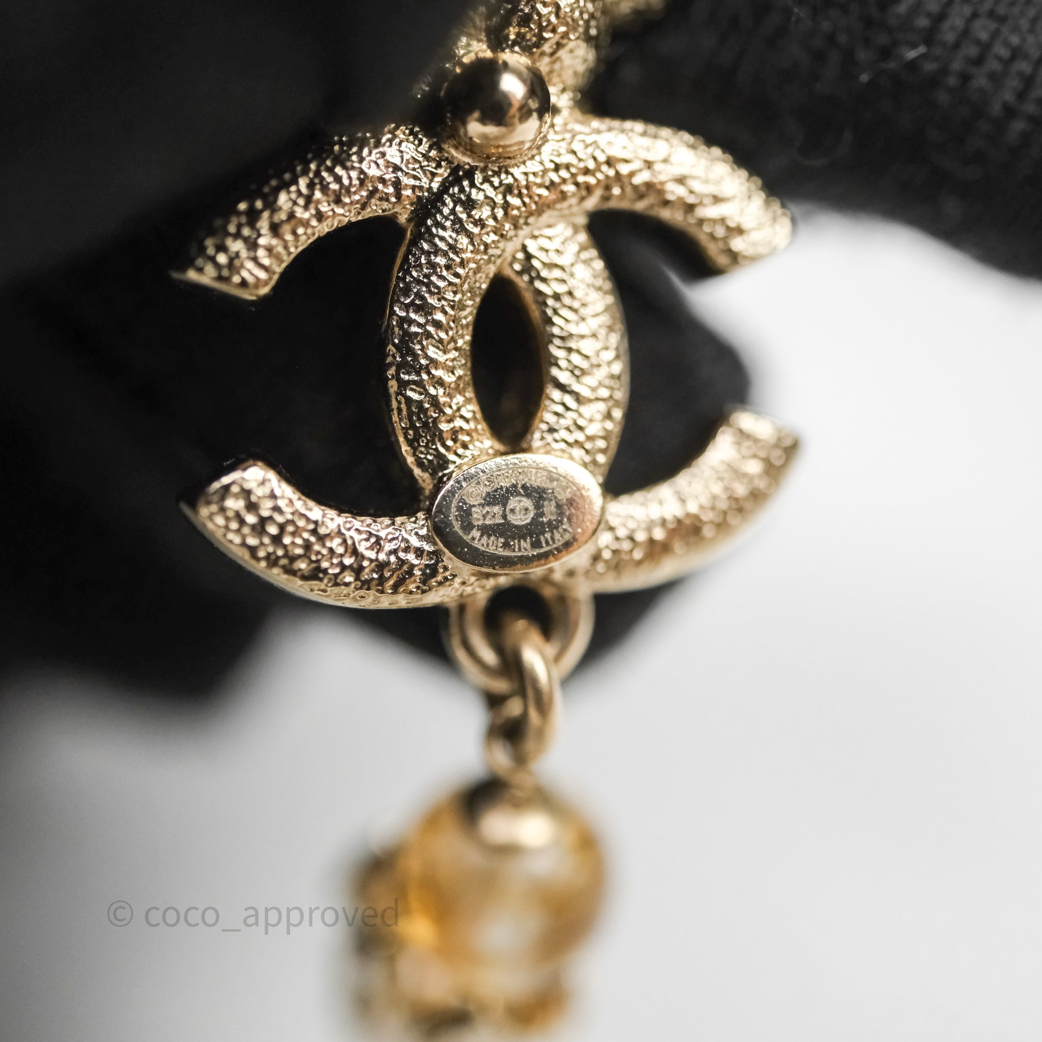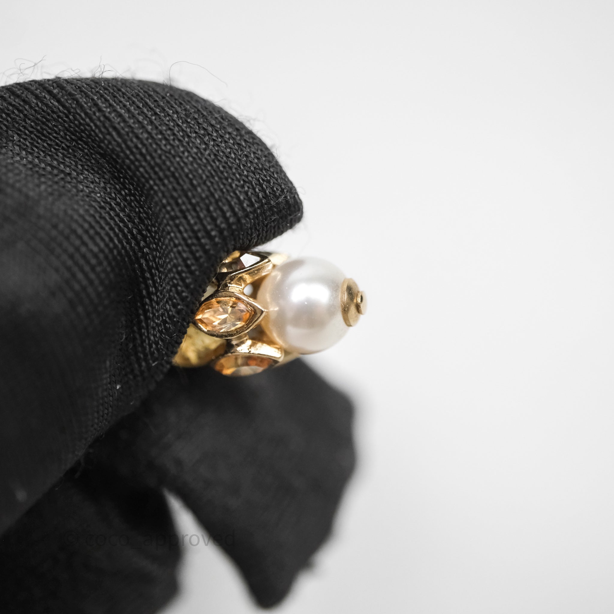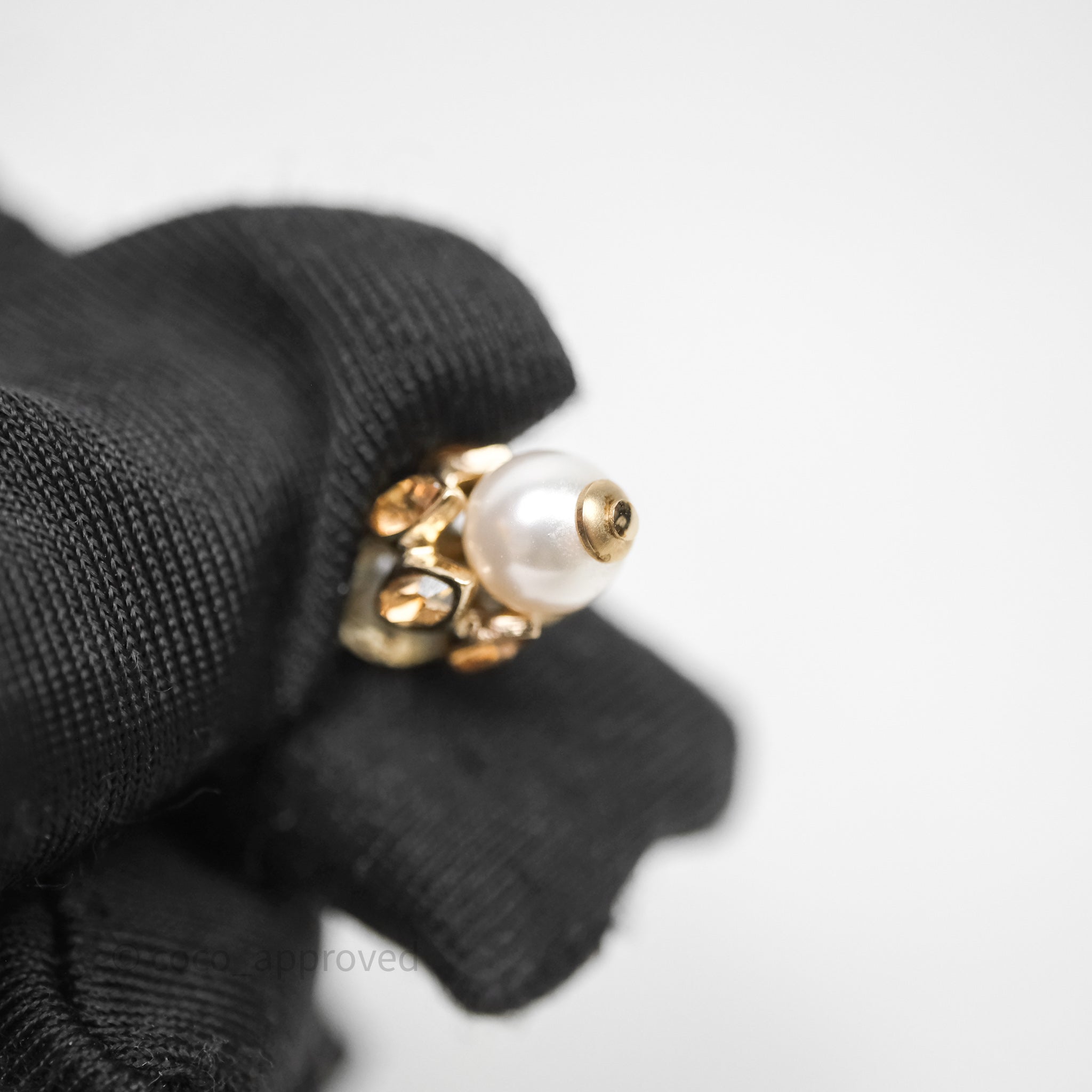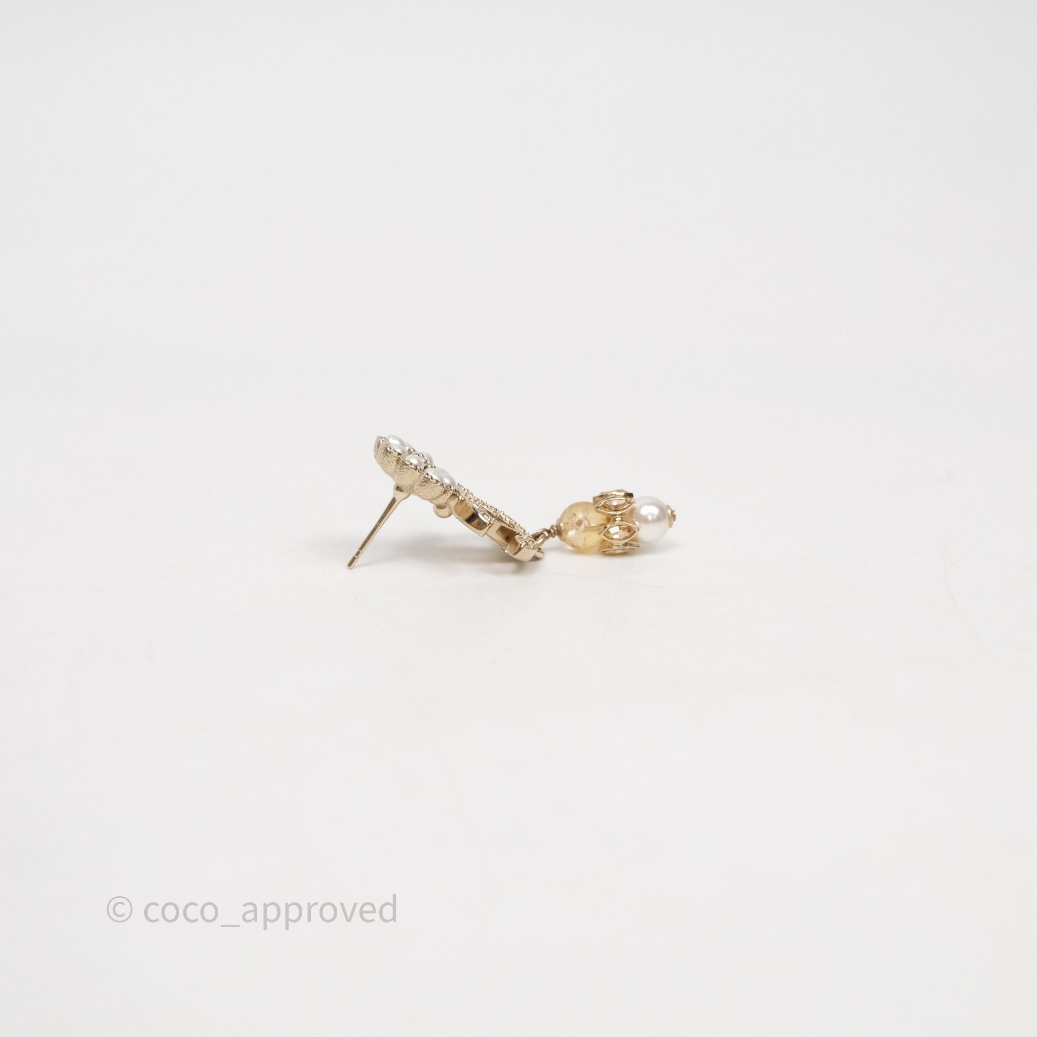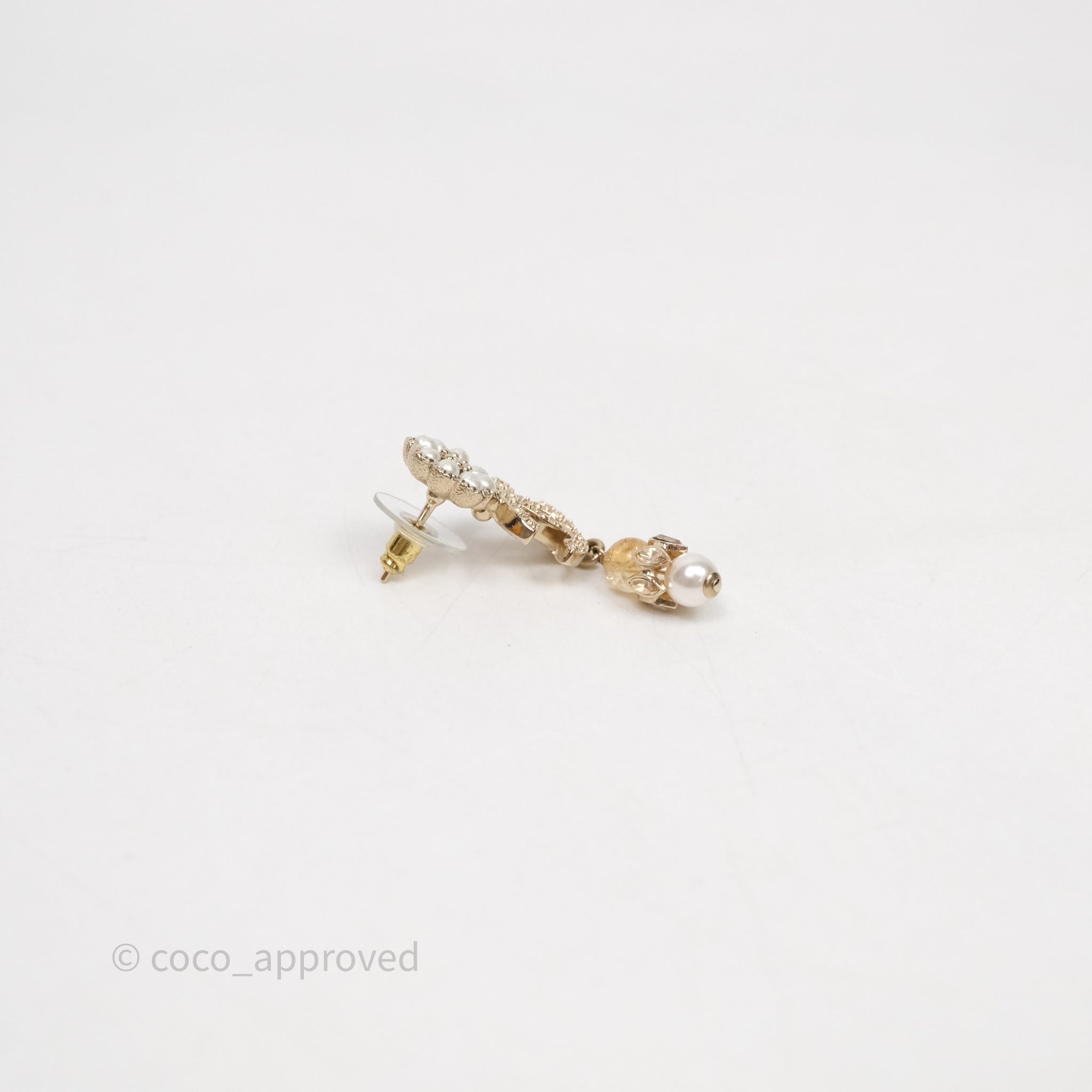 Chanel Pearl Flower CC Crystal Drop Earrings Gold Tone 22K