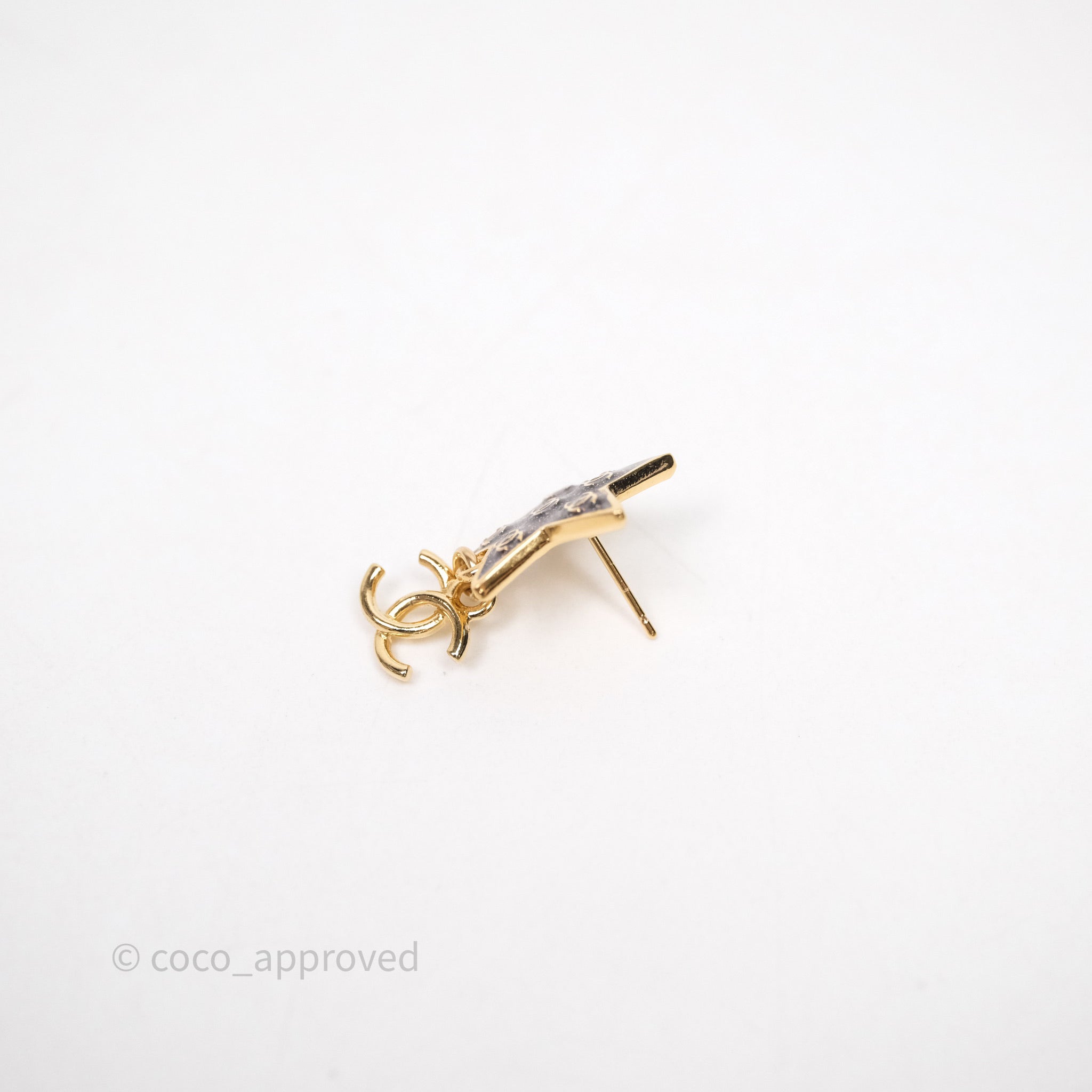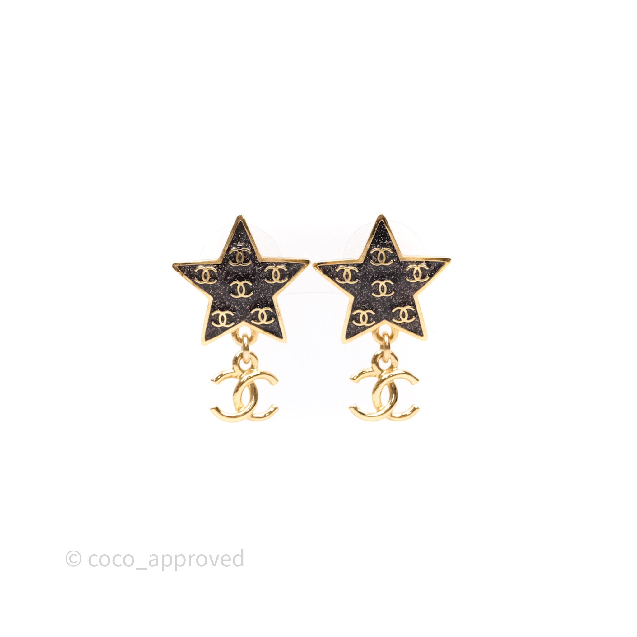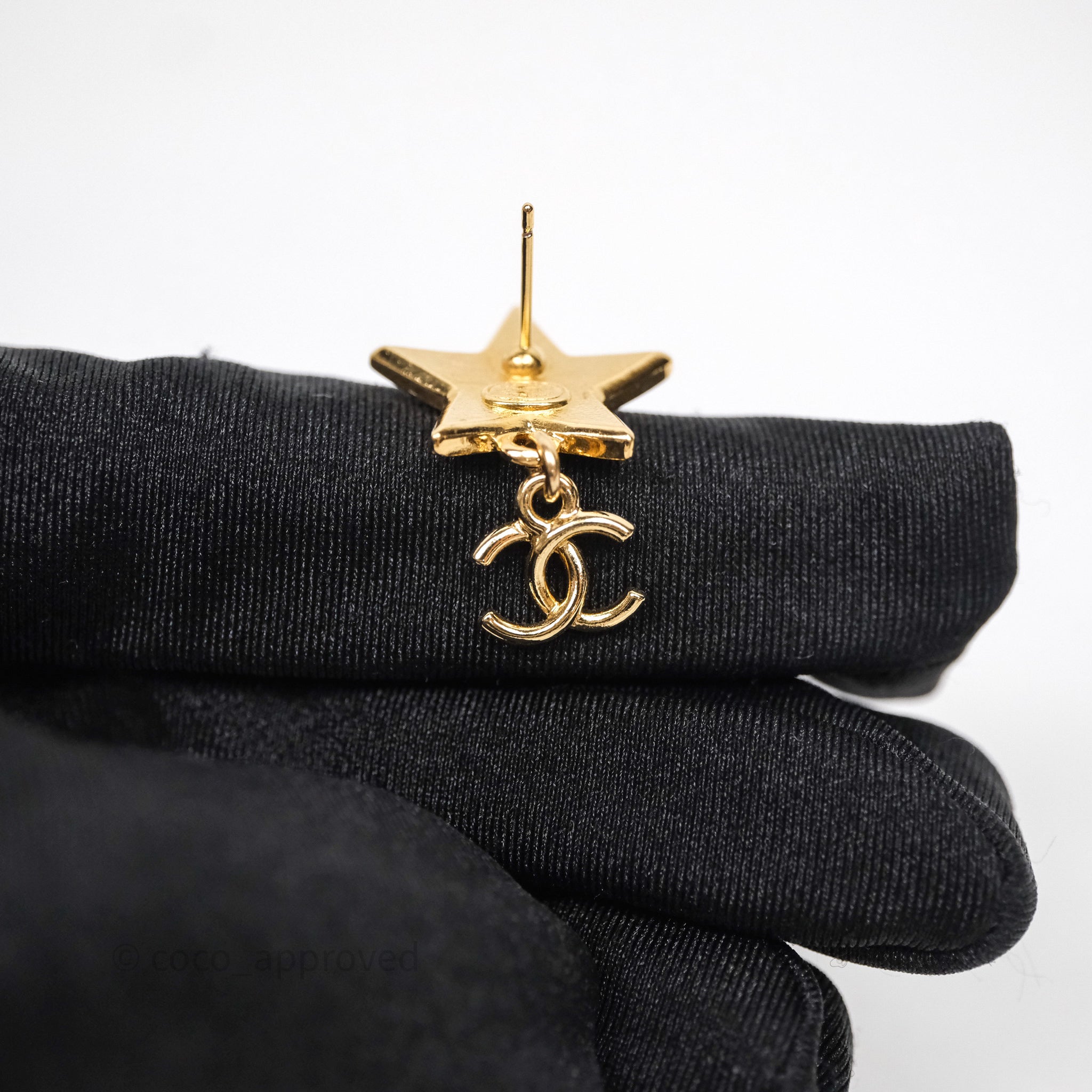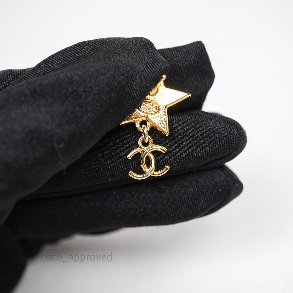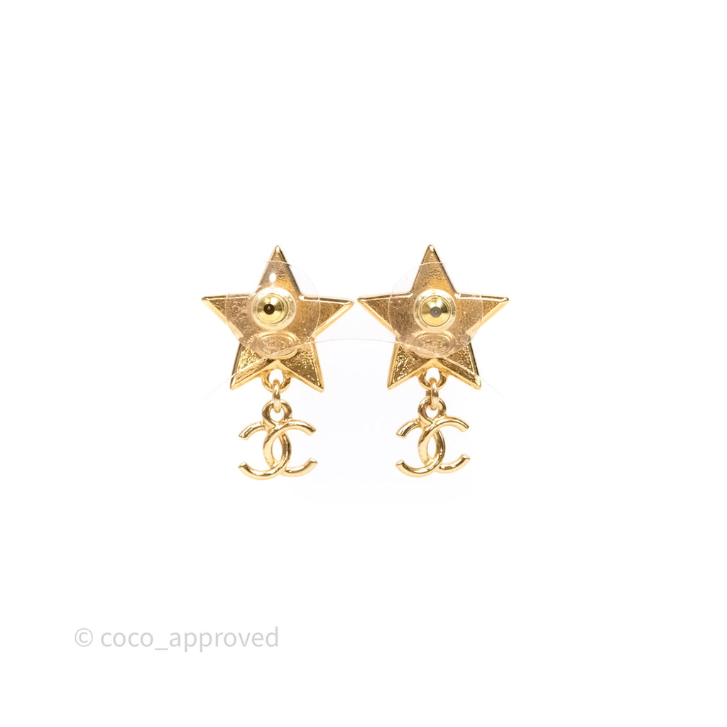 Chanel Star Drop CC Earrings Gold Tone 24C