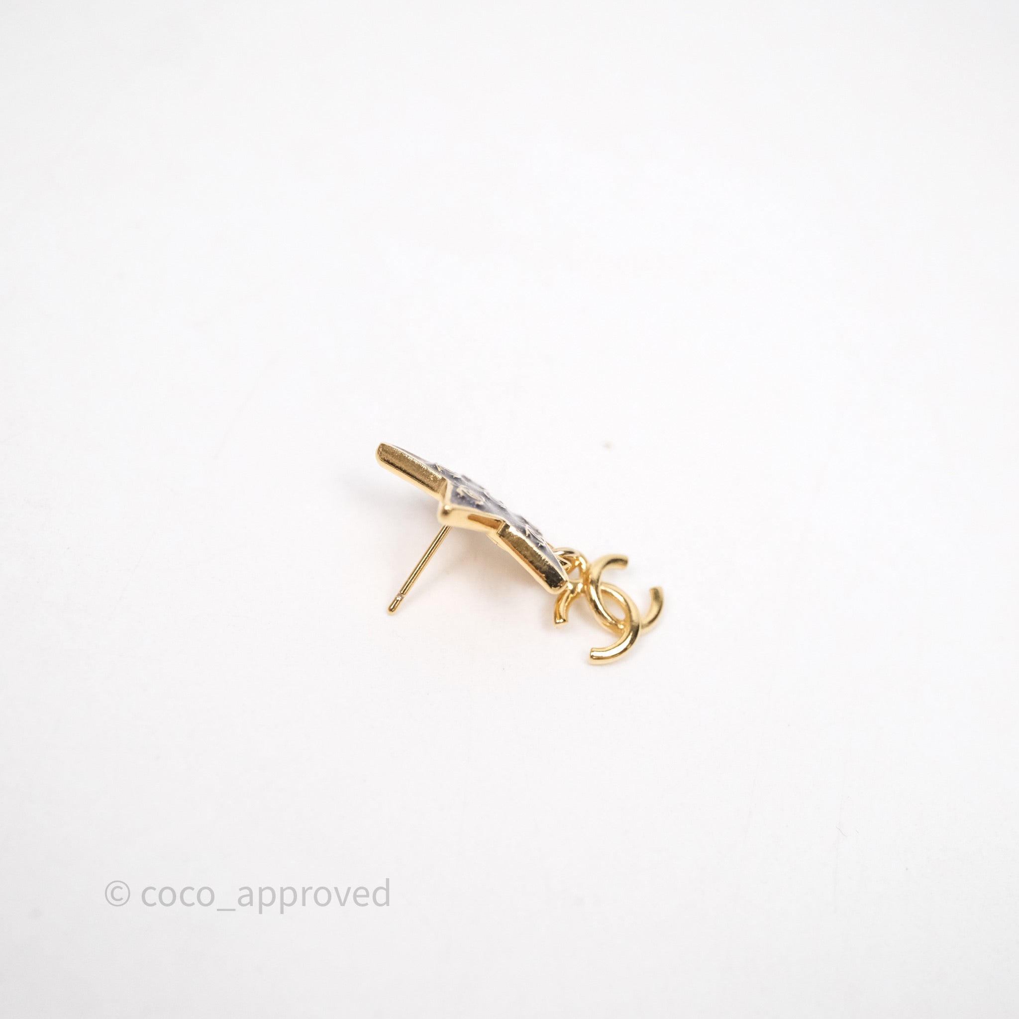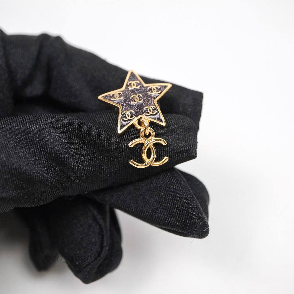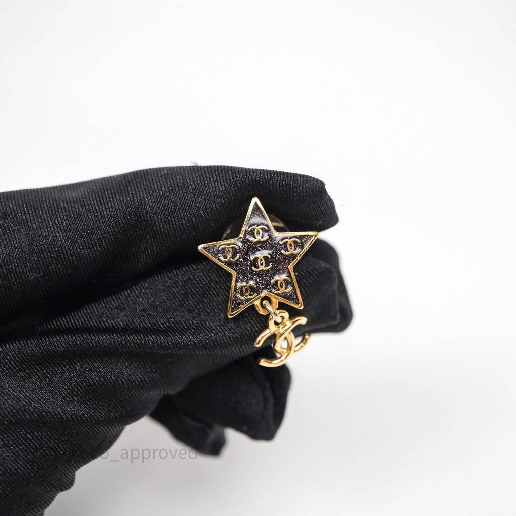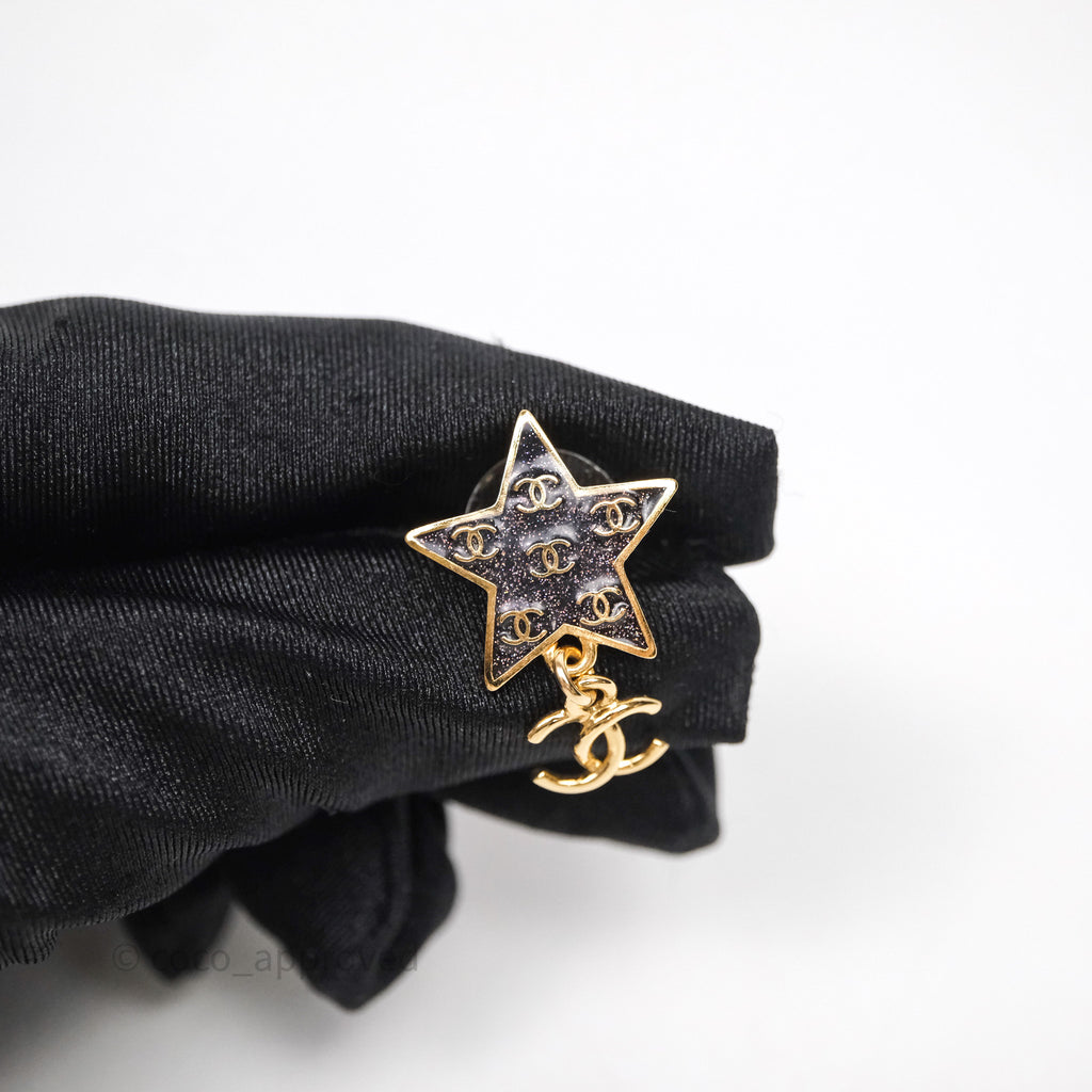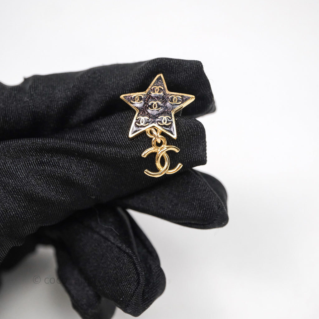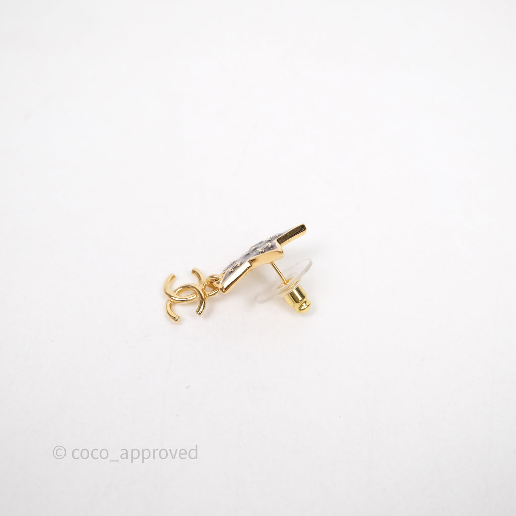 Chanel Star Drop CC Earrings Gold Tone 24C