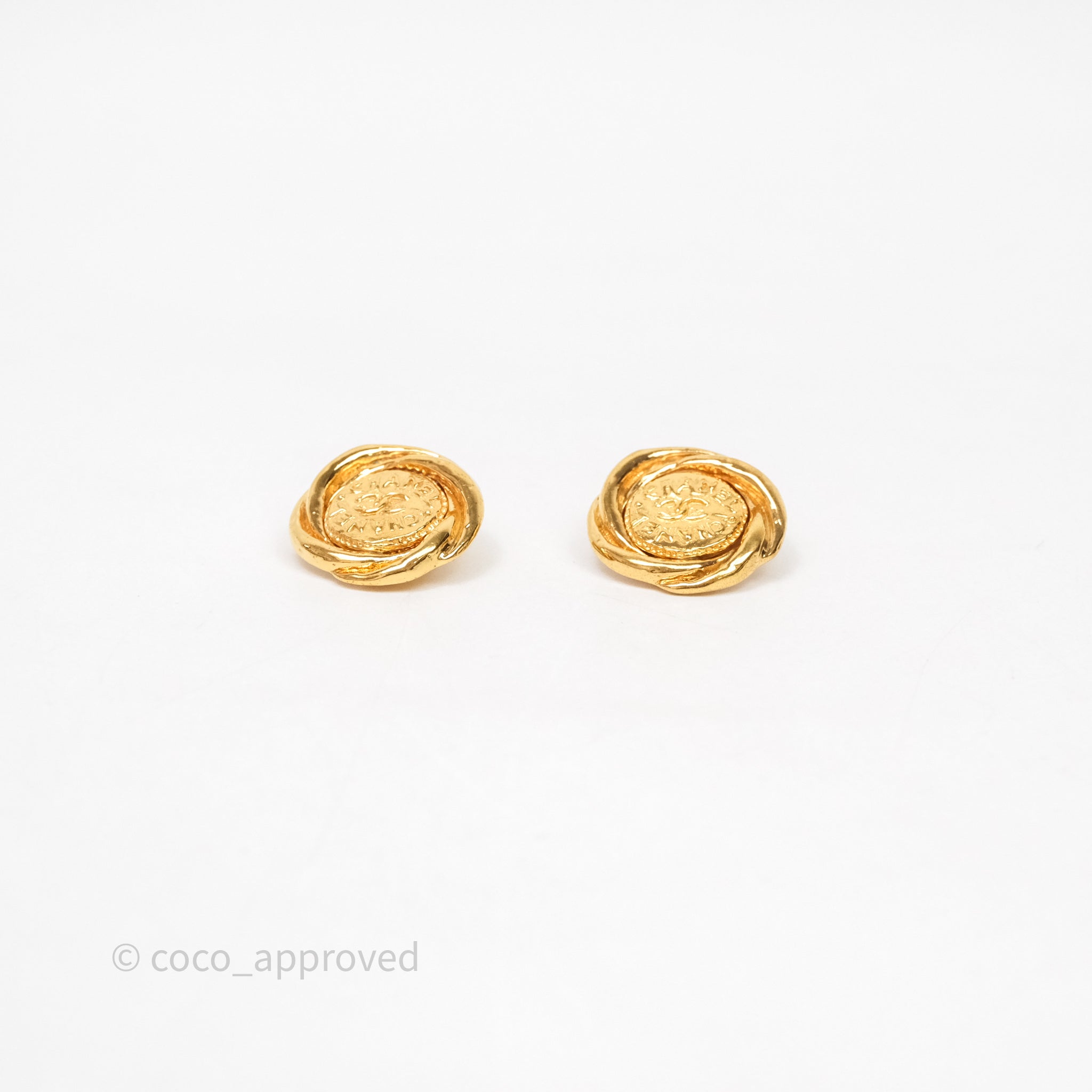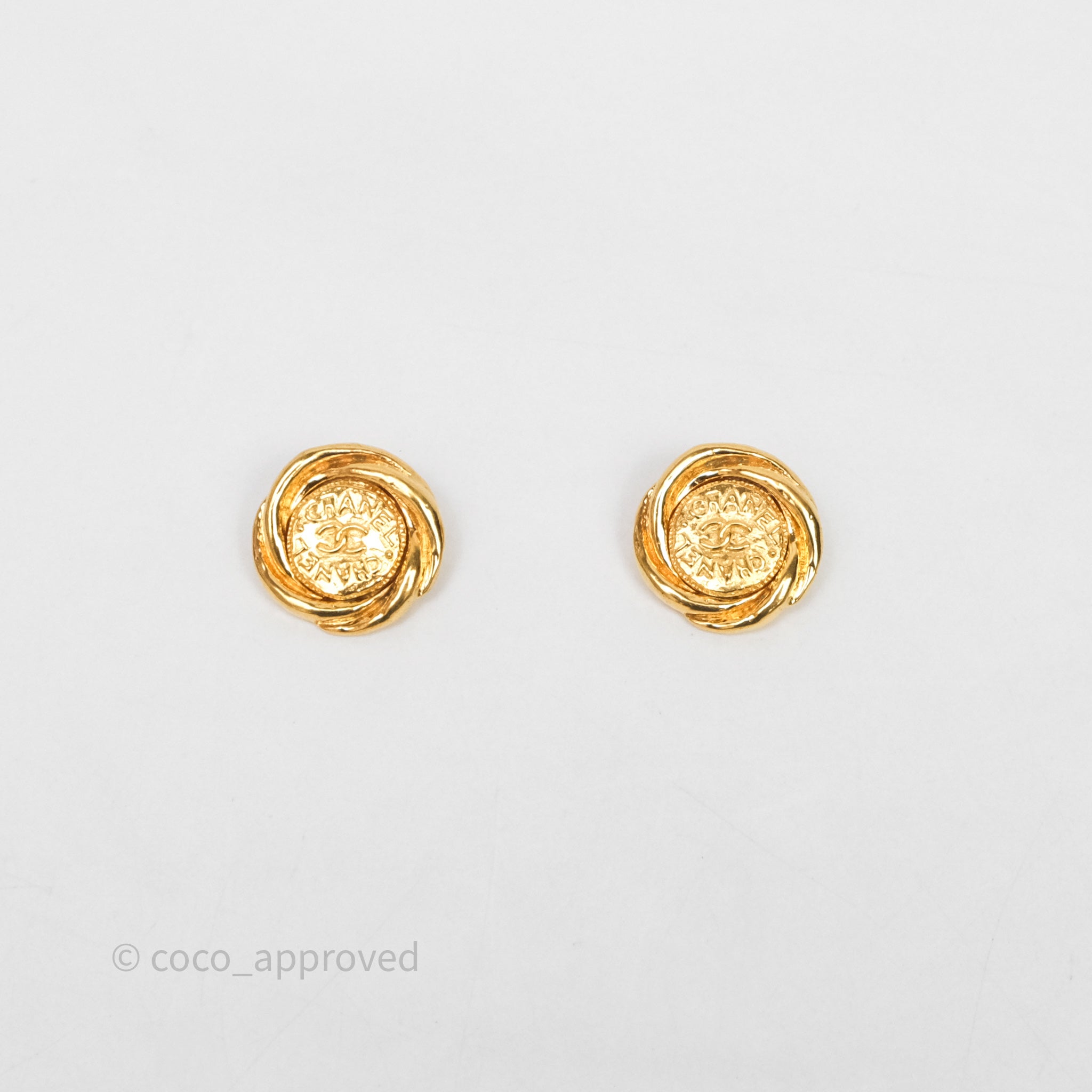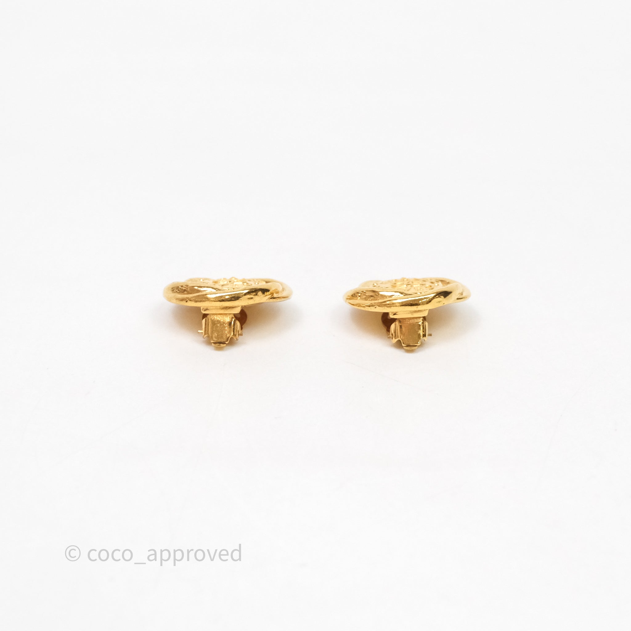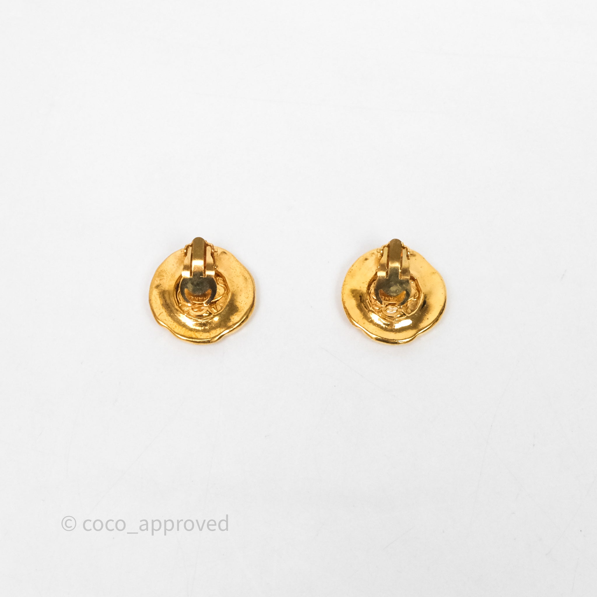 Chanel Vintage CC Round Ear Clip Gold Tone 93P