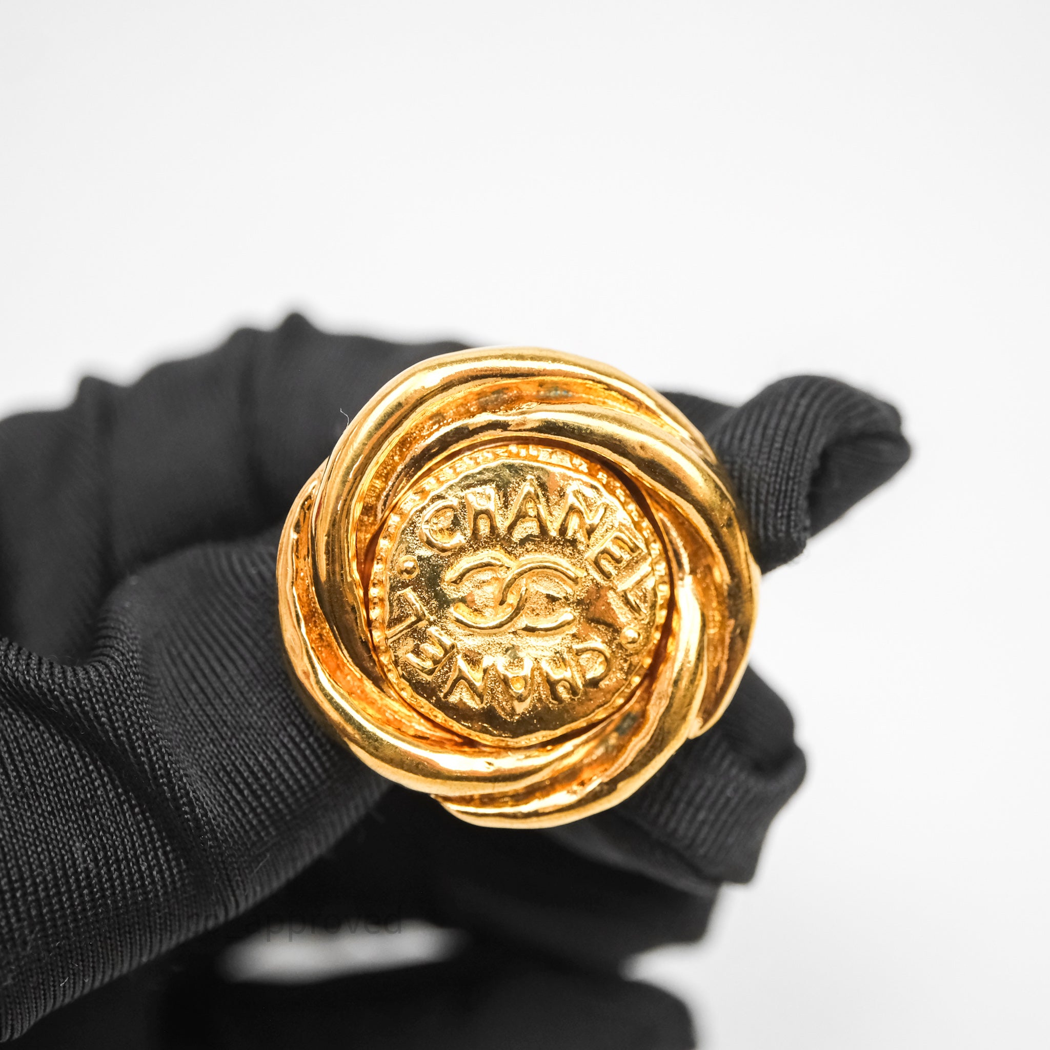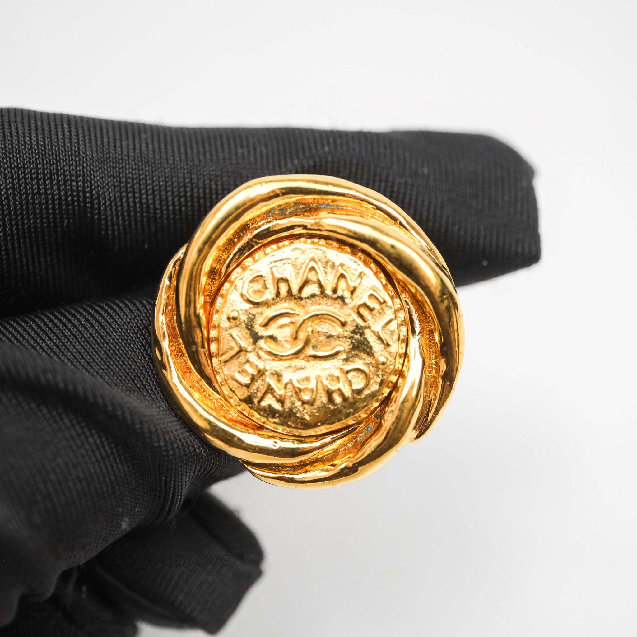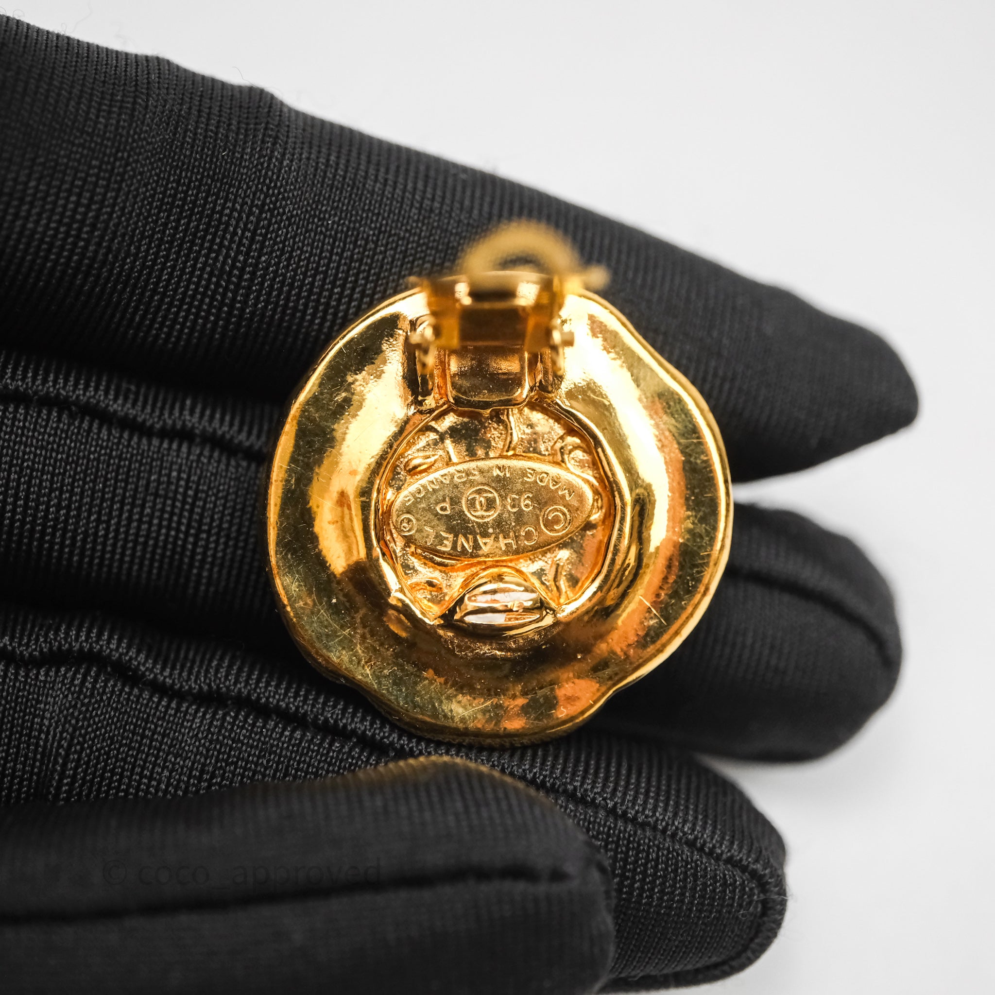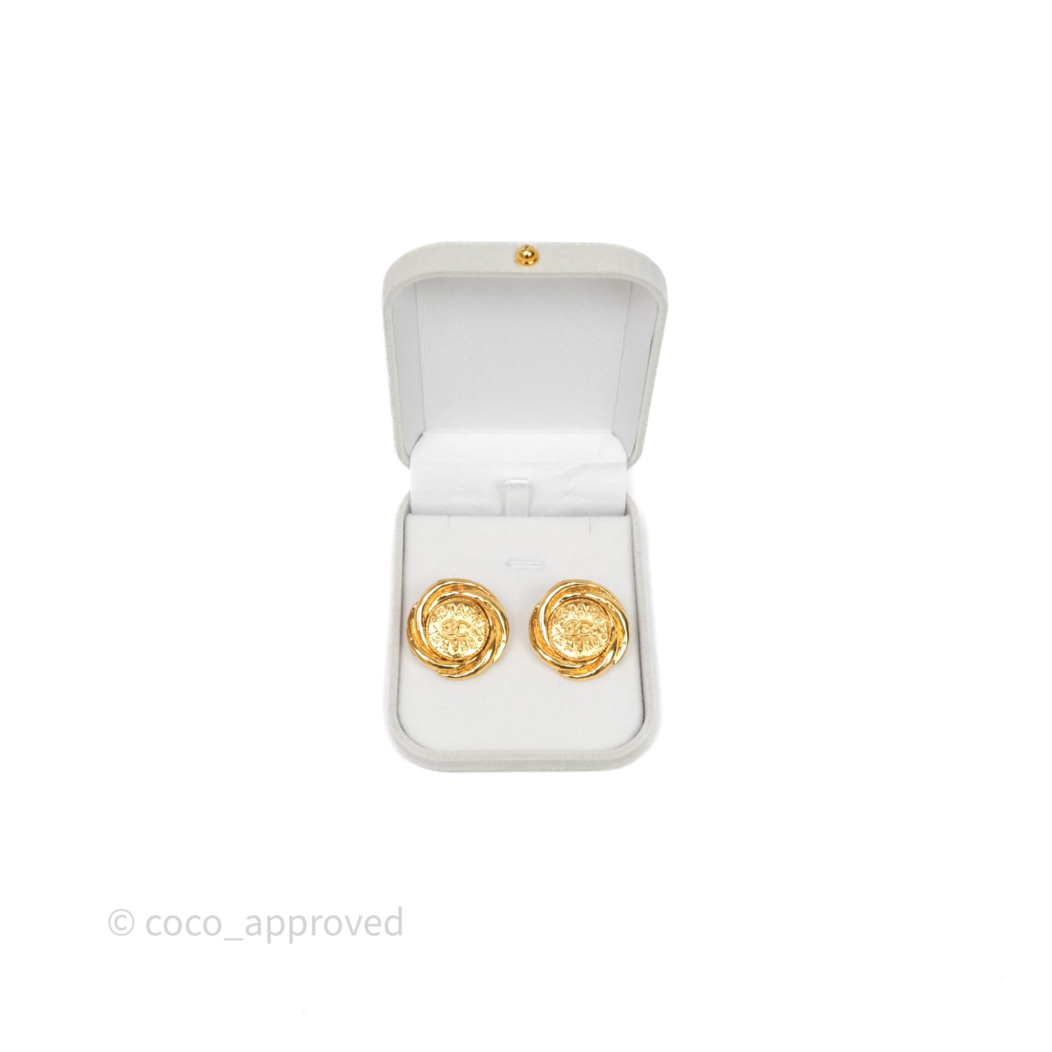 Chanel Vintage CC Round Ear Clip Gold Tone 93P