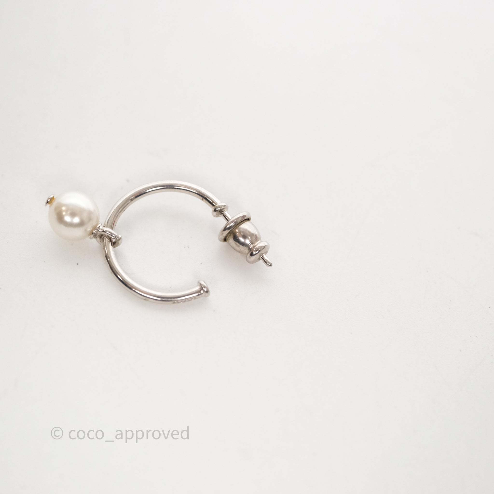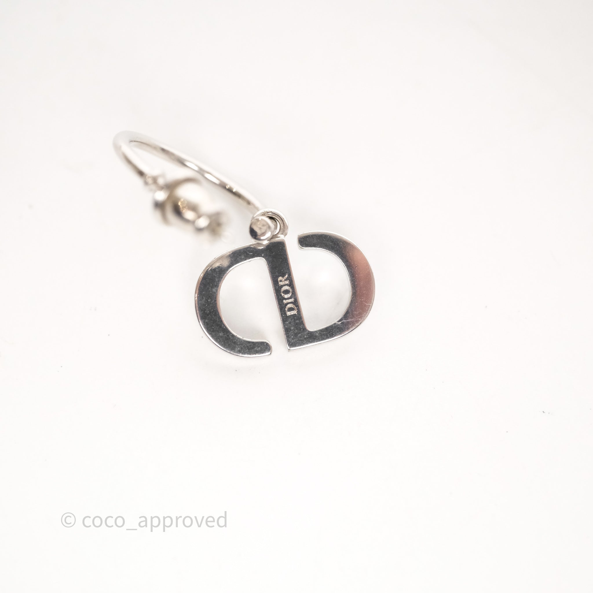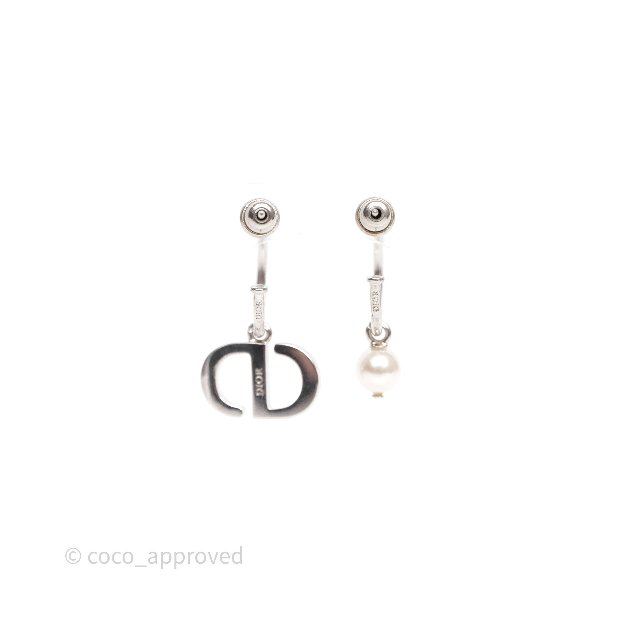 Christian Dior Crystal Pearl Drop Petit CD Earrings Silver Tone