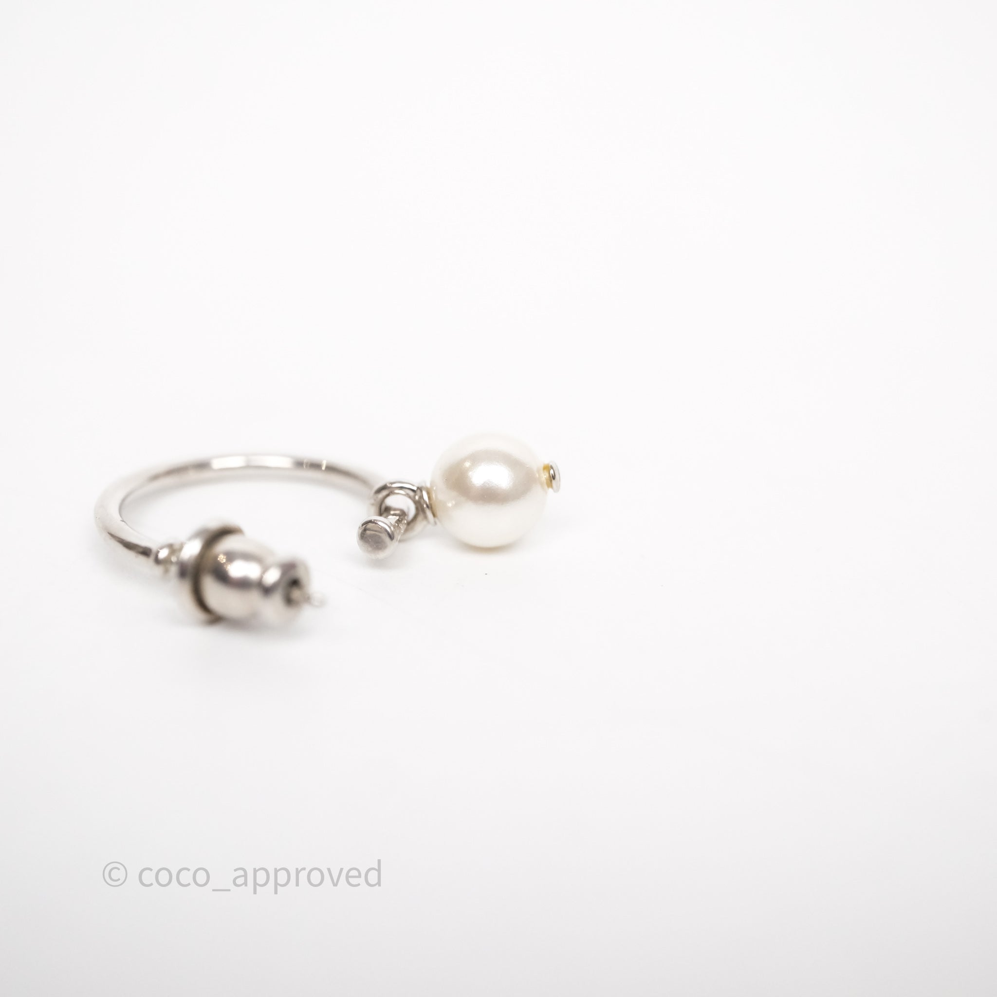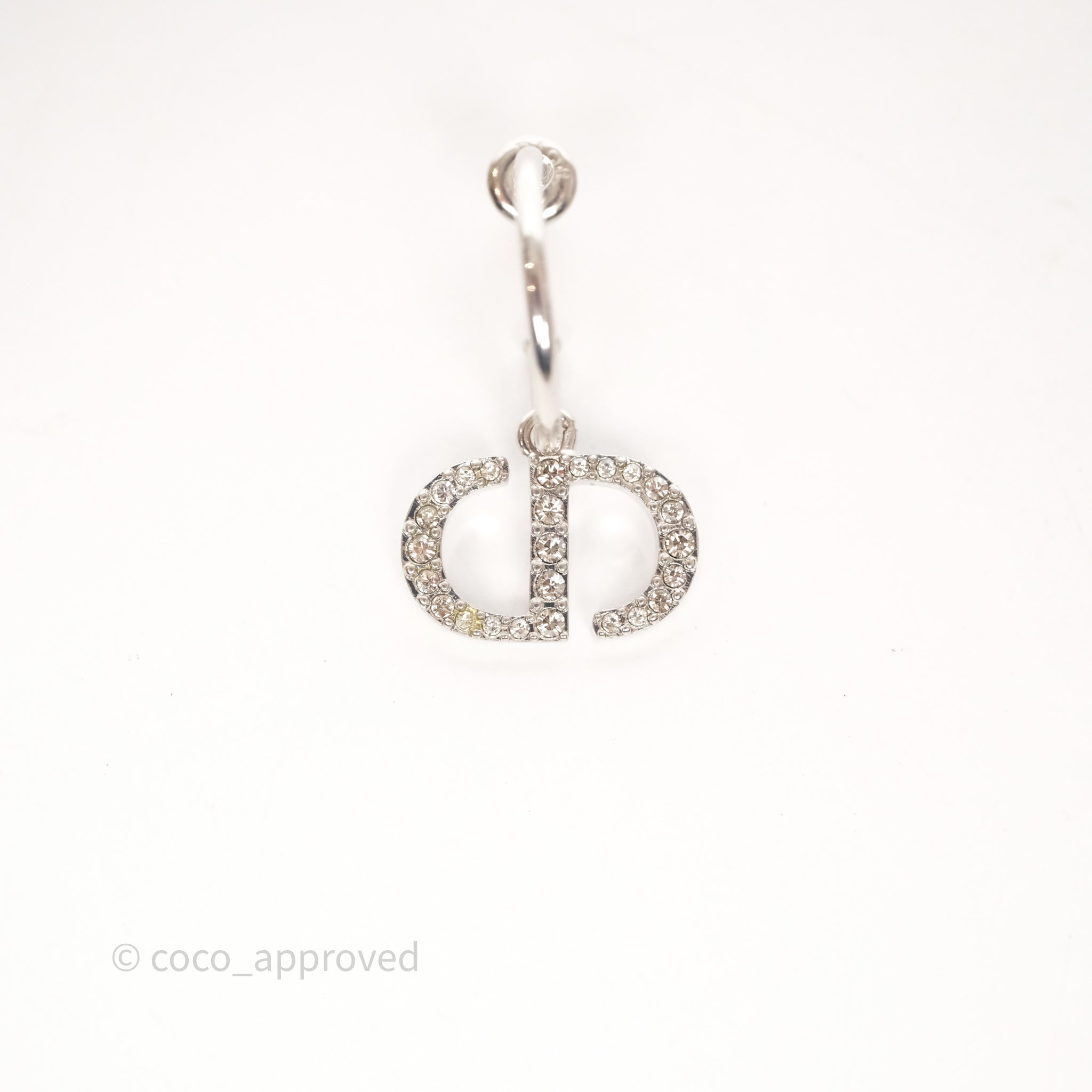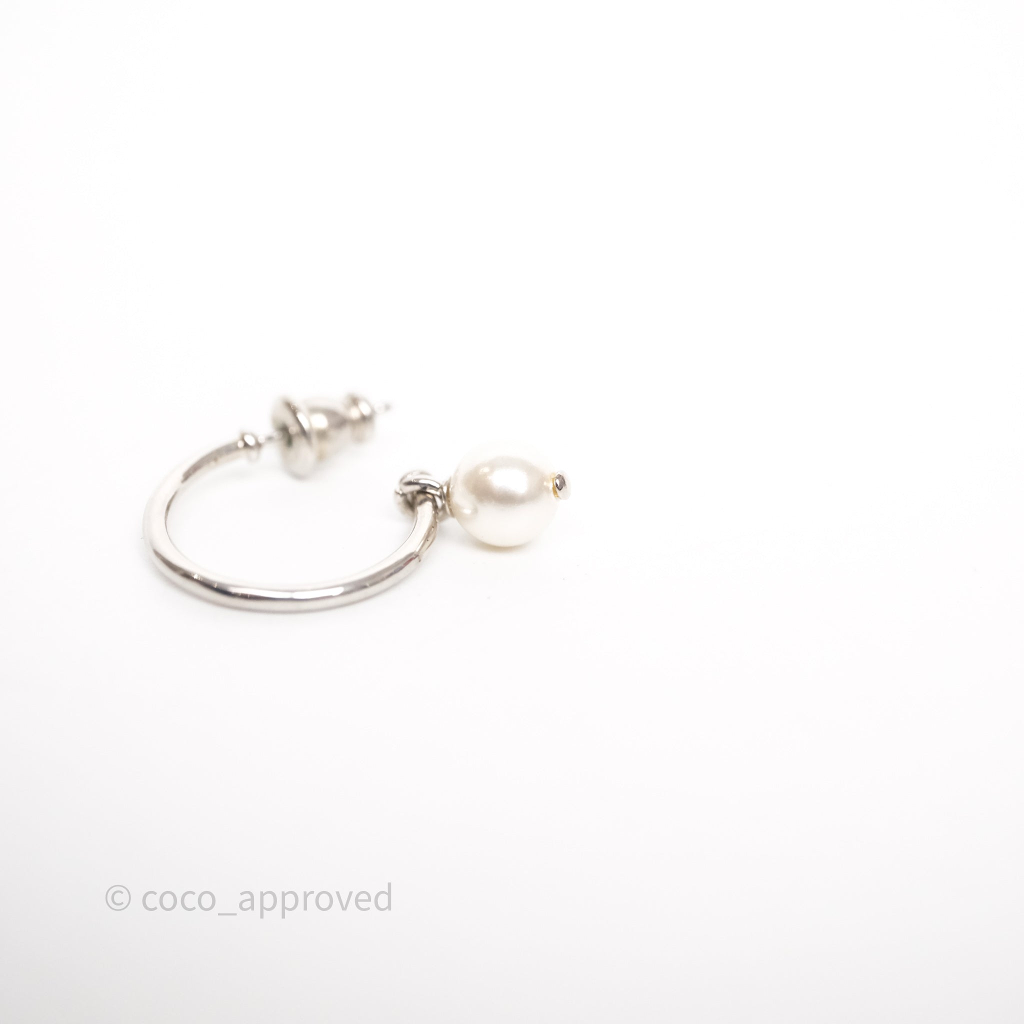 Christian Dior Crystal Pearl Drop Petit CD Earrings Silver Tone