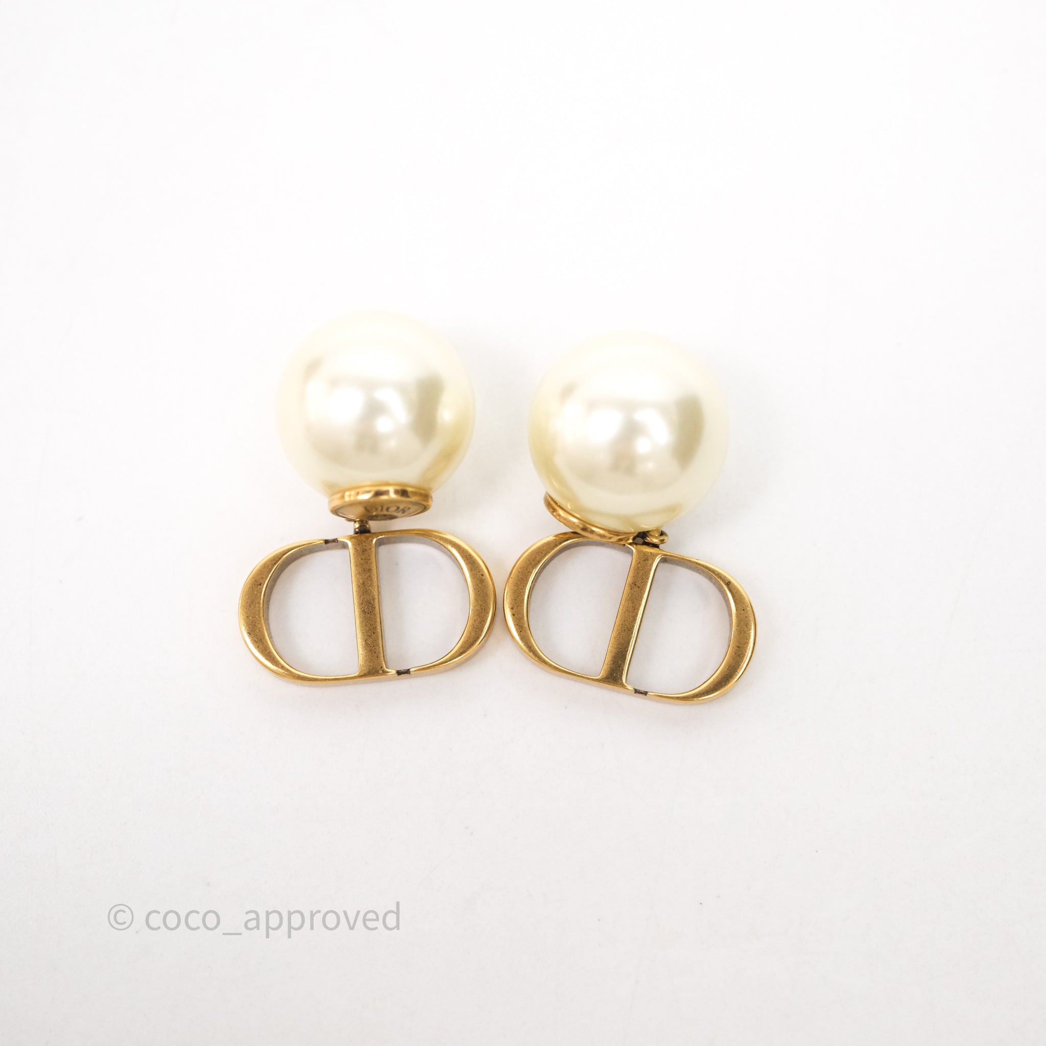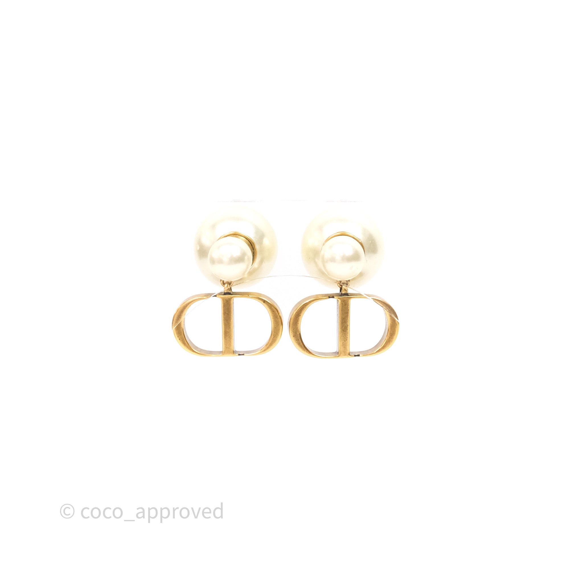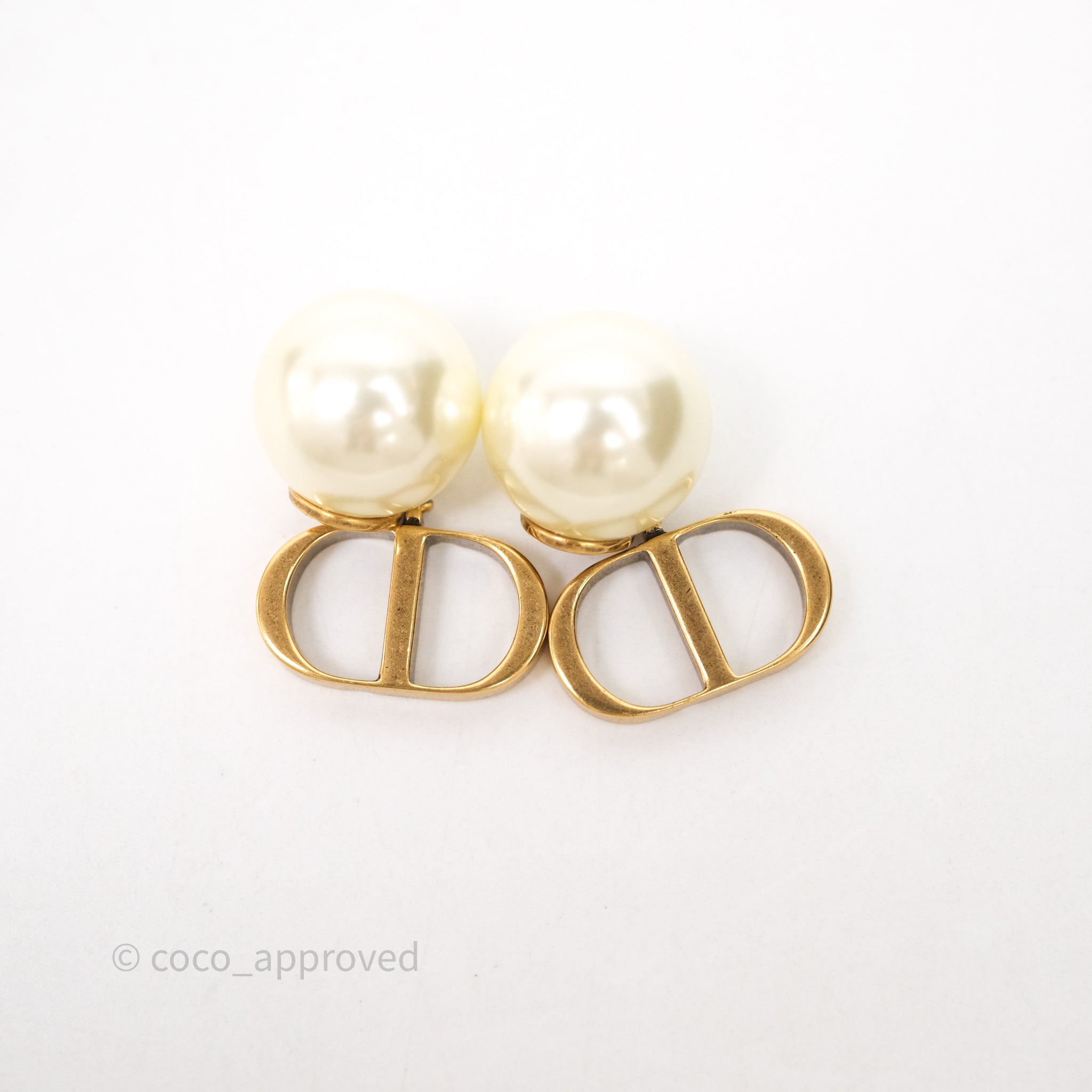 Christian Dior Tribales Pearl CD Earrings Gold Tone